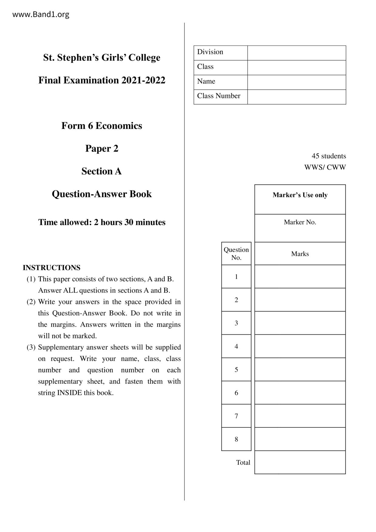 中六 經濟 聖士提反女子中學