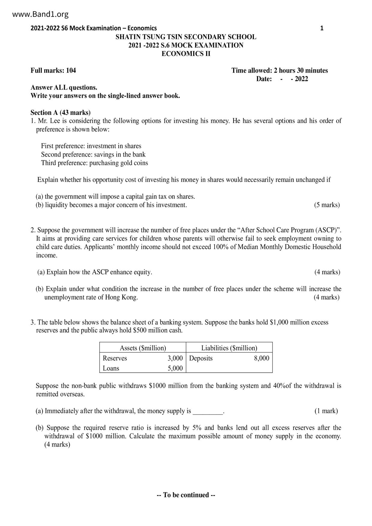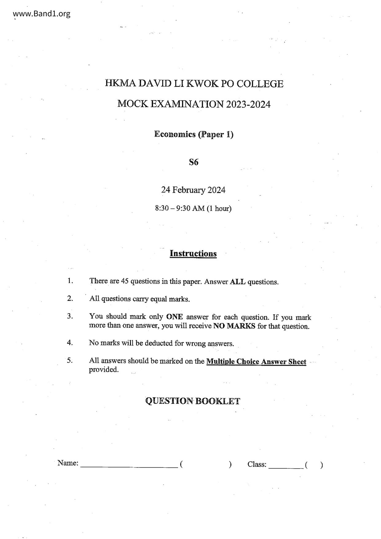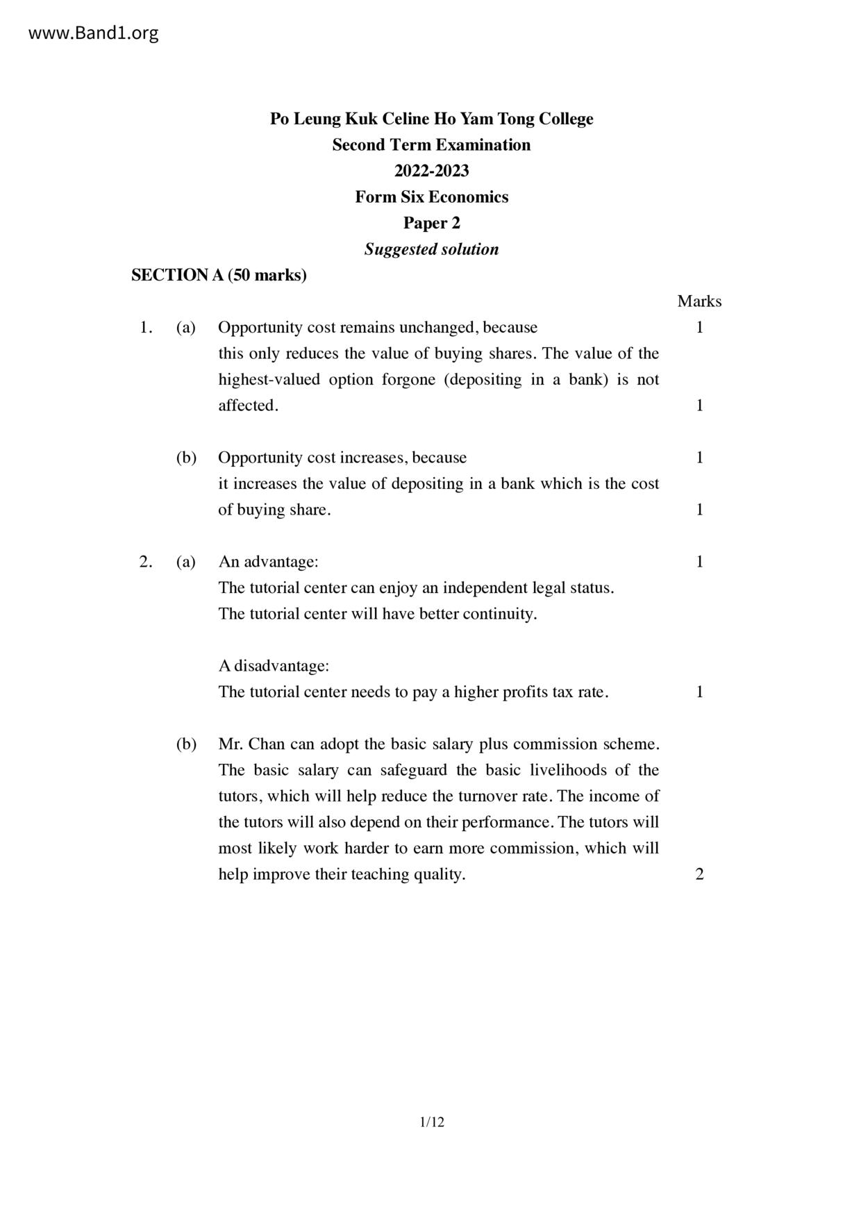 中六 經濟 可立中學(嗇色園主辦)