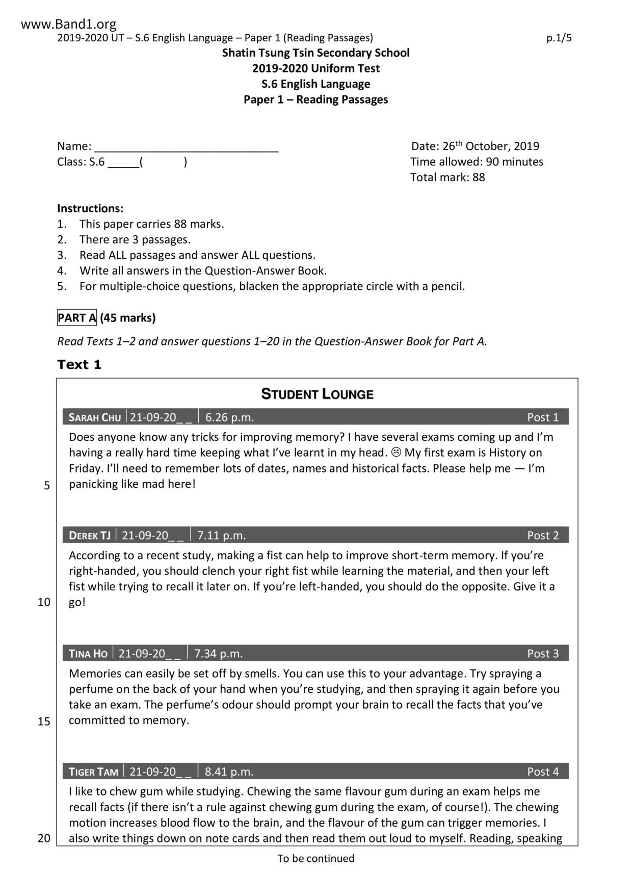 中六 英文 沙田蘇浙公學
