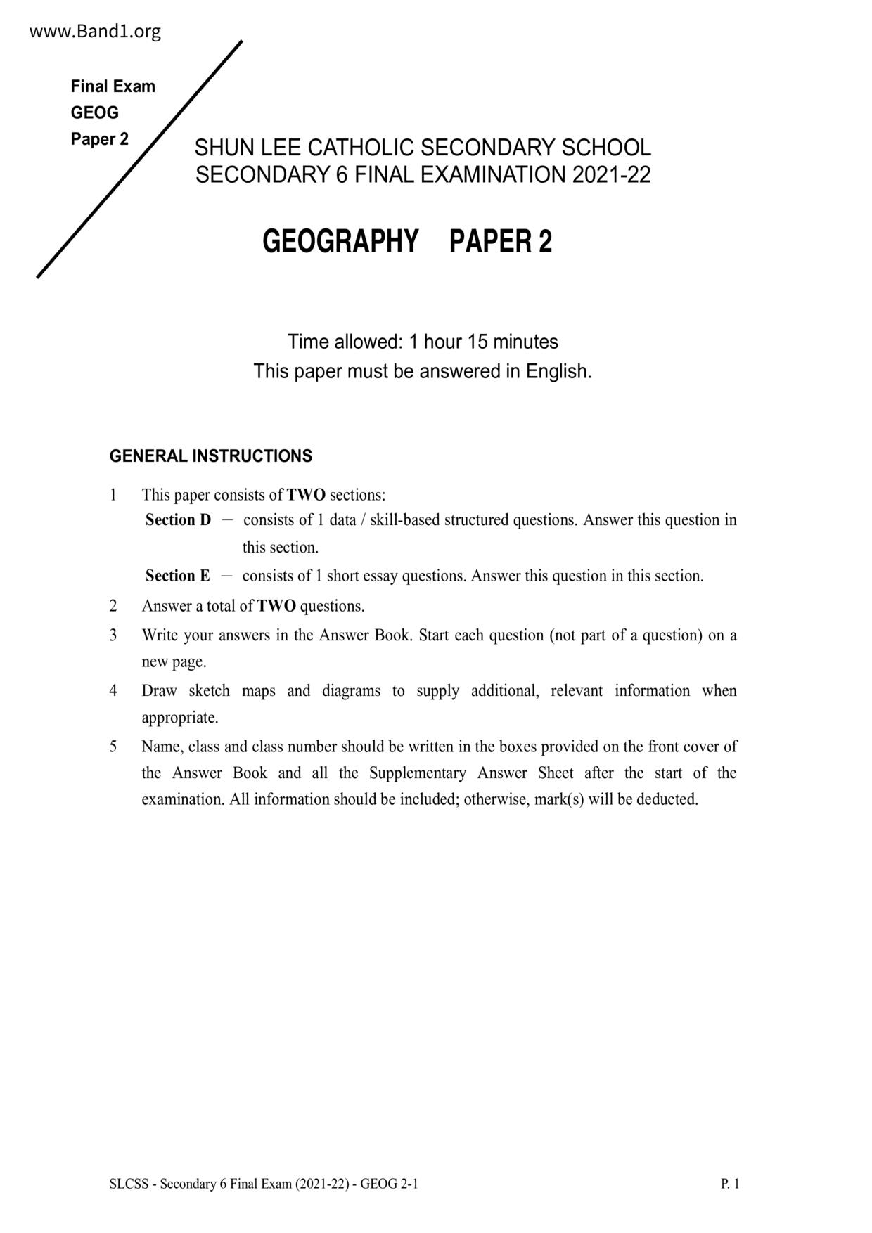 中六 數學 長沙灣天主教英文中學