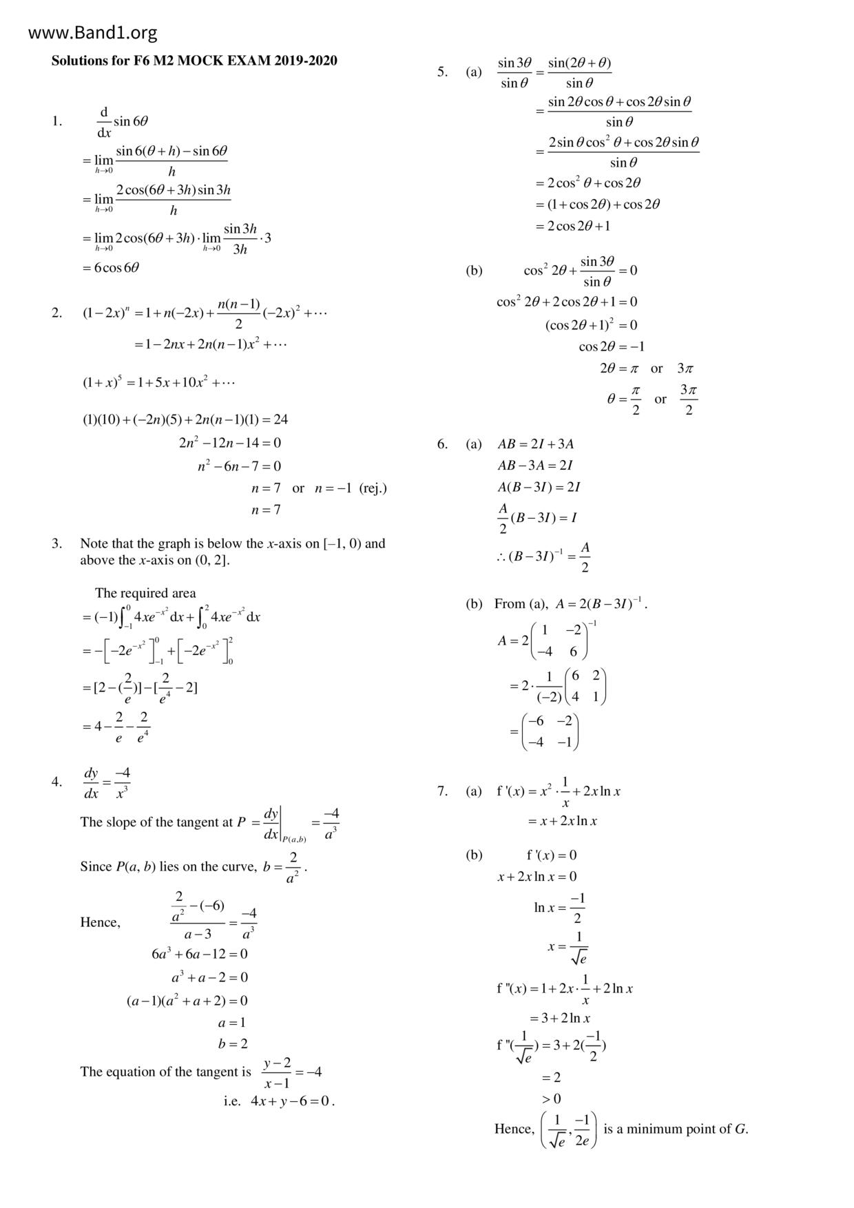 中六 數學 順德聯誼總會胡兆熾中學