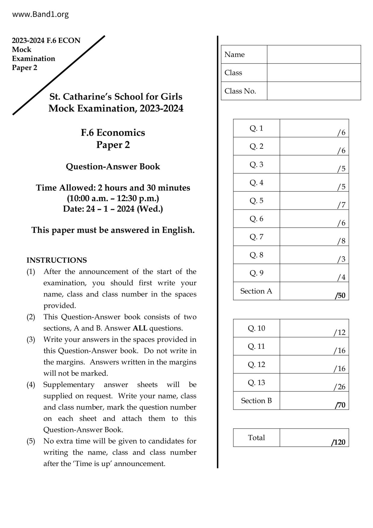 中六 經濟 嘉諾撒聖方濟各書院