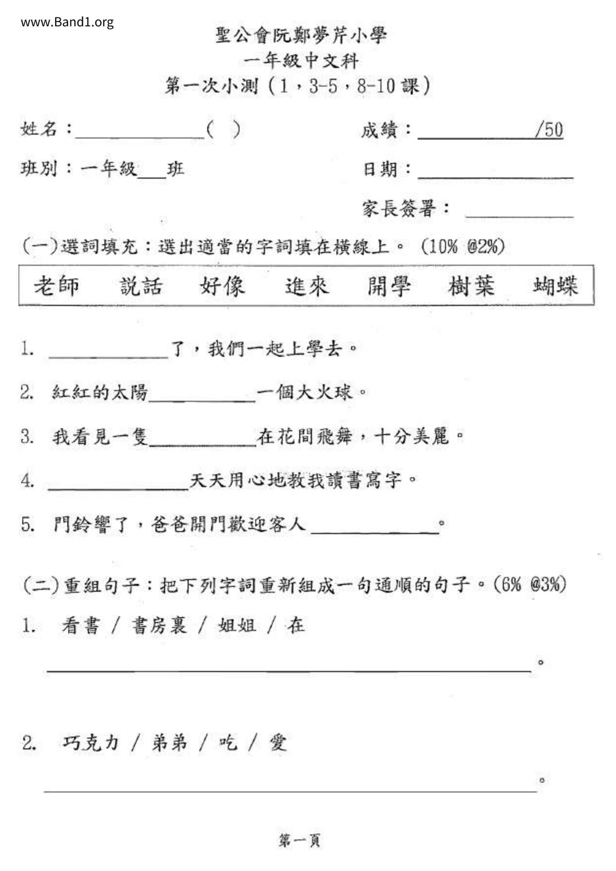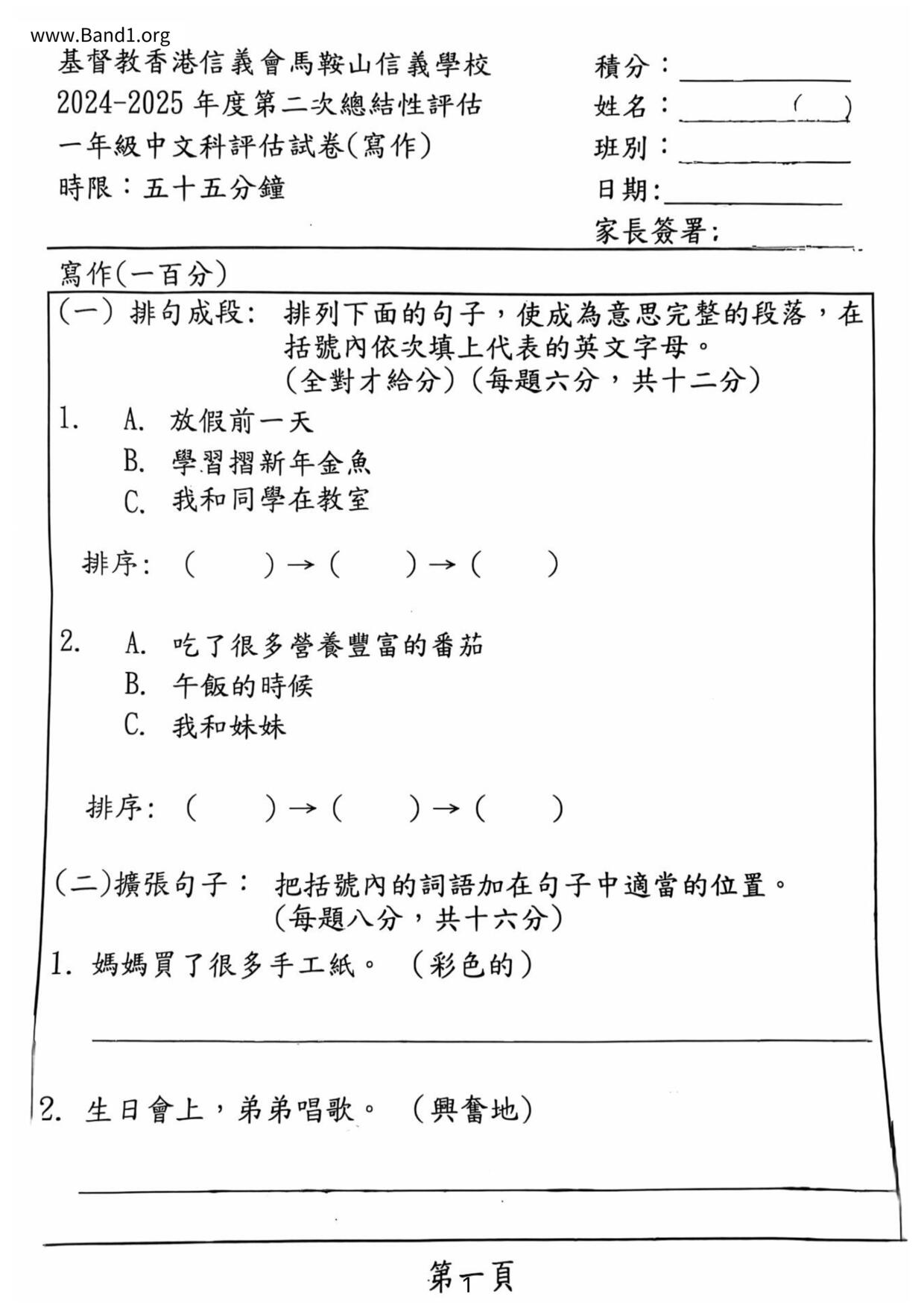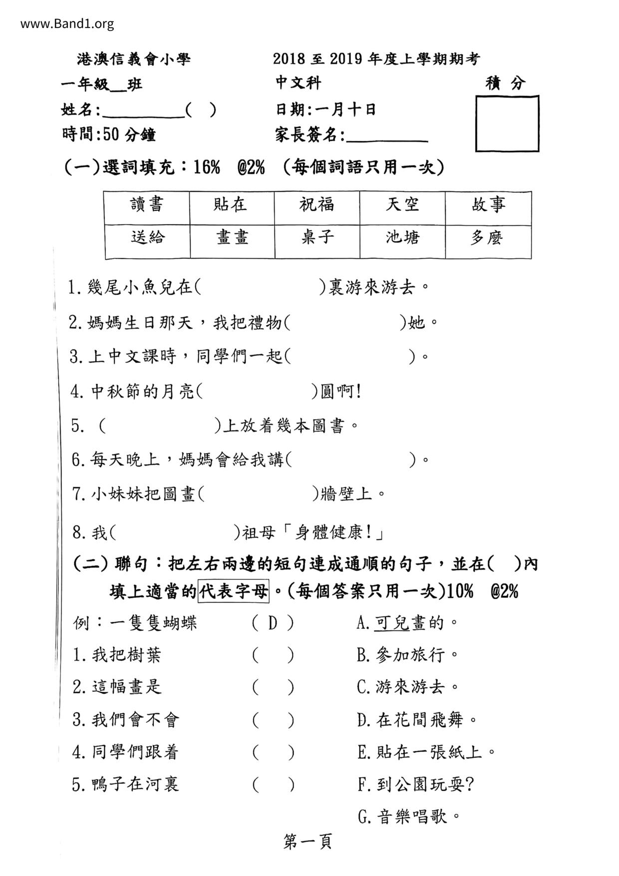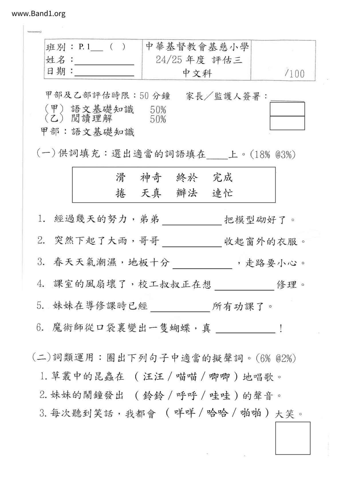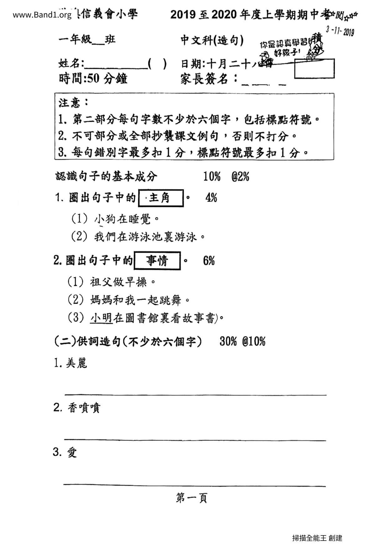 小一 中文 基督教香港信義會馬鞍山信義學校