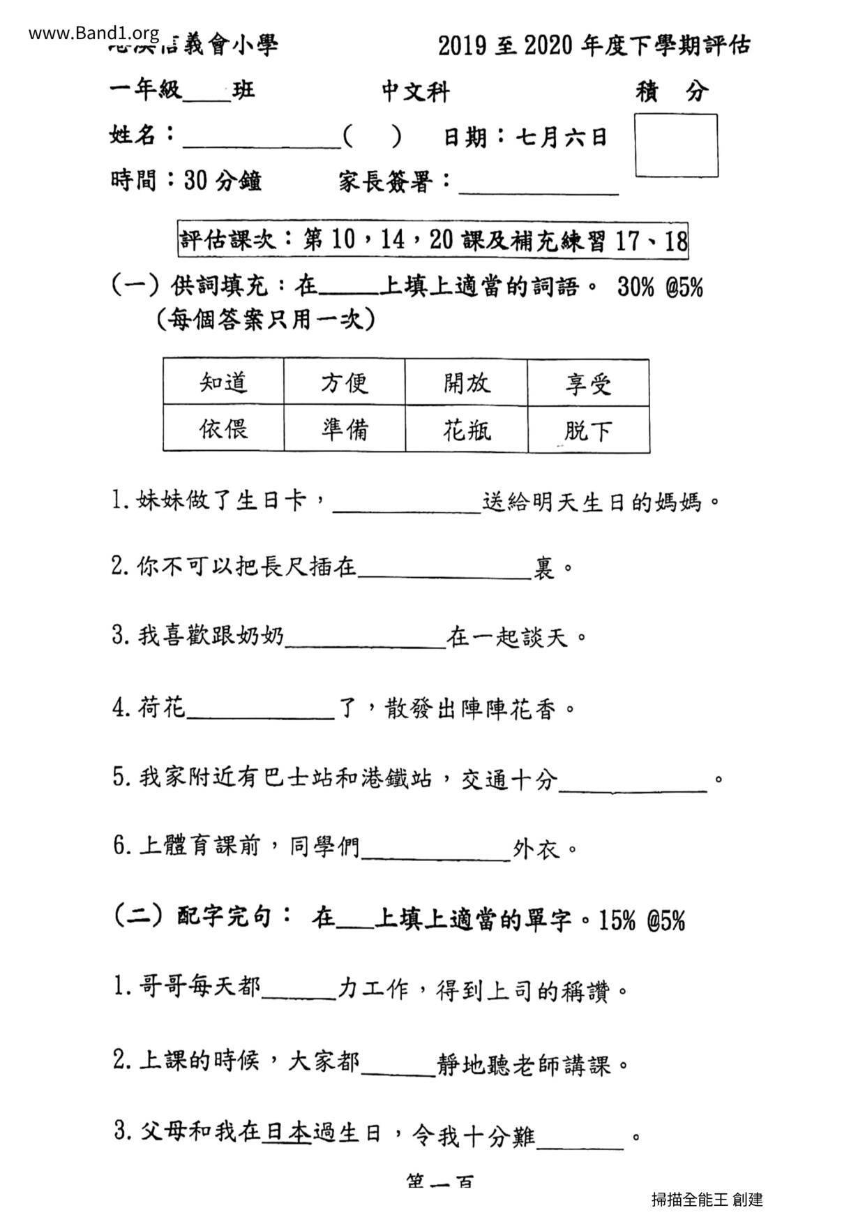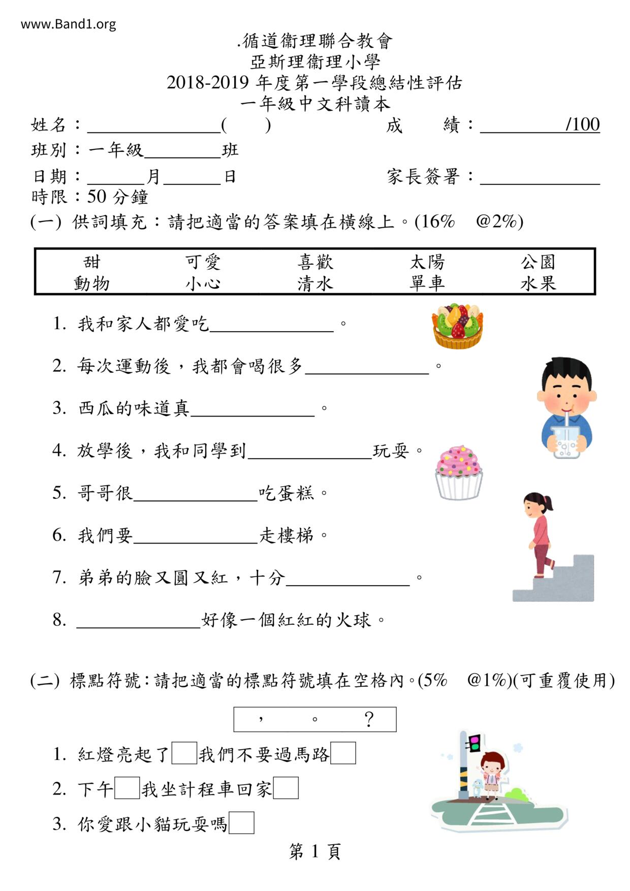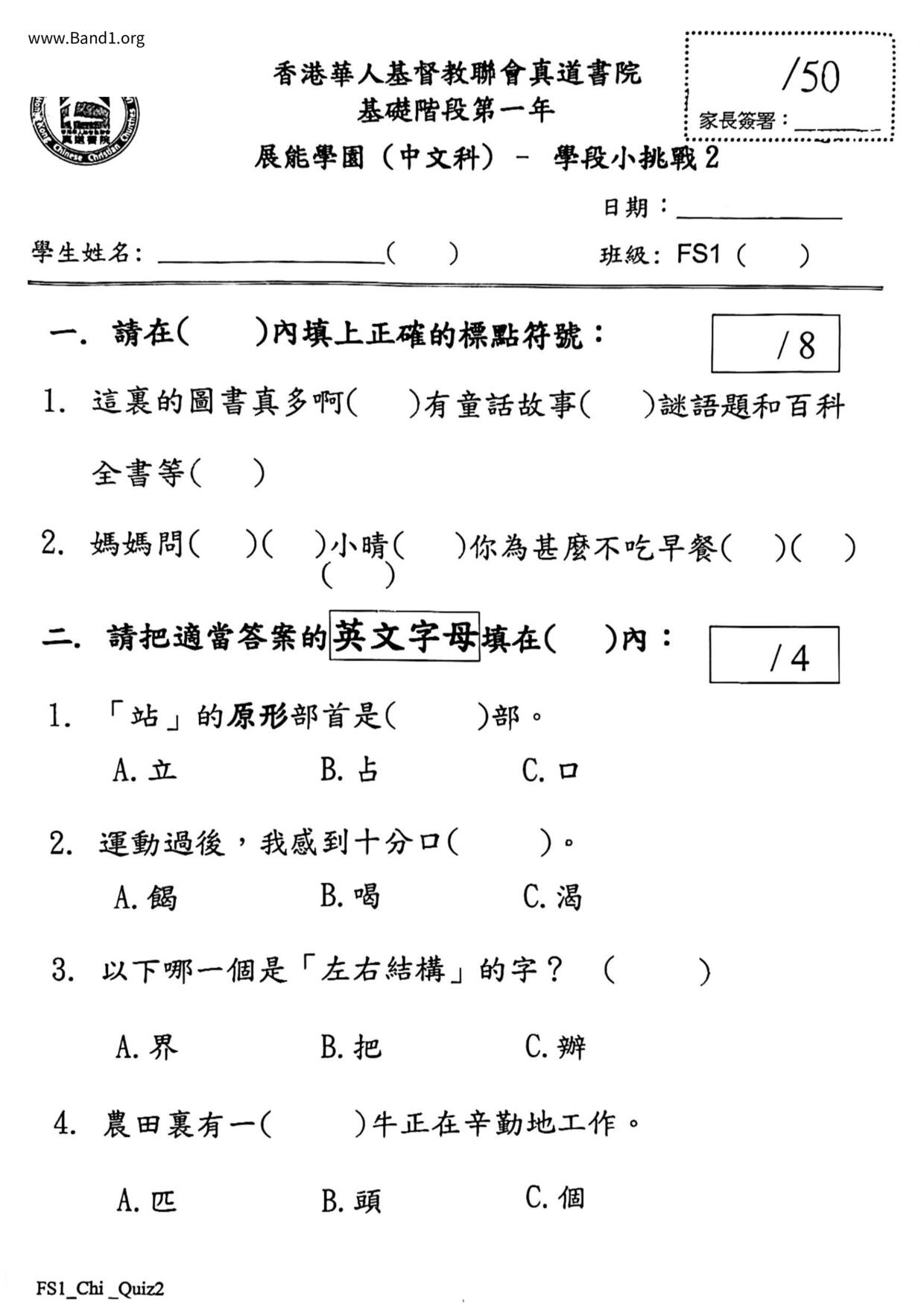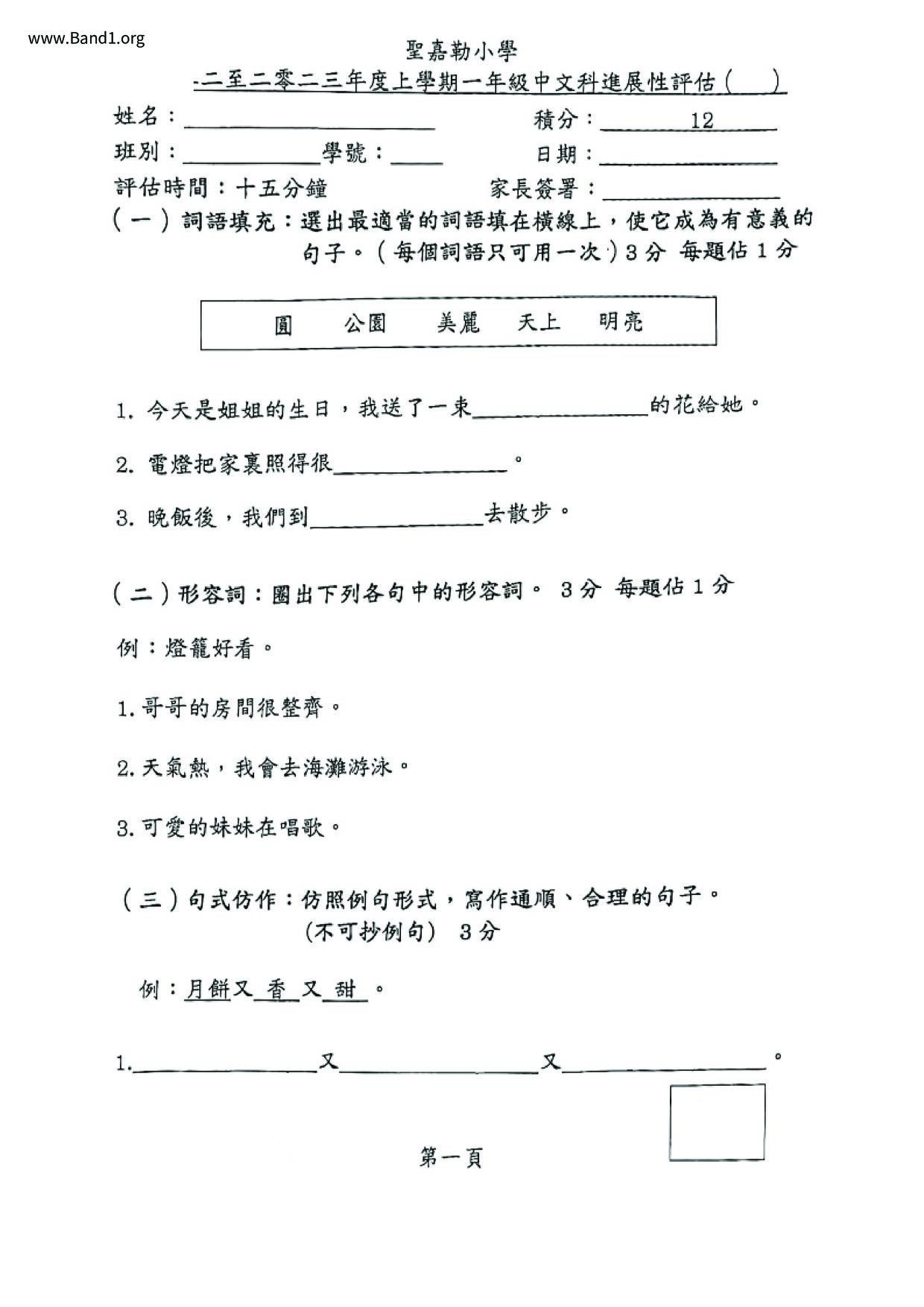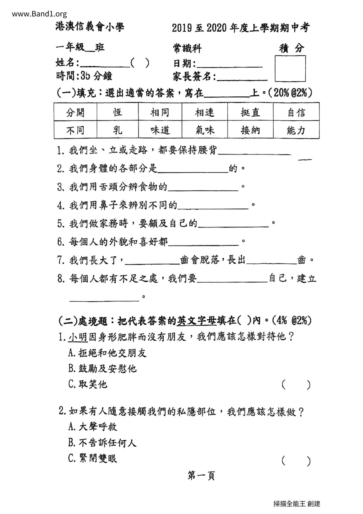 小一 中文 基督教香港信義會馬鞍山信義學校