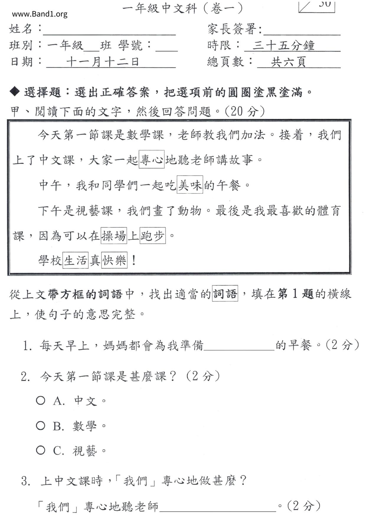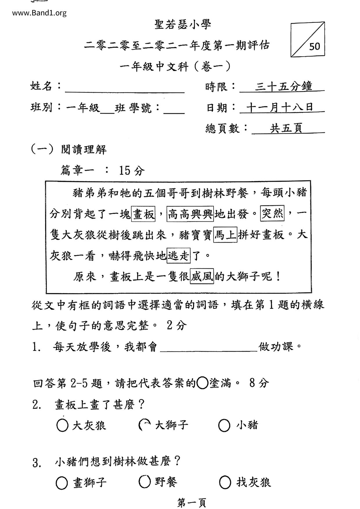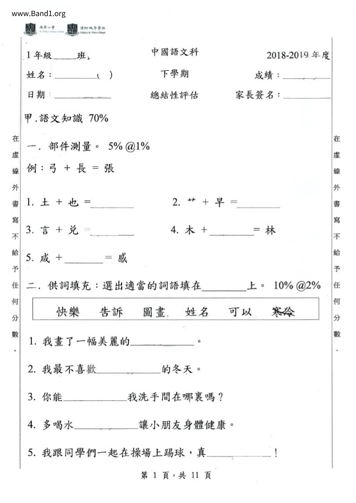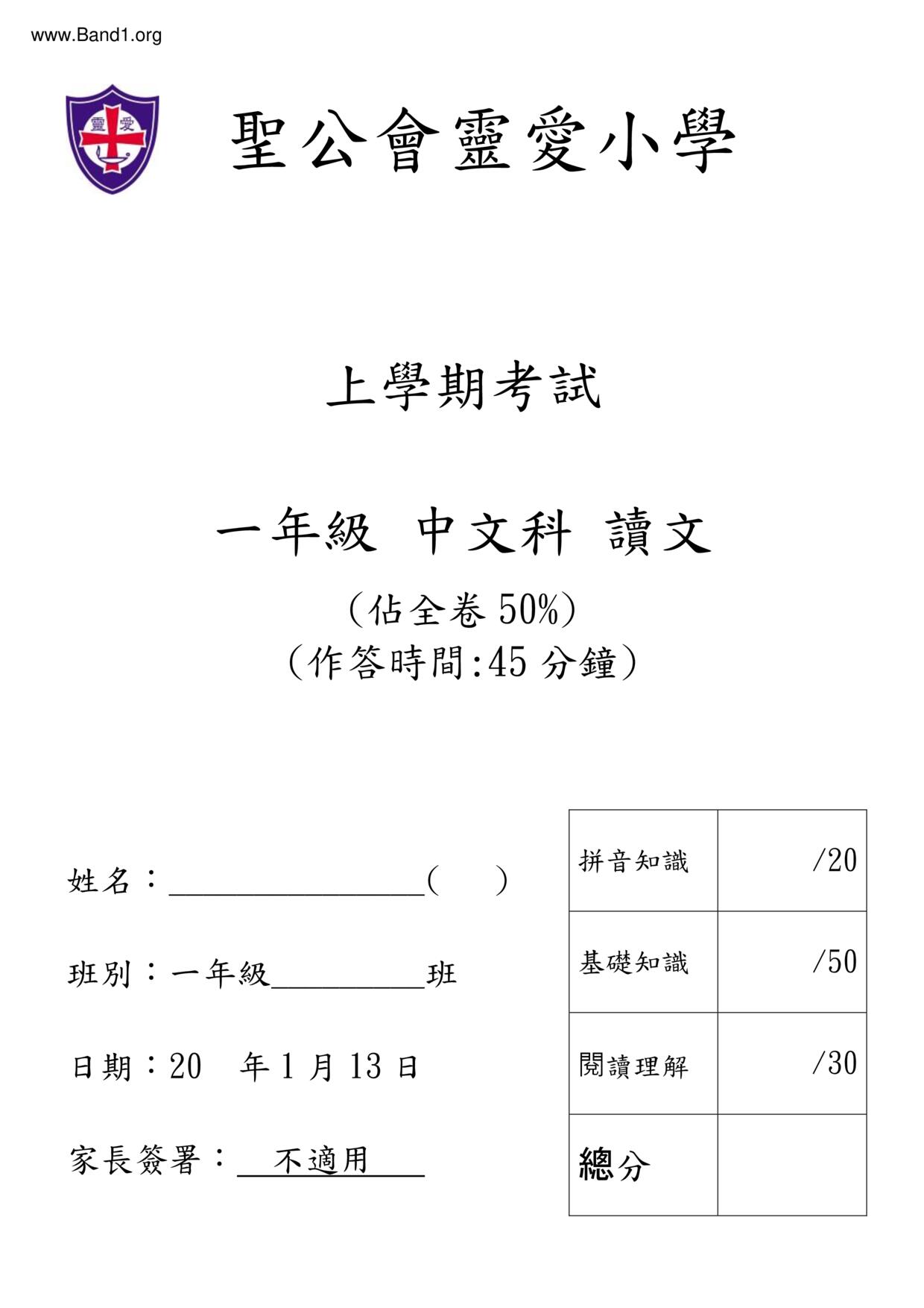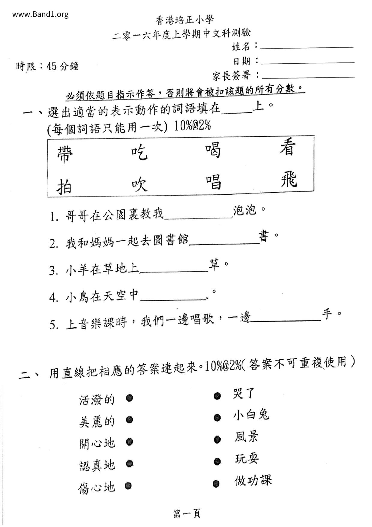 小一 中文 基督教香港信義會馬鞍山信義學校