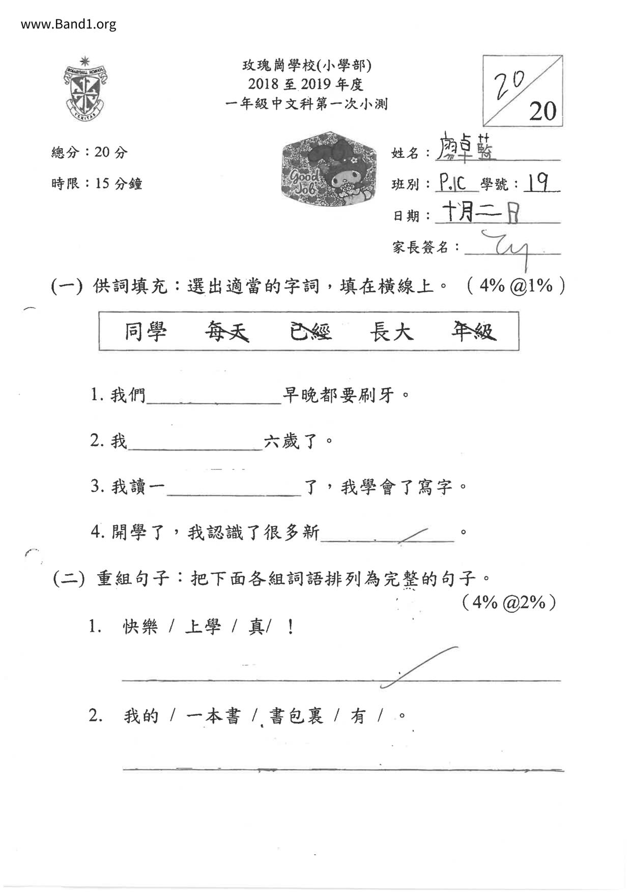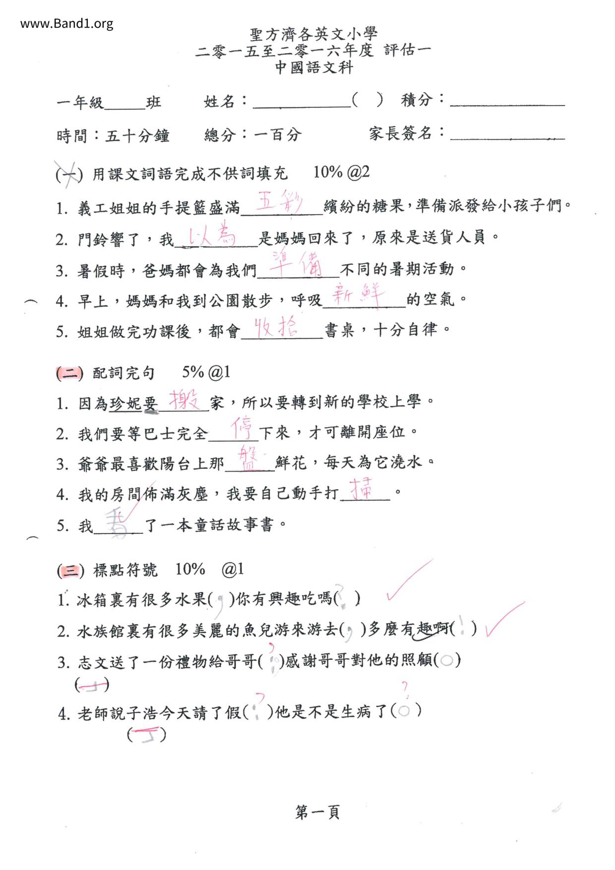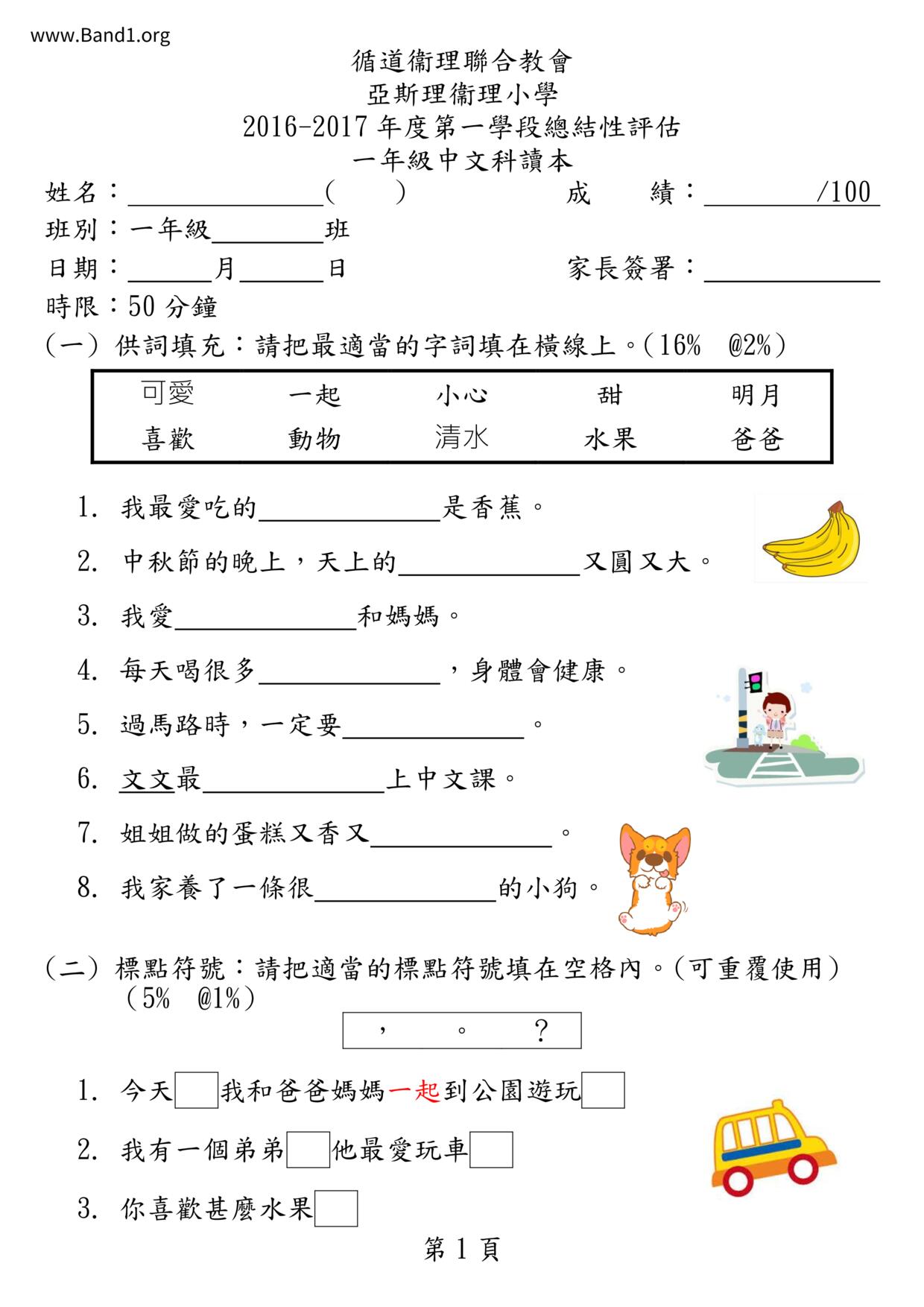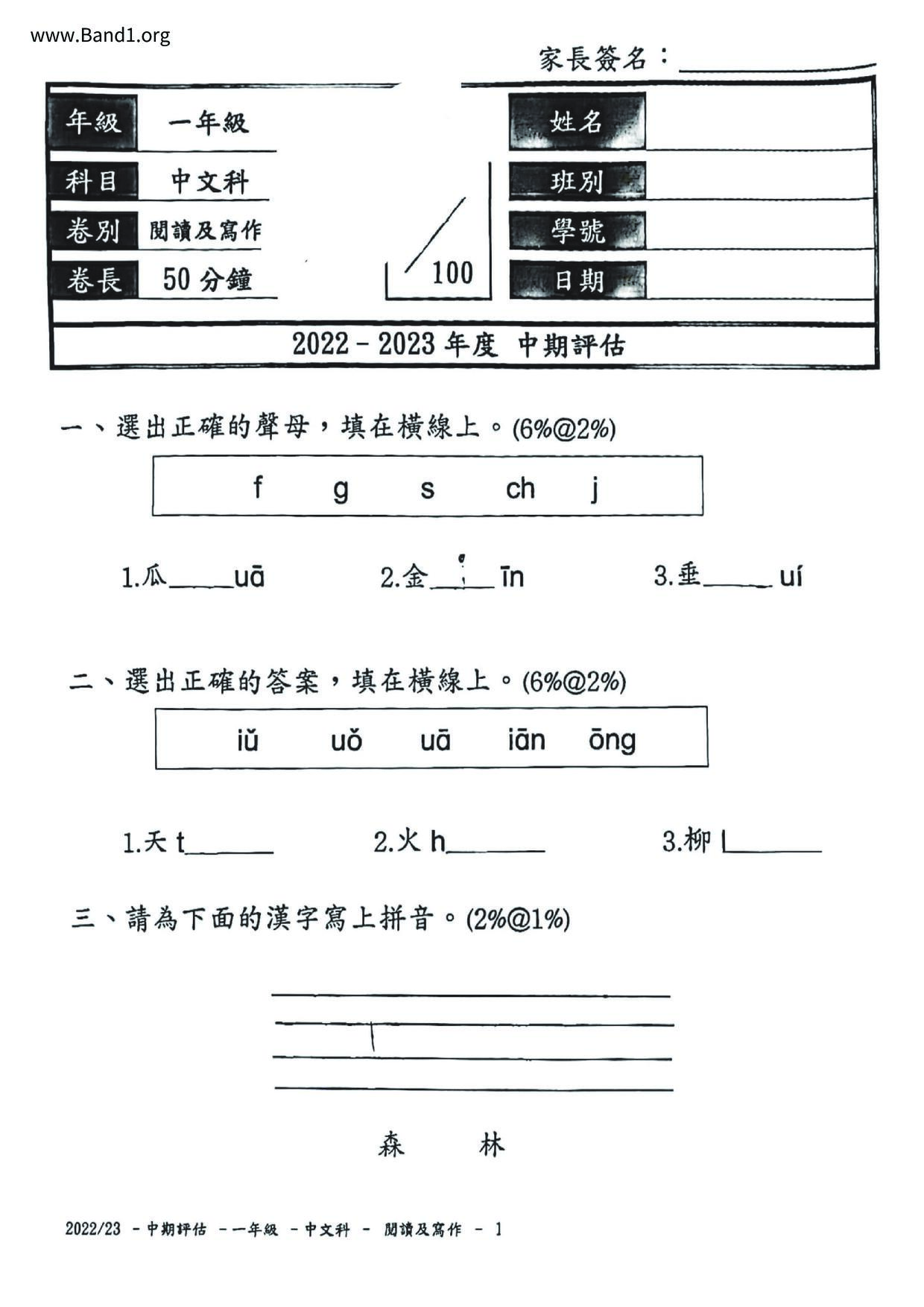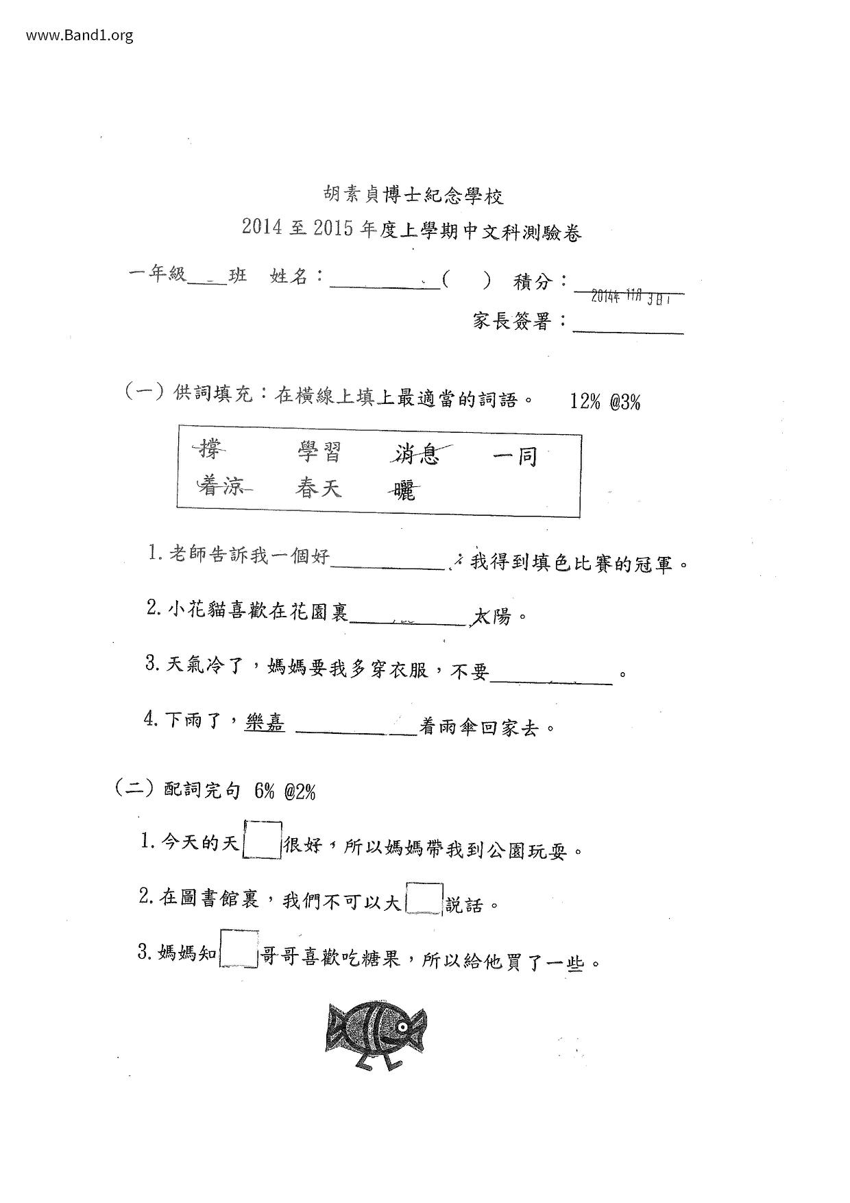 小一 中文 基督教香港信義會馬鞍山信義學校