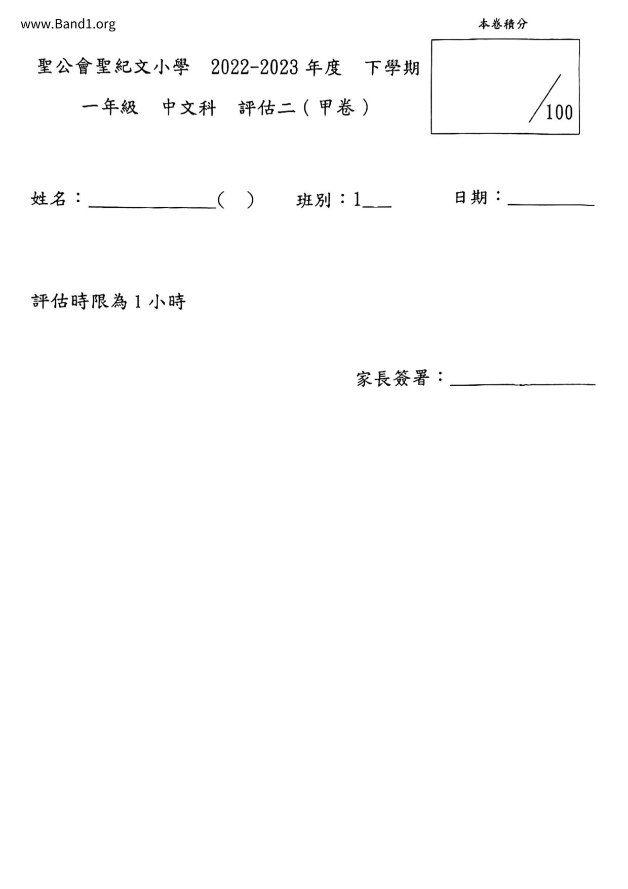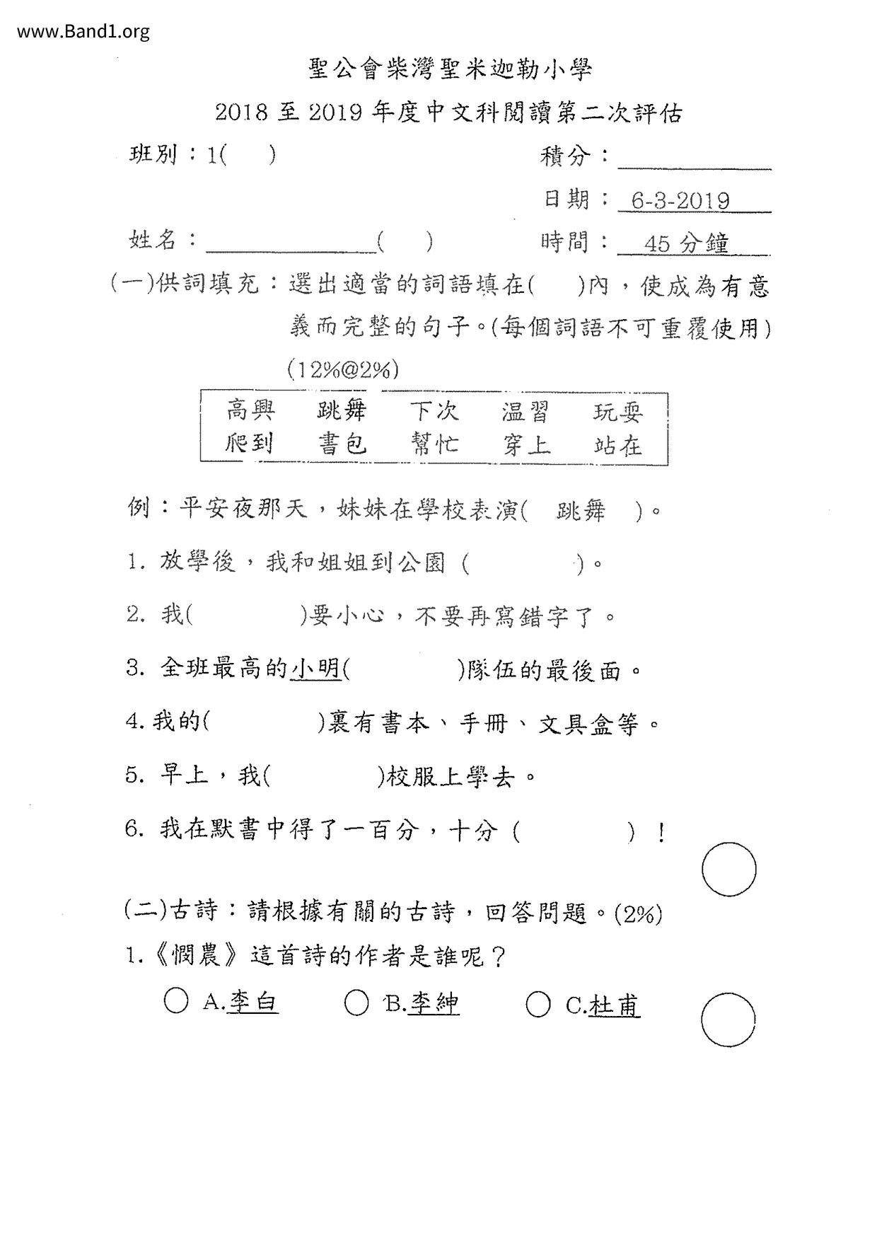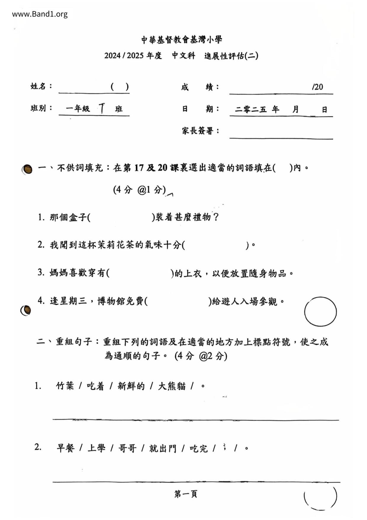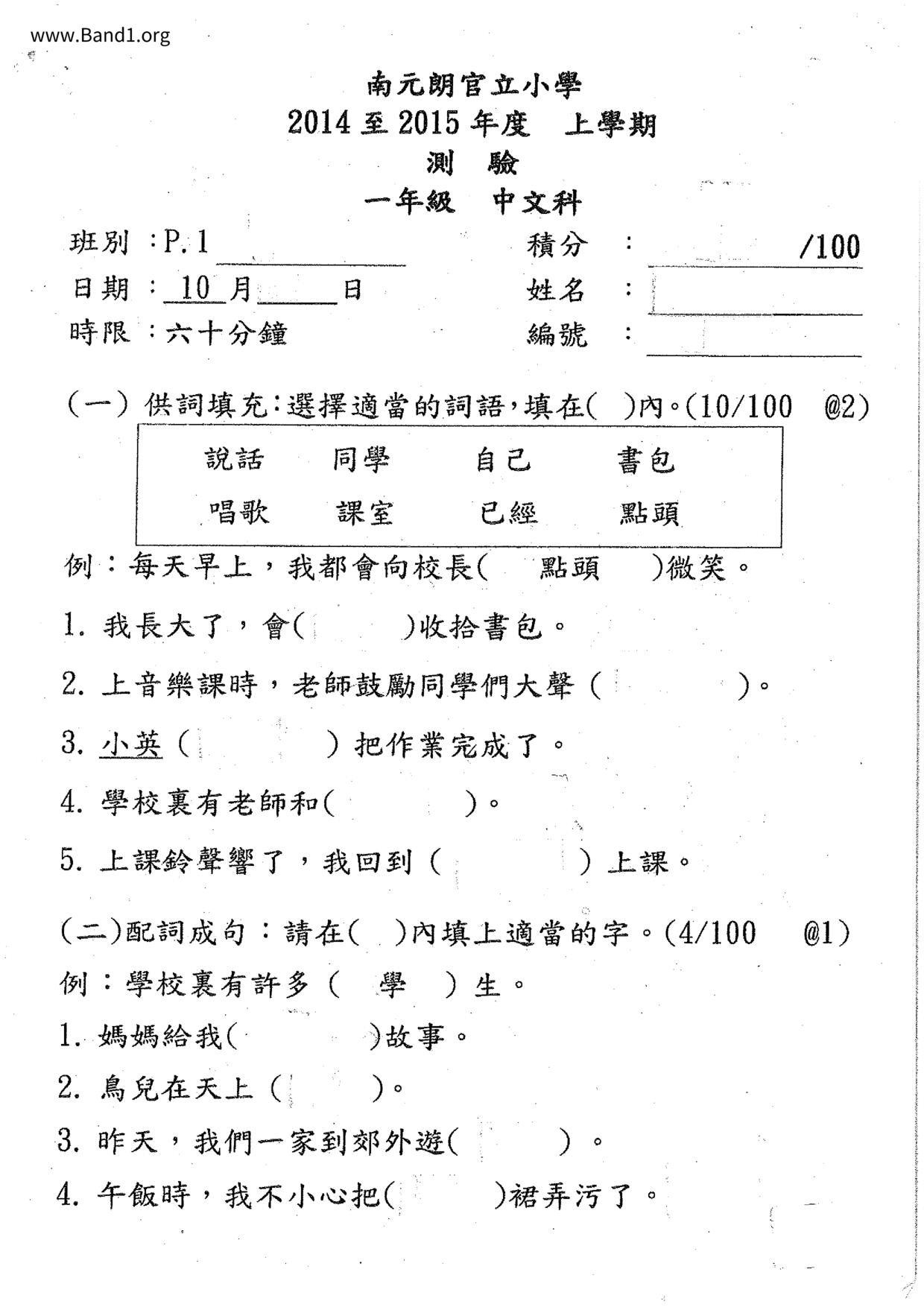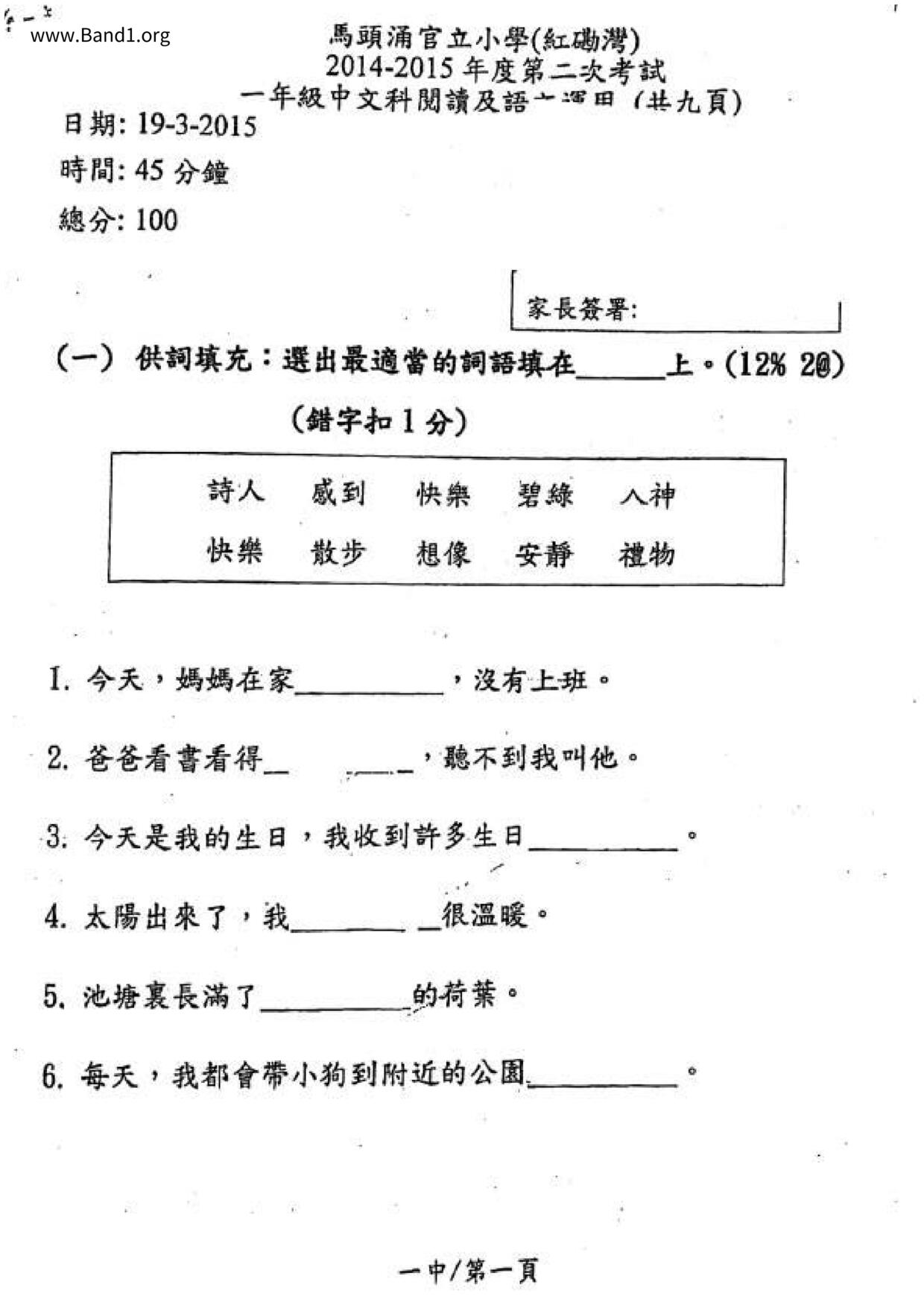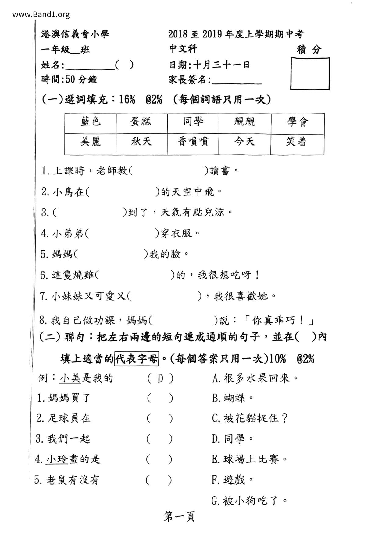 小一 中文 基督教香港信義會馬鞍山信義學校