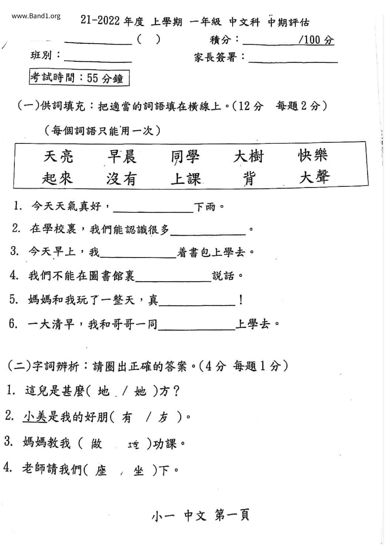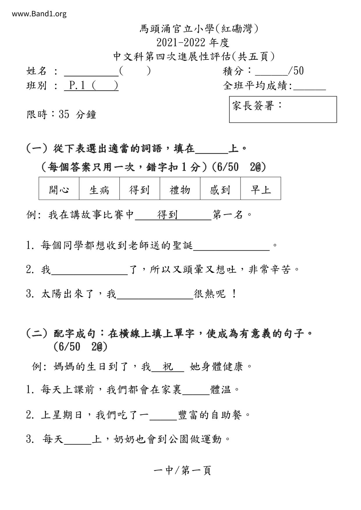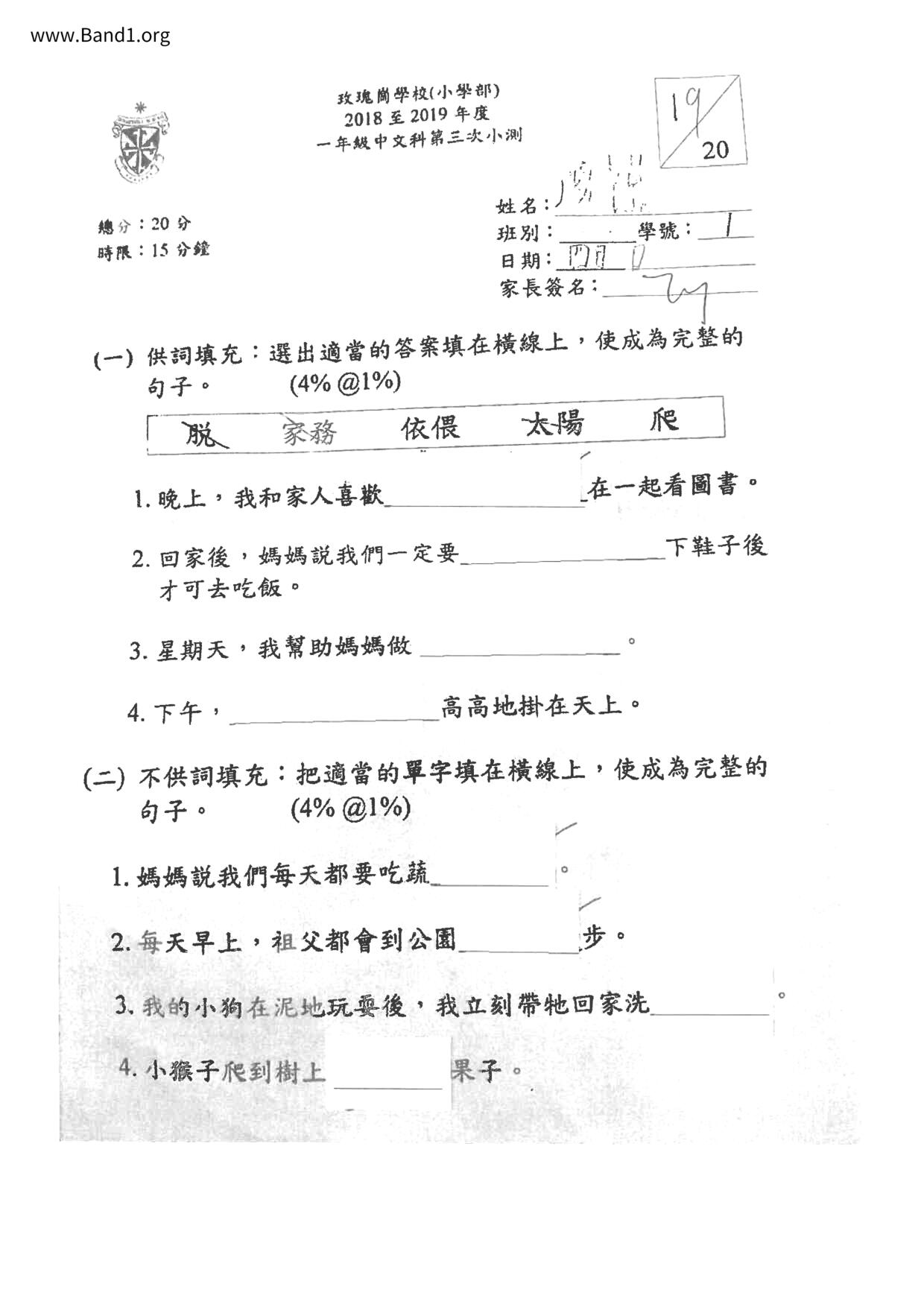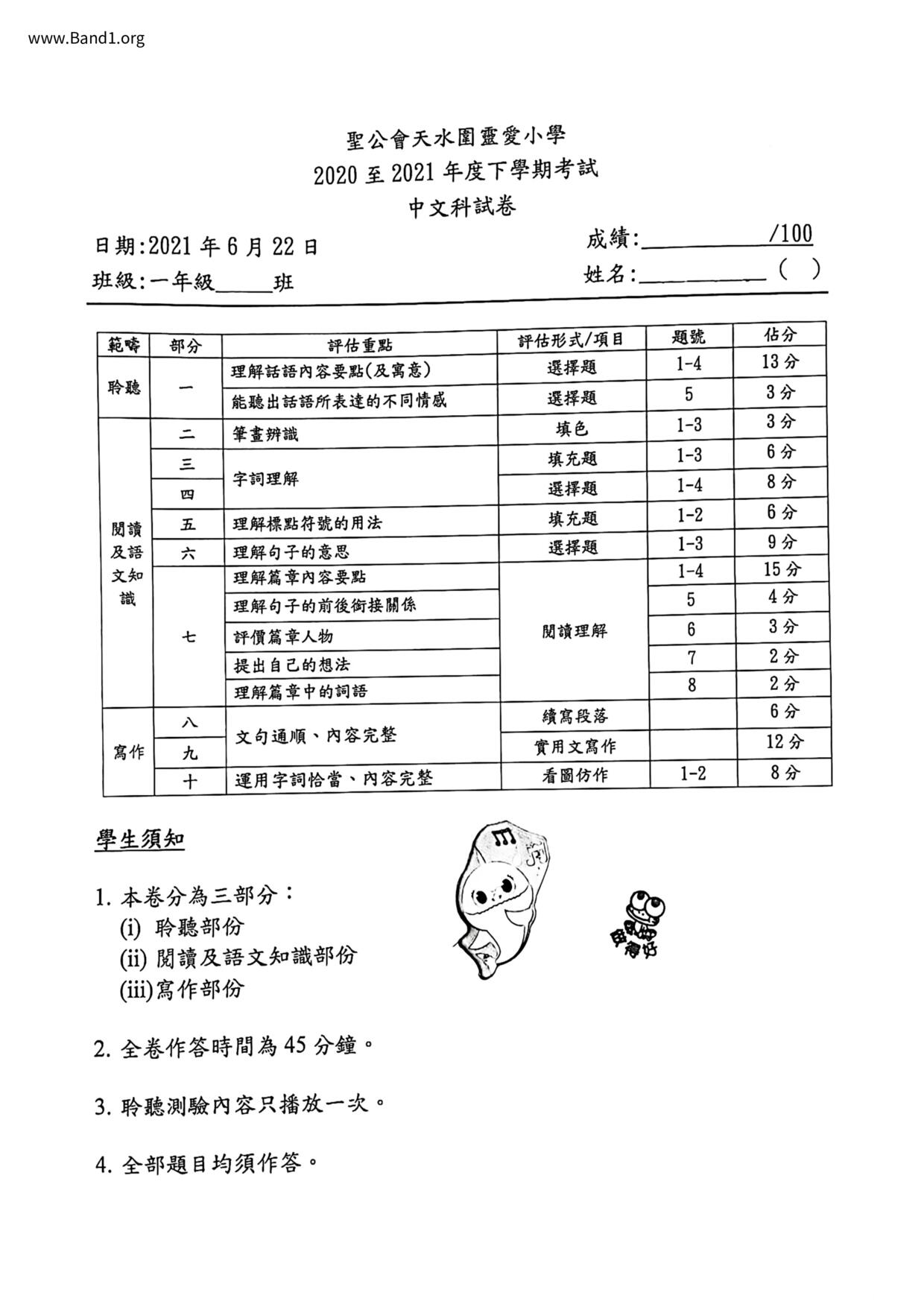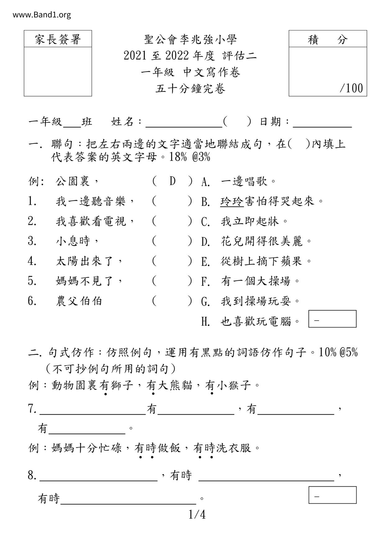 小一 中文 基督教香港信義會馬鞍山信義學校