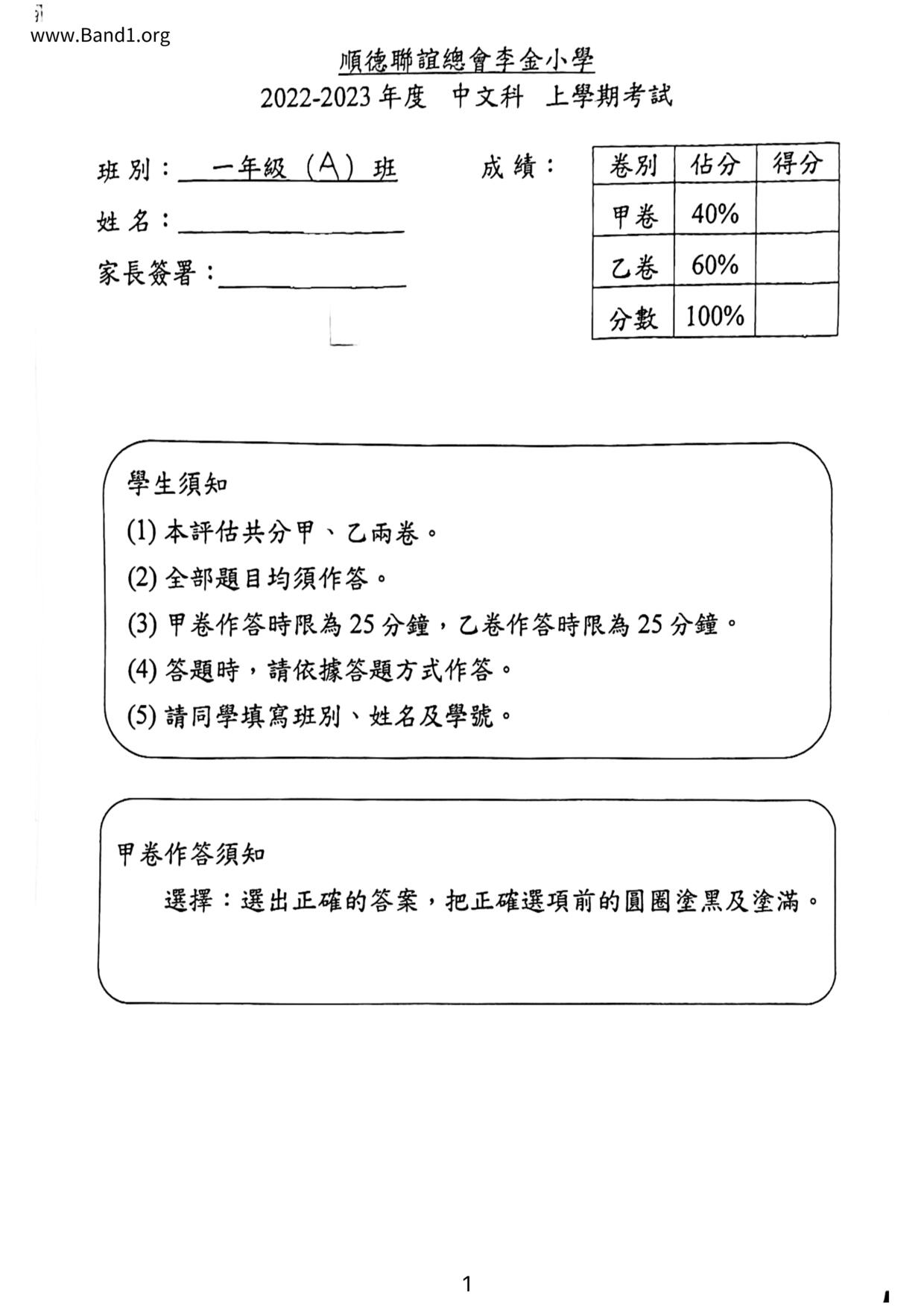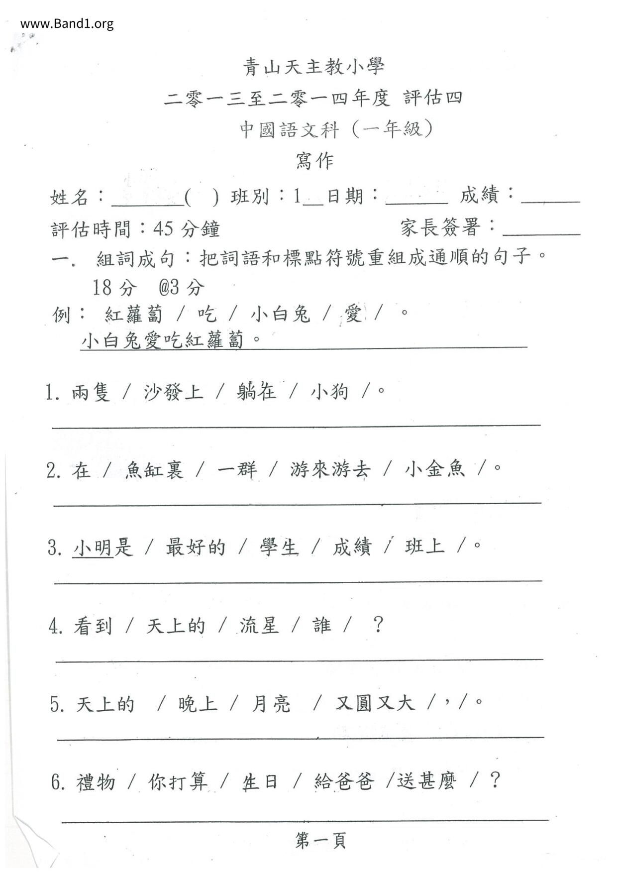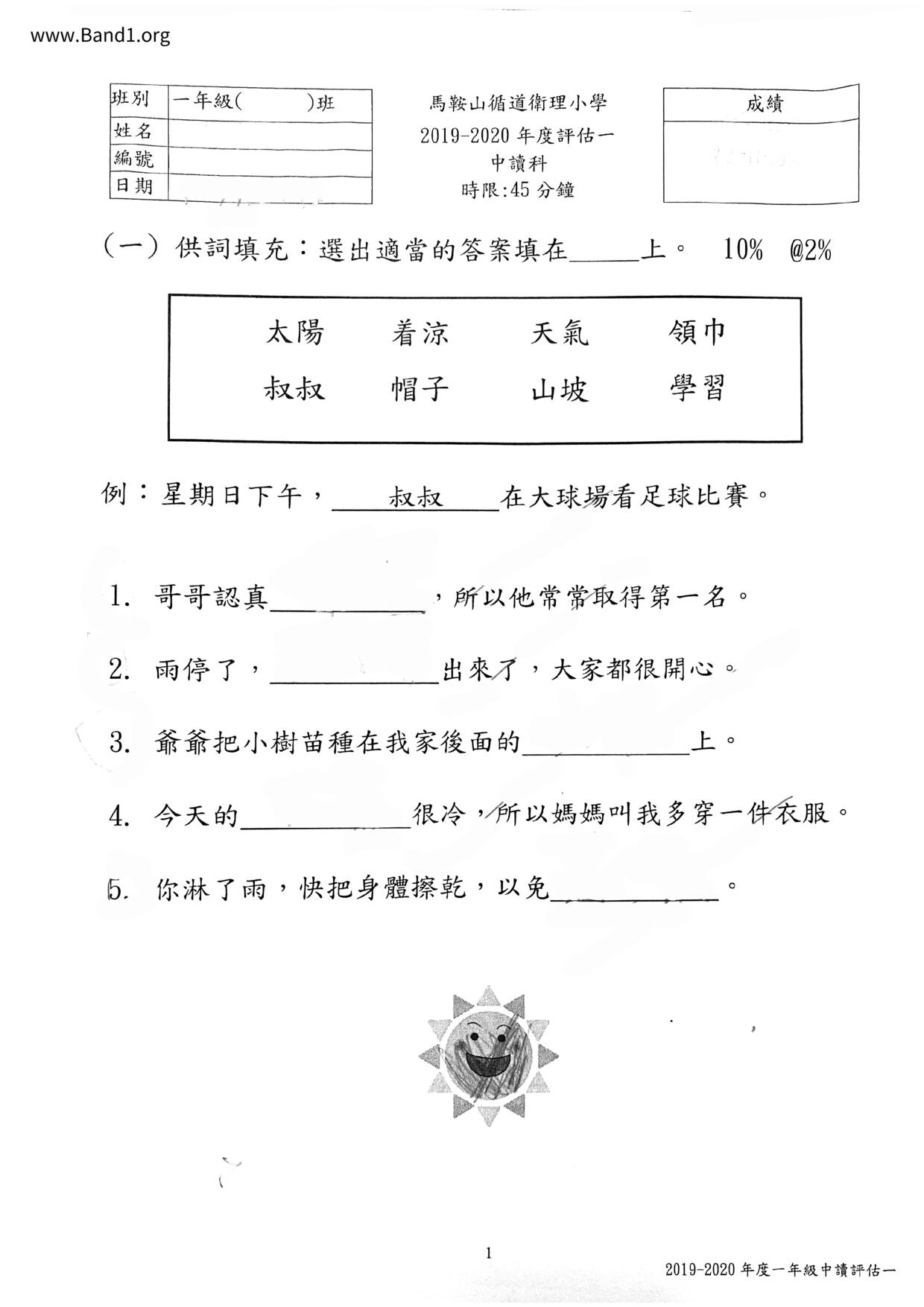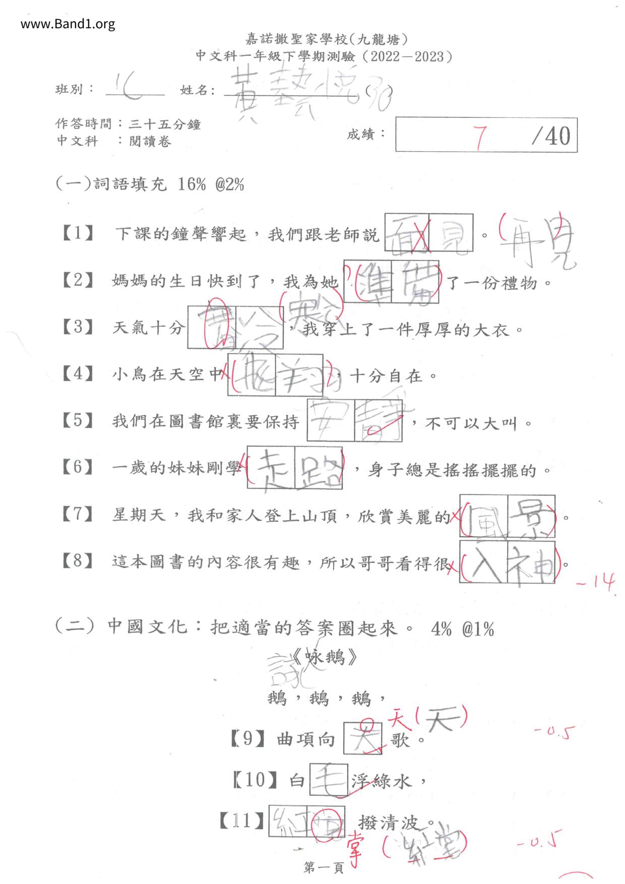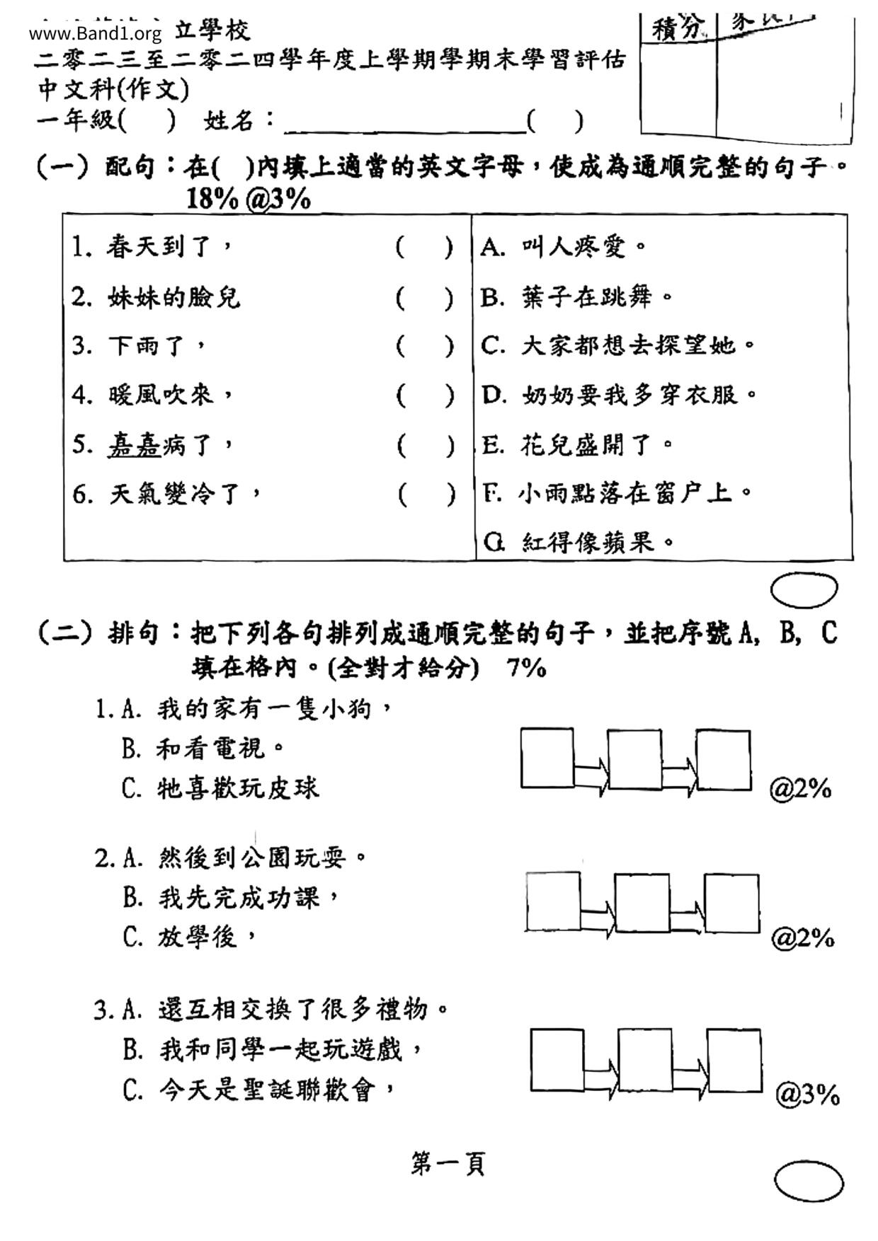 小一 中文 基督教香港信義會馬鞍山信義學校