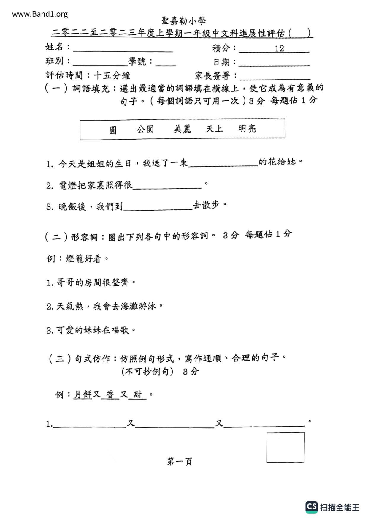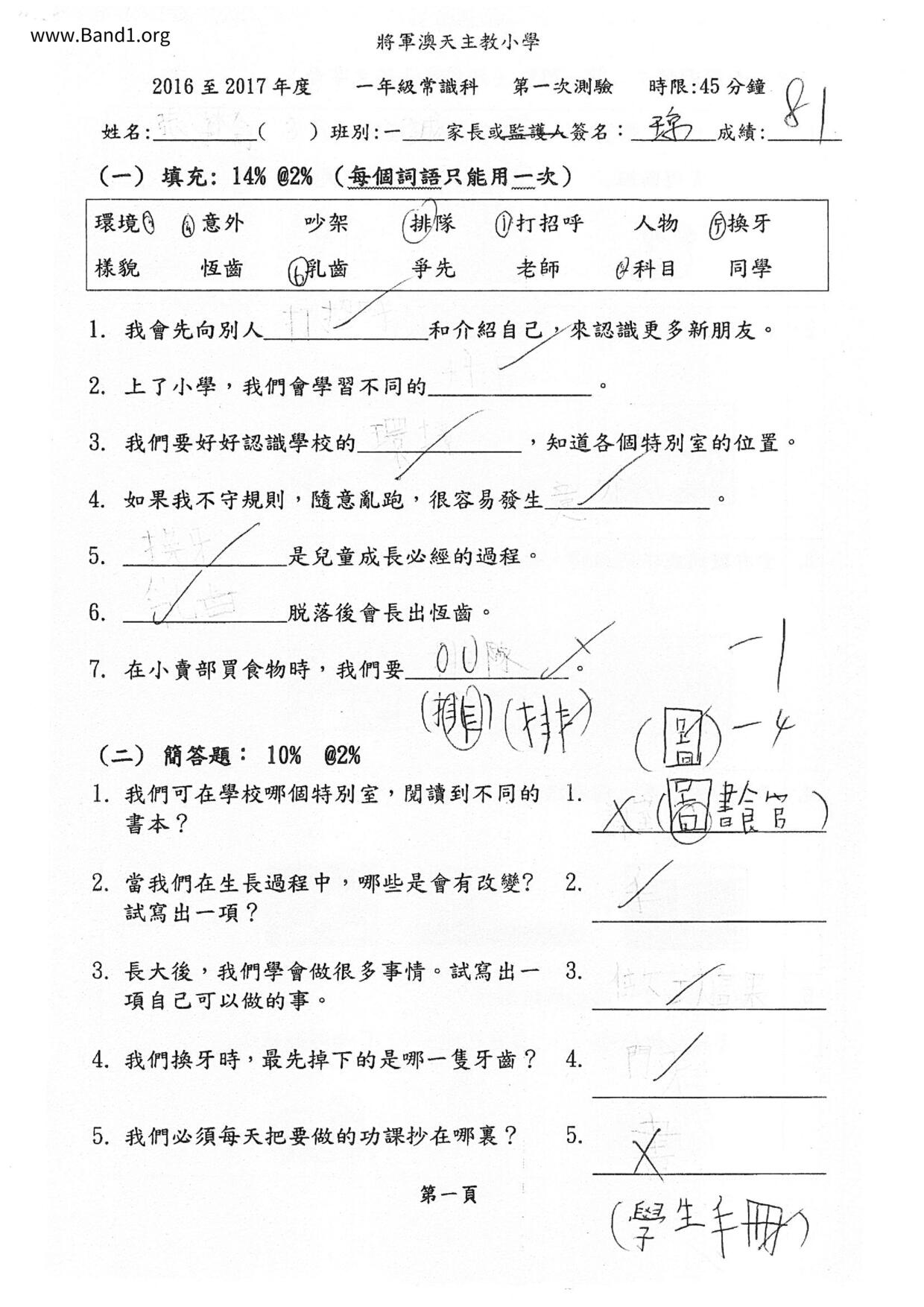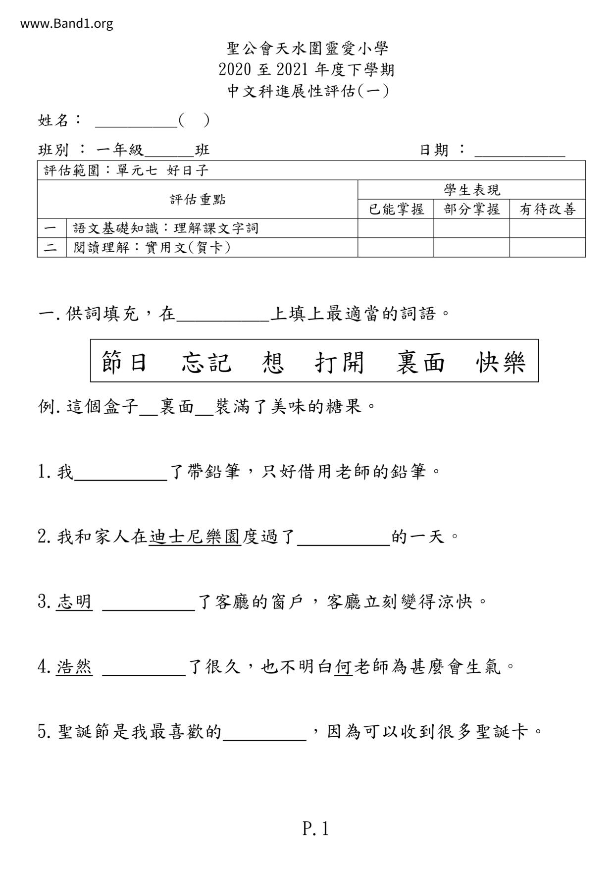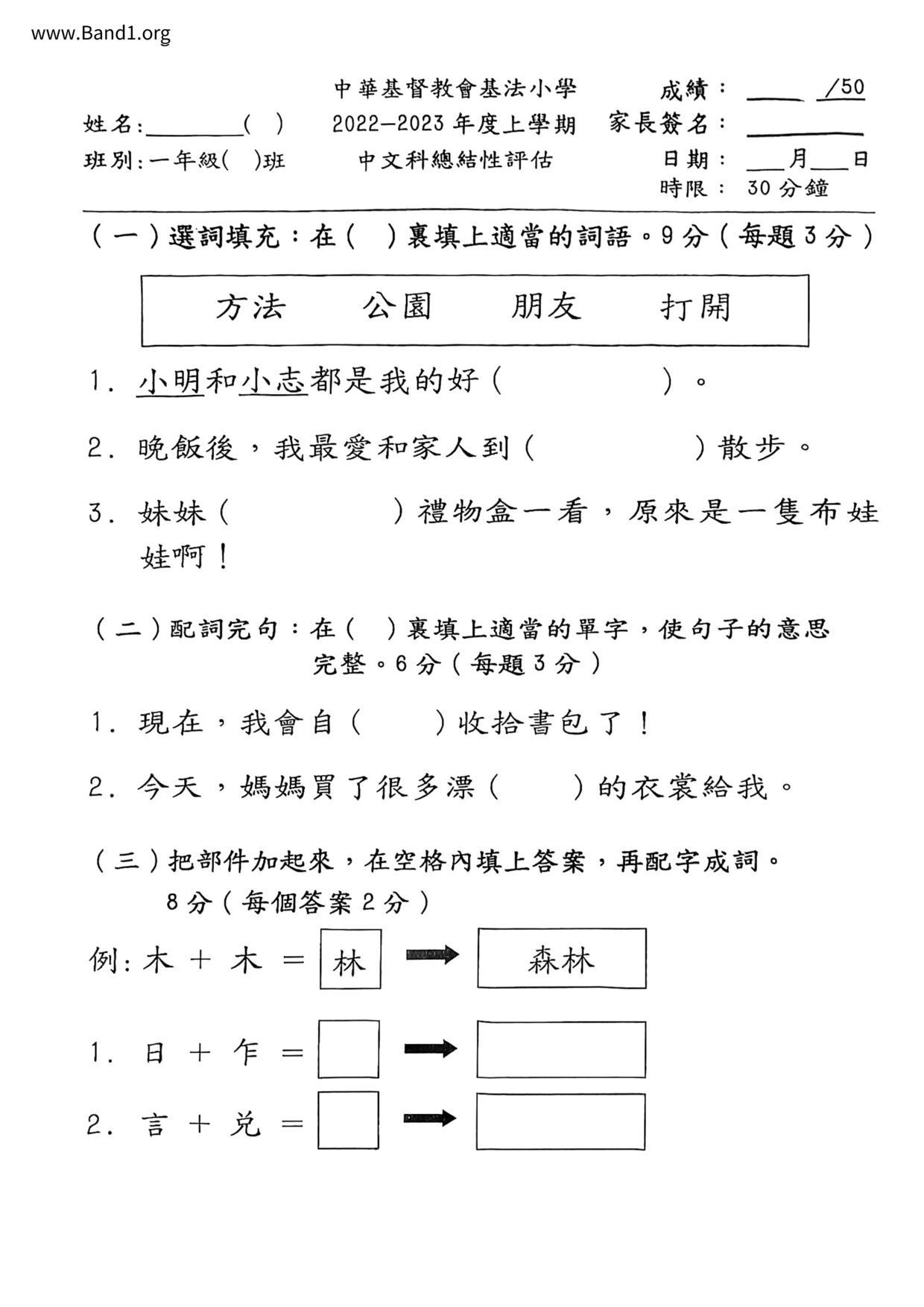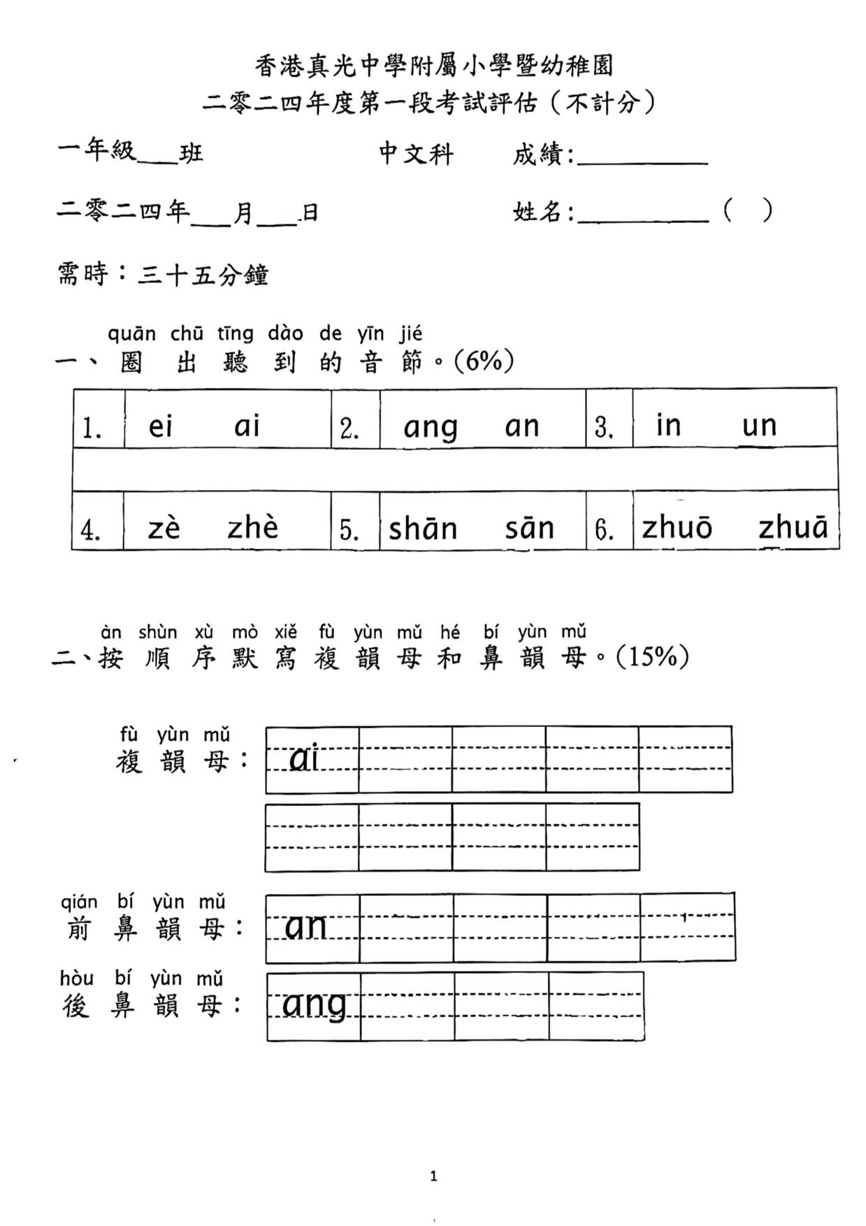 小一 中文 基督教香港信義會馬鞍山信義學校