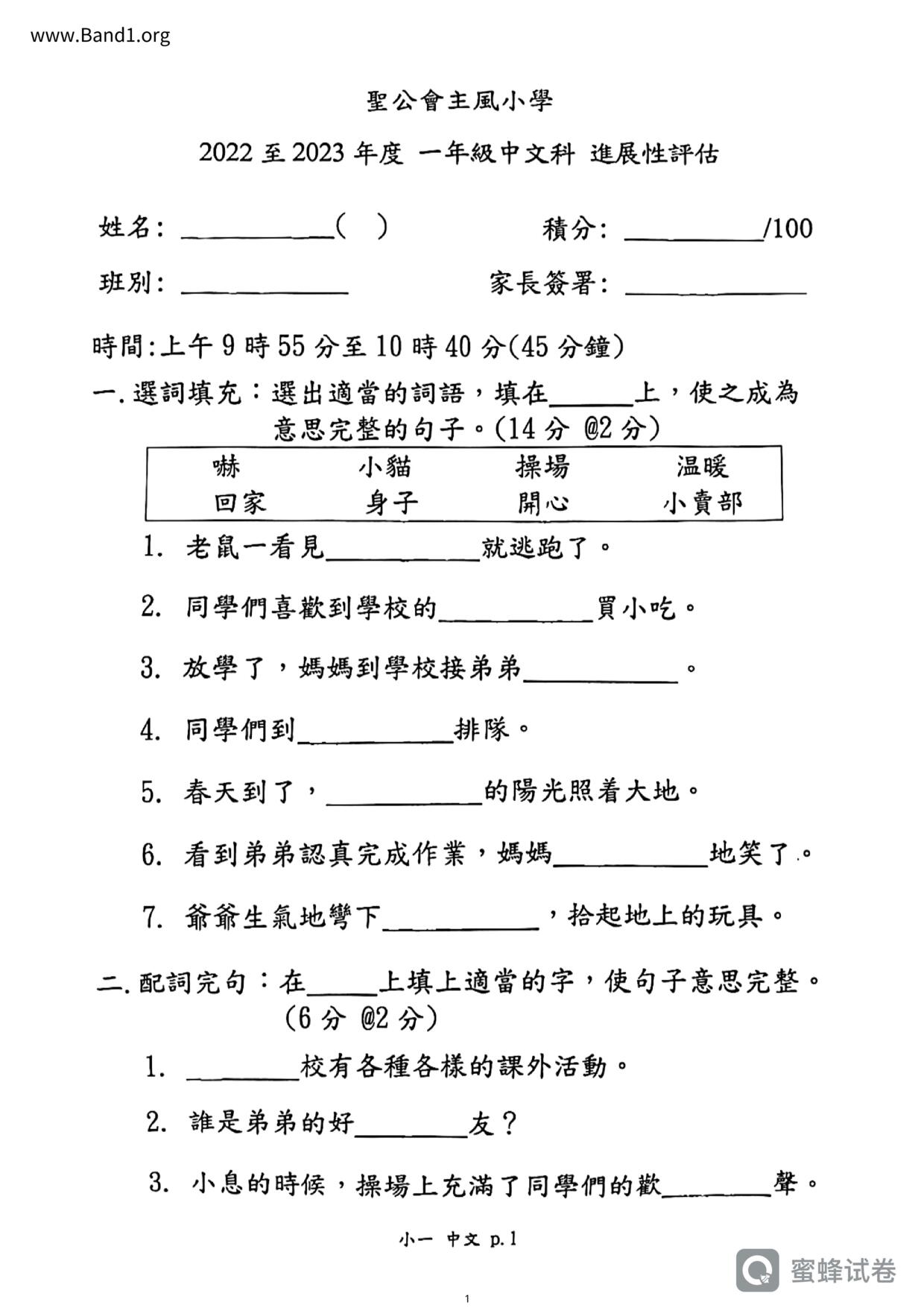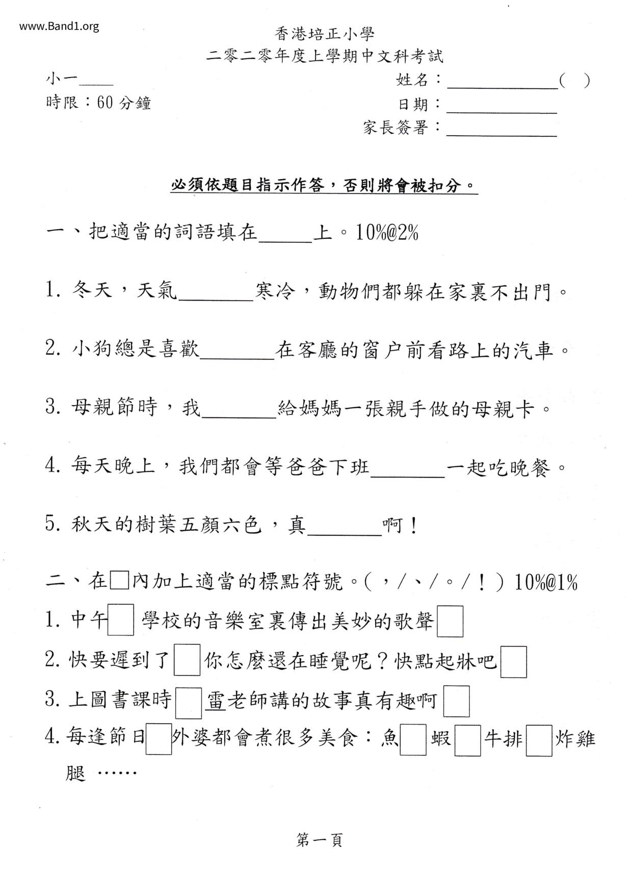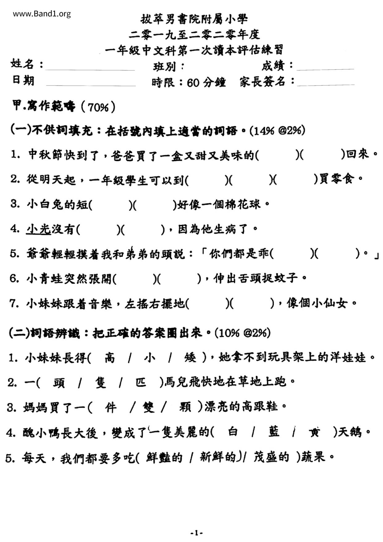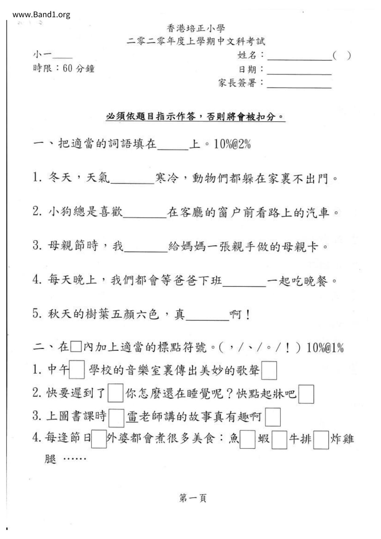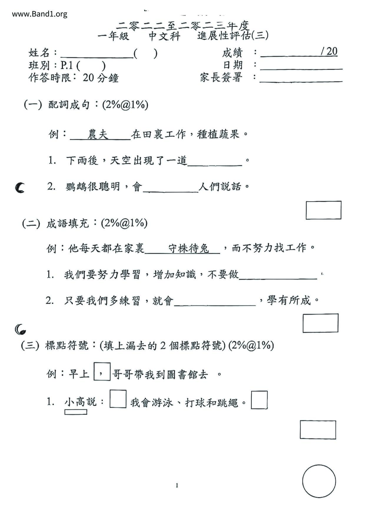 小一 中文 基督教香港信義會馬鞍山信義學校