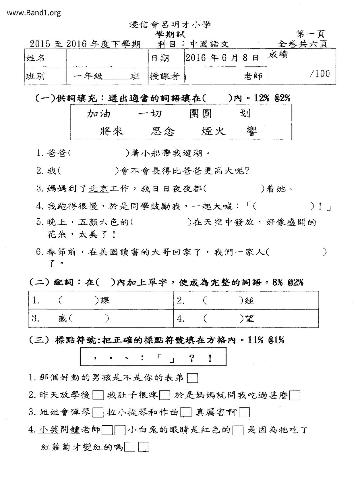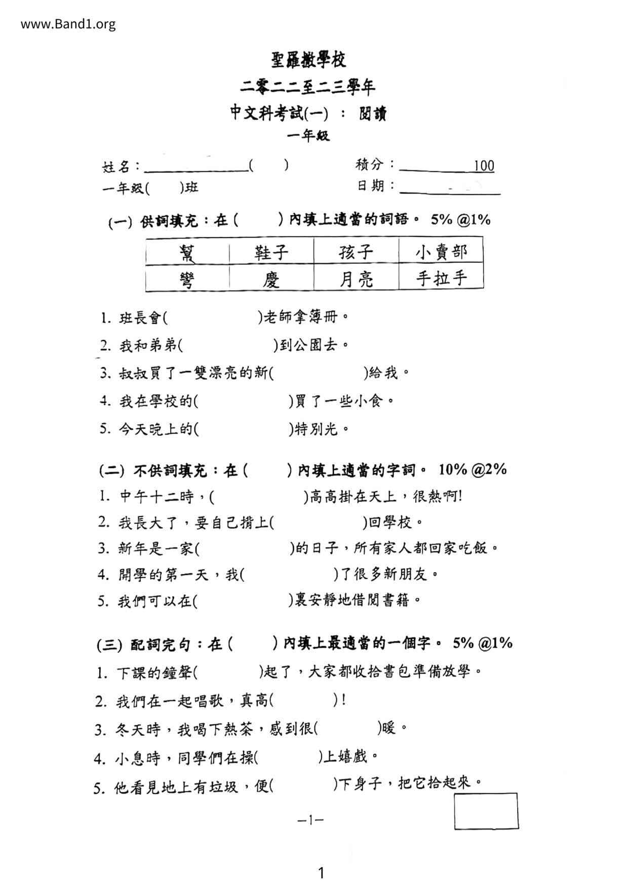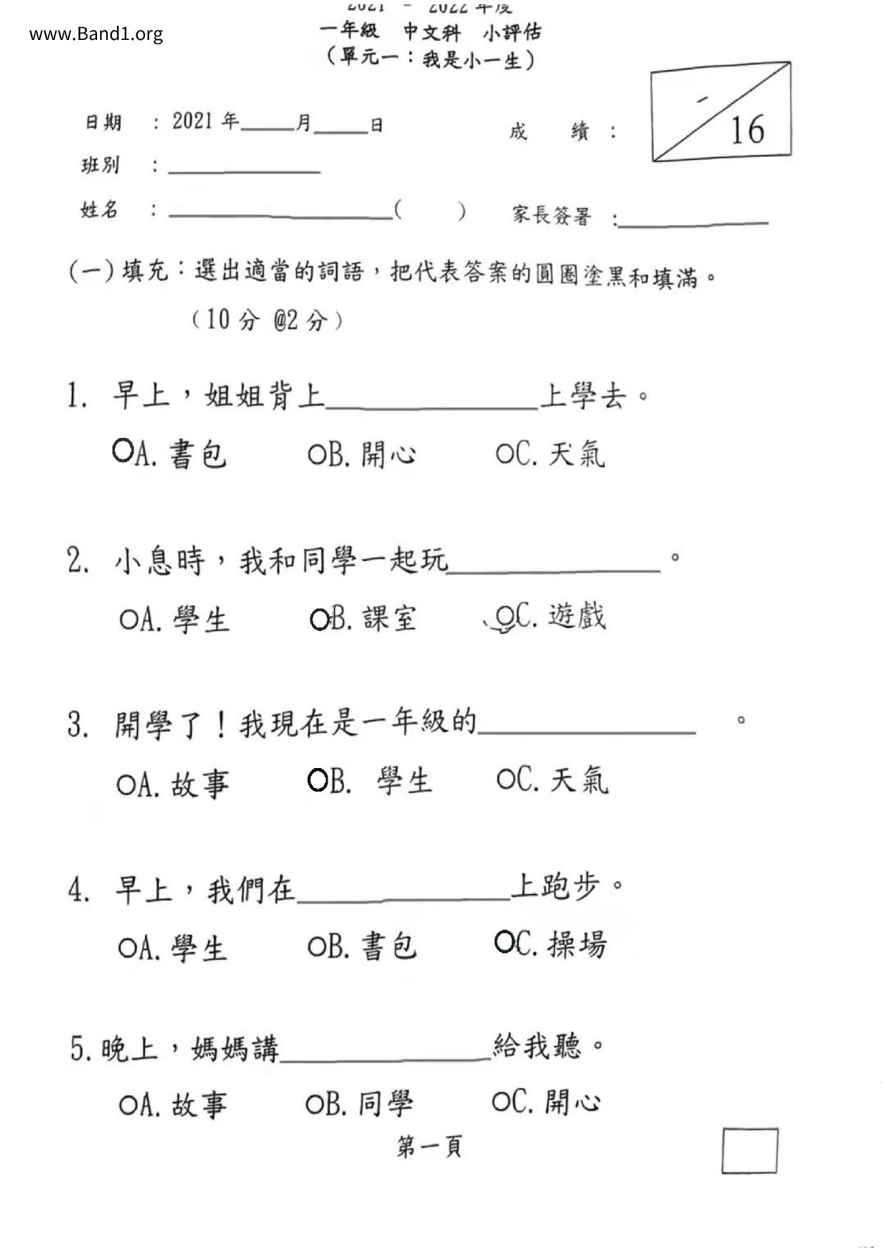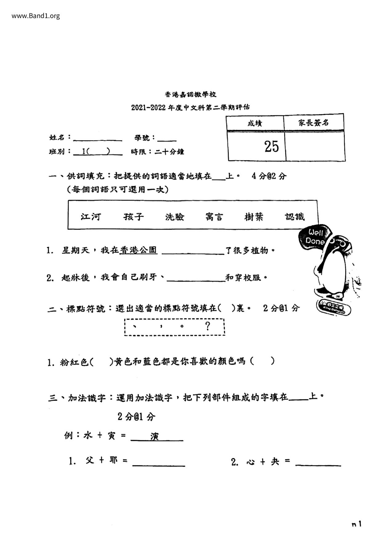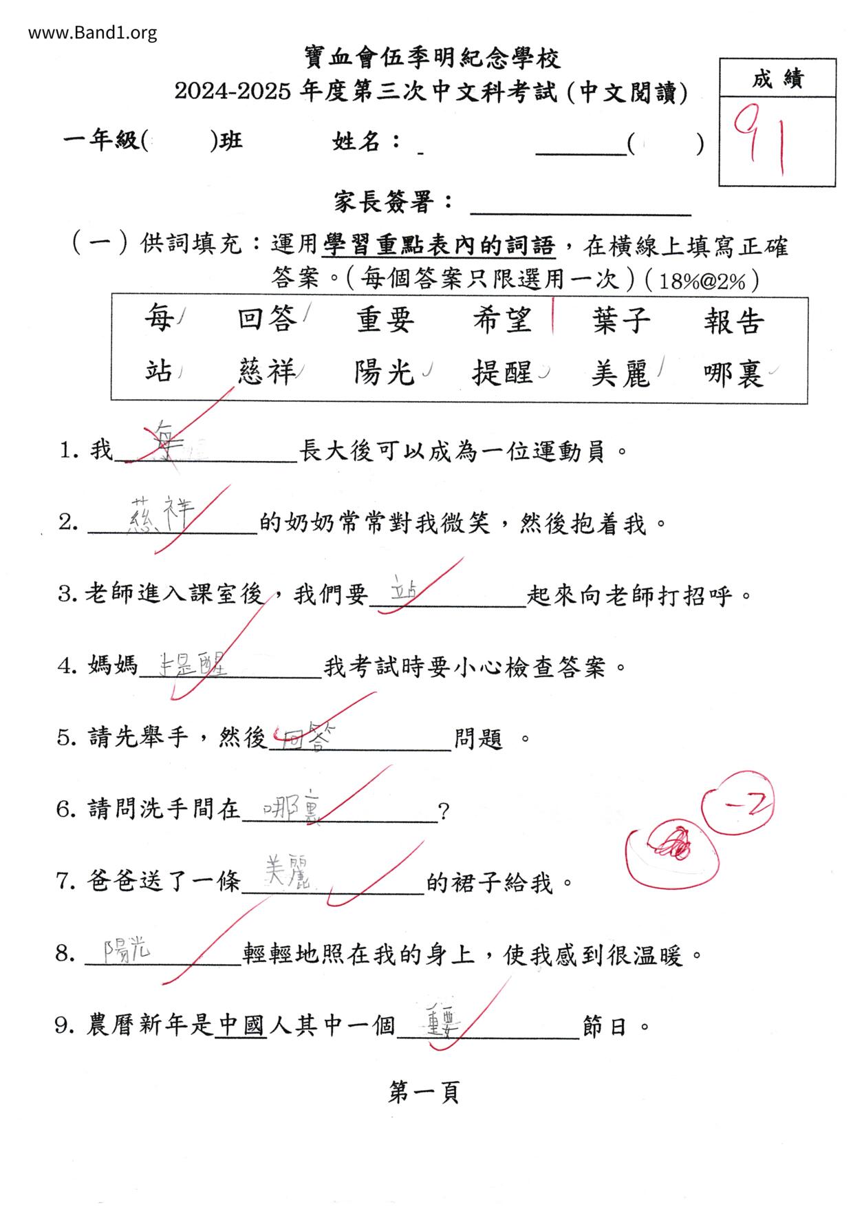 小一 中文 基督教香港信義會馬鞍山信義學校