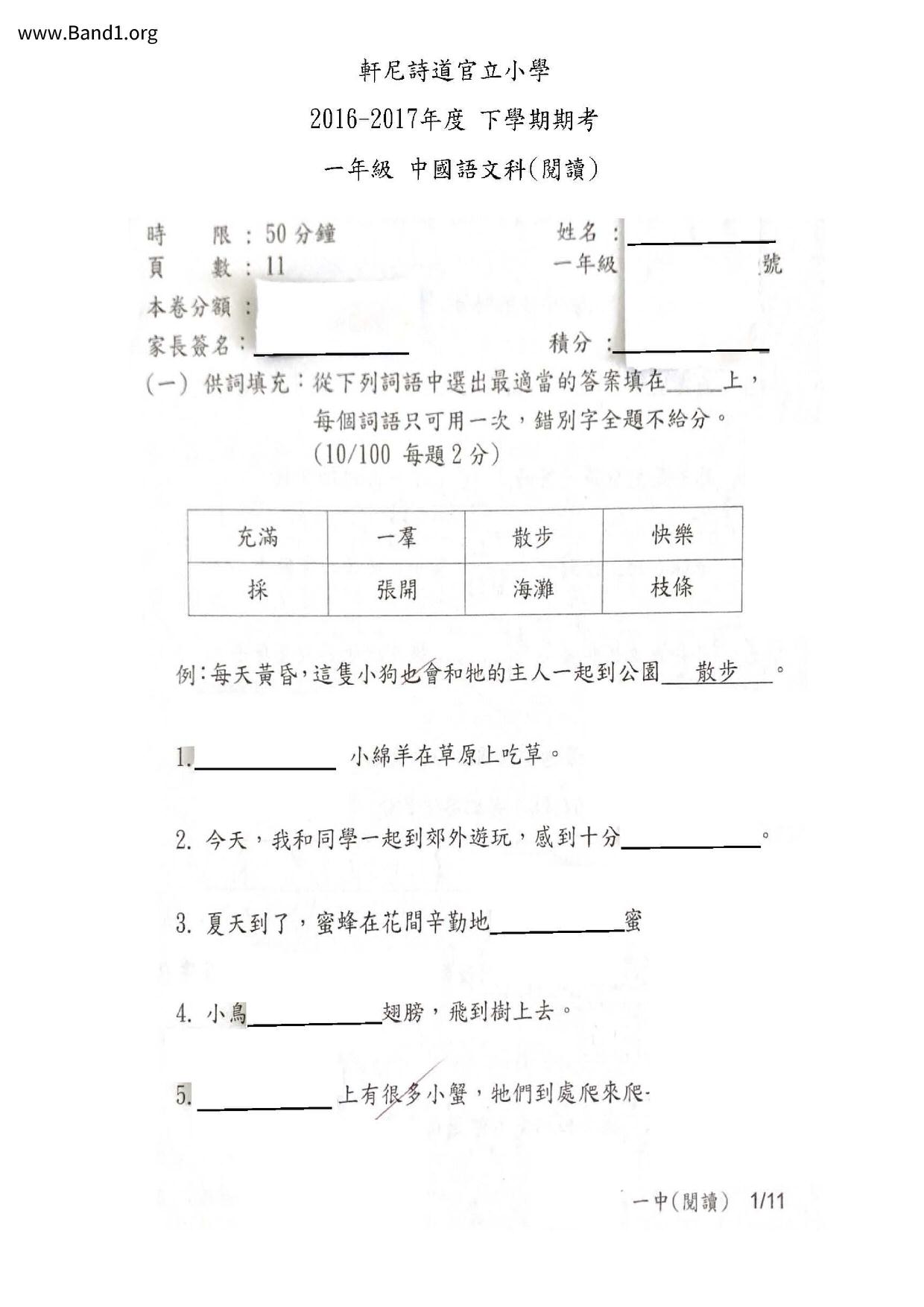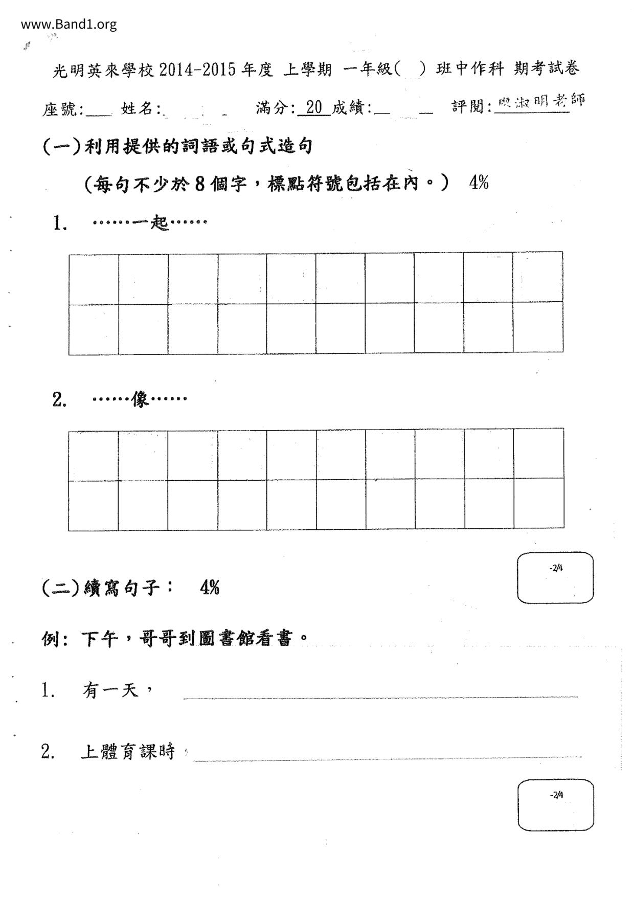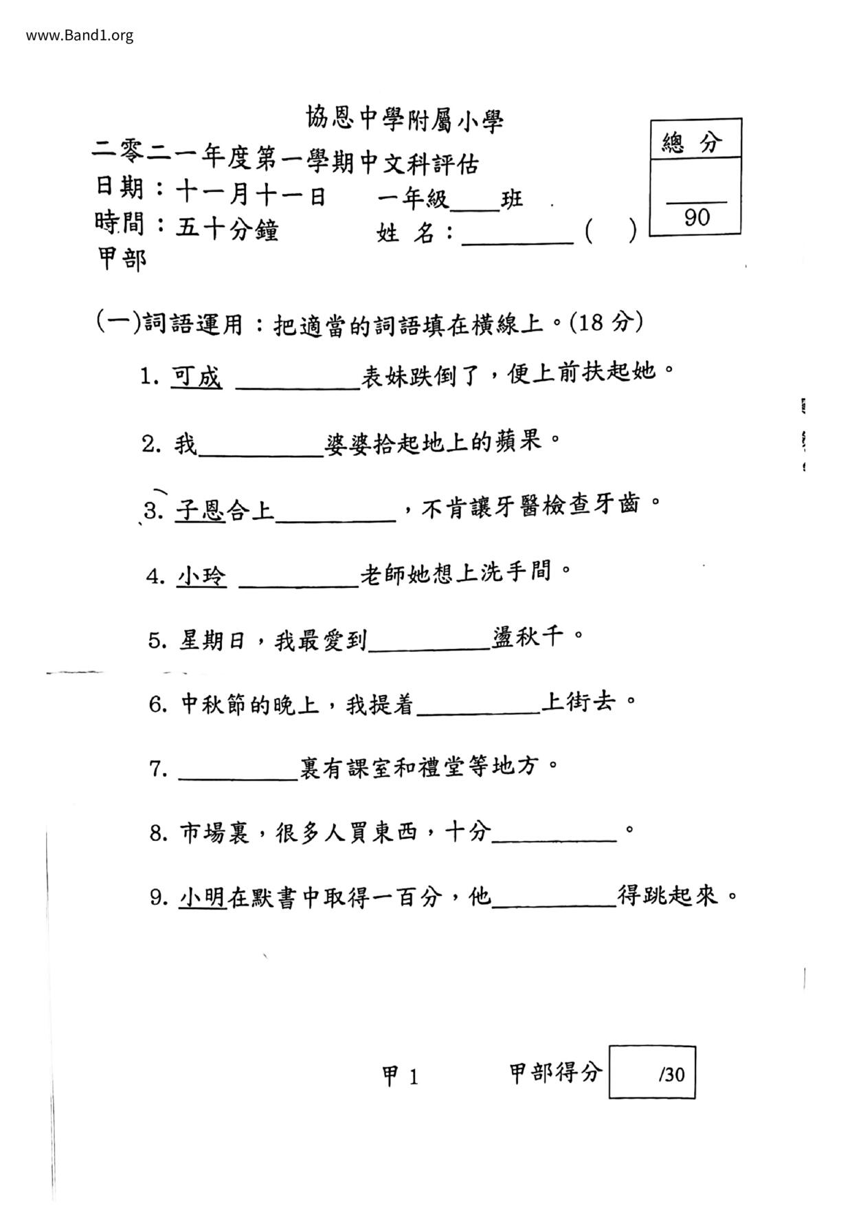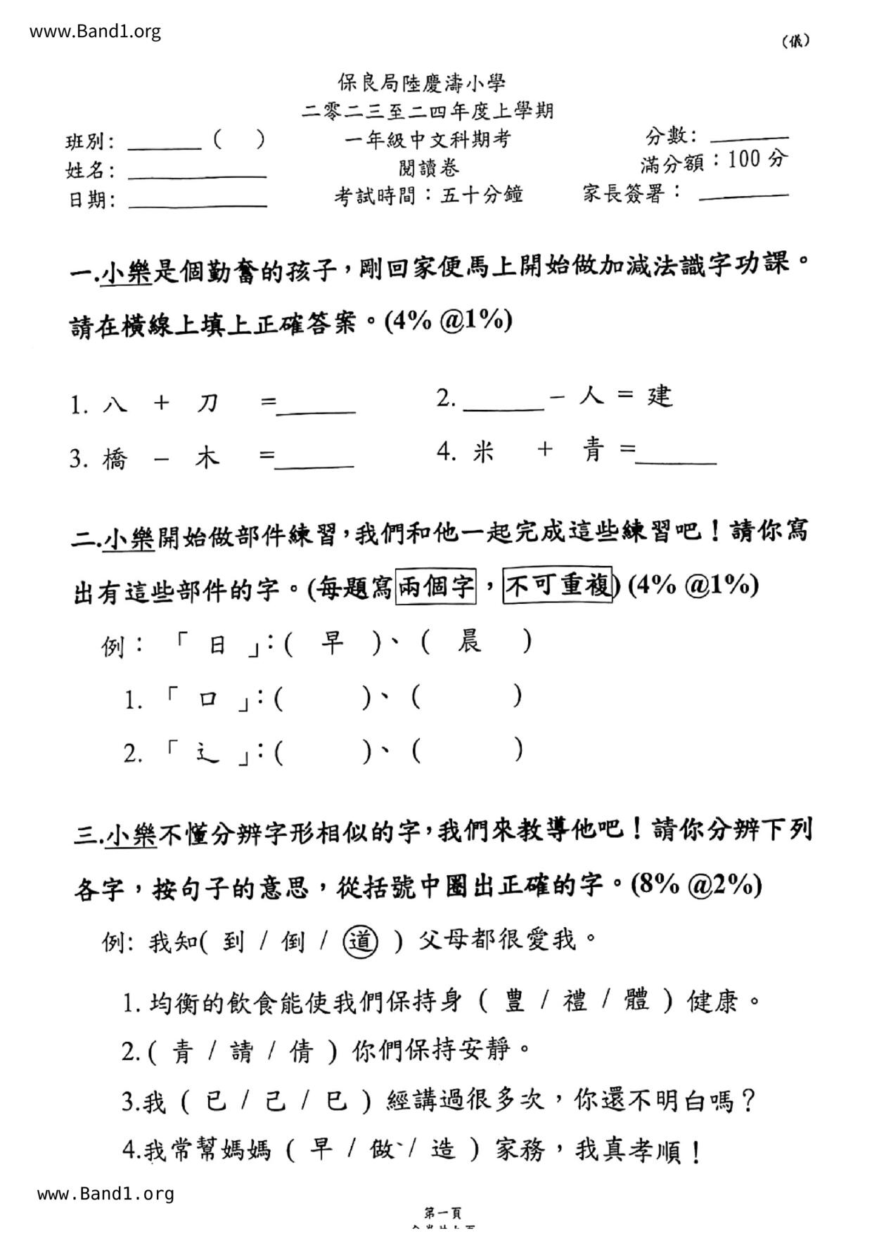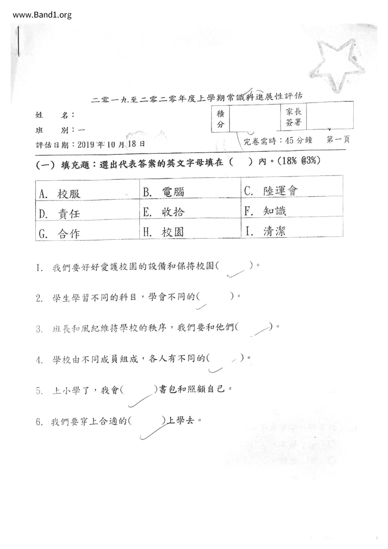 小一 中文 基督教香港信義會馬鞍山信義學校