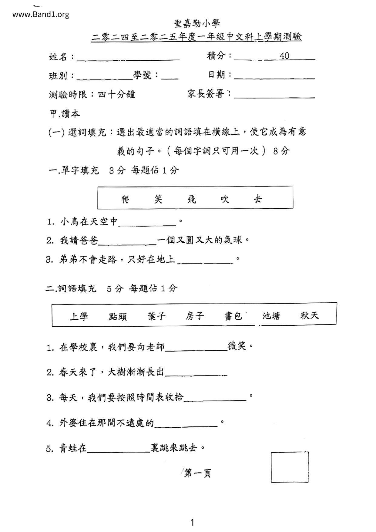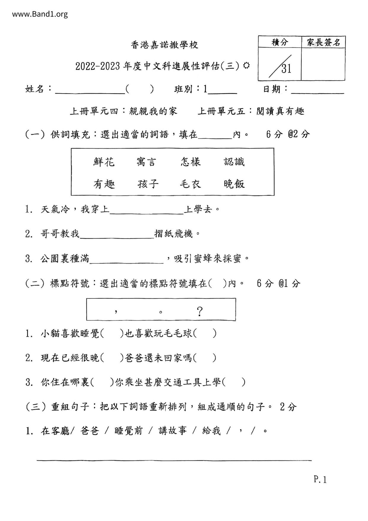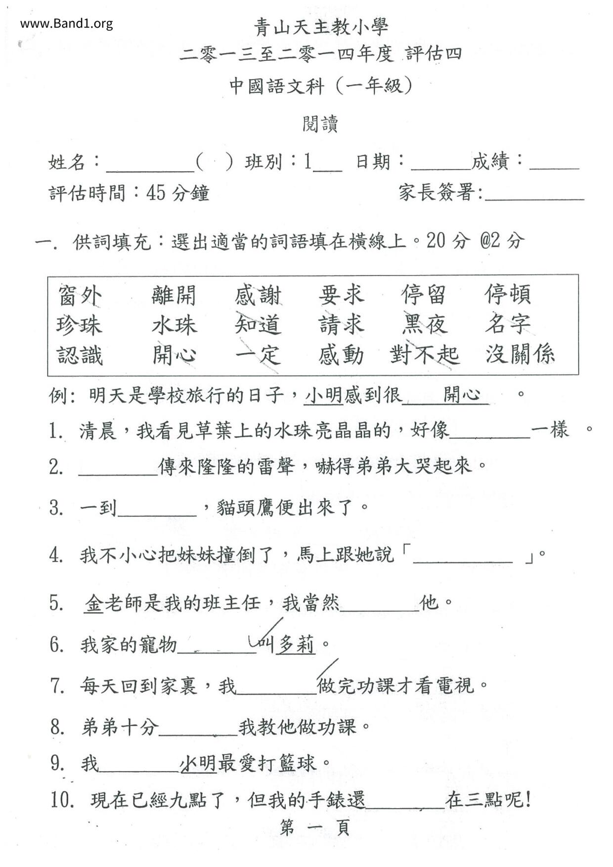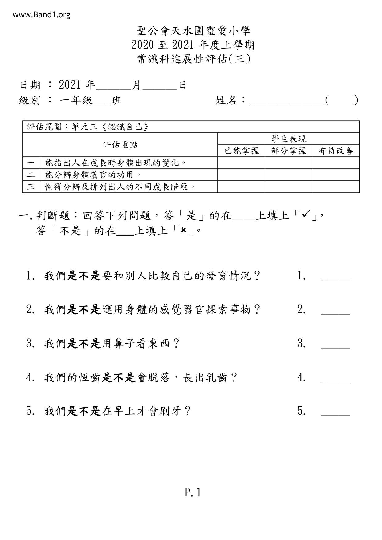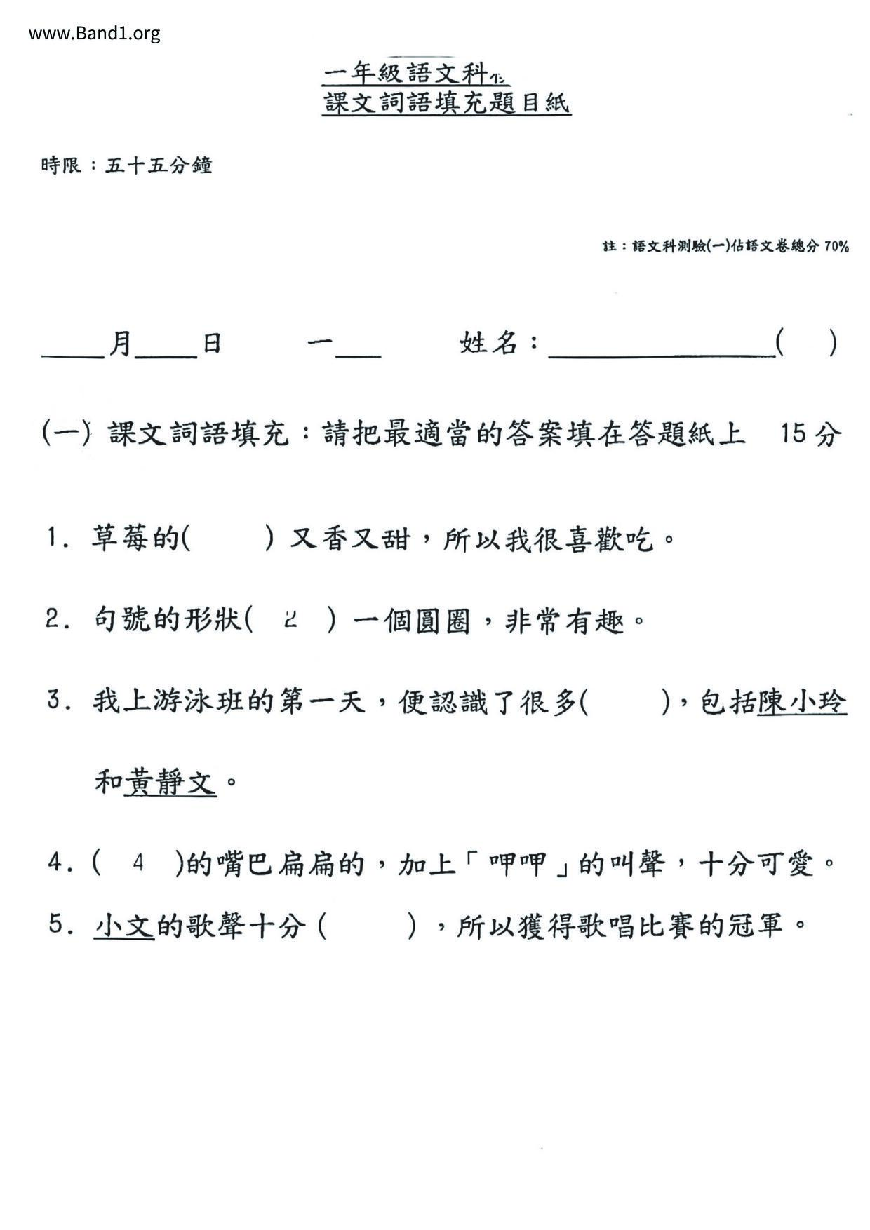 小一 中文 基督教香港信義會馬鞍山信義學校