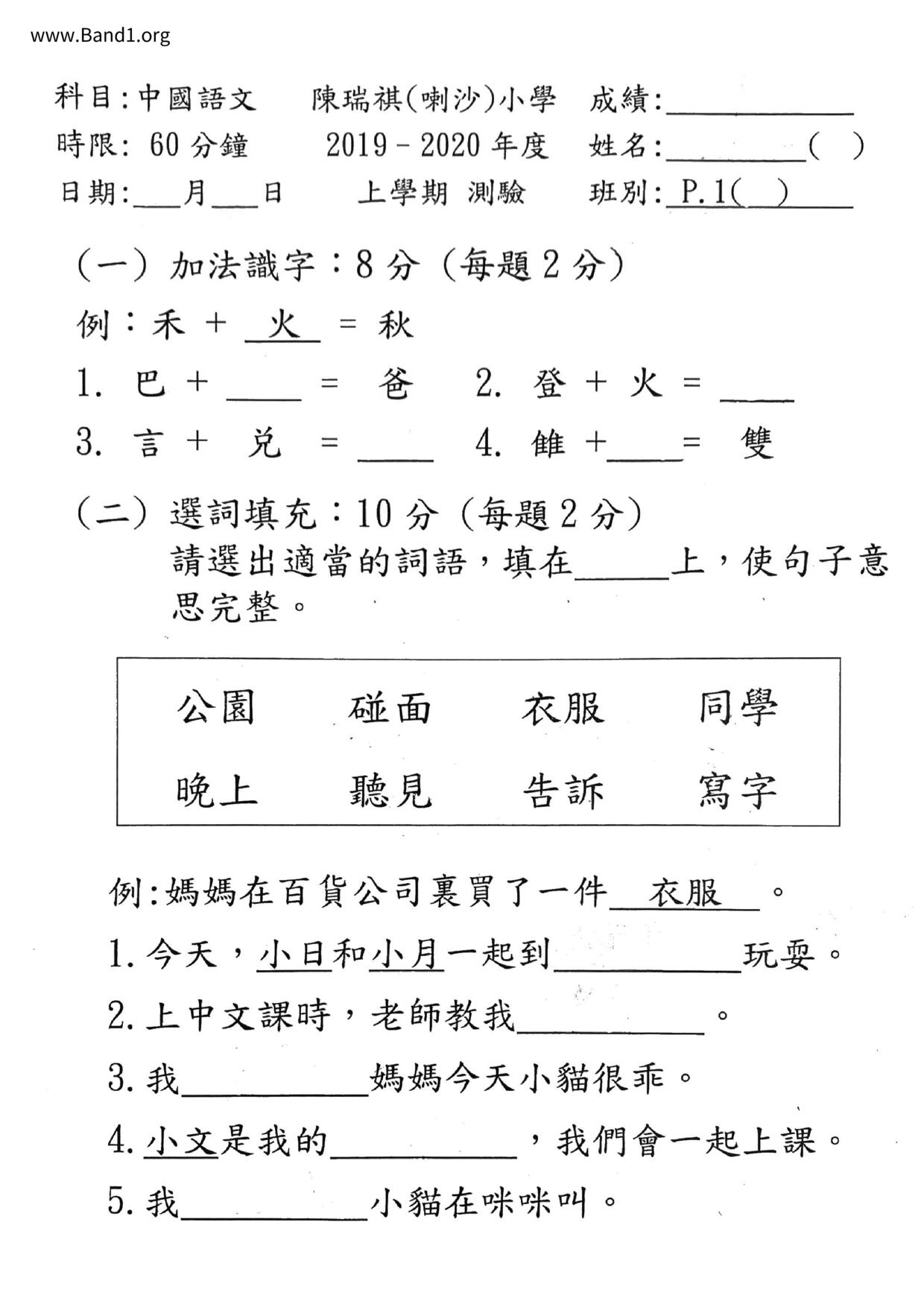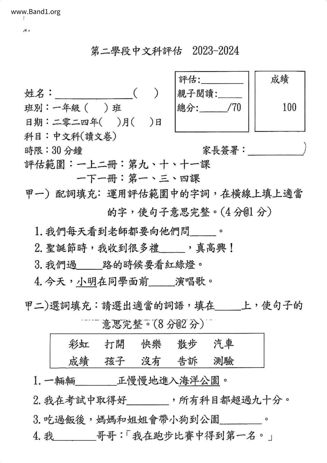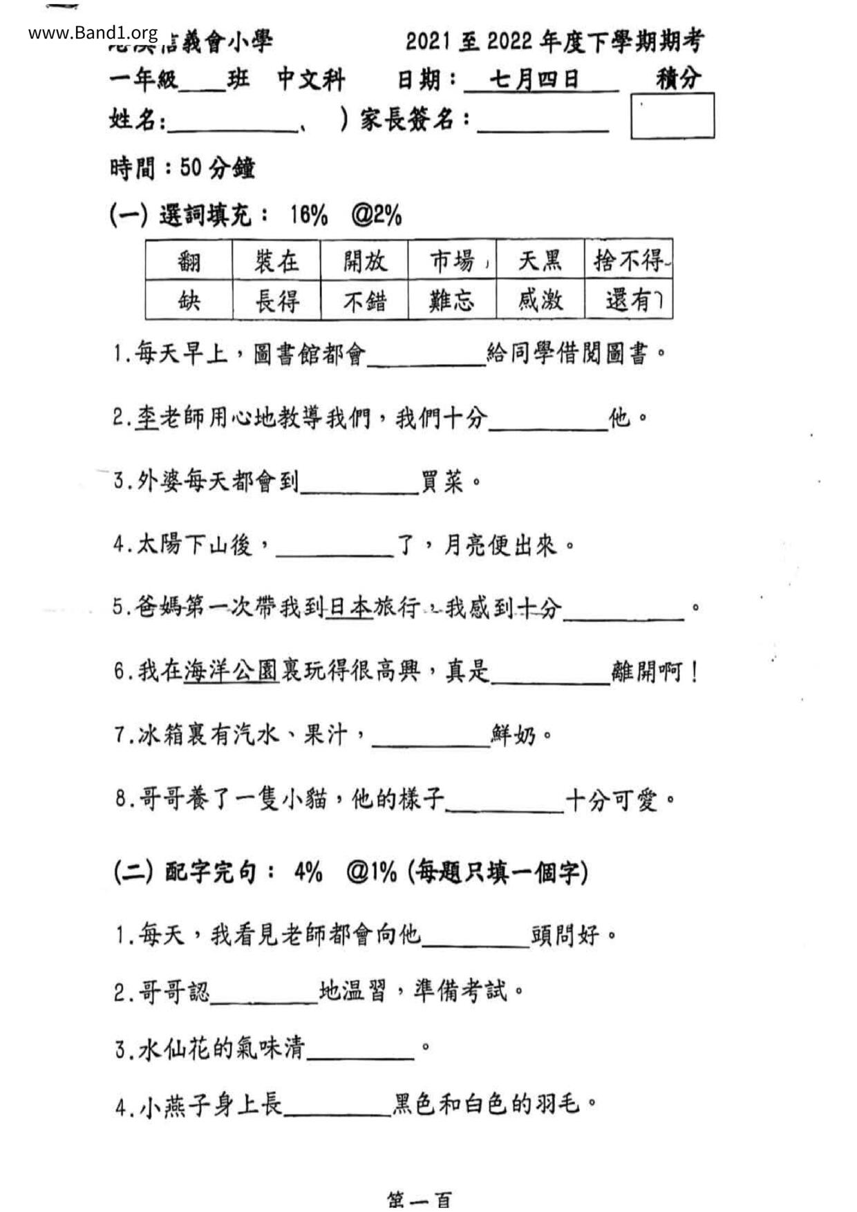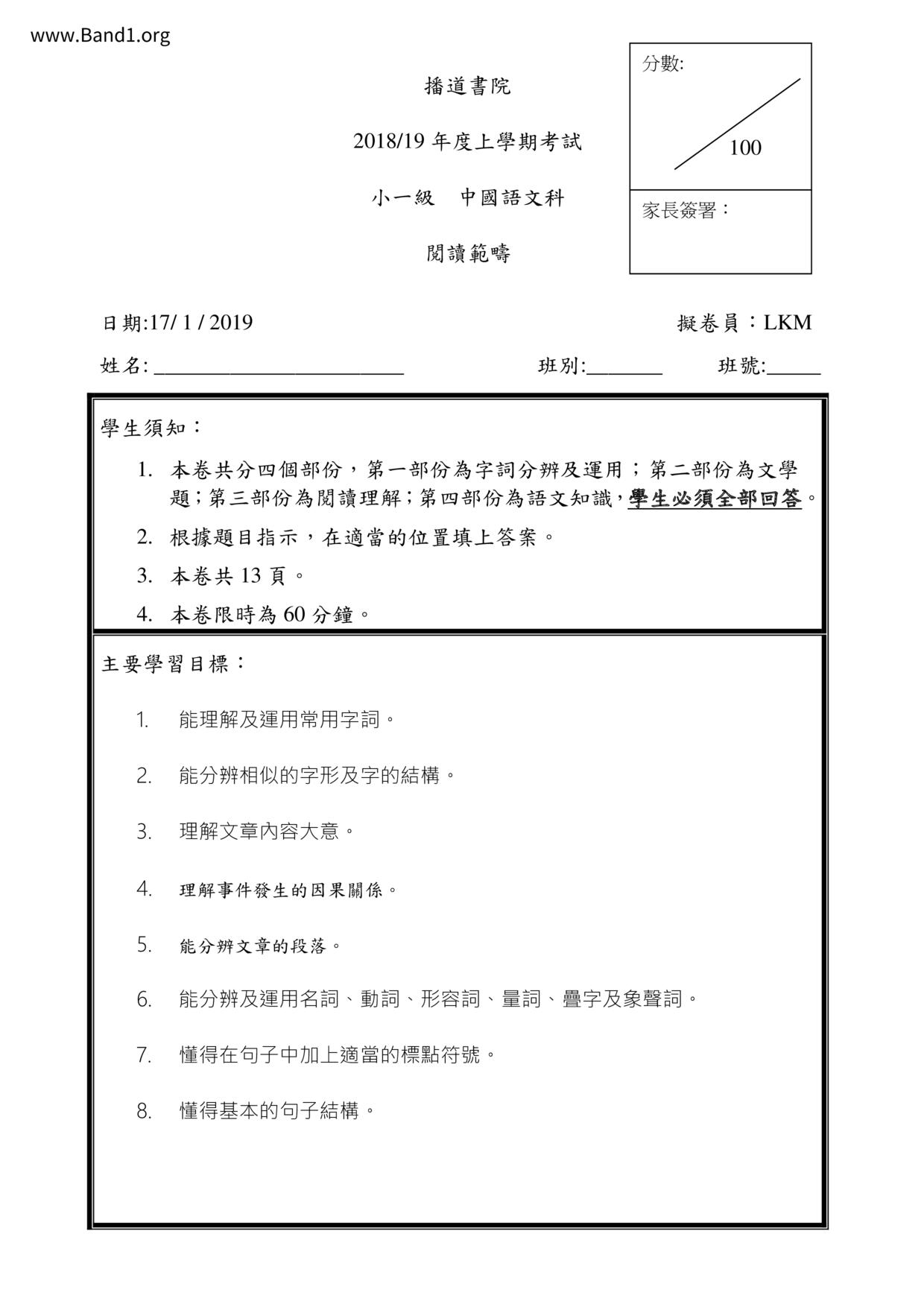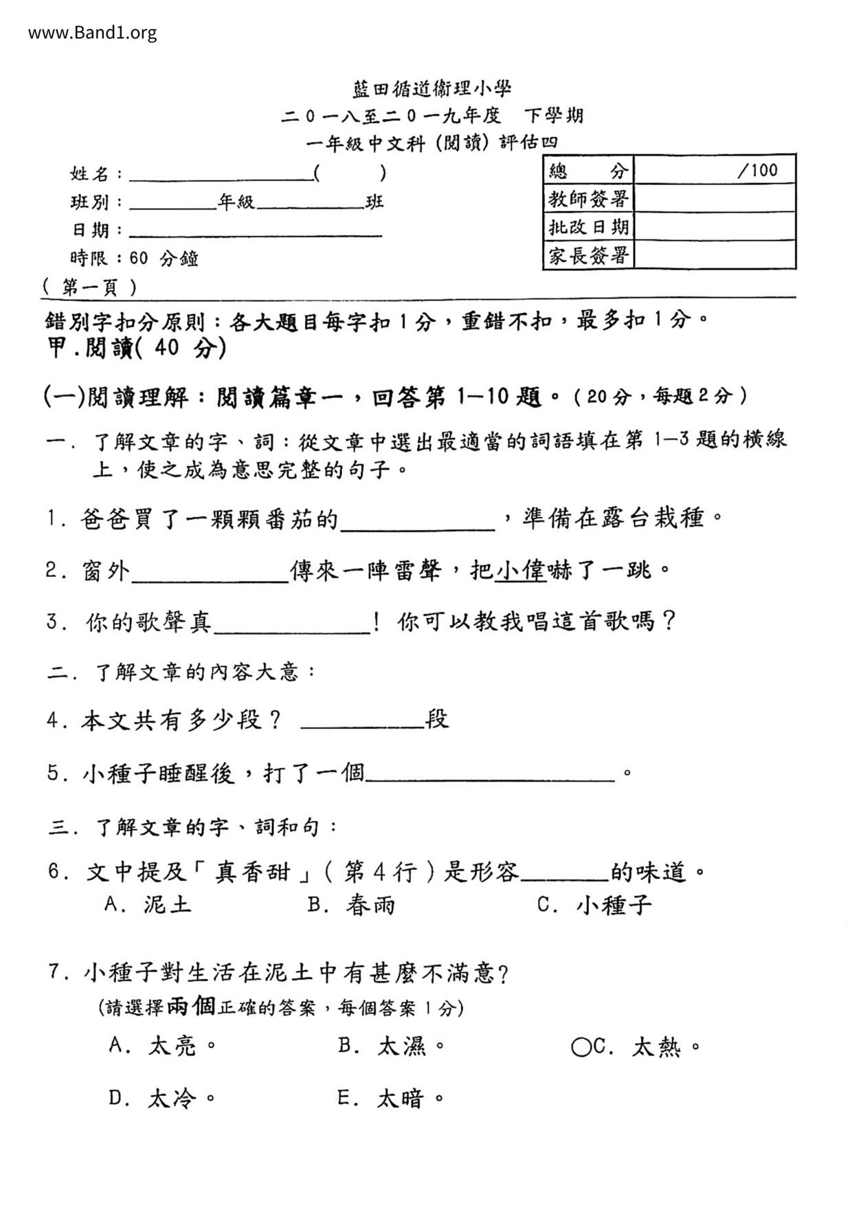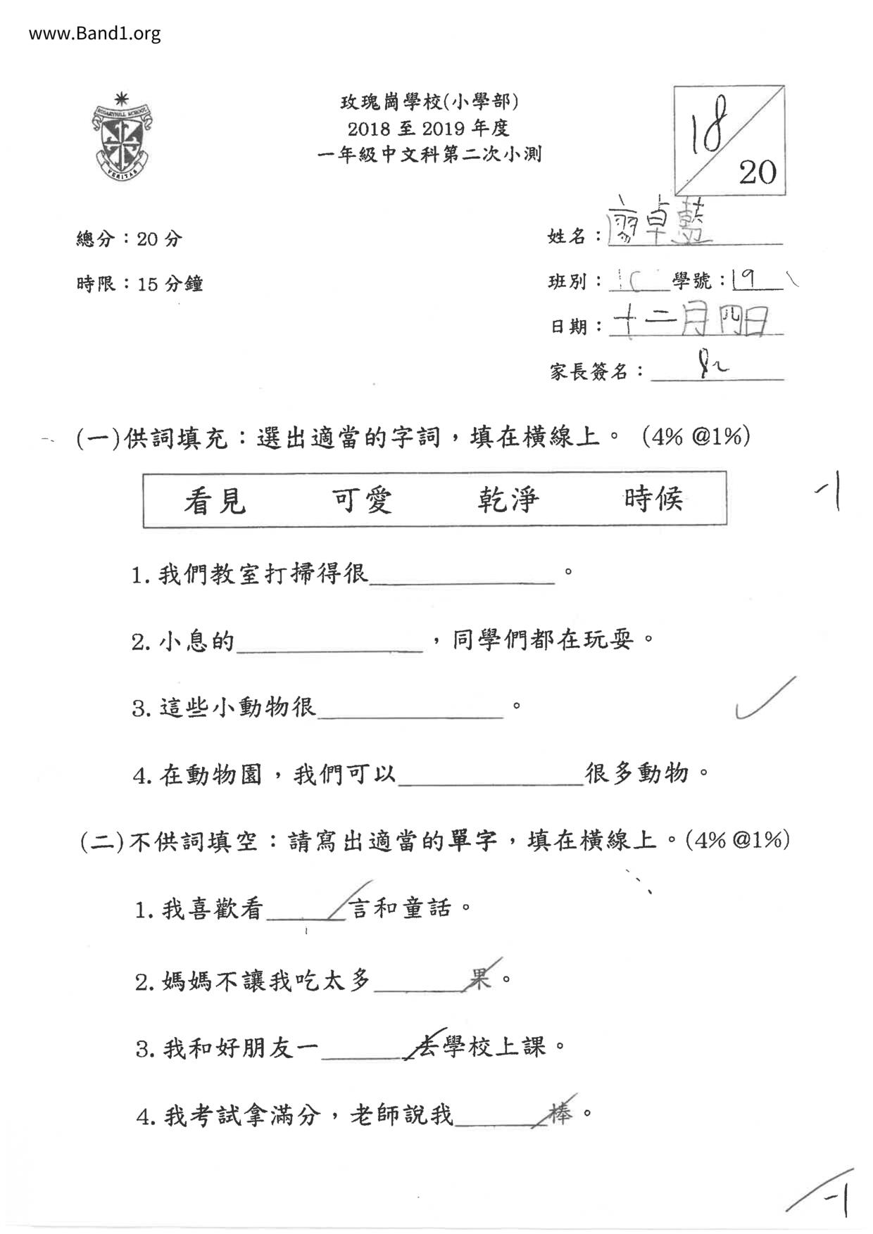小一 中文 基督教香港信義會馬鞍山信義學校