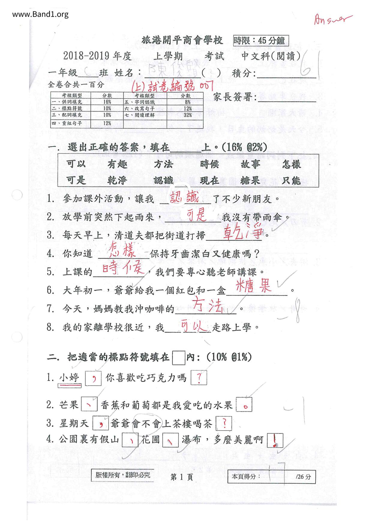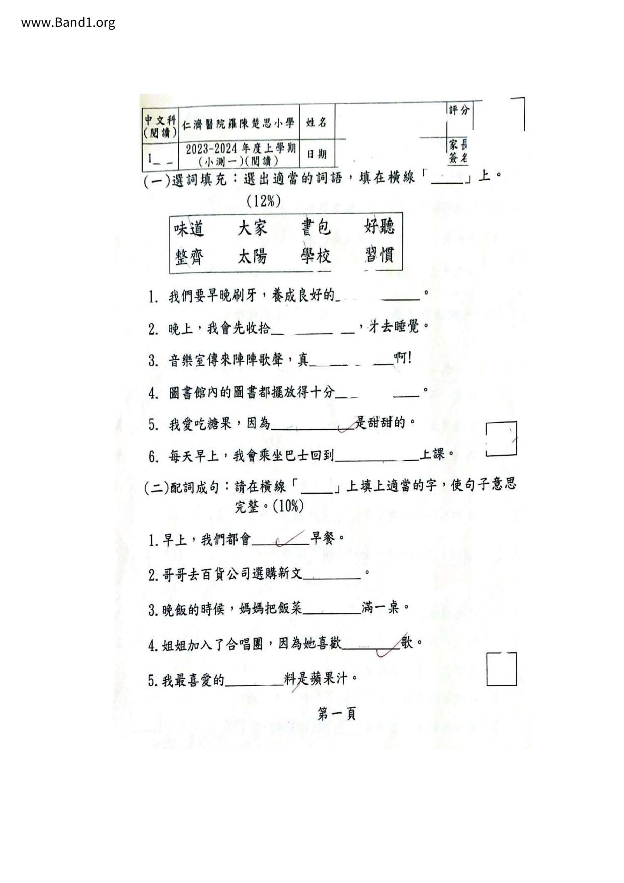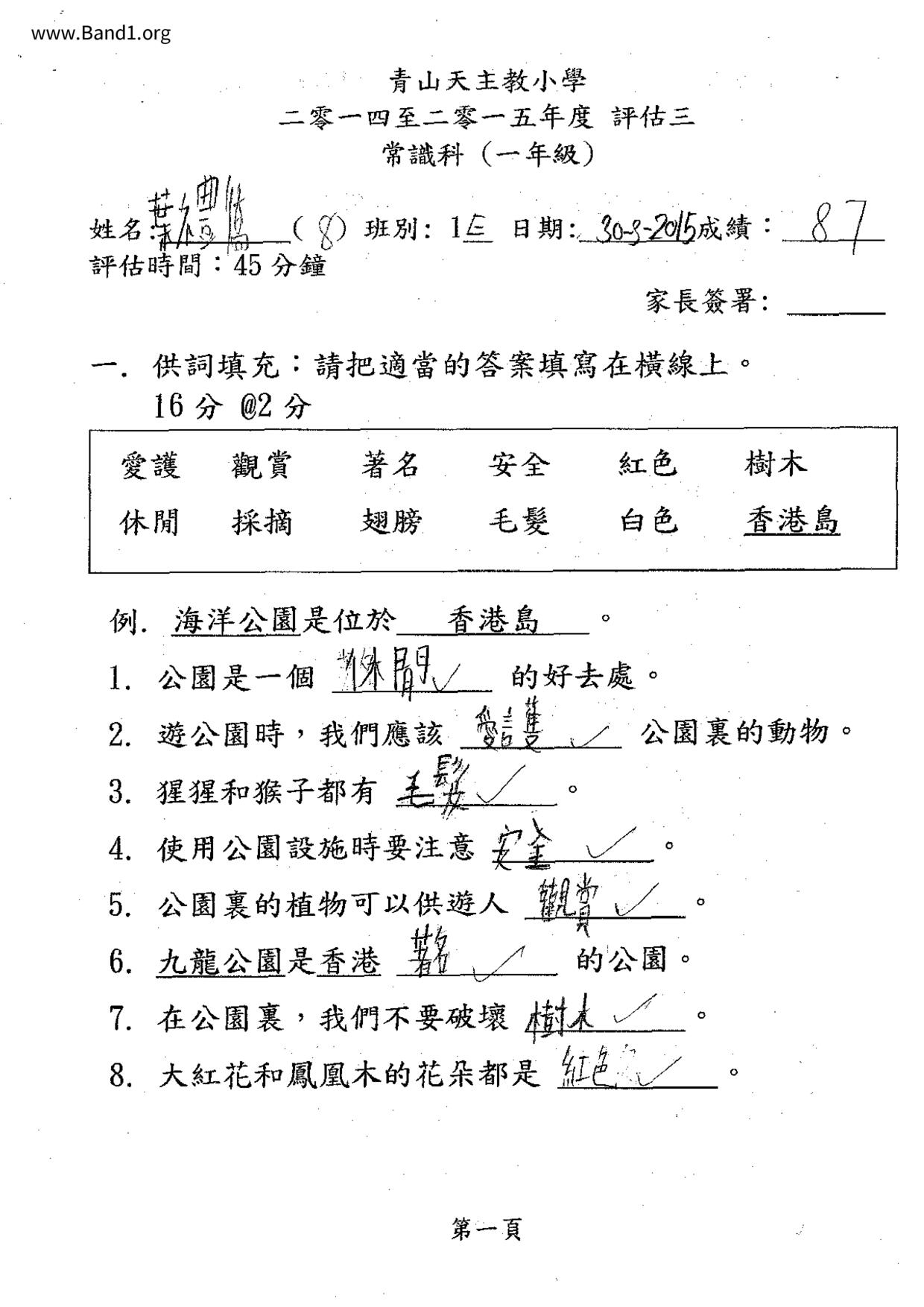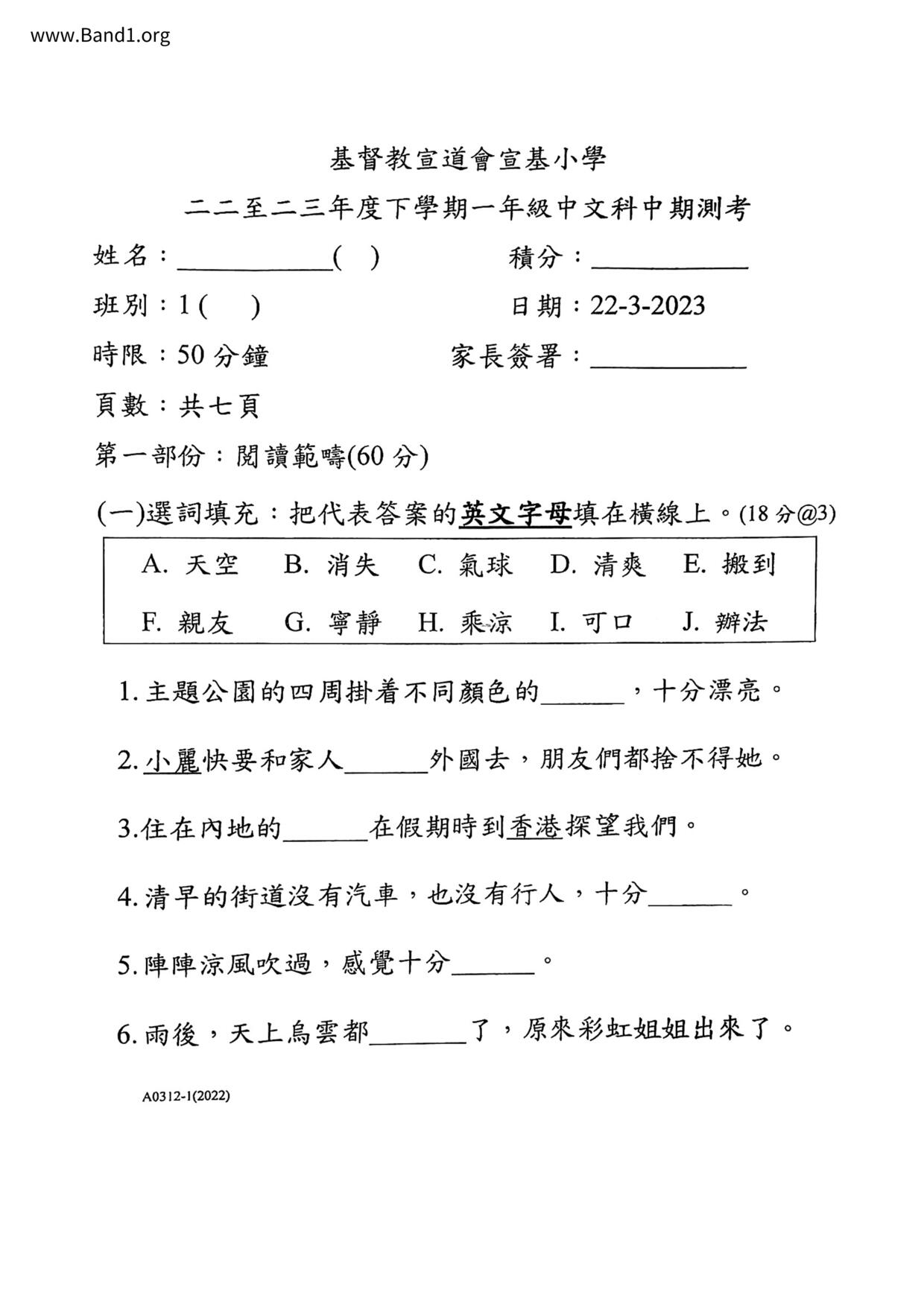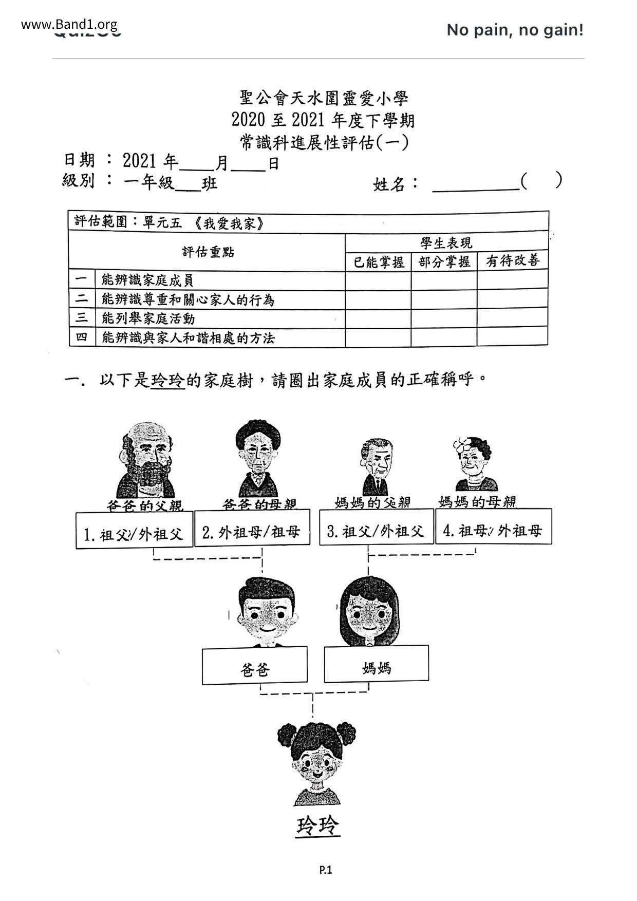 小一 中文 基督教香港信義會馬鞍山信義學校