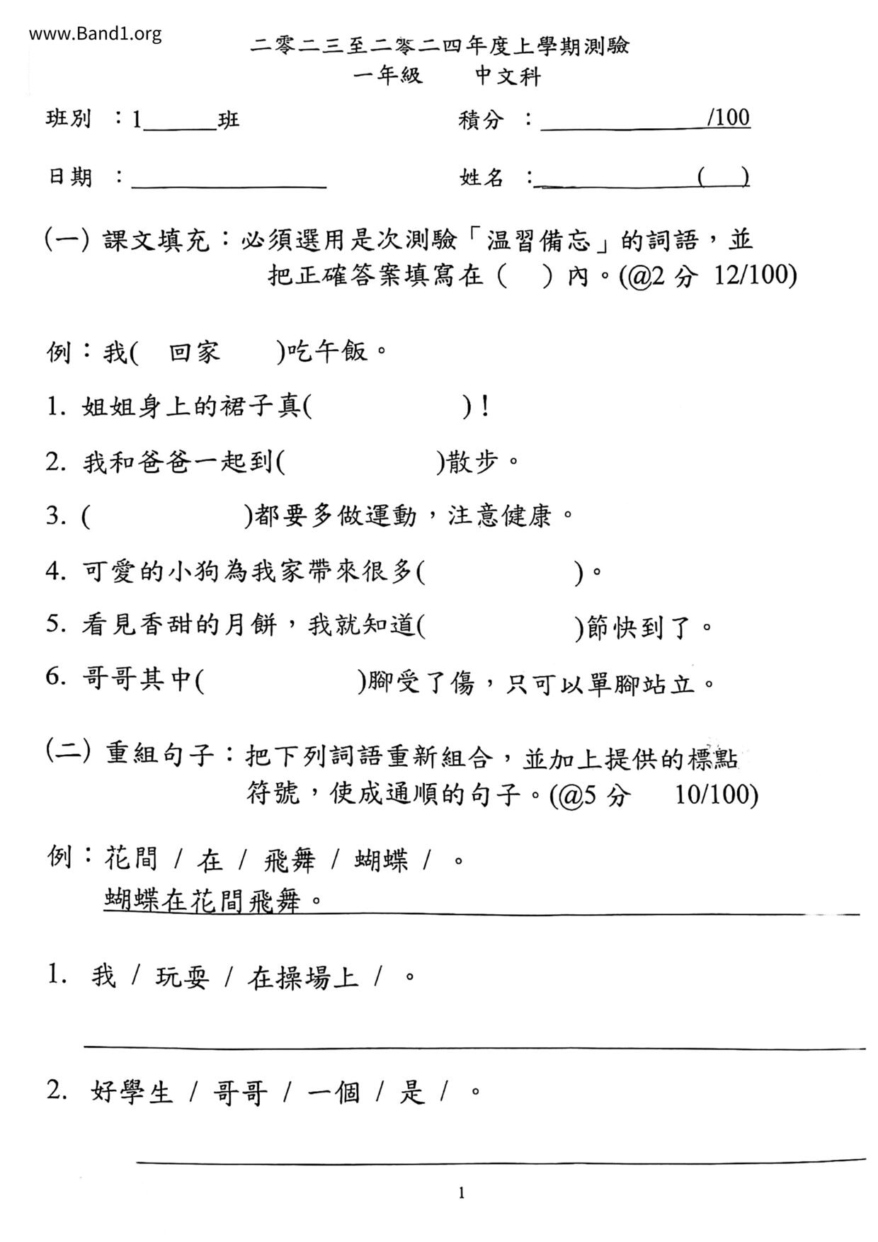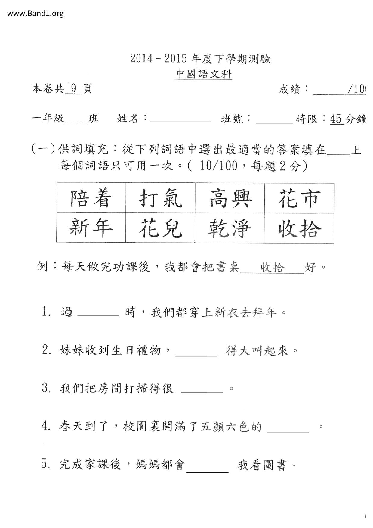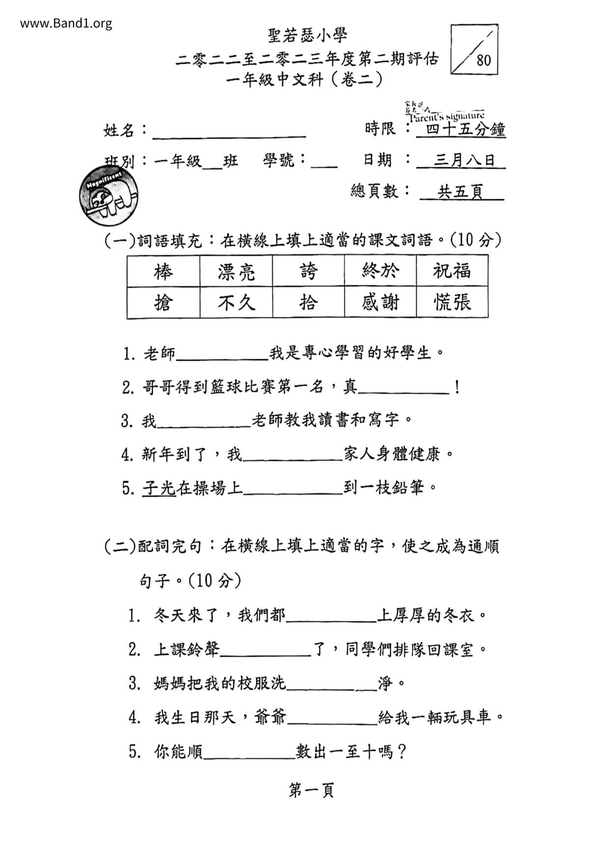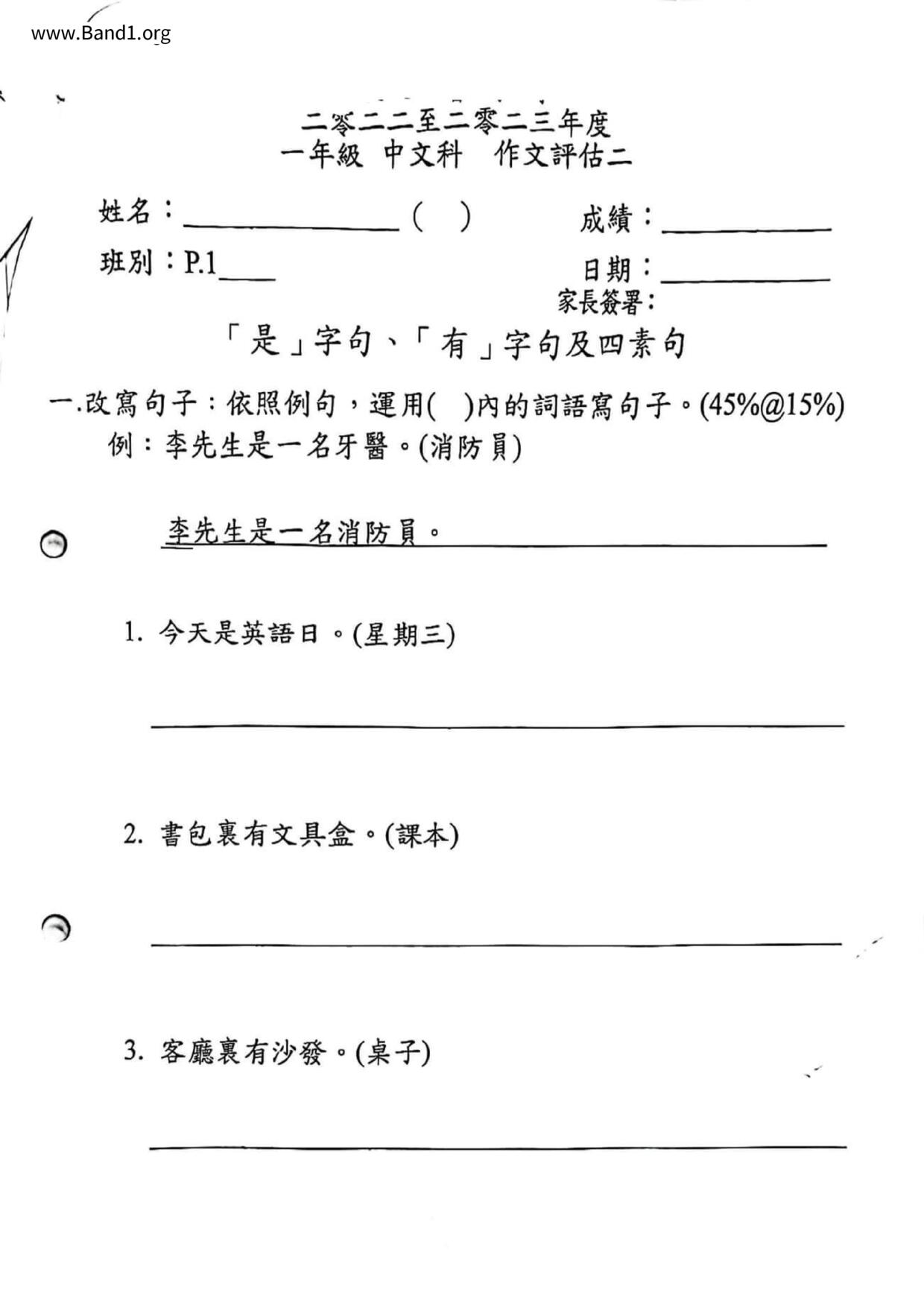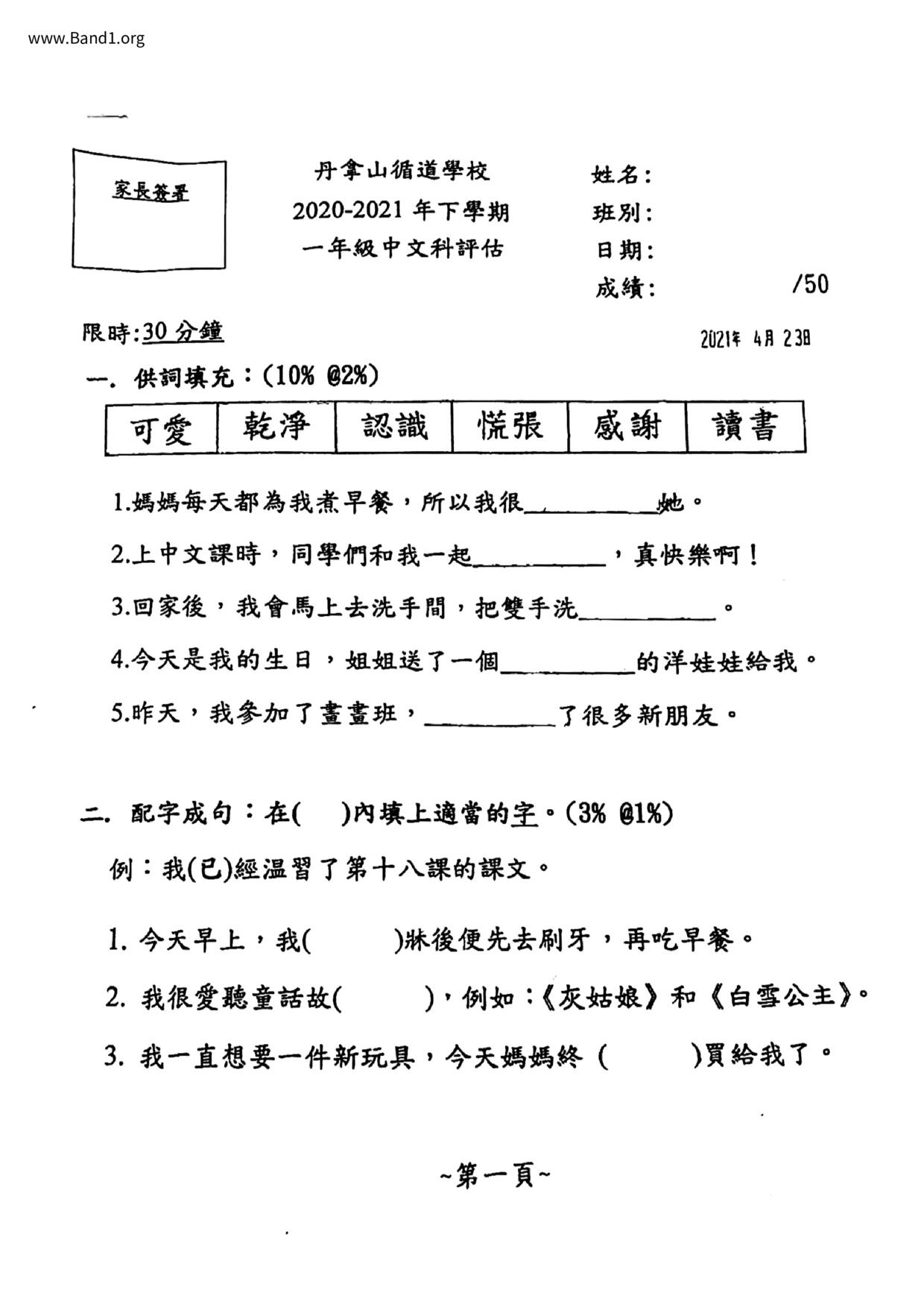 小一 中文 基督教香港信義會馬鞍山信義學校