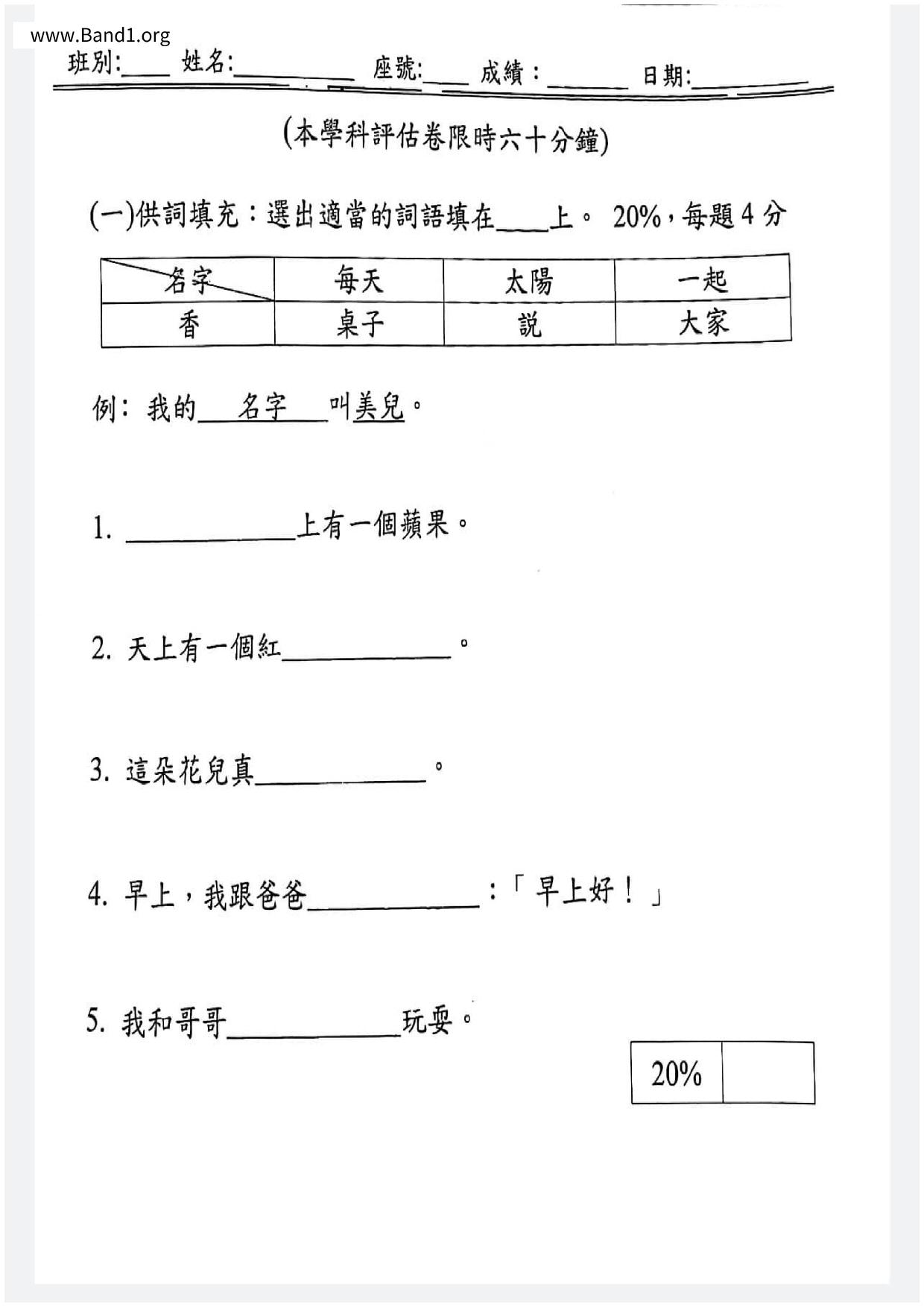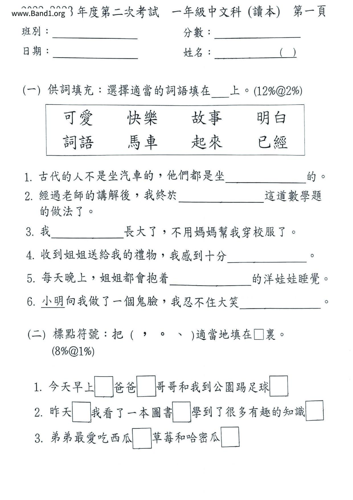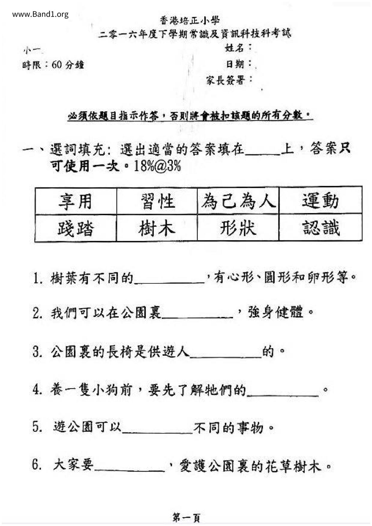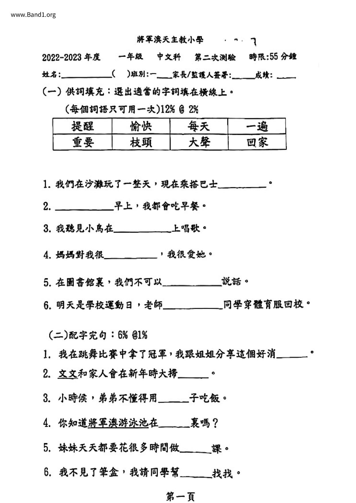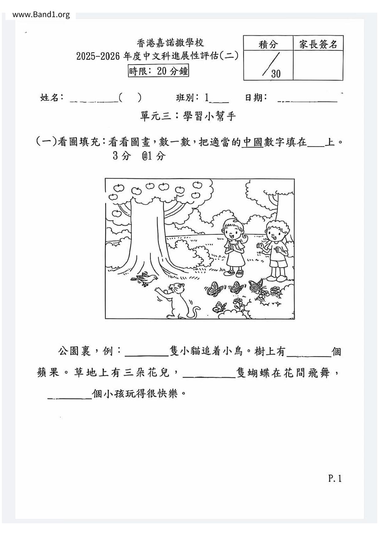 小一 中文 基督教香港信義會馬鞍山信義學校