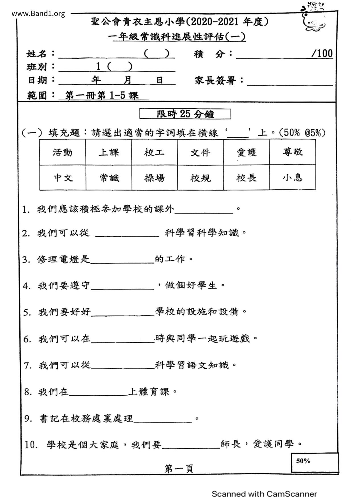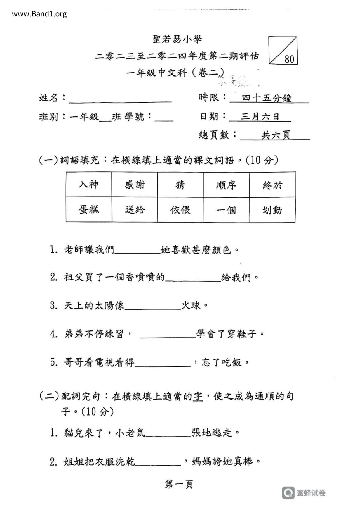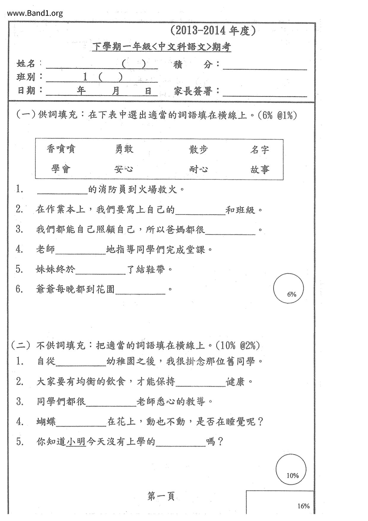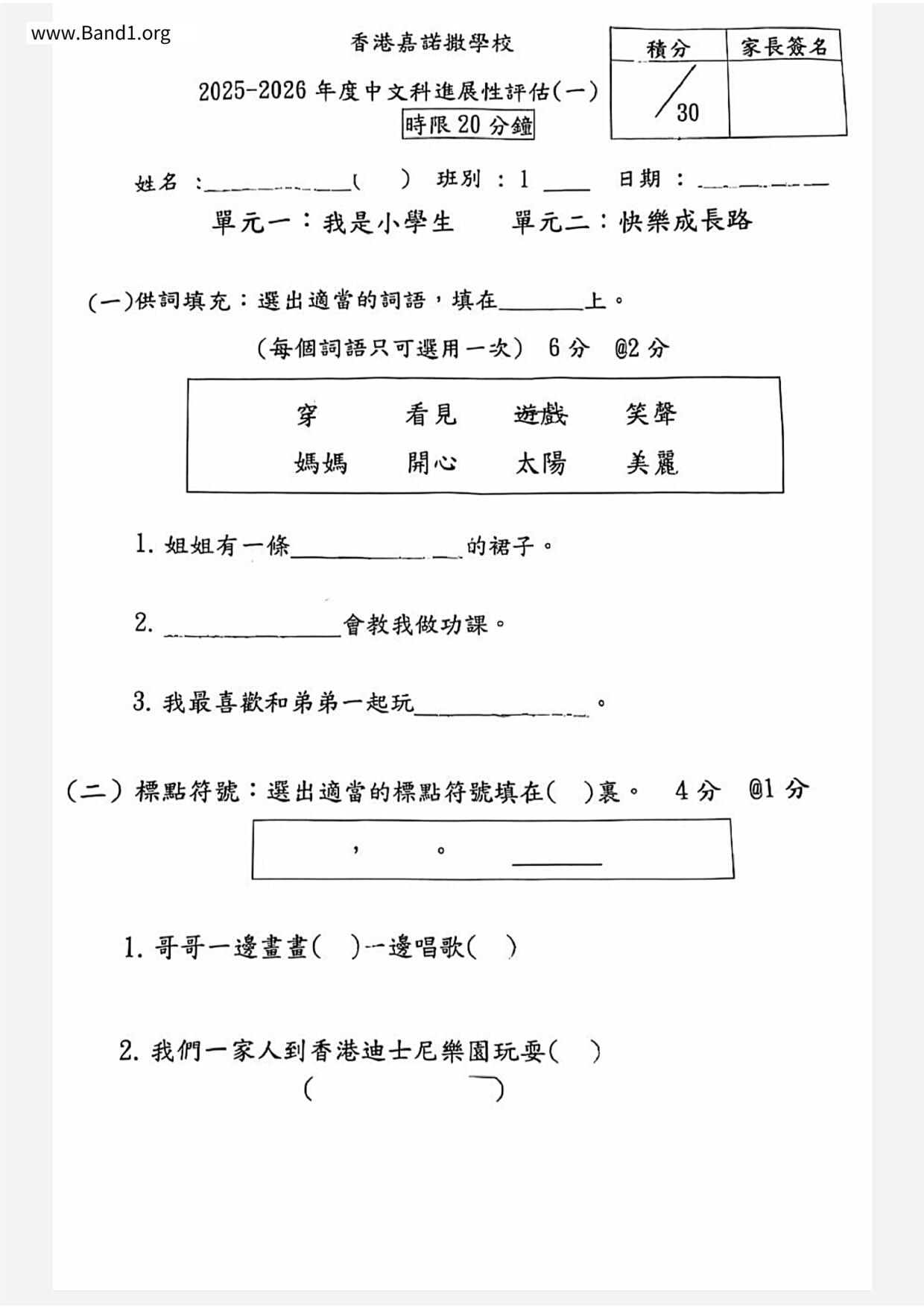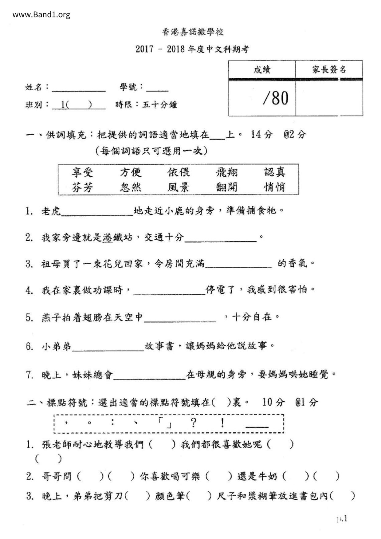 小一 中文 基督教香港信義會馬鞍山信義學校