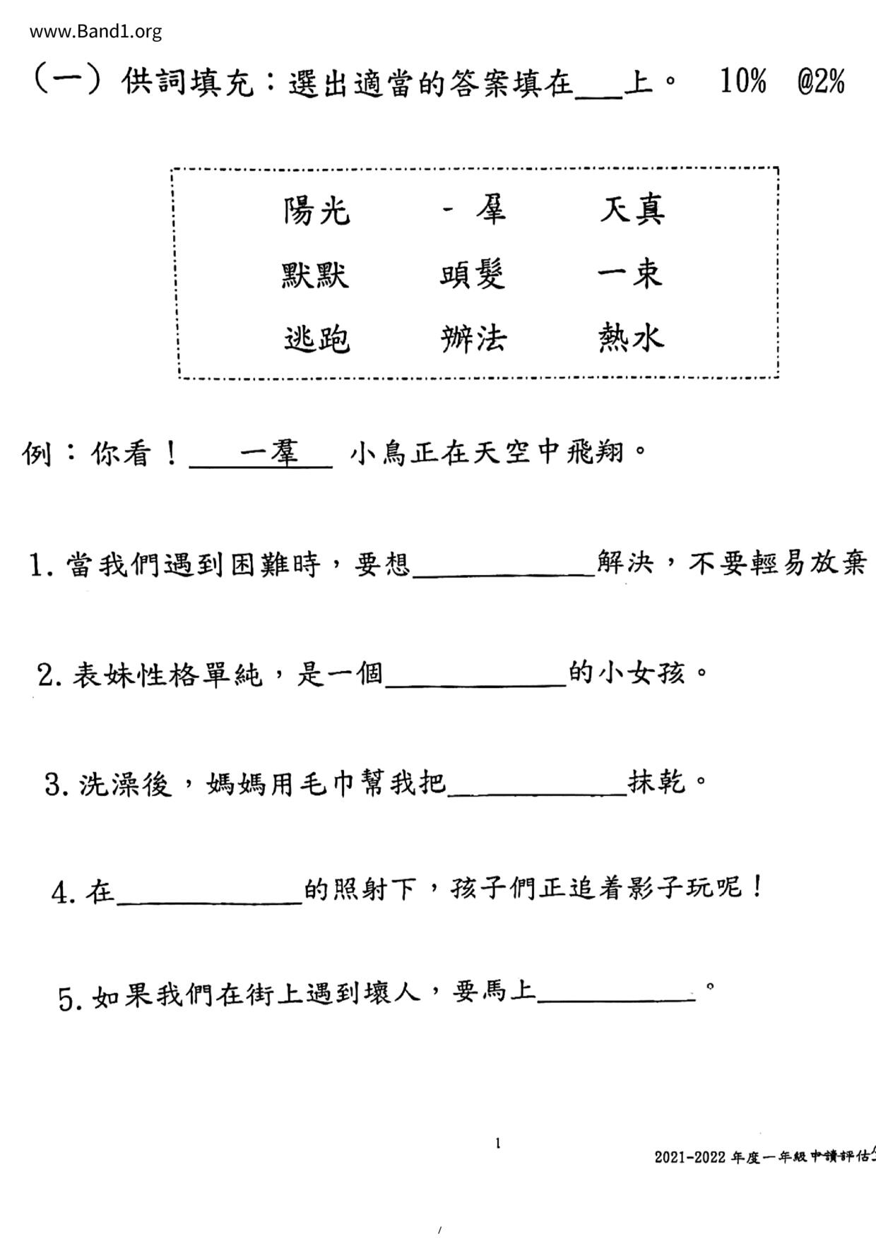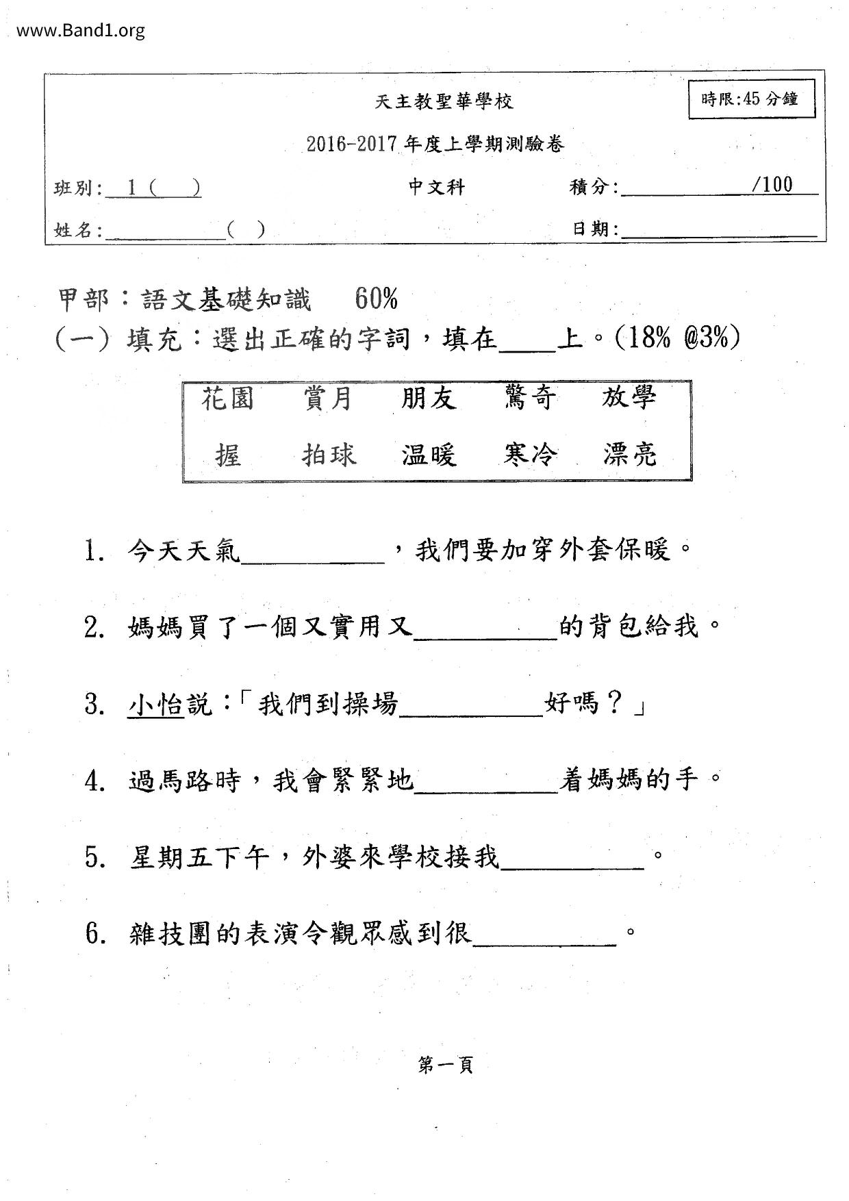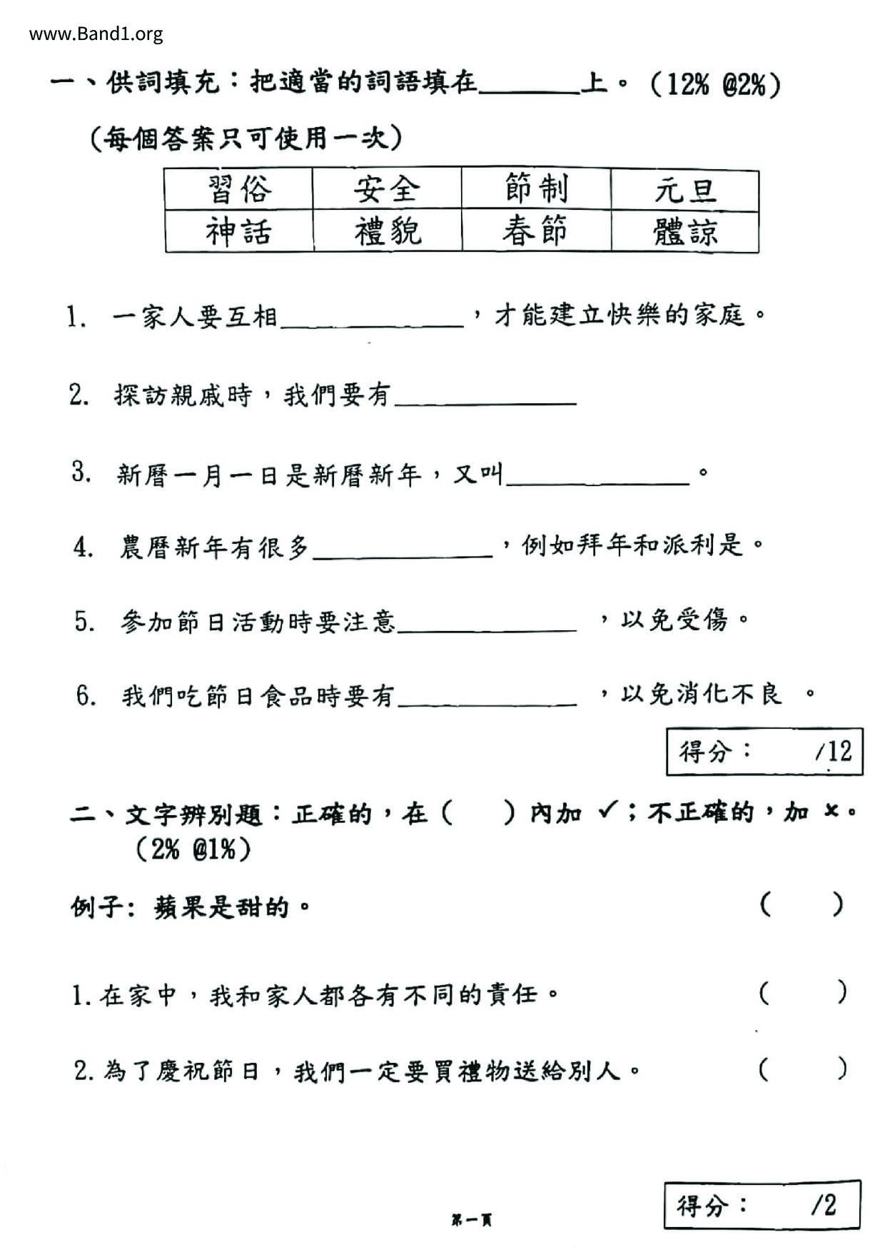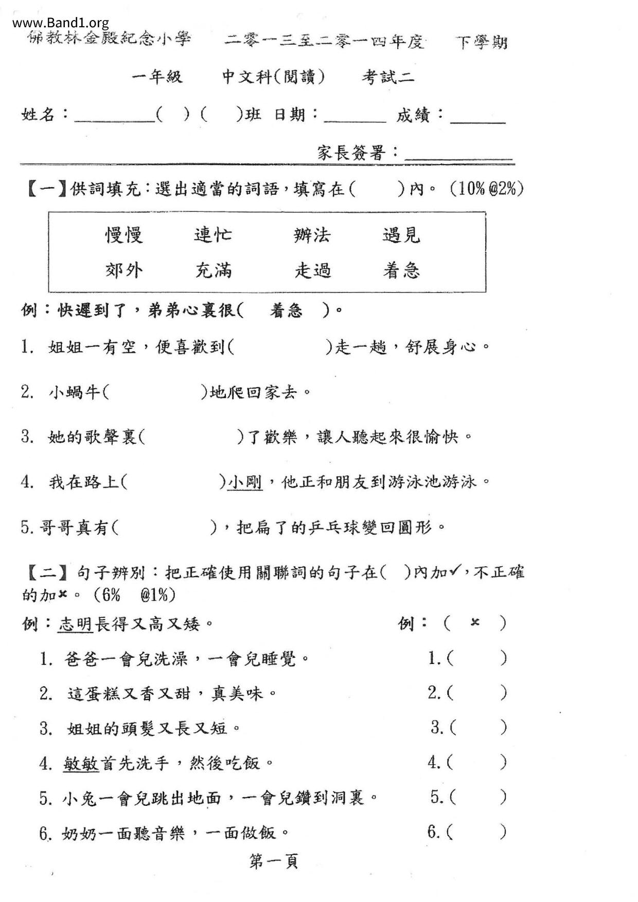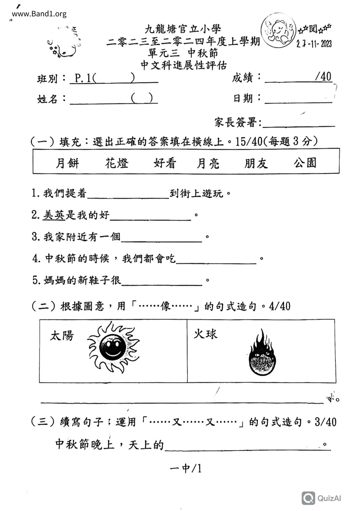 小一 中文 基督教香港信義會馬鞍山信義學校