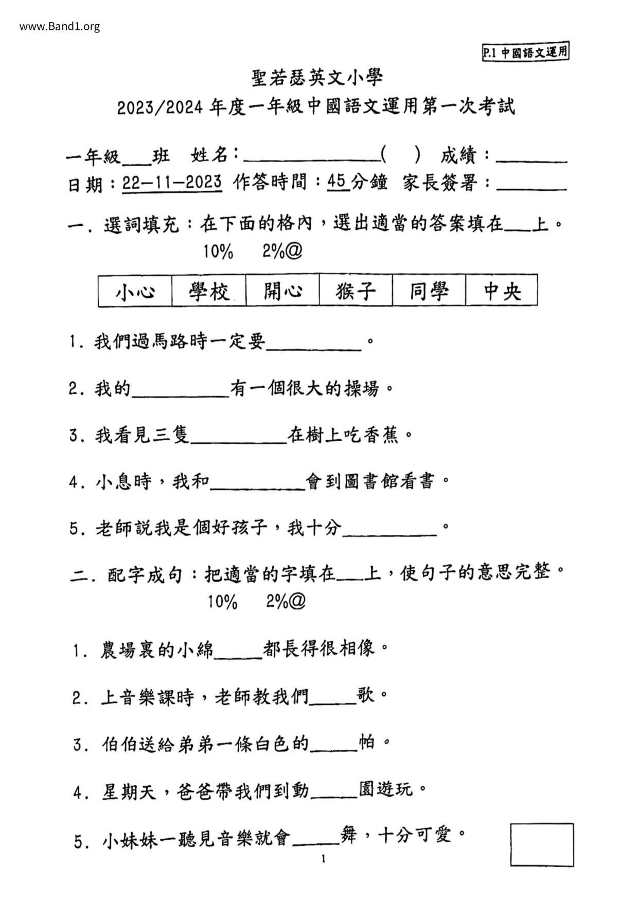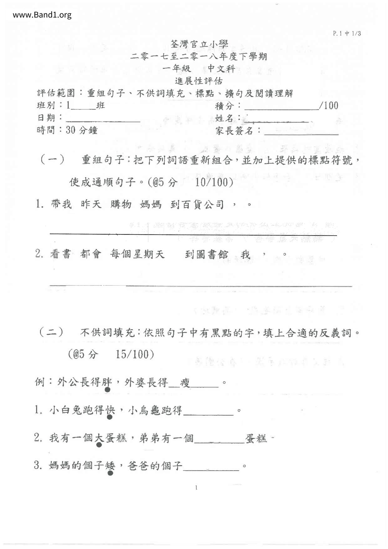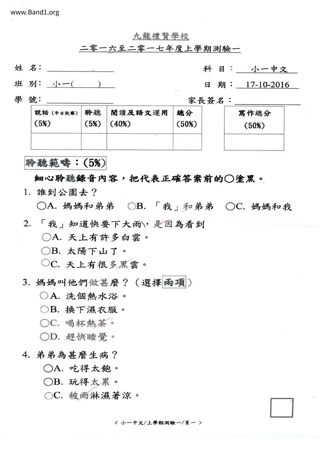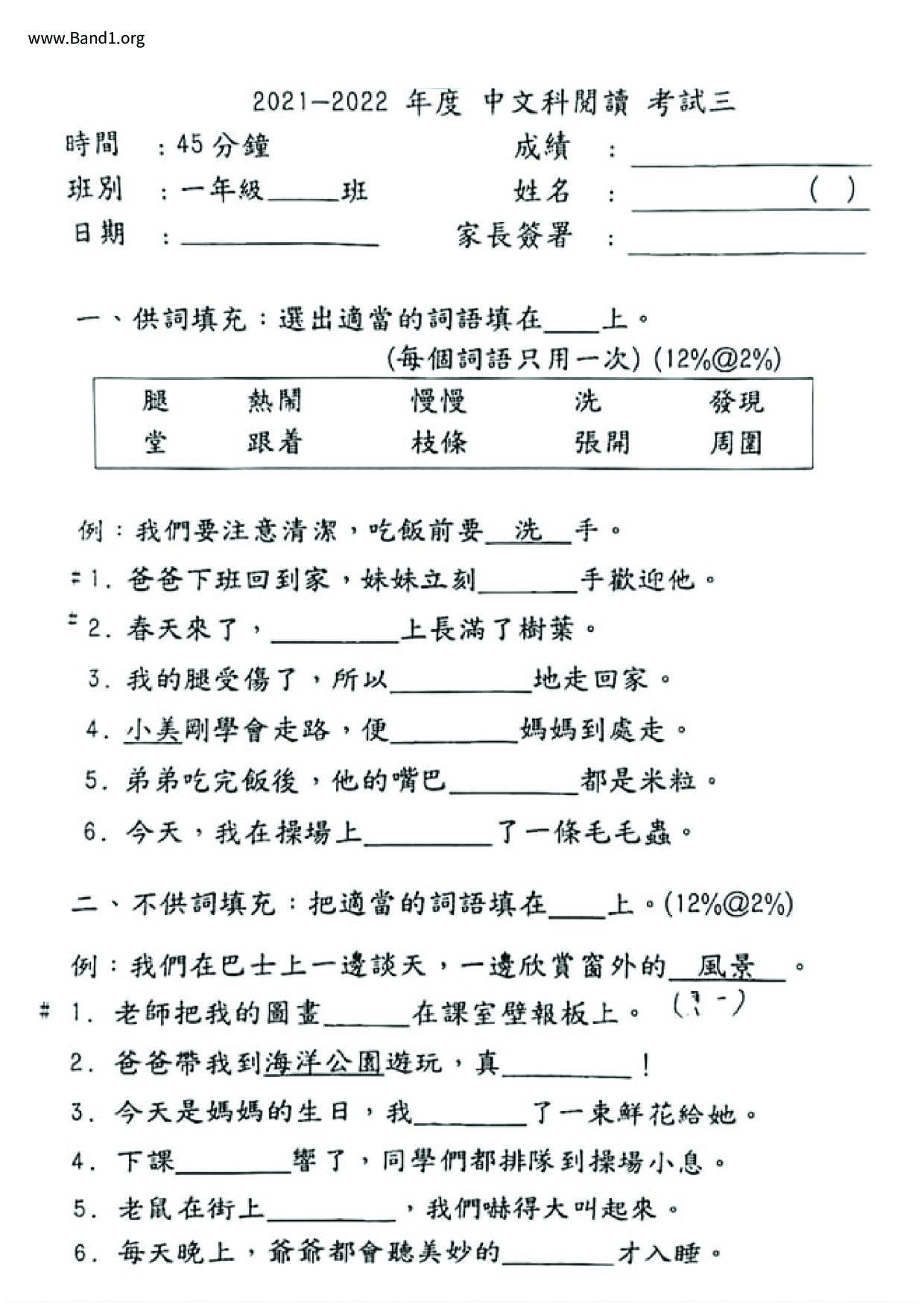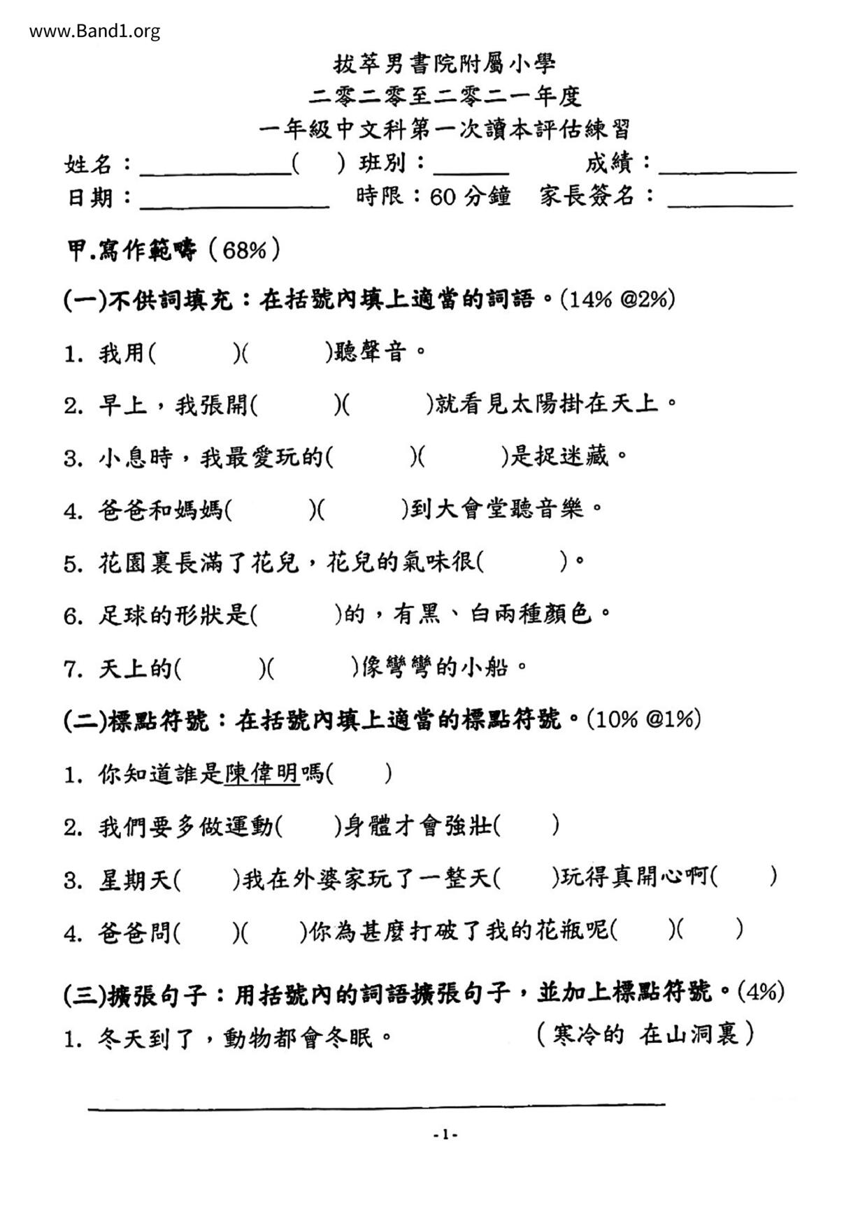 小一 中文 基督教香港信義會馬鞍山信義學校