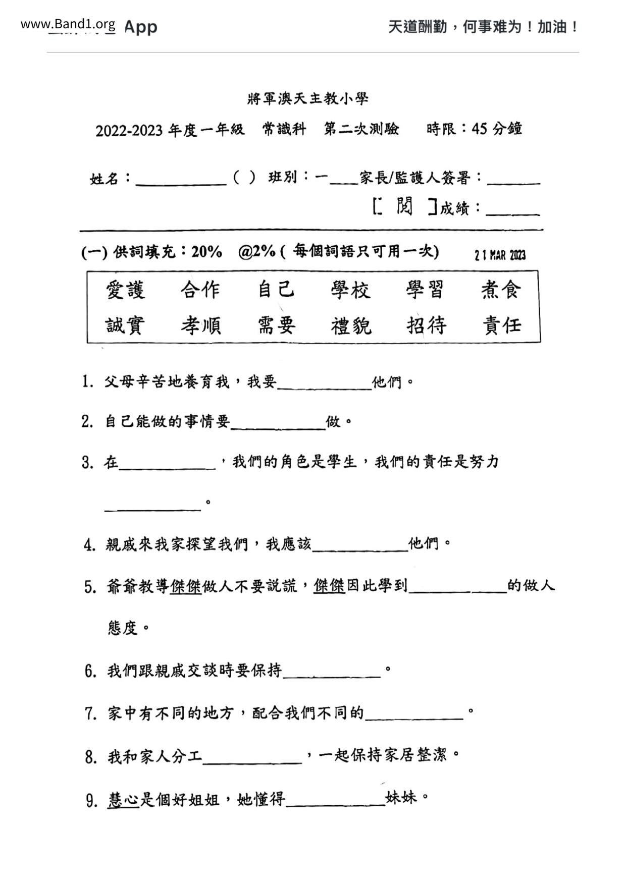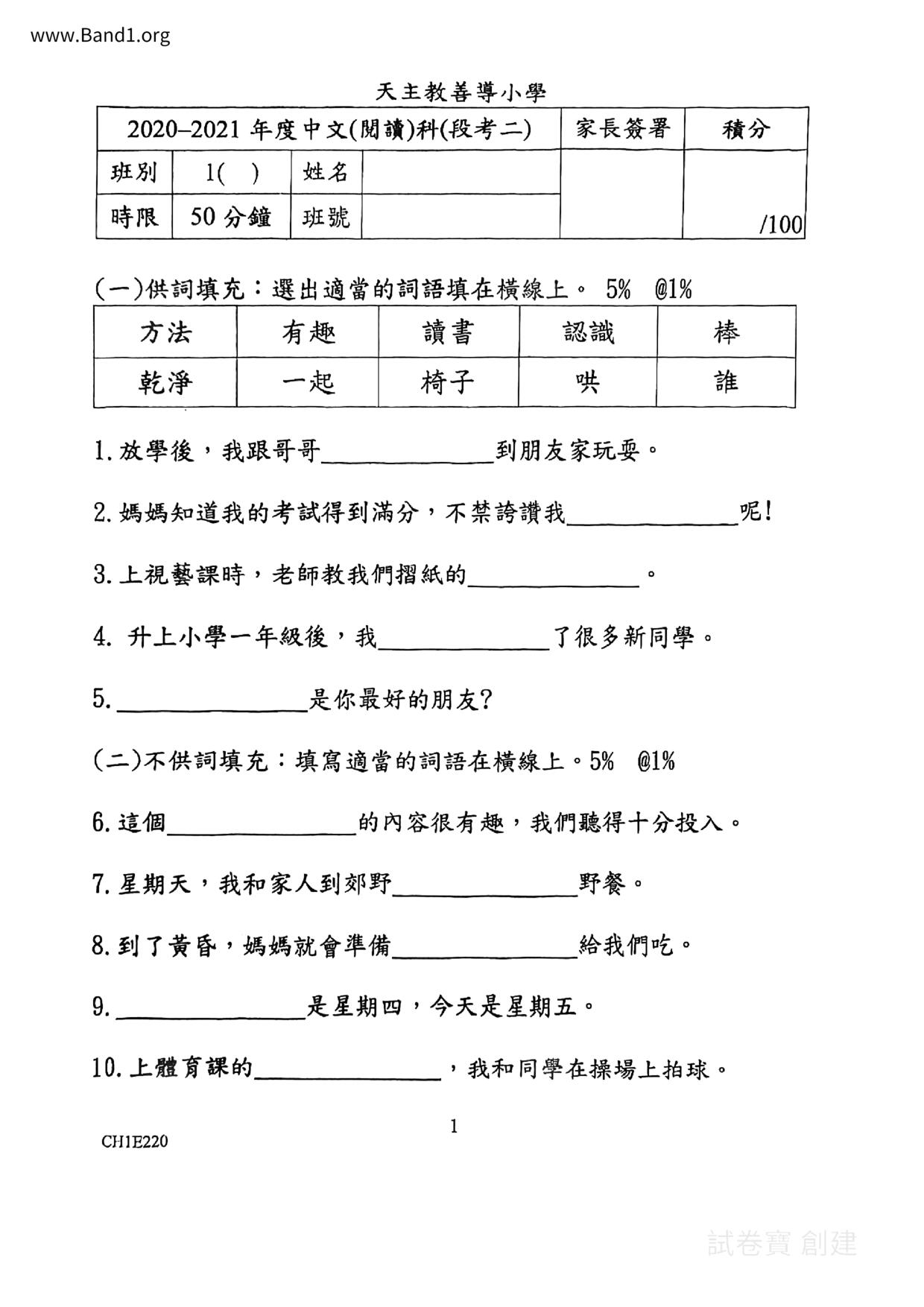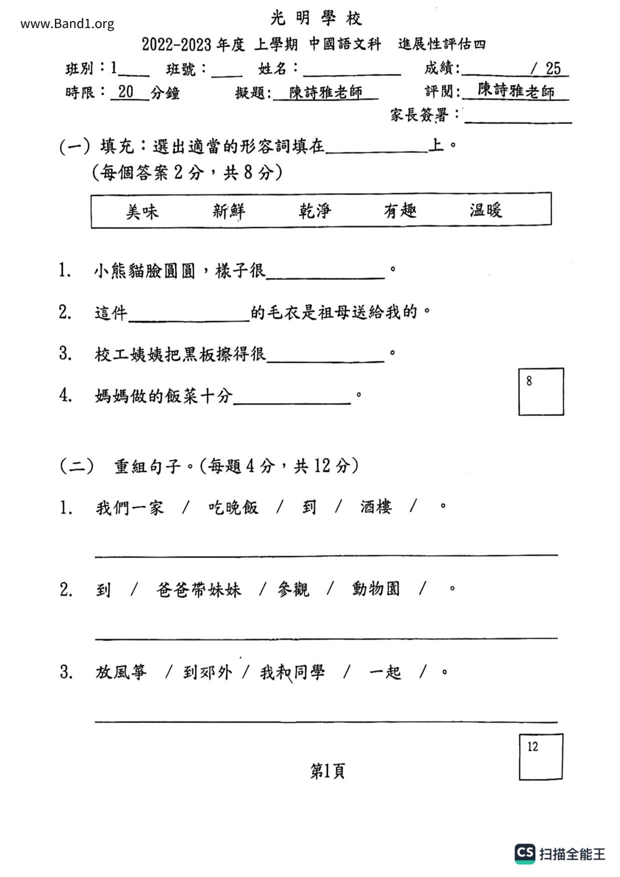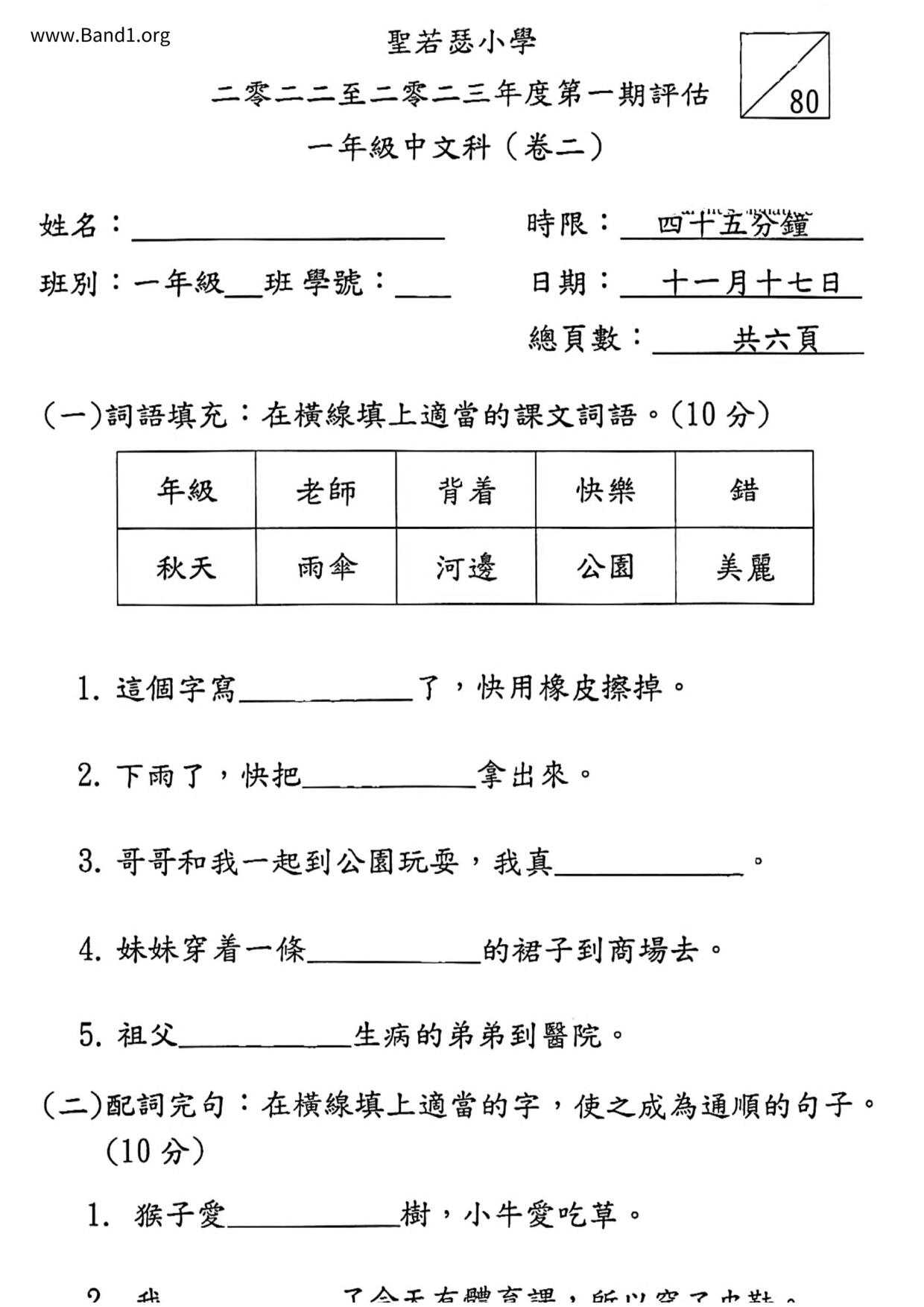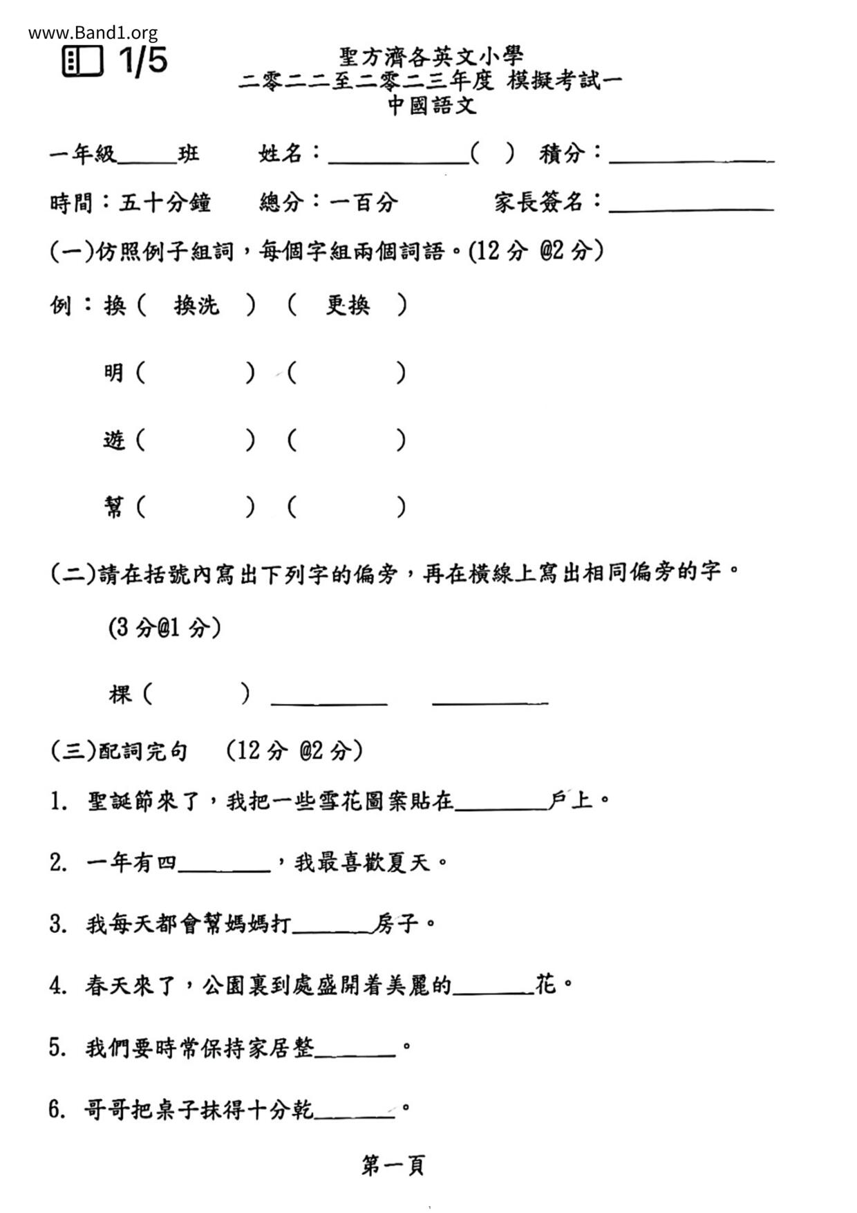 小一 中文 基督教香港信義會馬鞍山信義學校