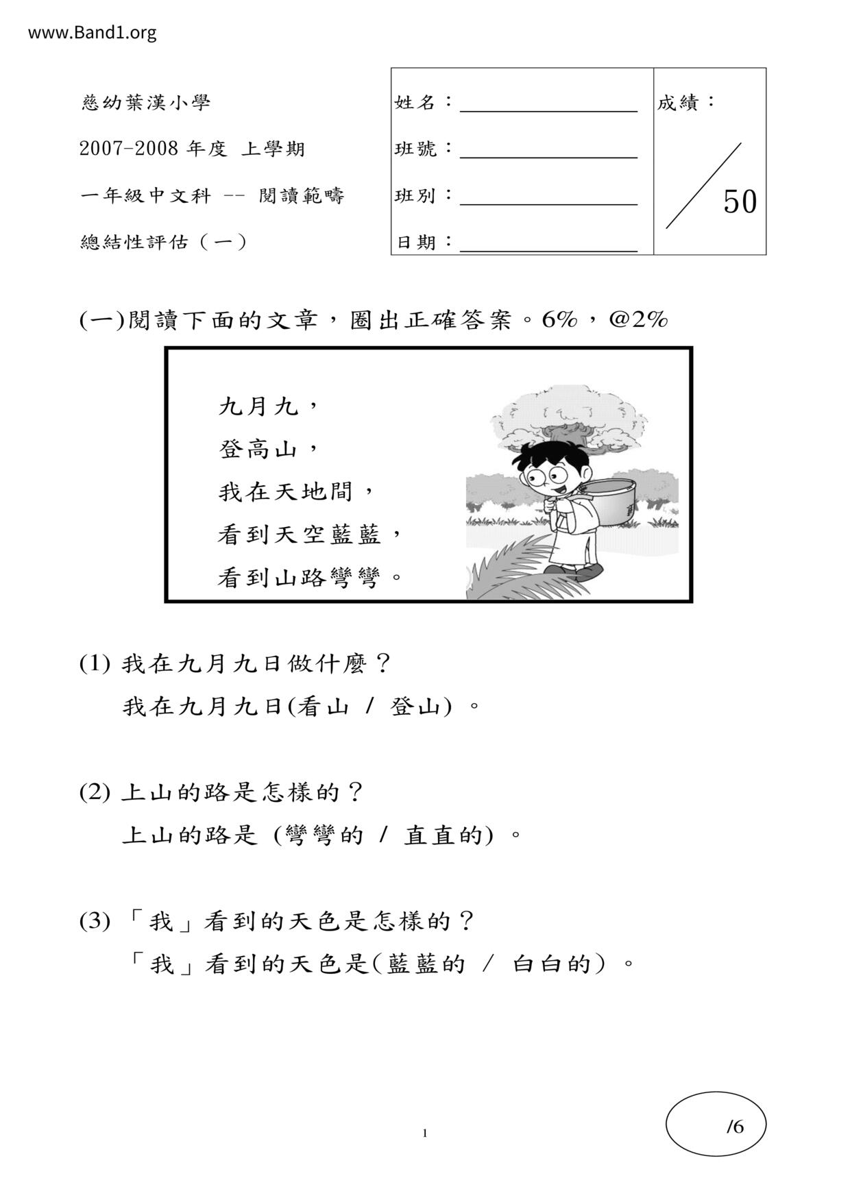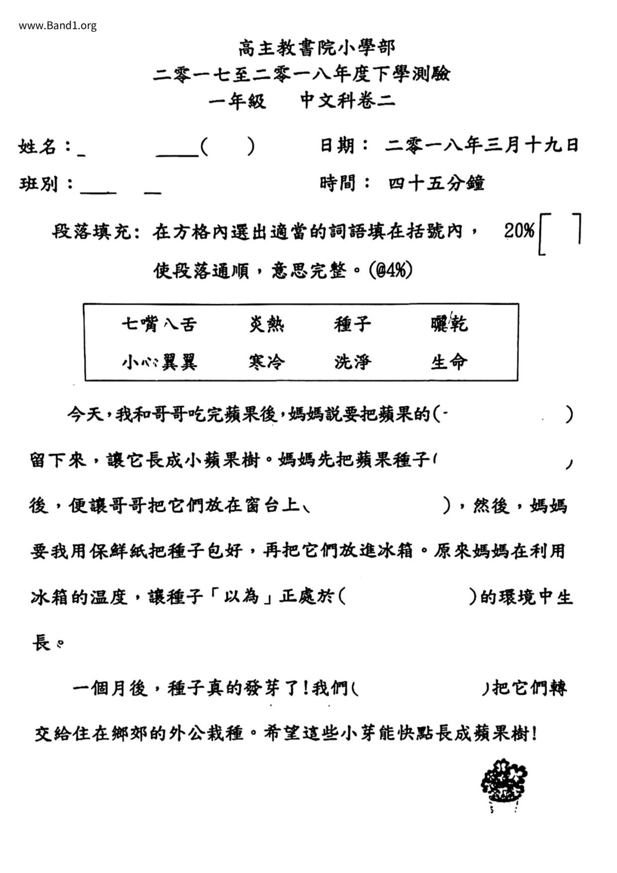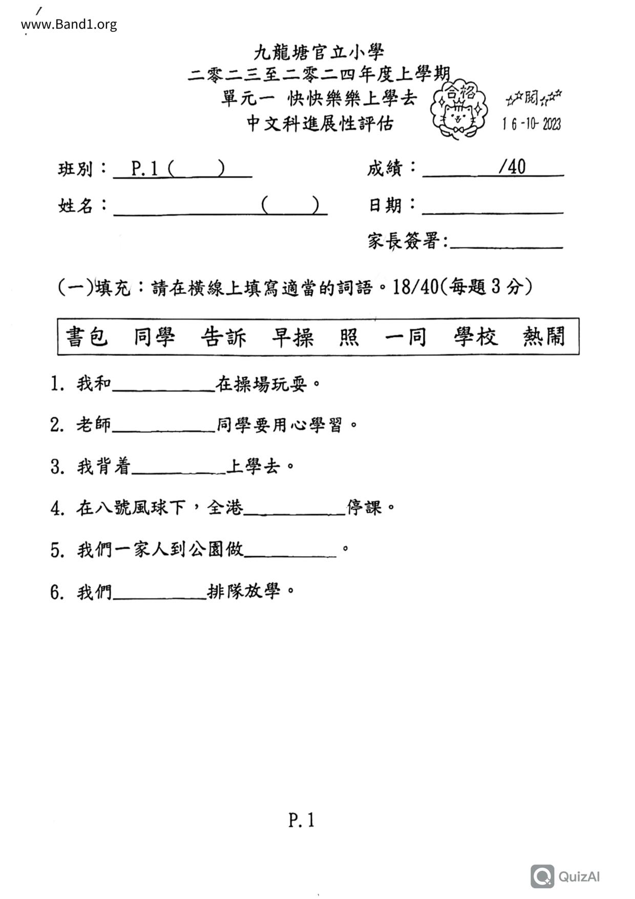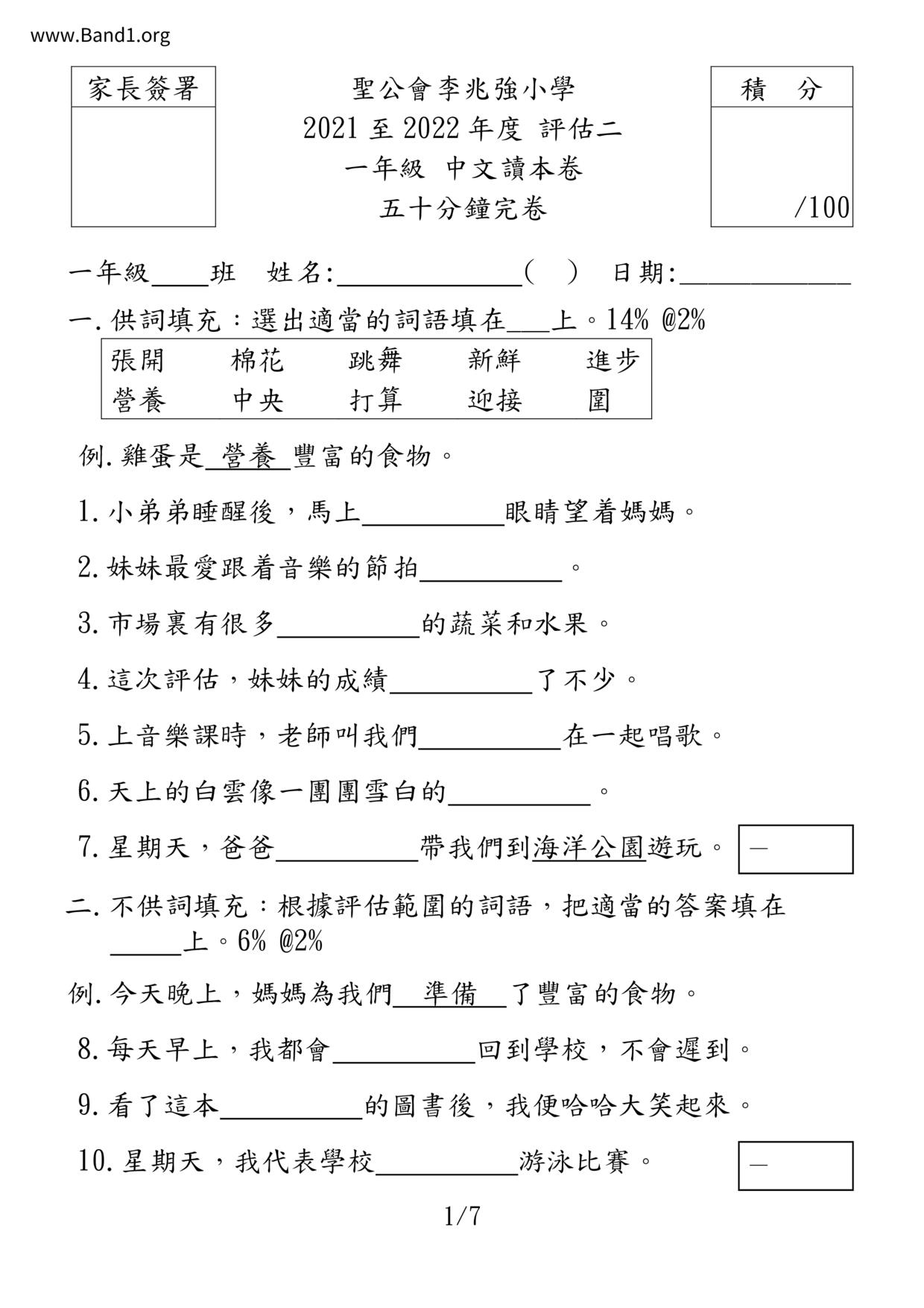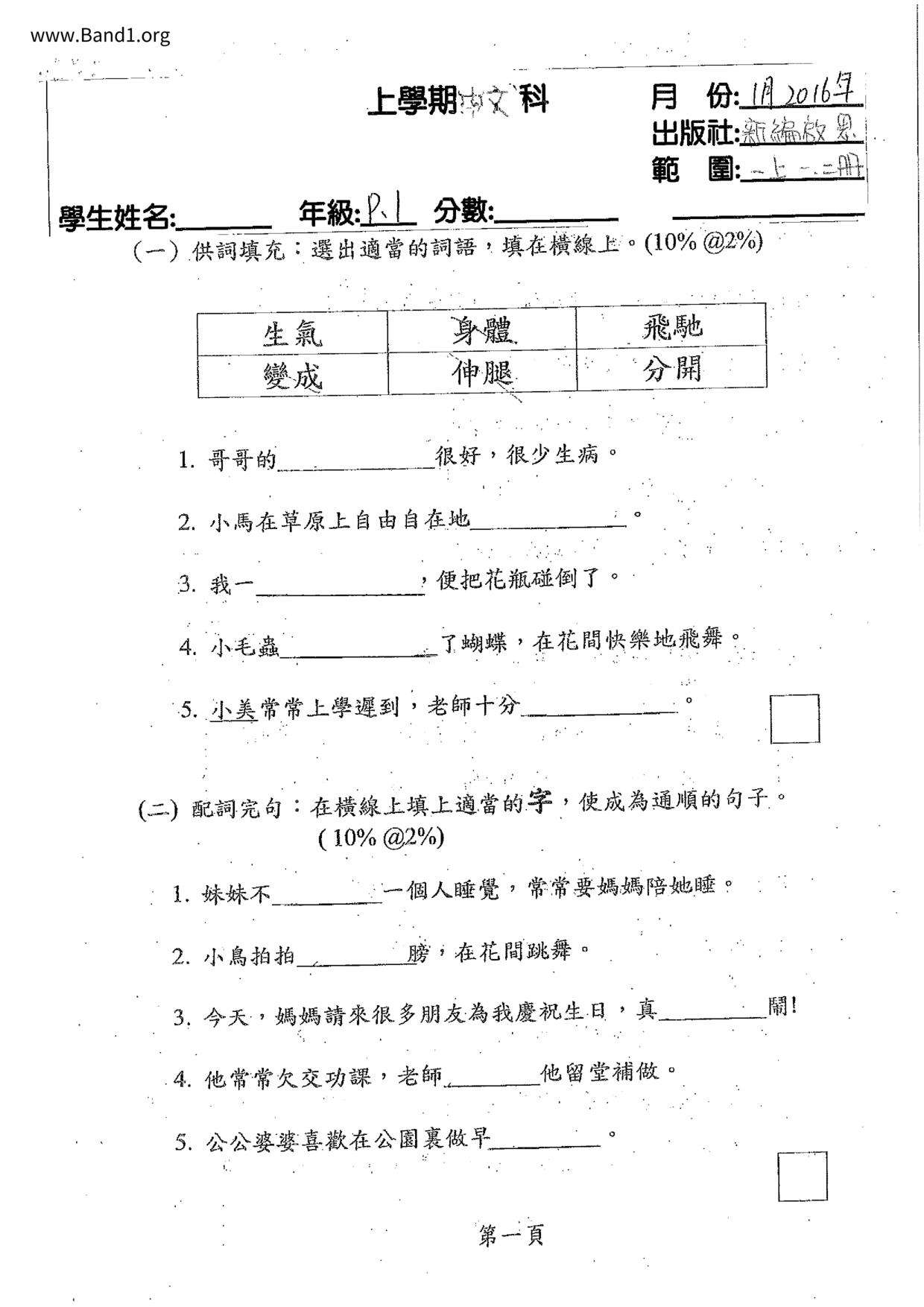 小一 中文 基督教香港信義會馬鞍山信義學校