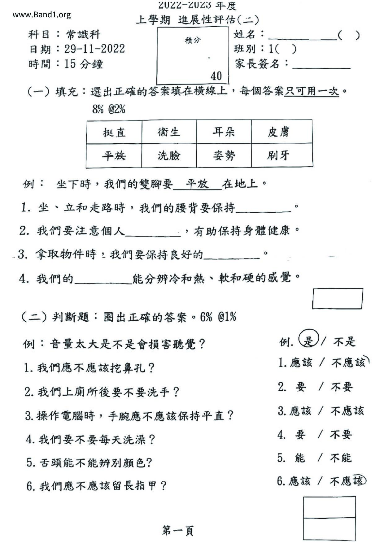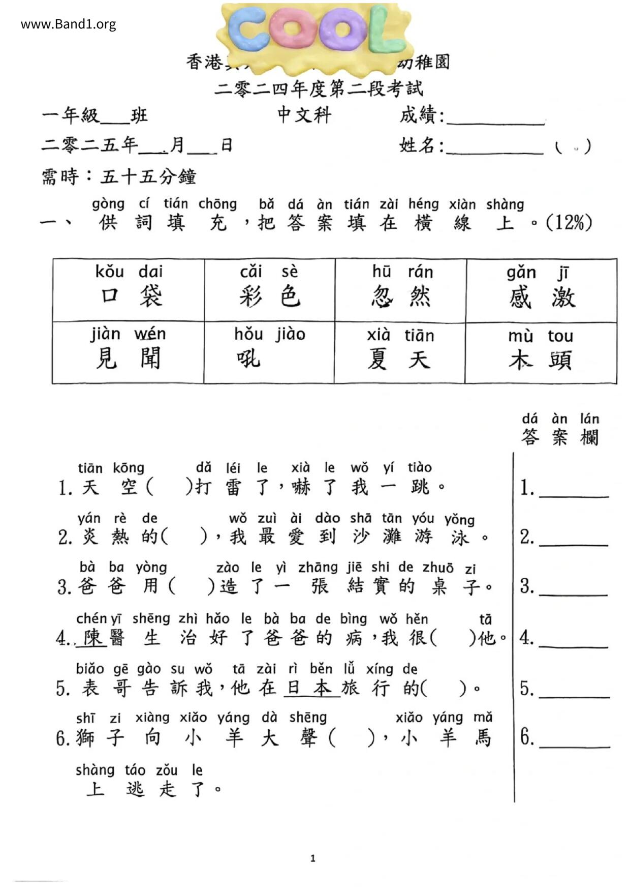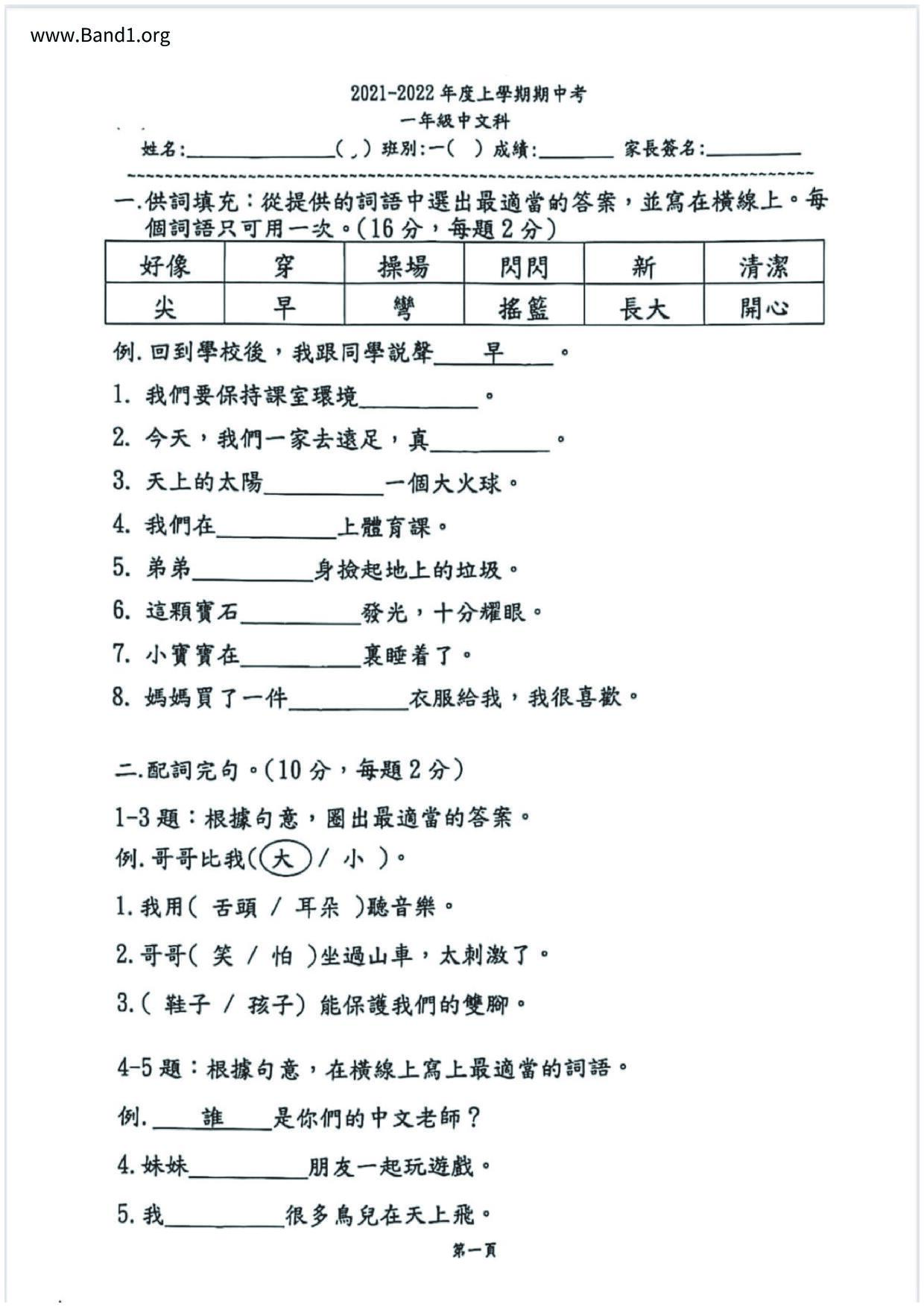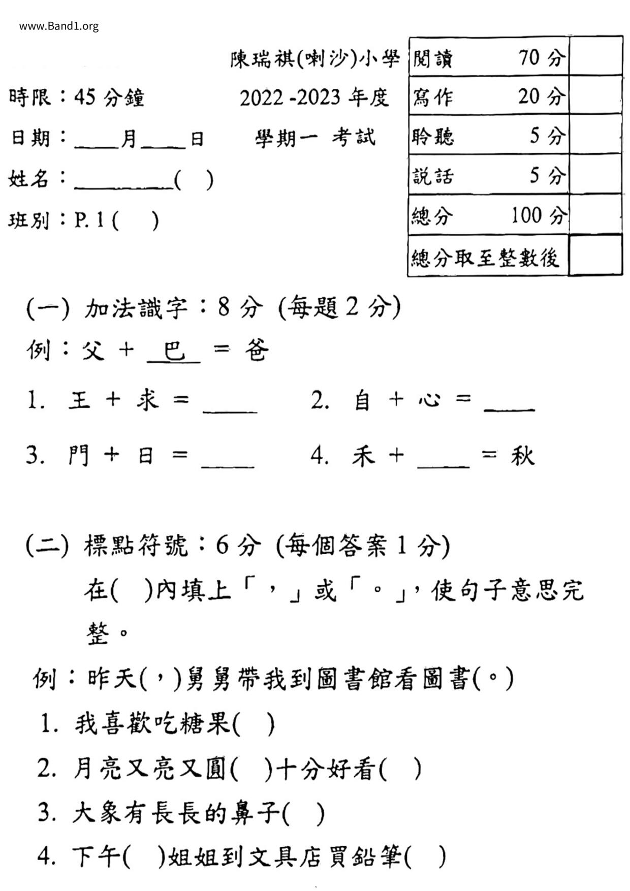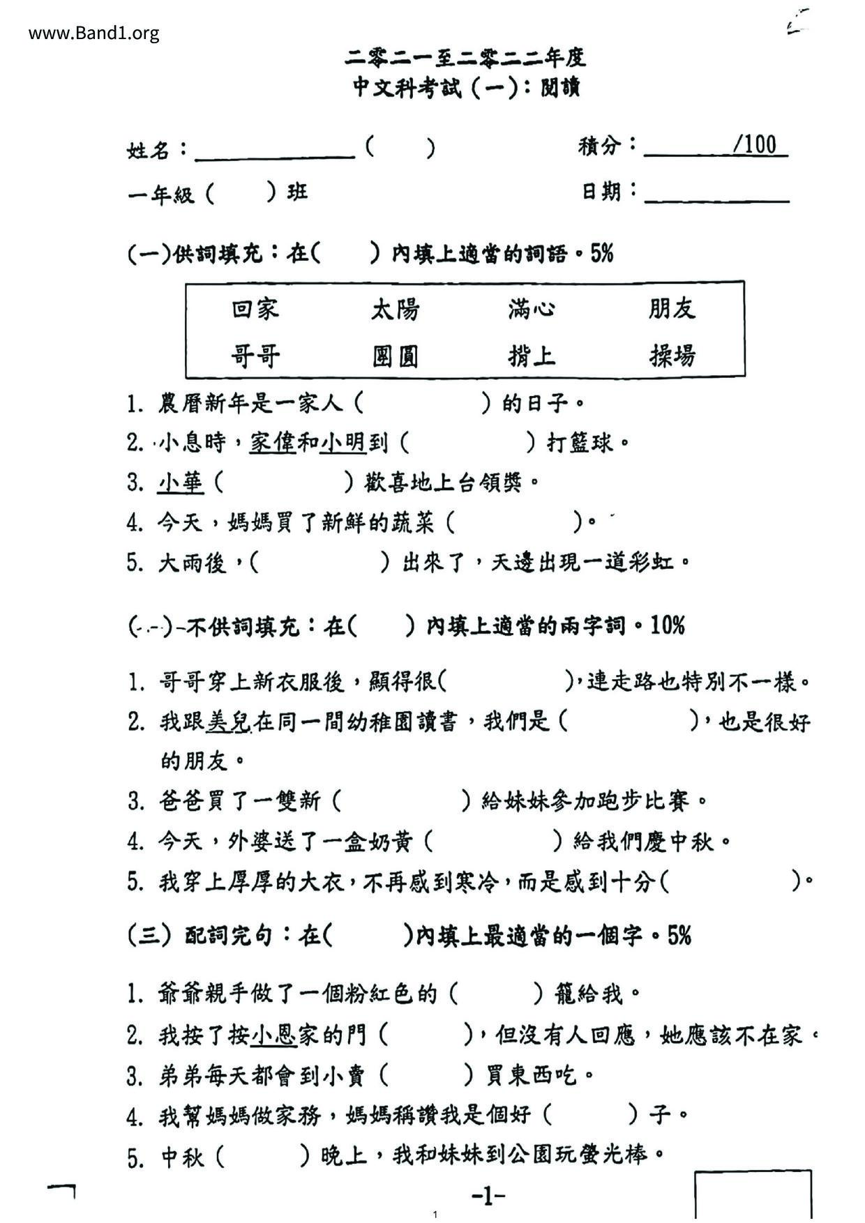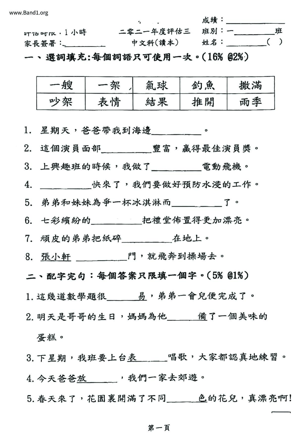 小一 中文 基督教香港信義會馬鞍山信義學校