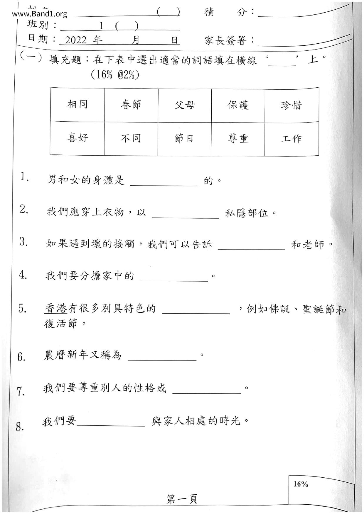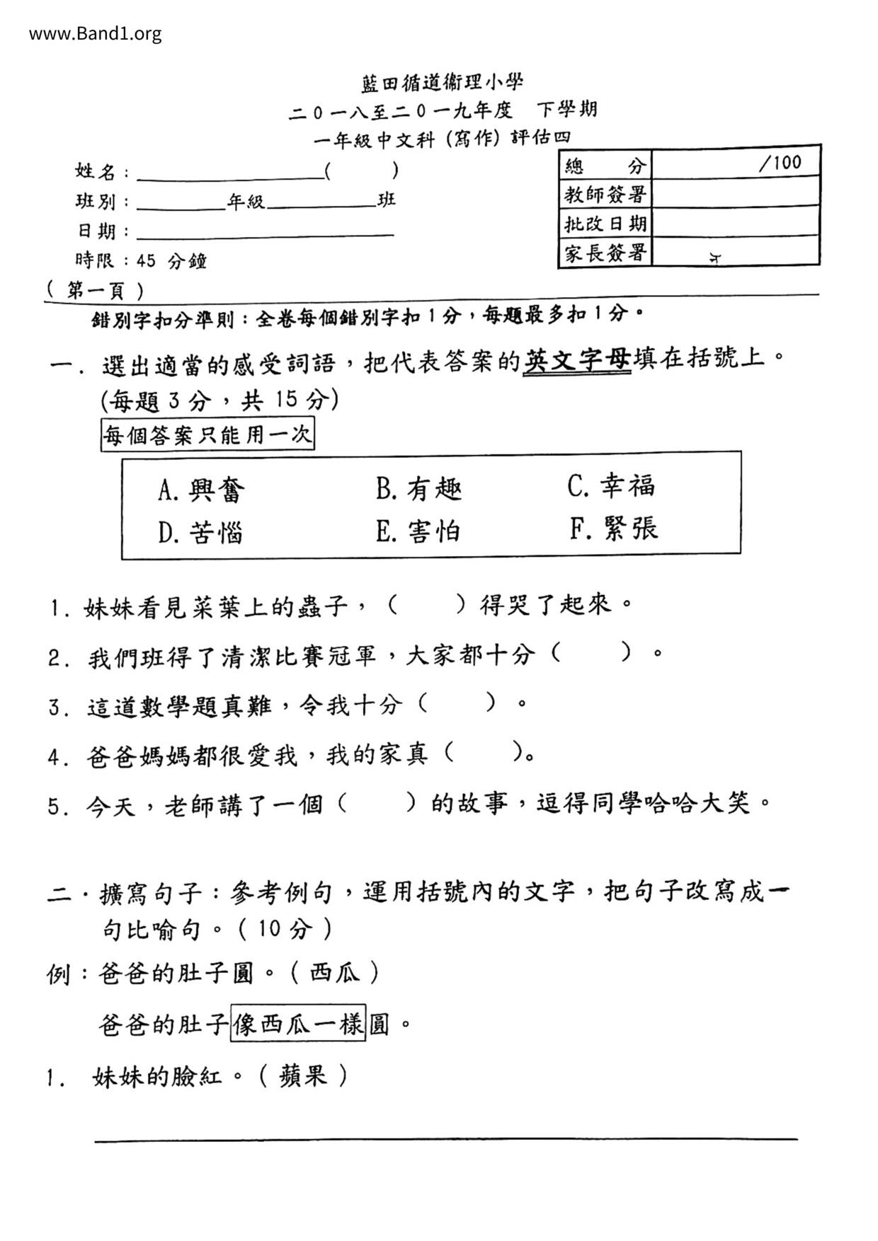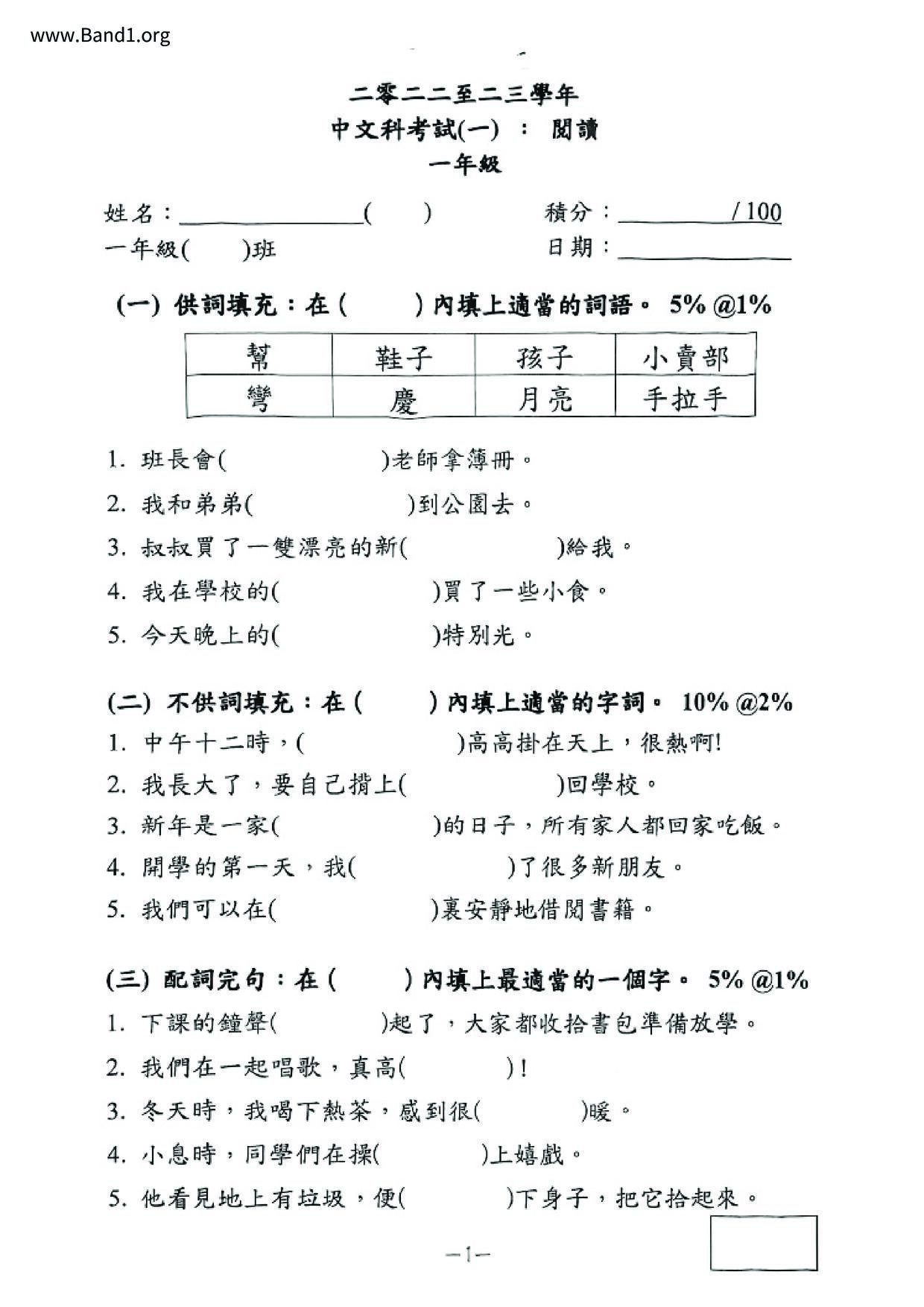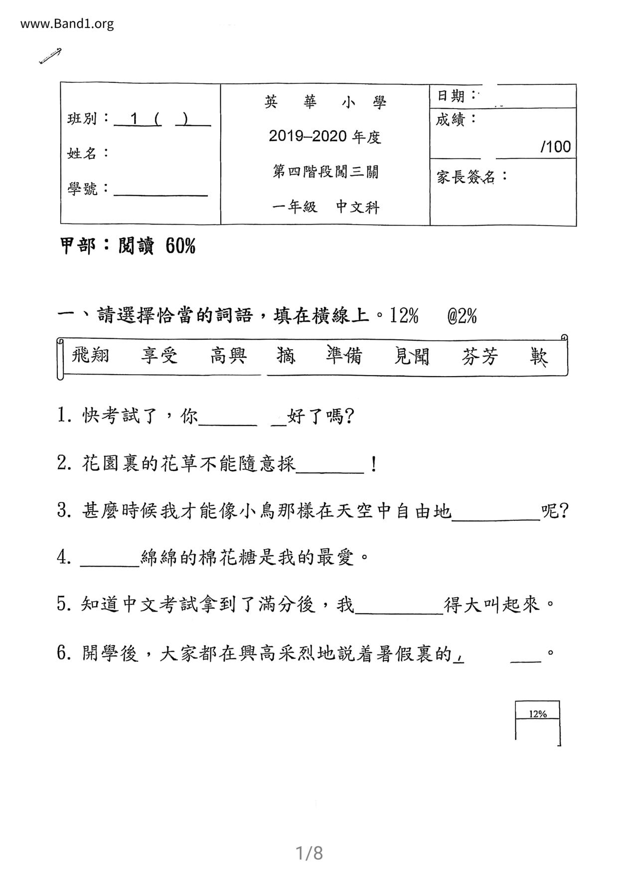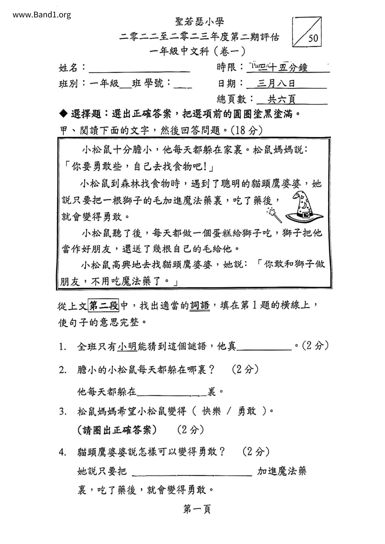 小一 中文 基督教香港信義會馬鞍山信義學校