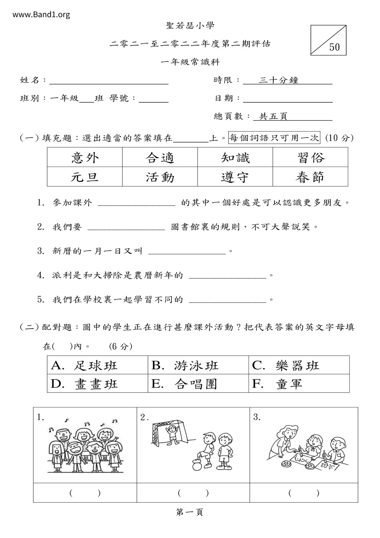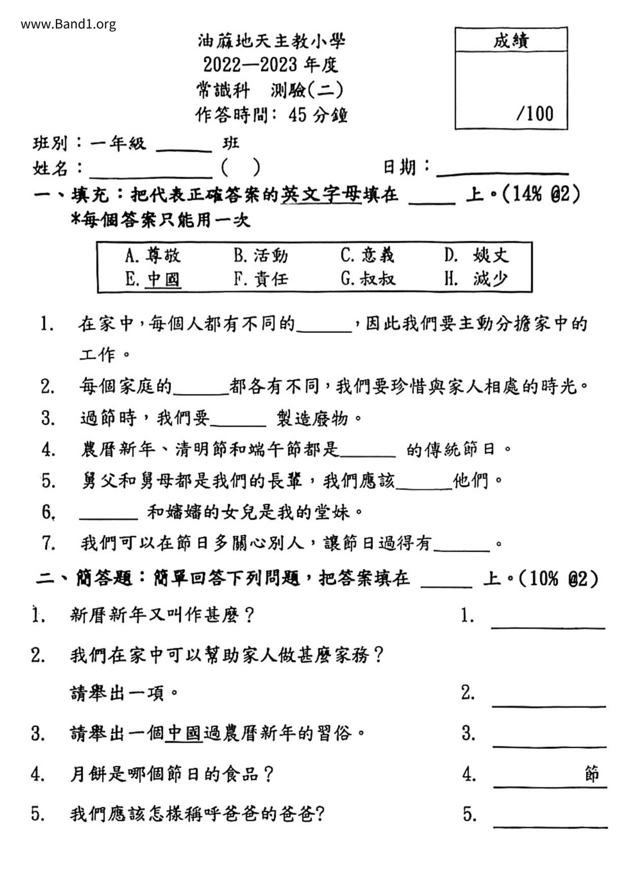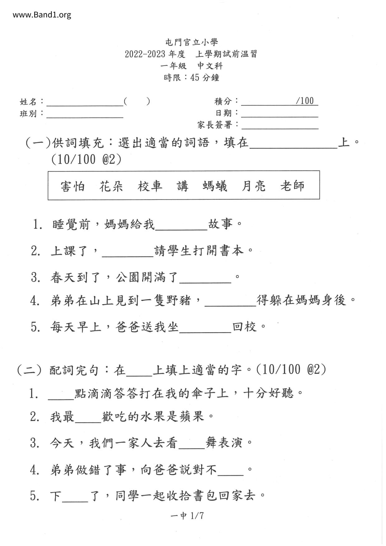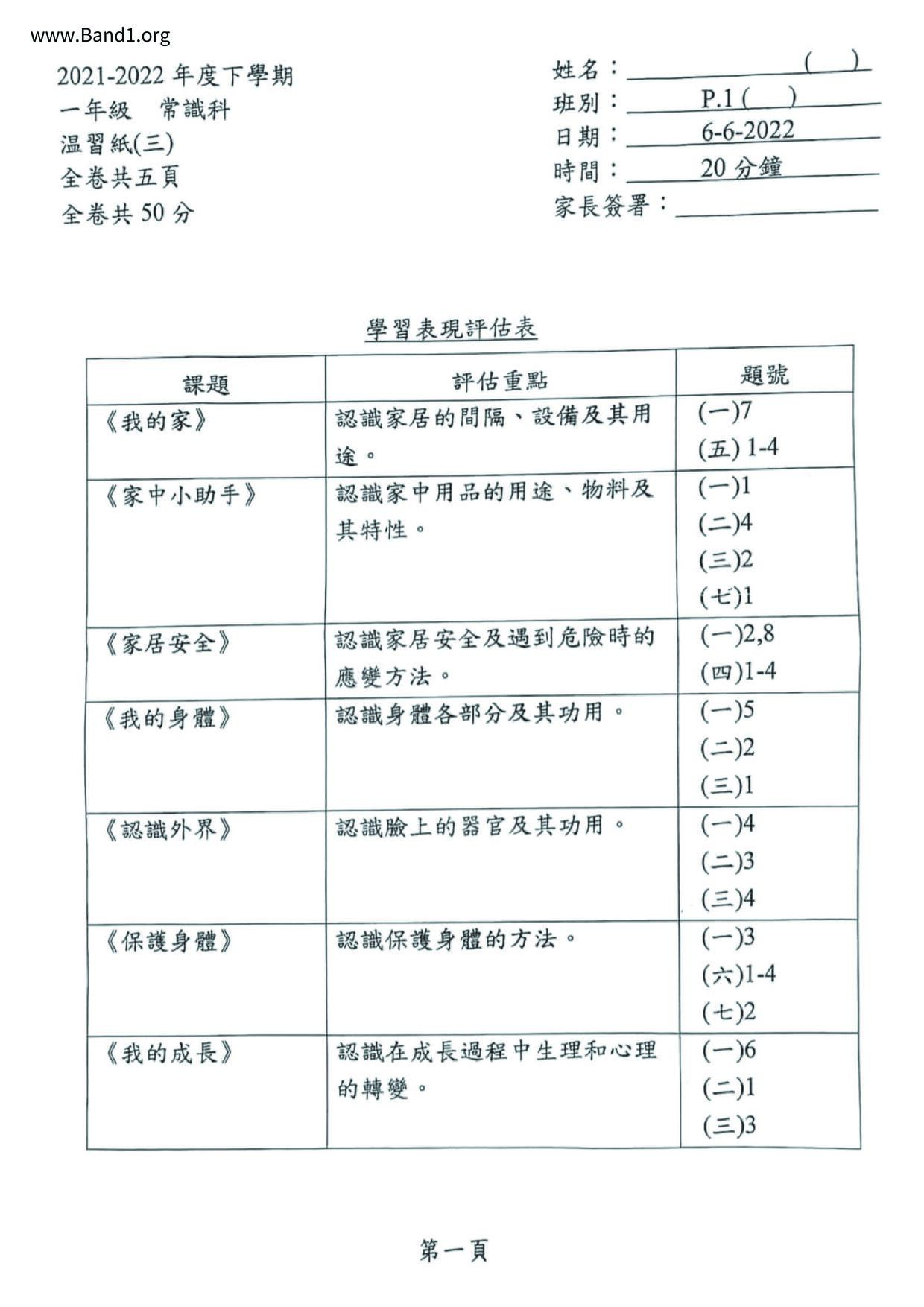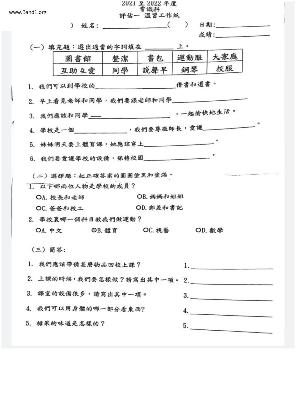 小一 中文 基督教香港信義會馬鞍山信義學校