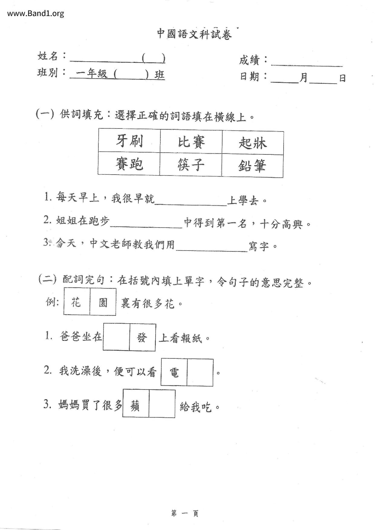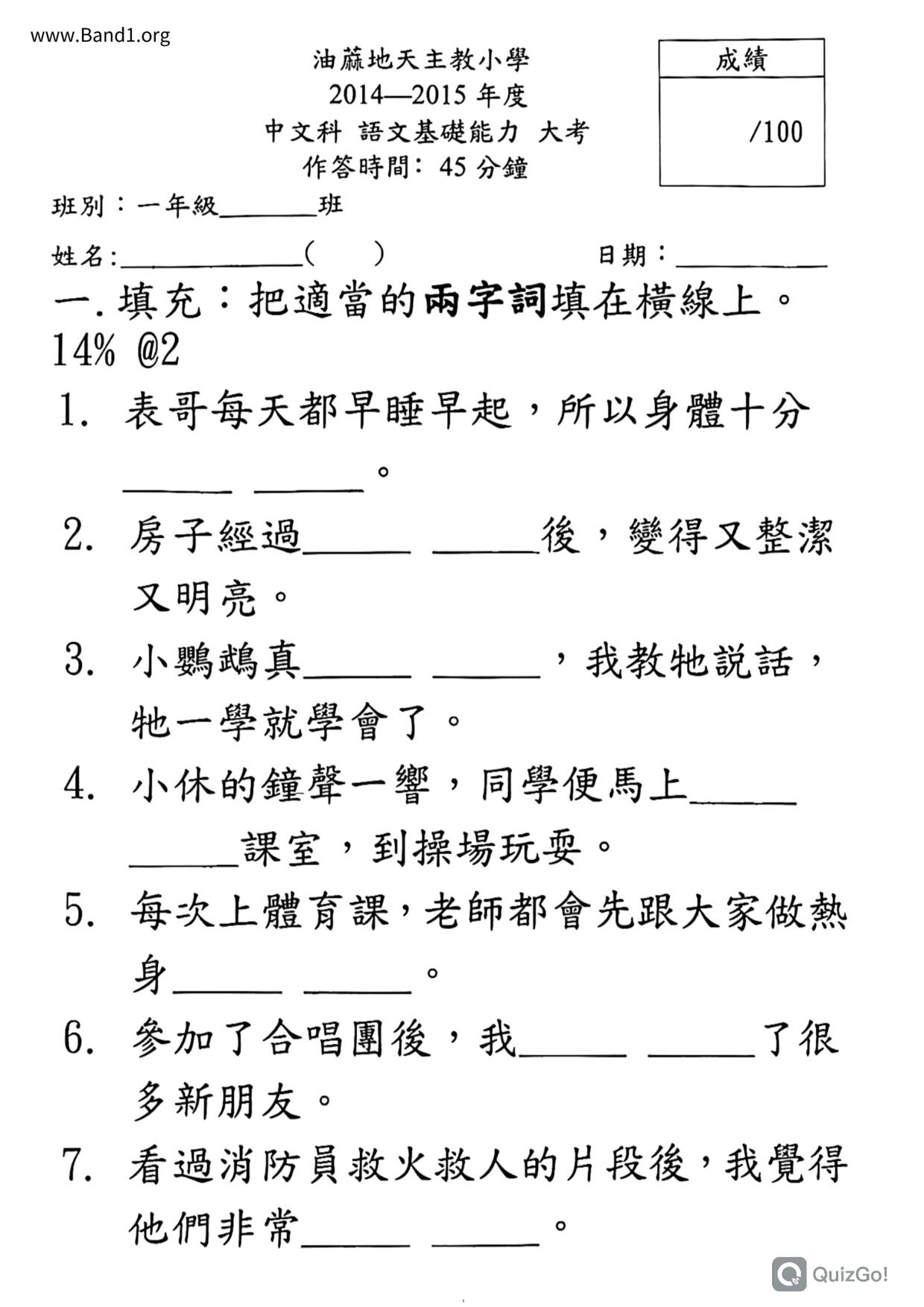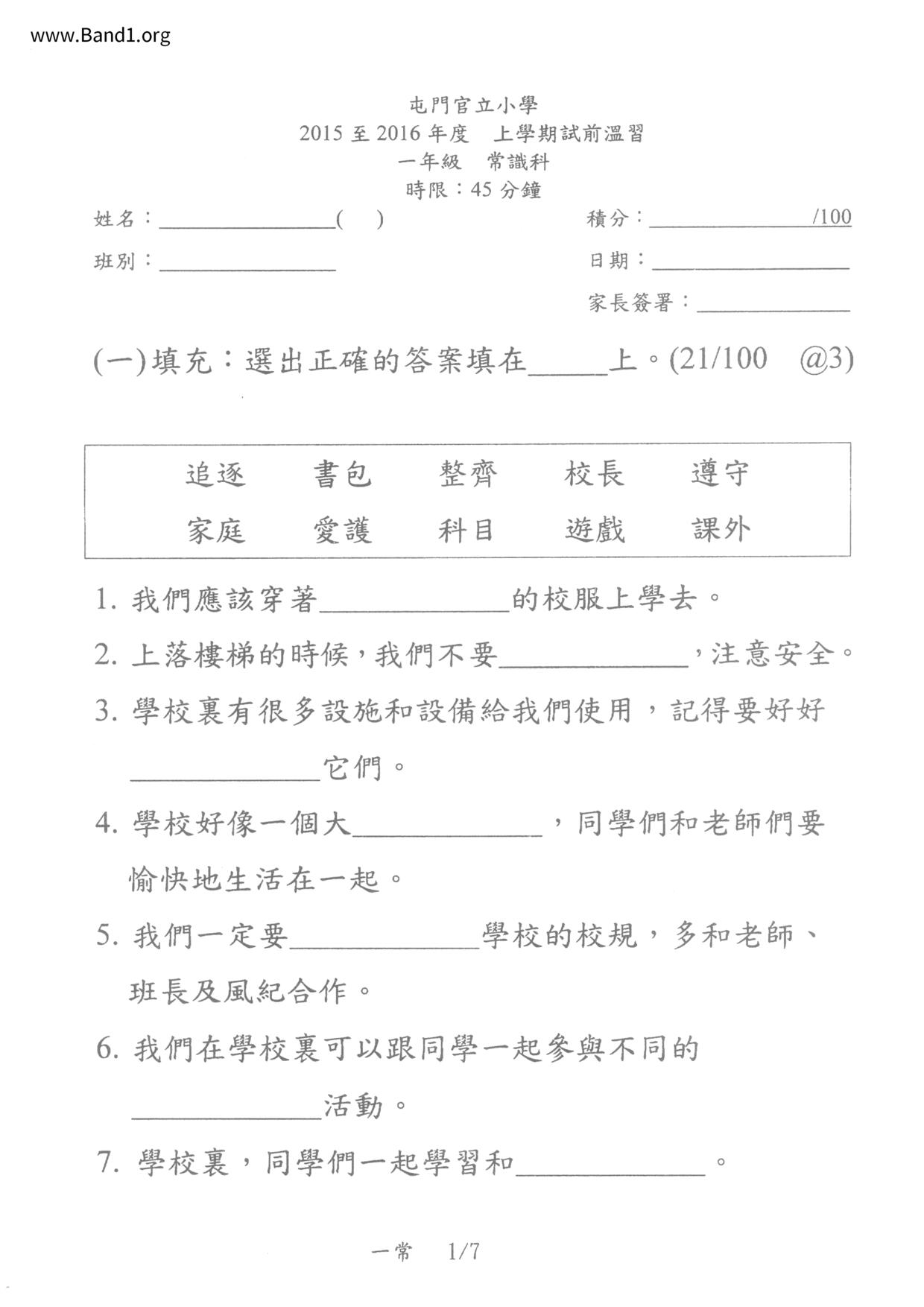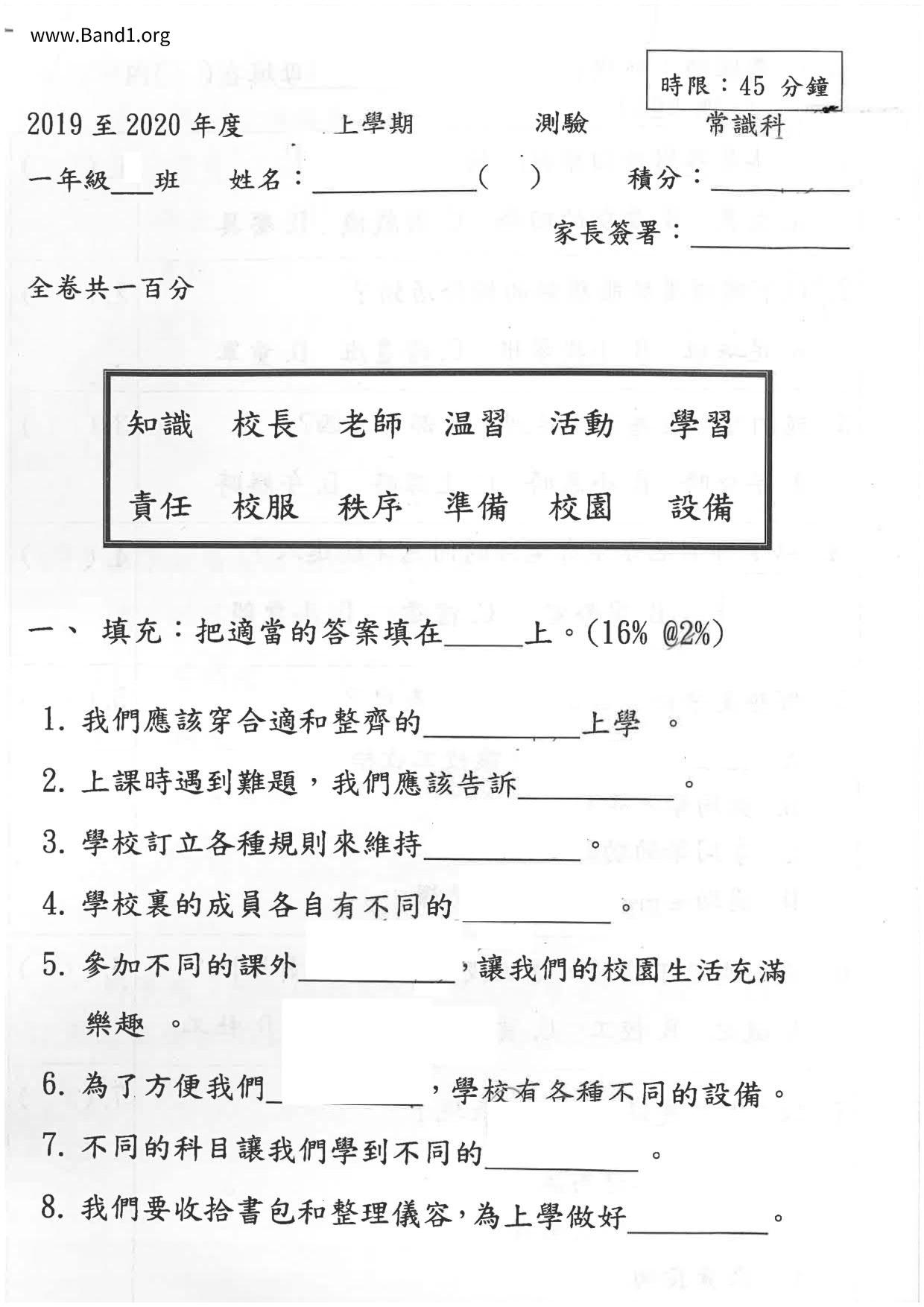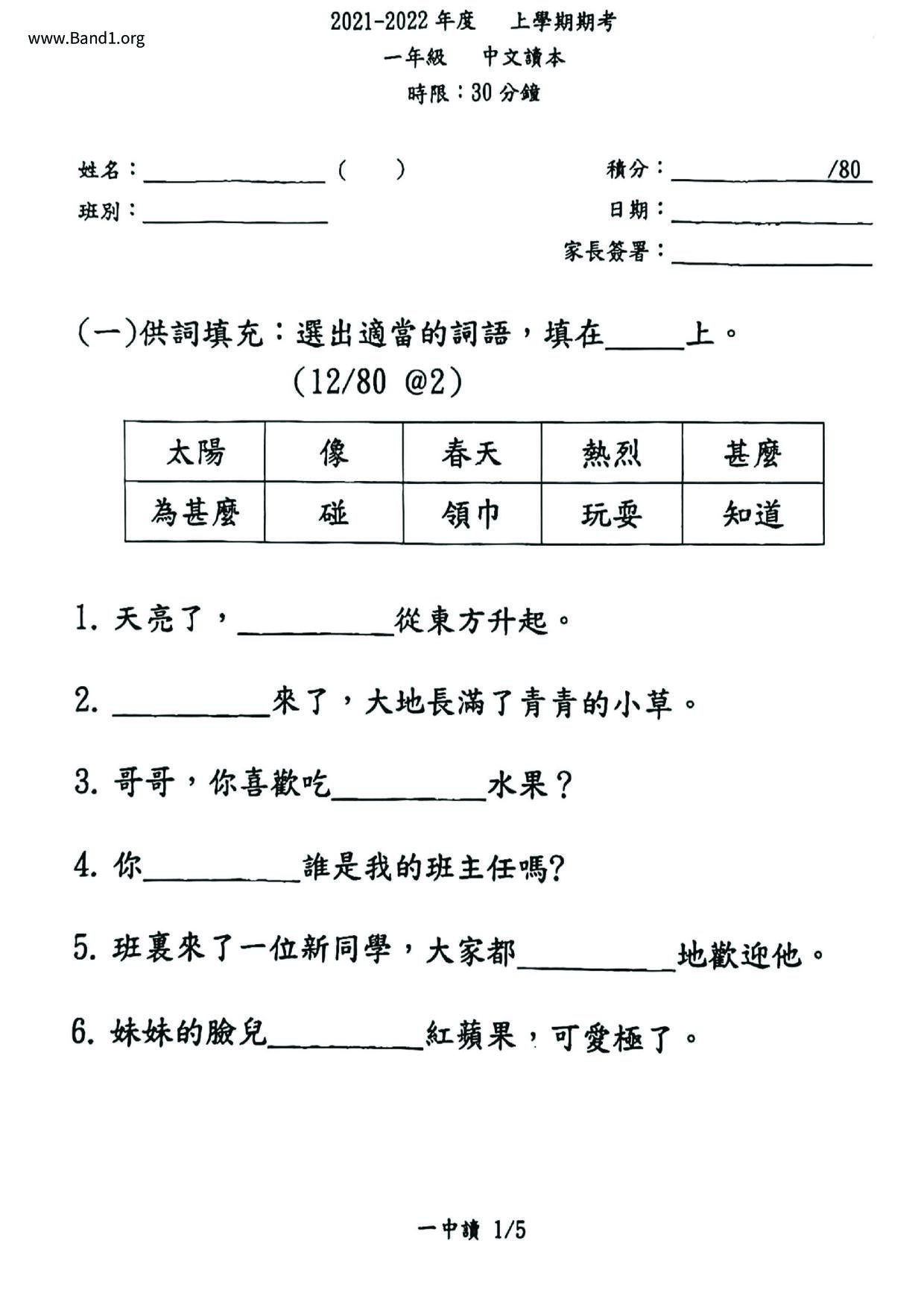 小一 中文 基督教香港信義會馬鞍山信義學校