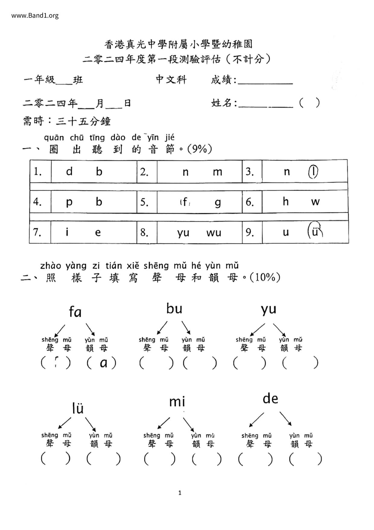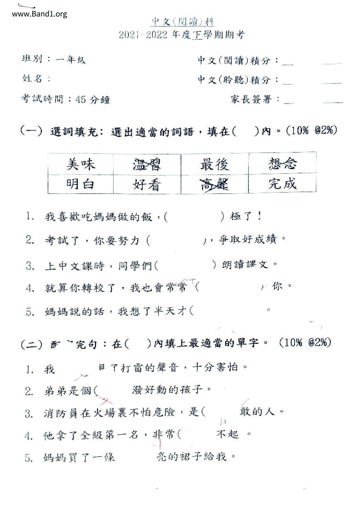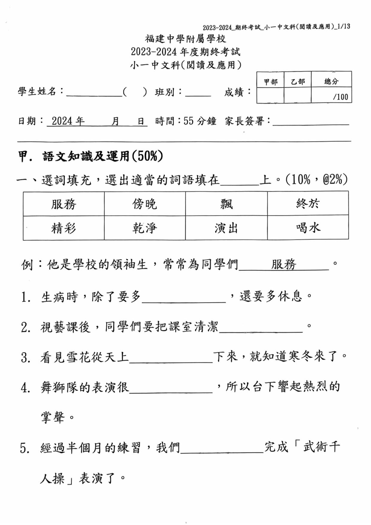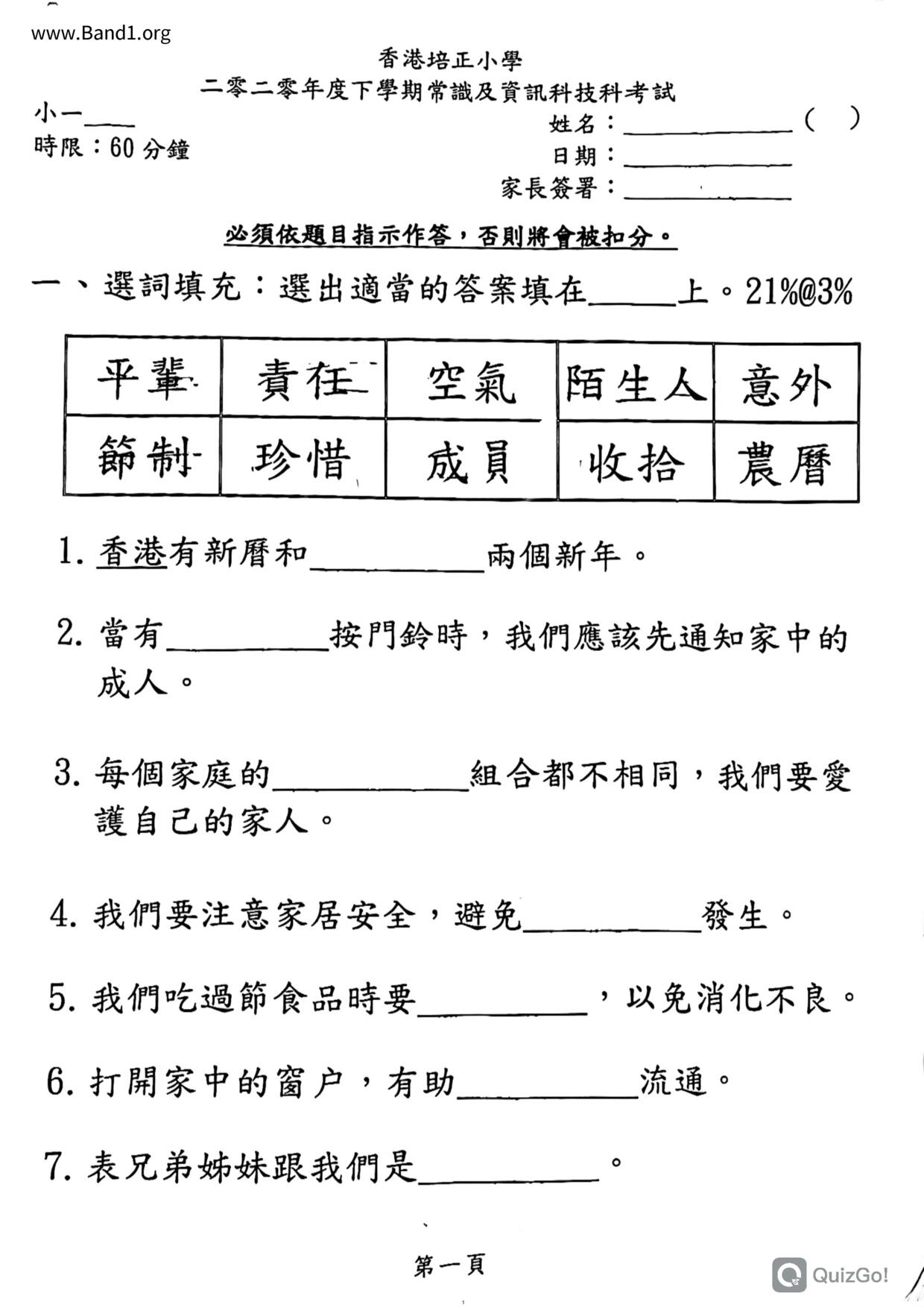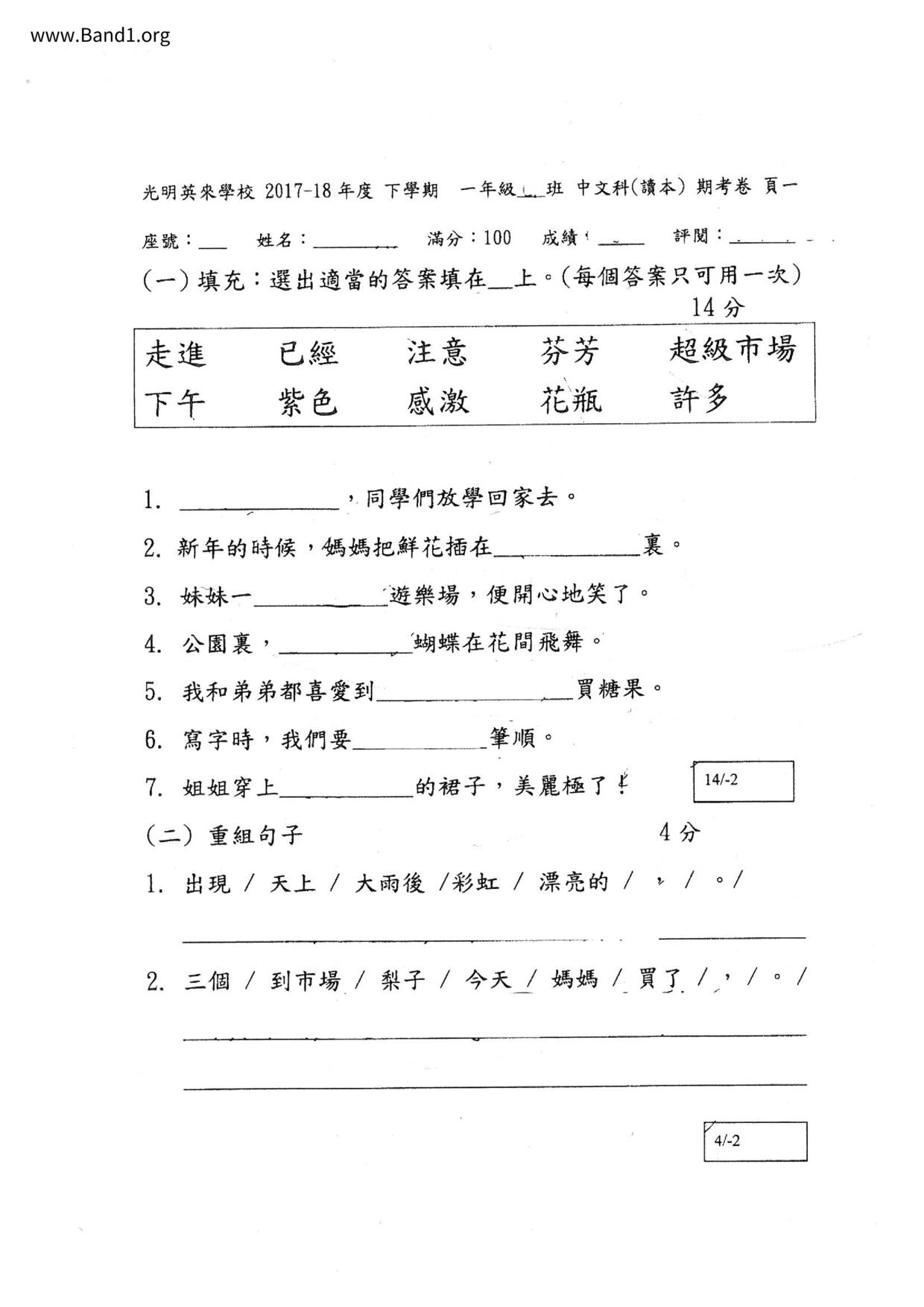 小一 中文 基督教香港信義會馬鞍山信義學校