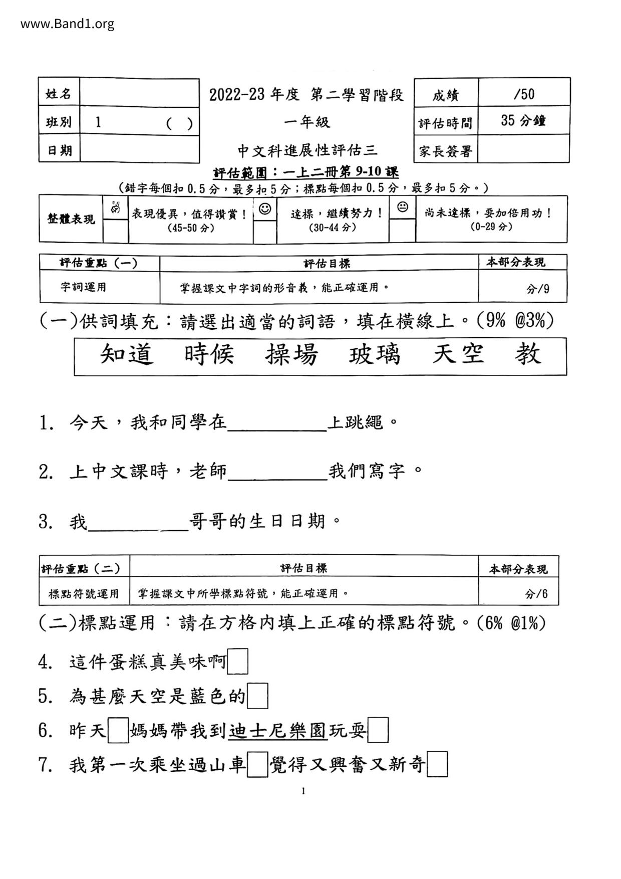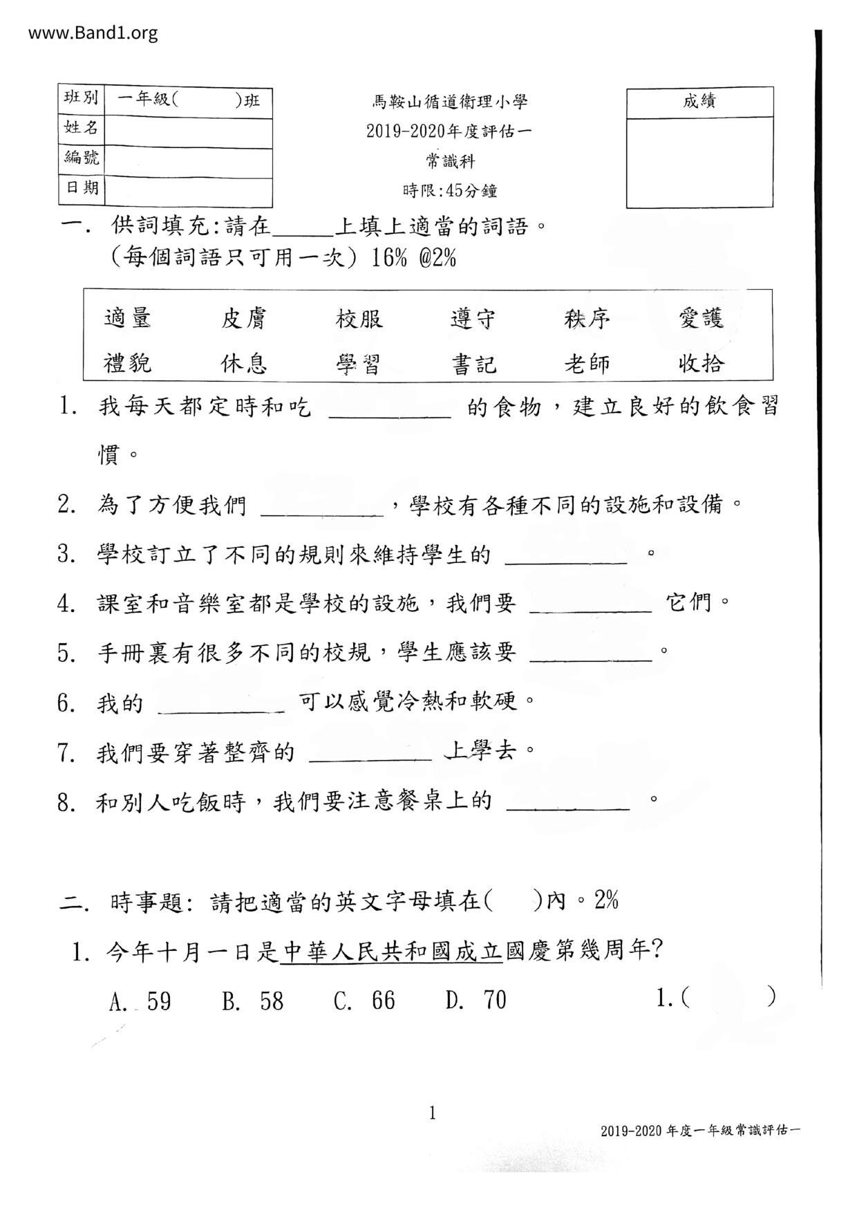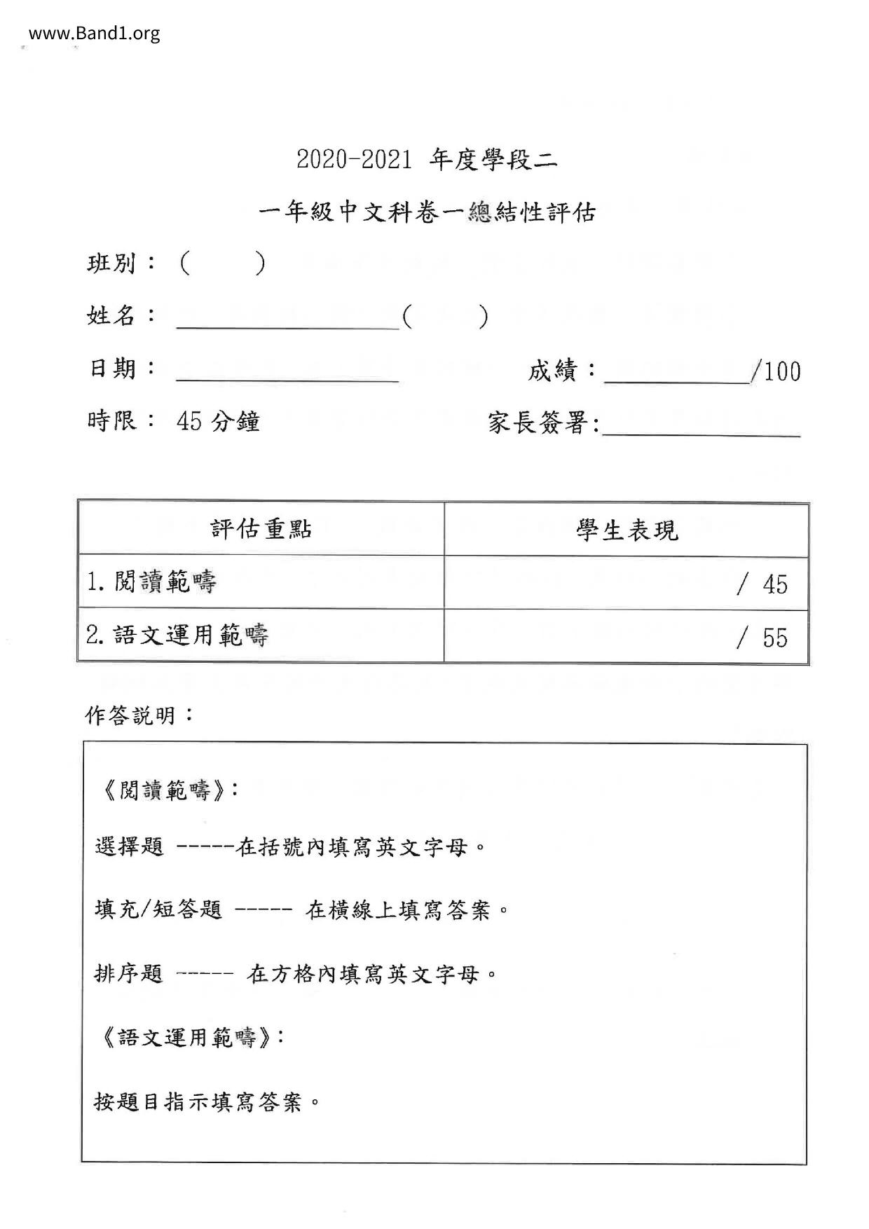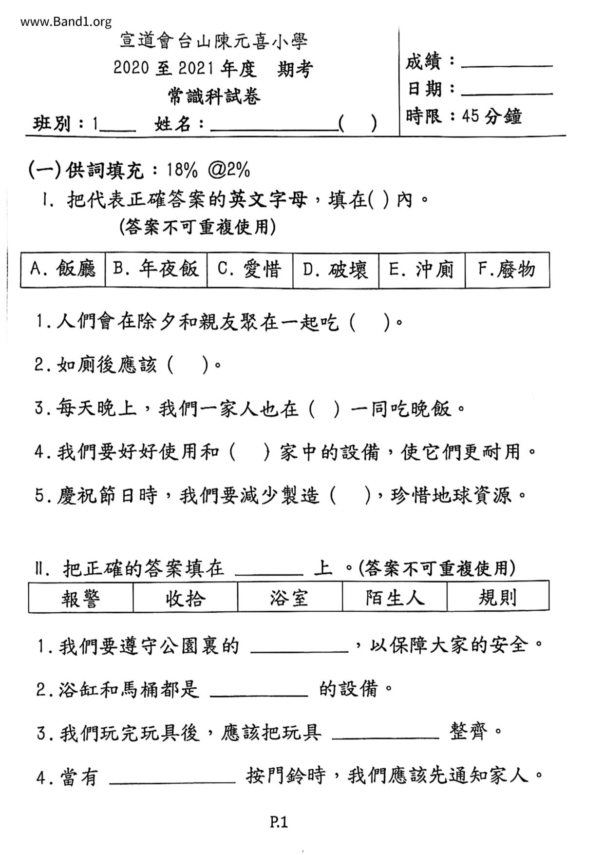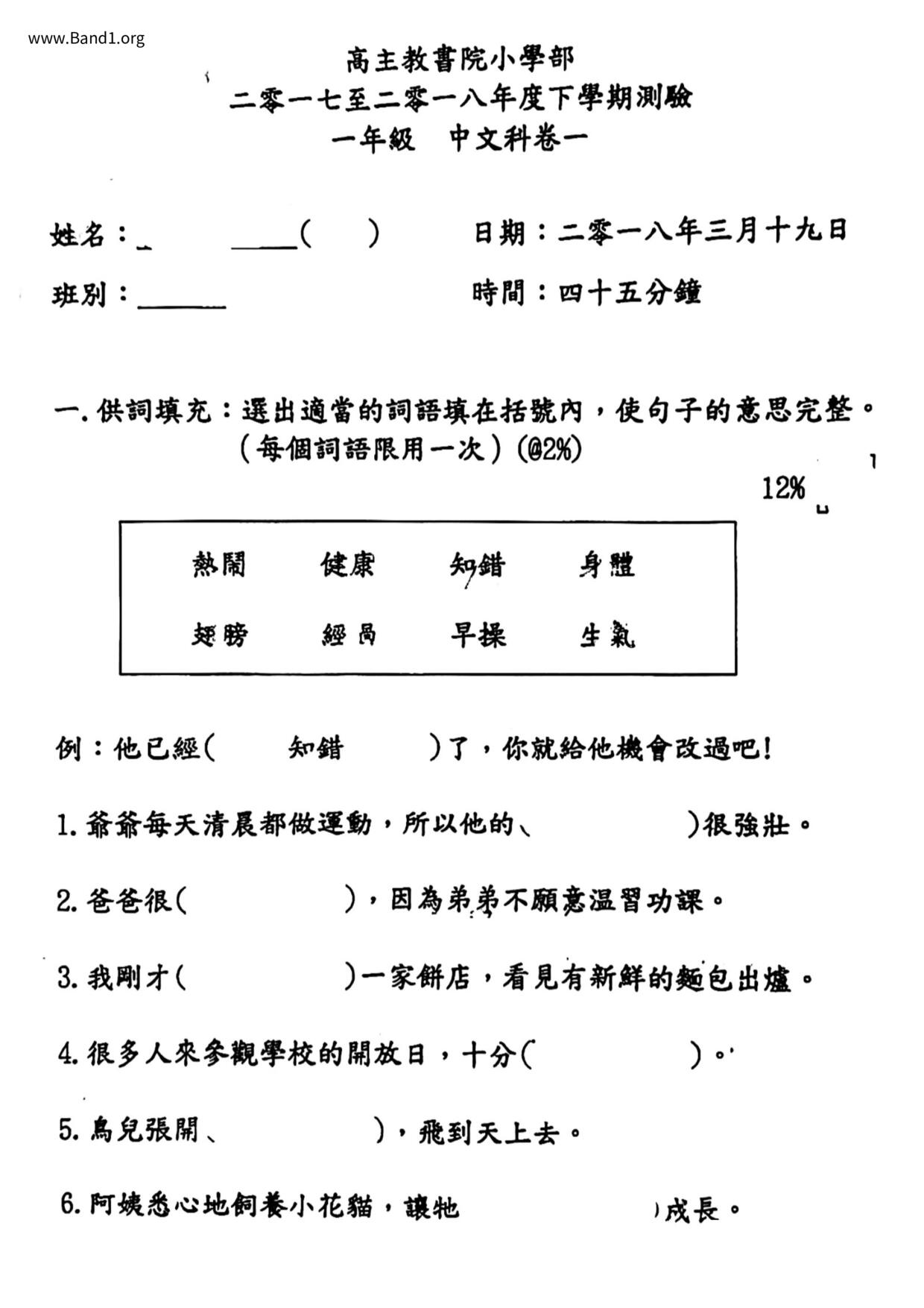 小一 中文 基督教香港信義會馬鞍山信義學校