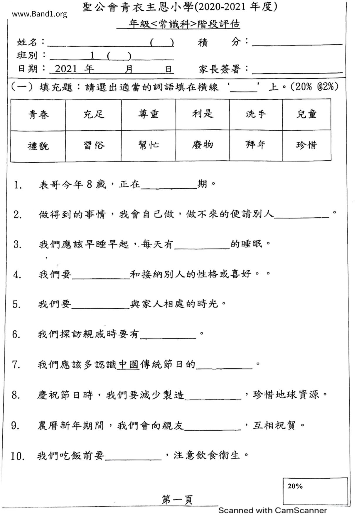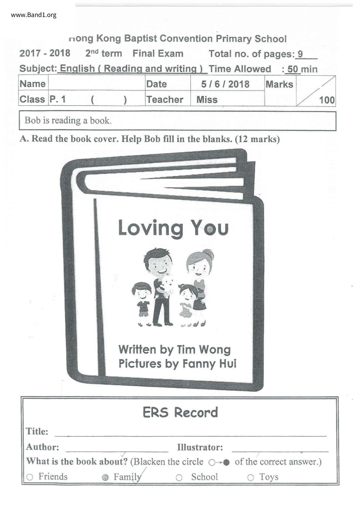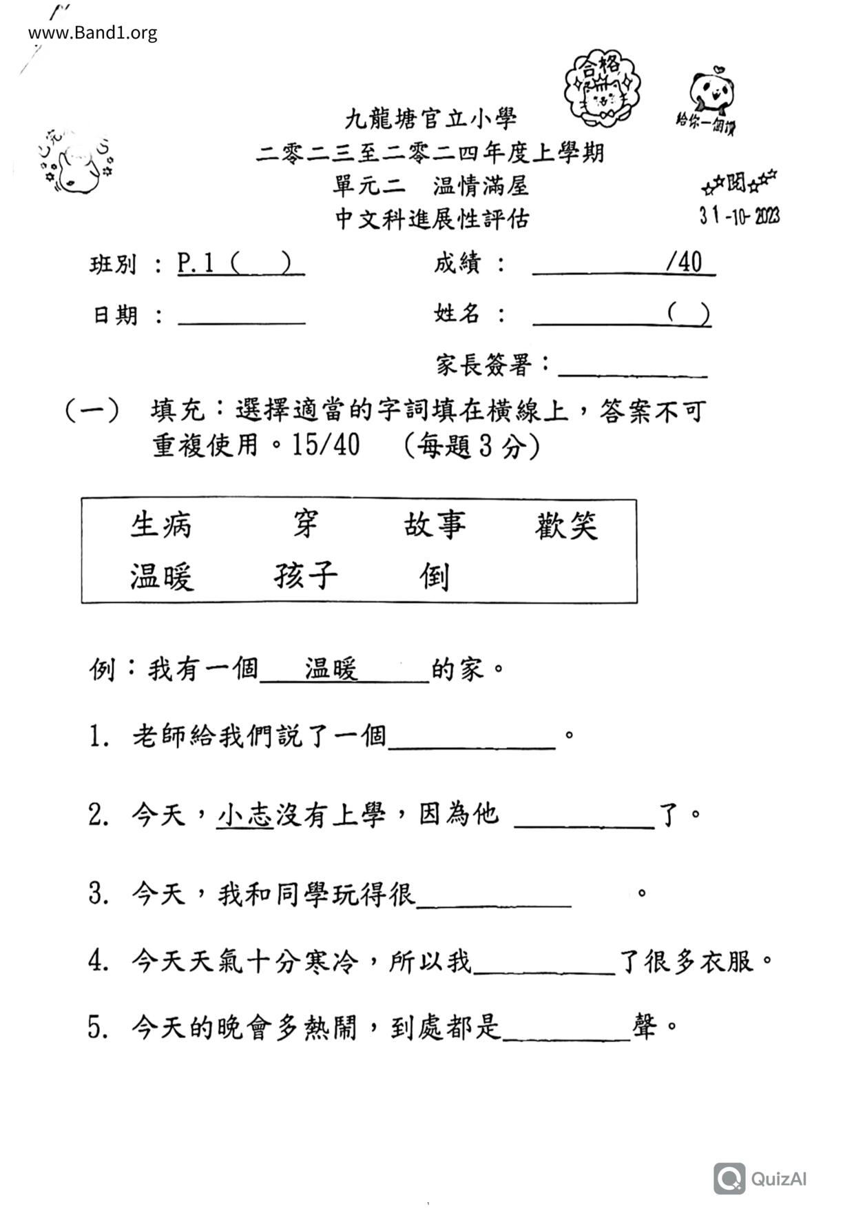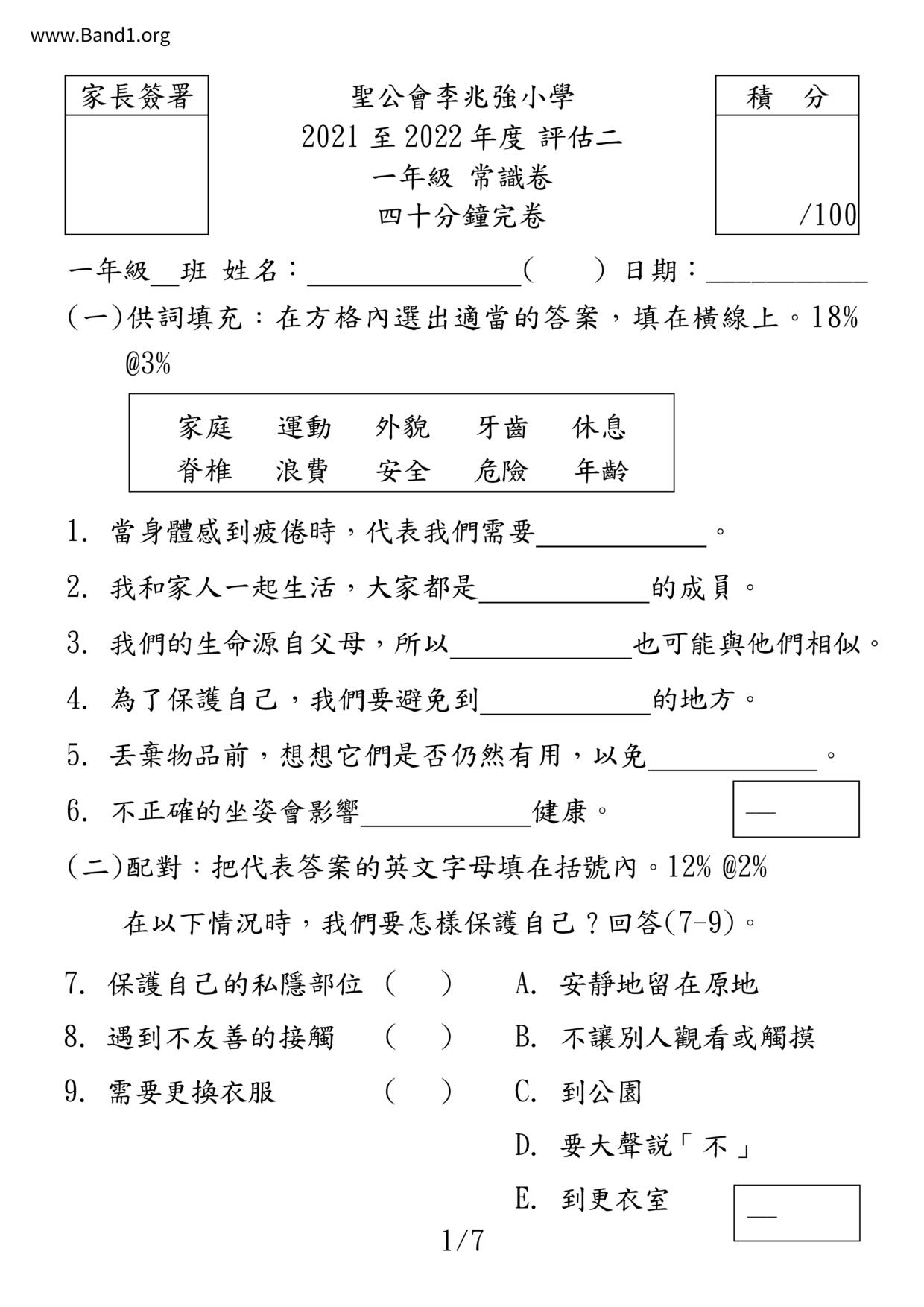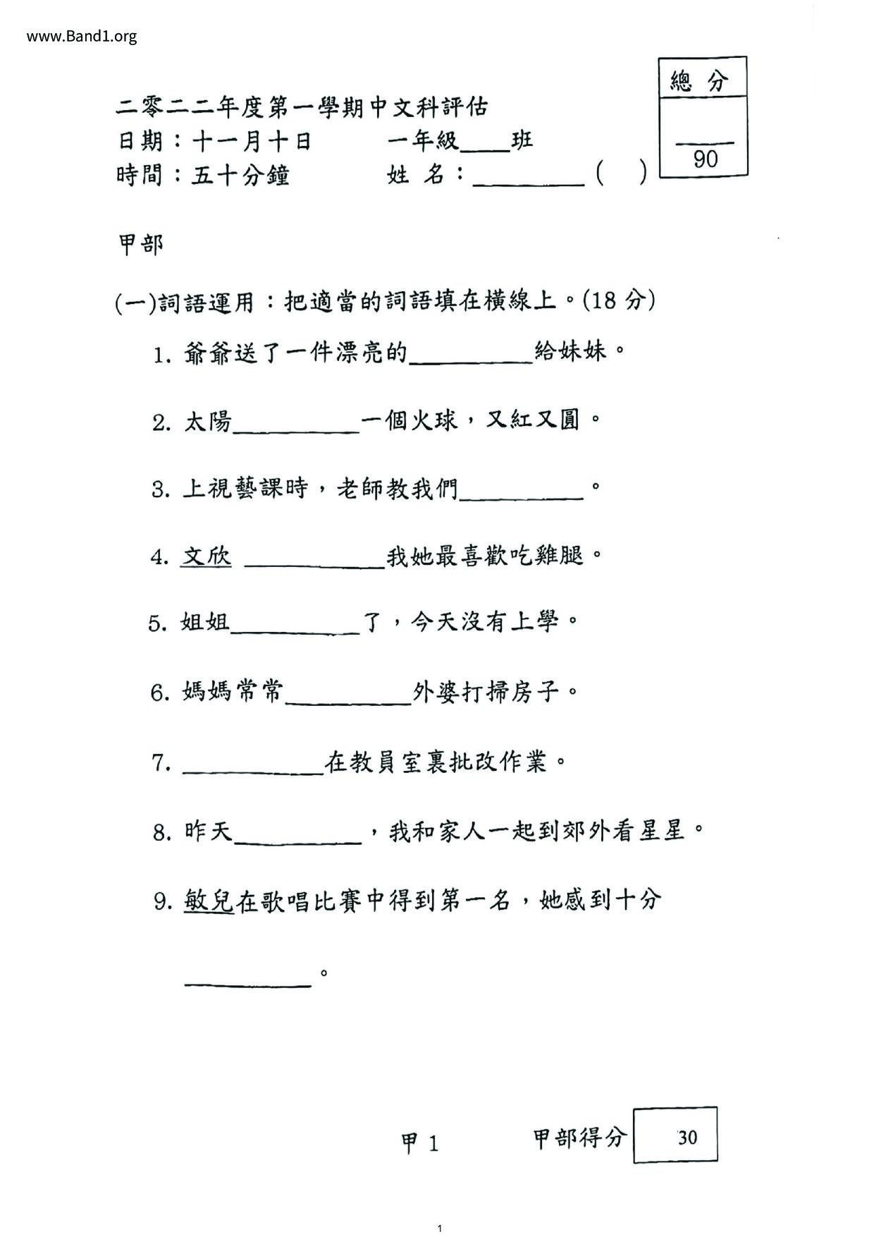 小一 中文 基督教香港信義會馬鞍山信義學校