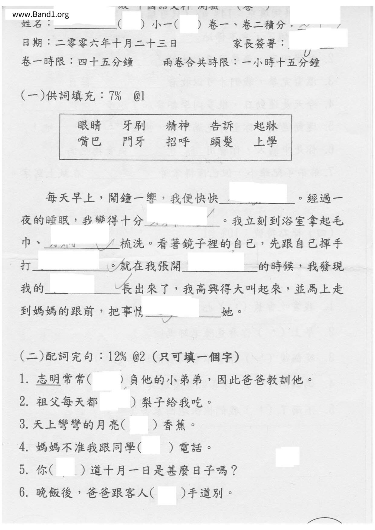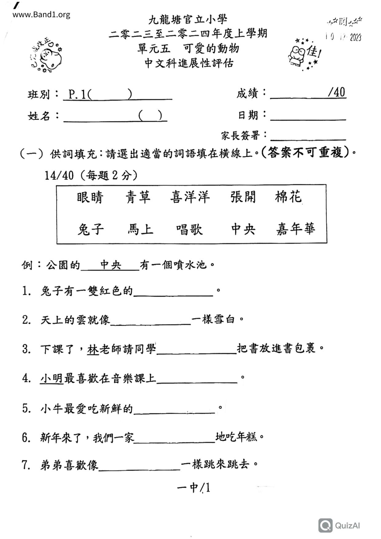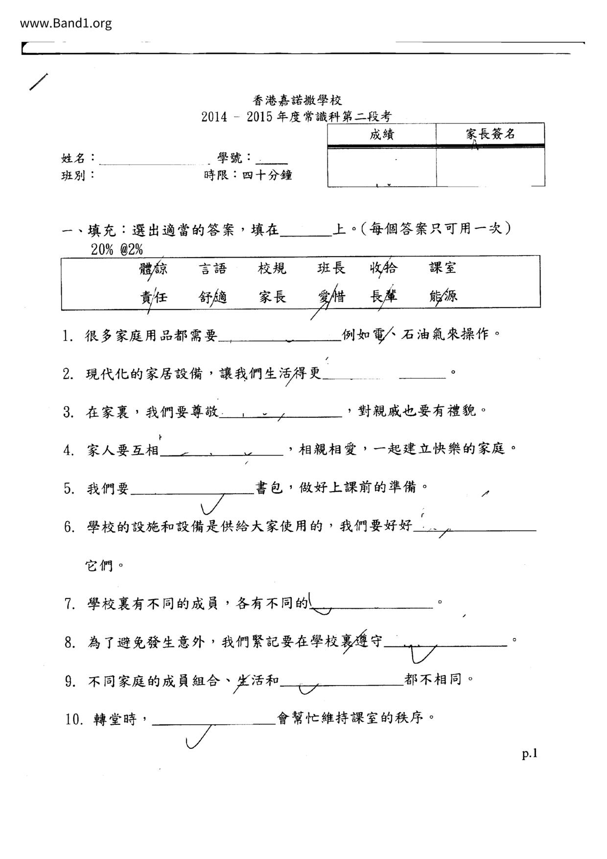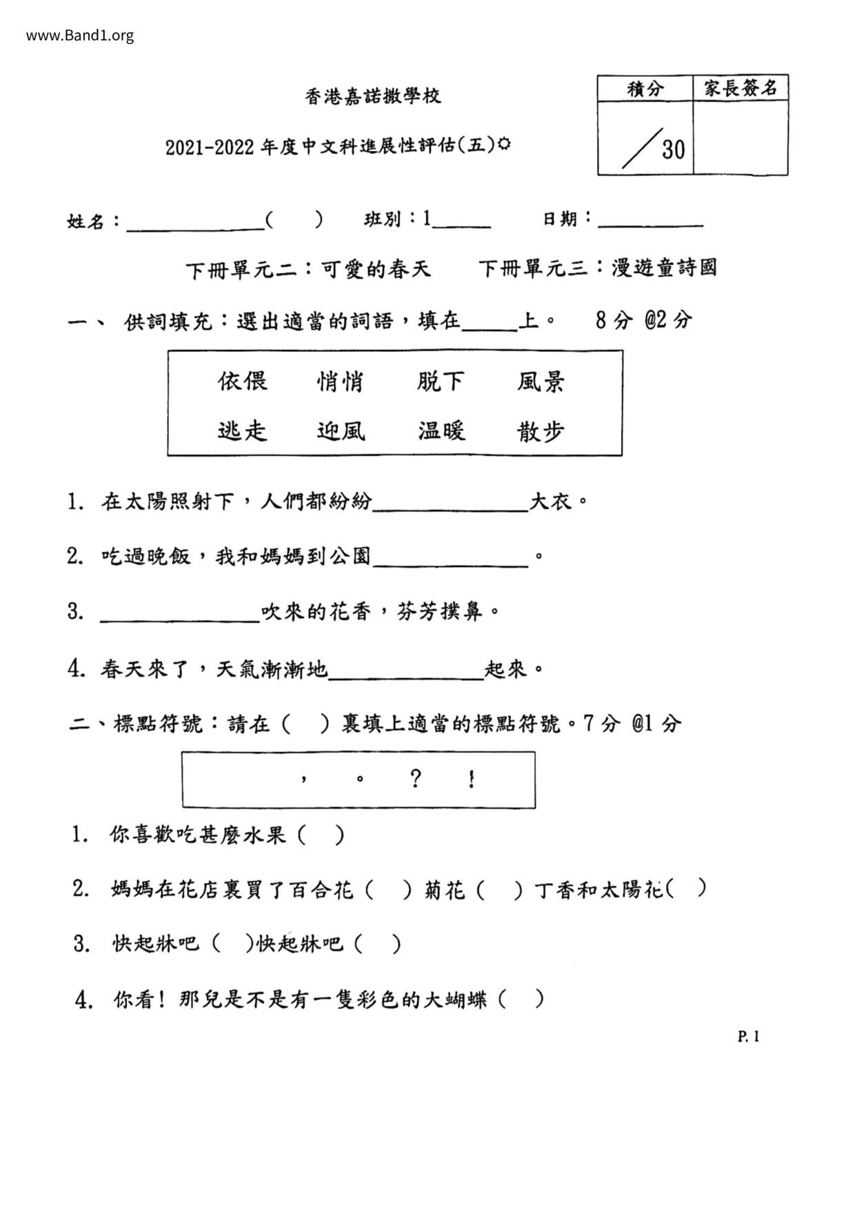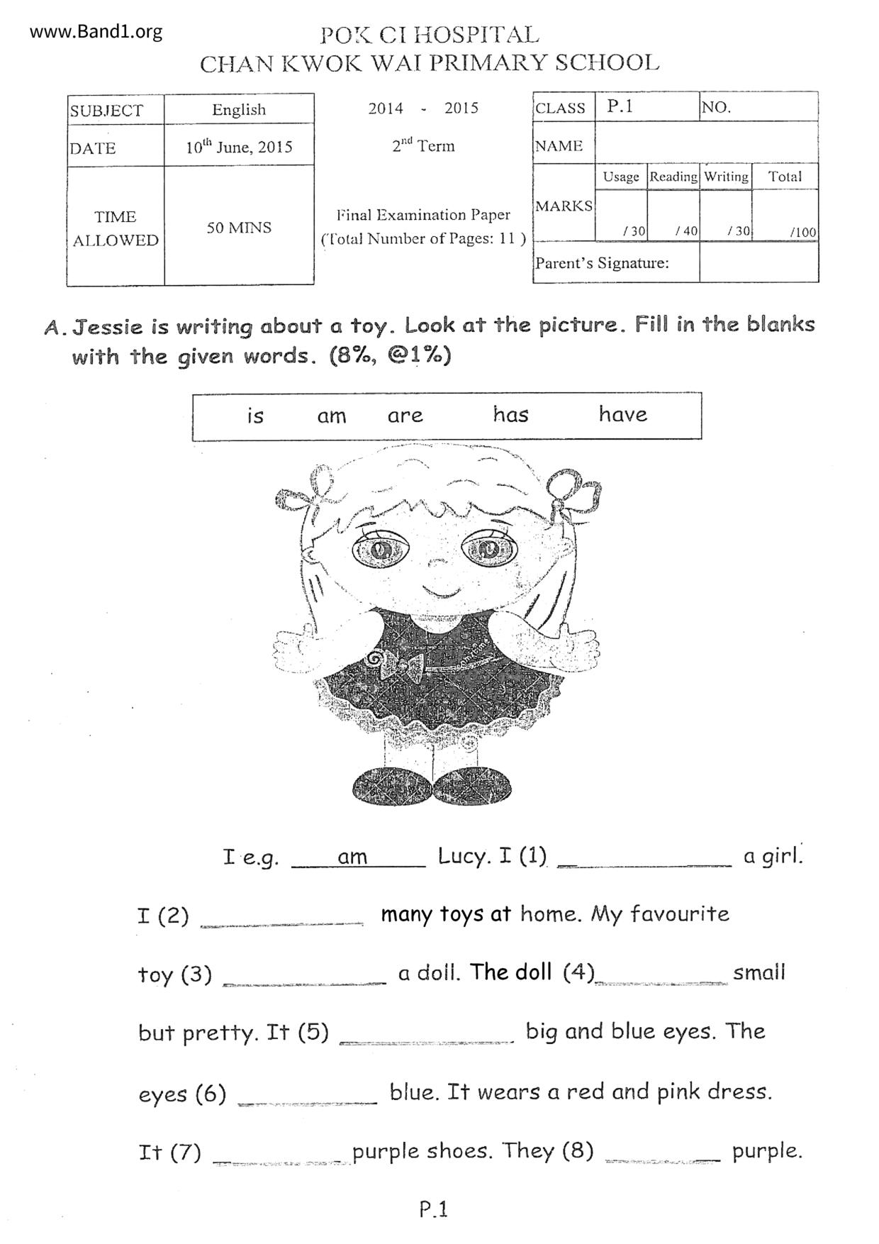 小一 中文 基督教香港信義會馬鞍山信義學校