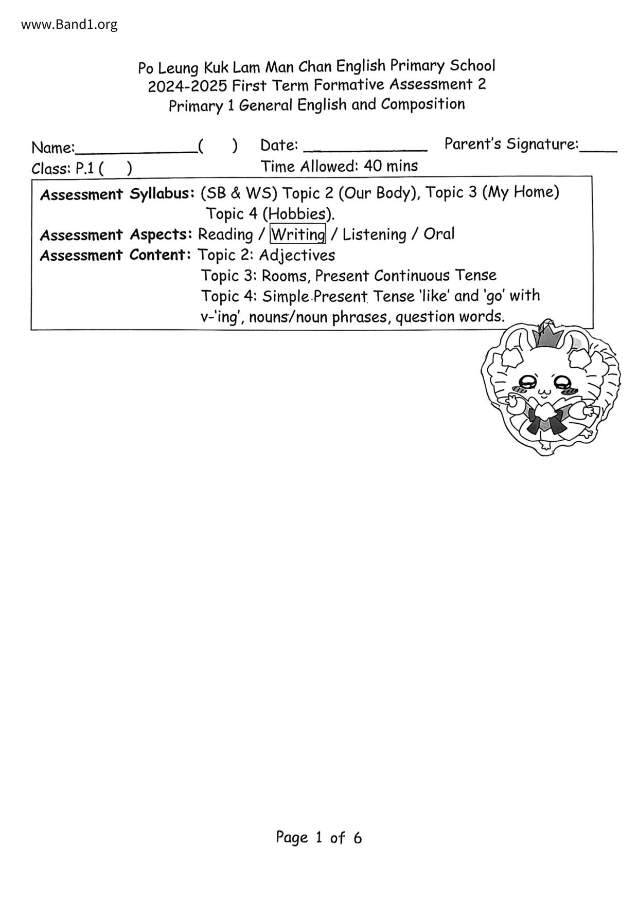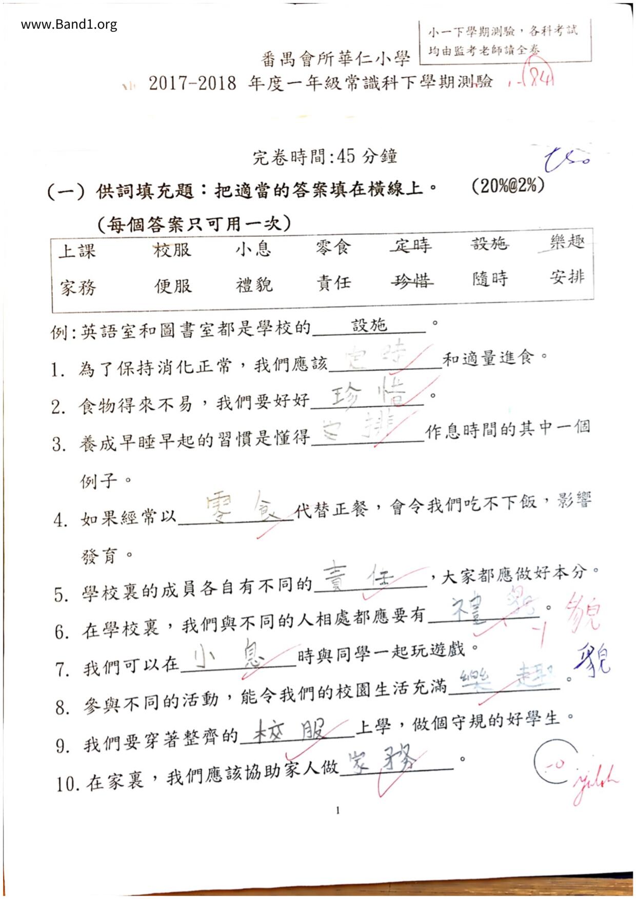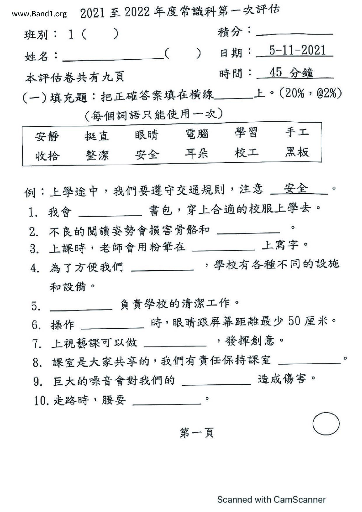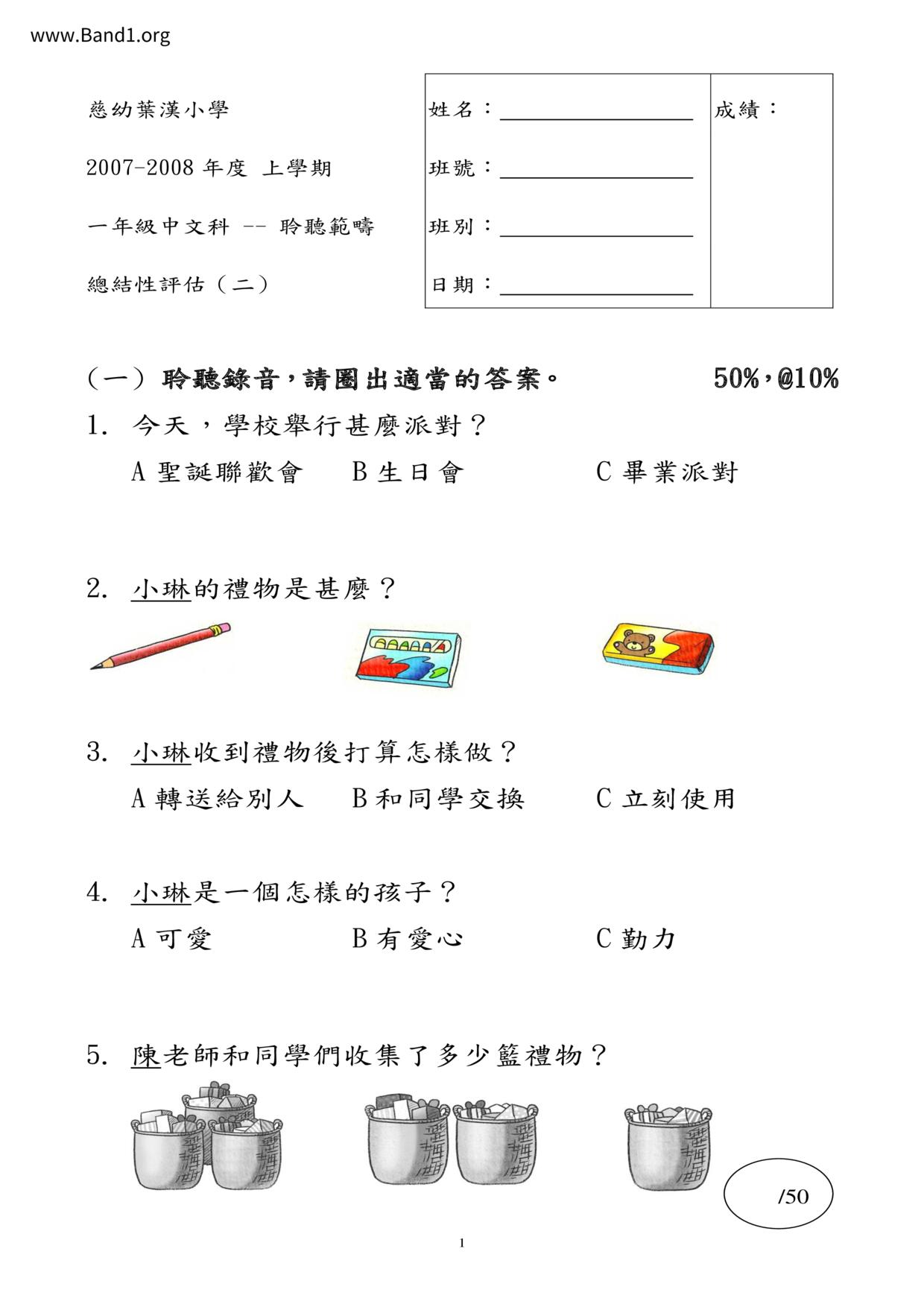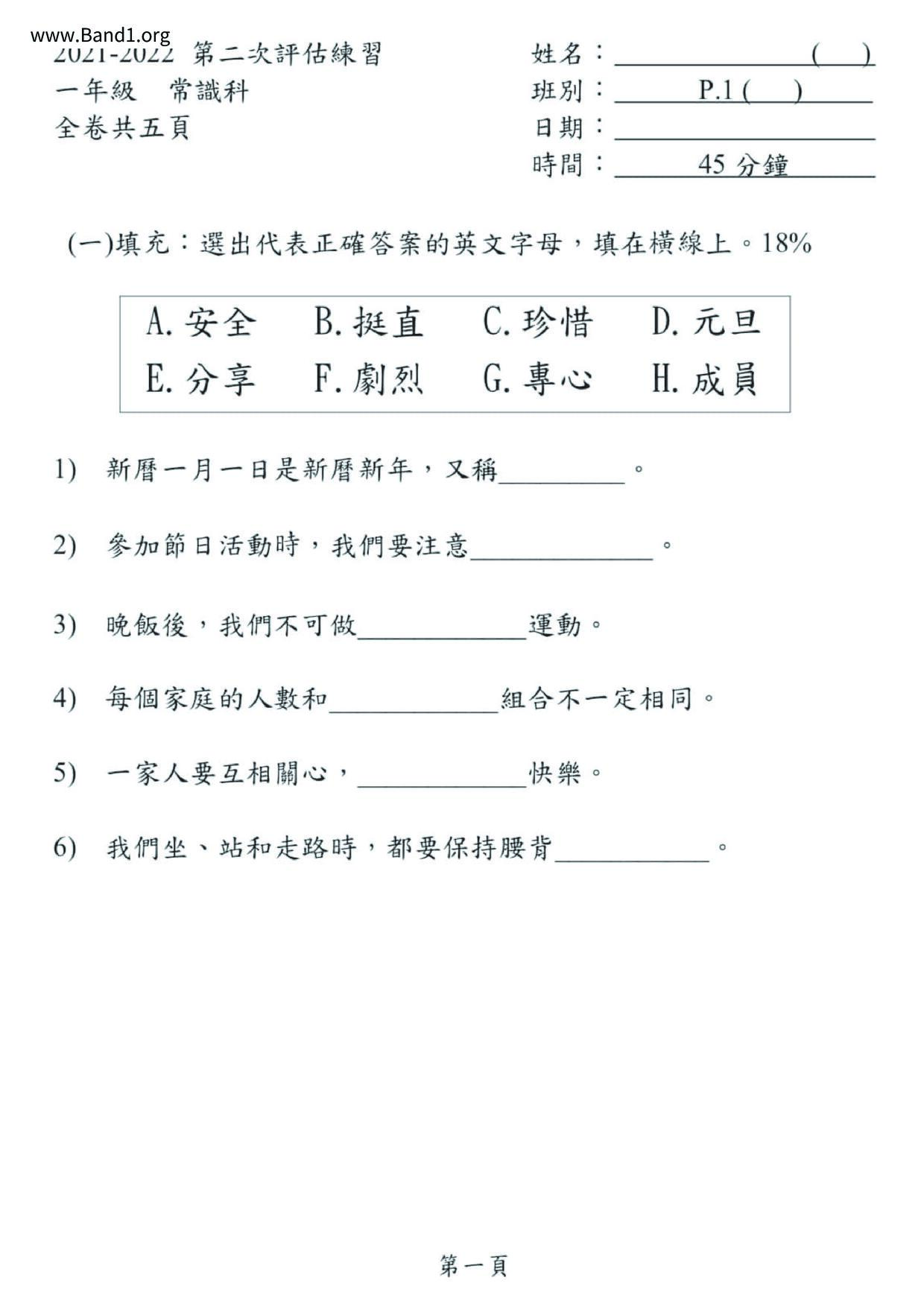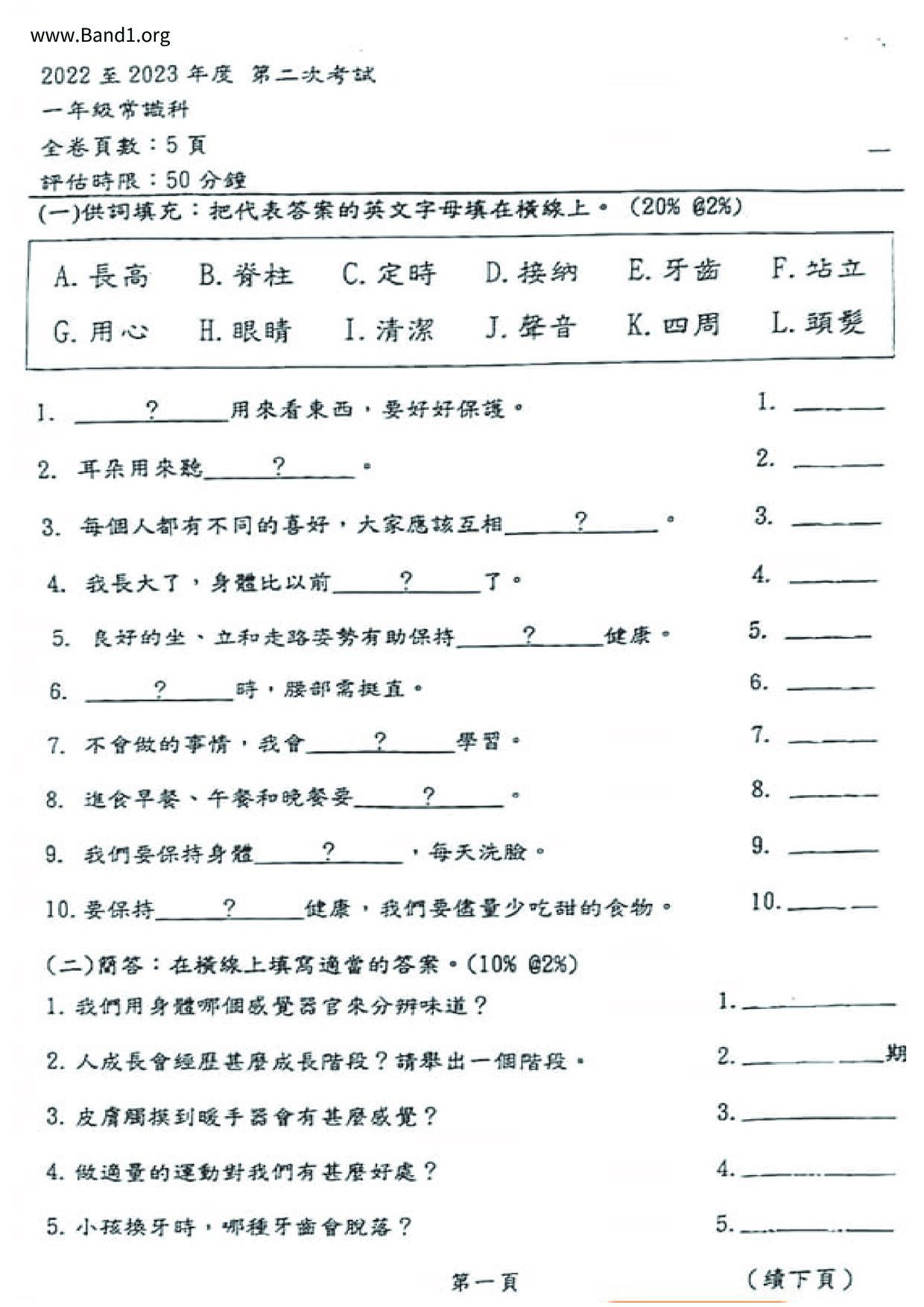 小一 中文 基督教香港信義會馬鞍山信義學校