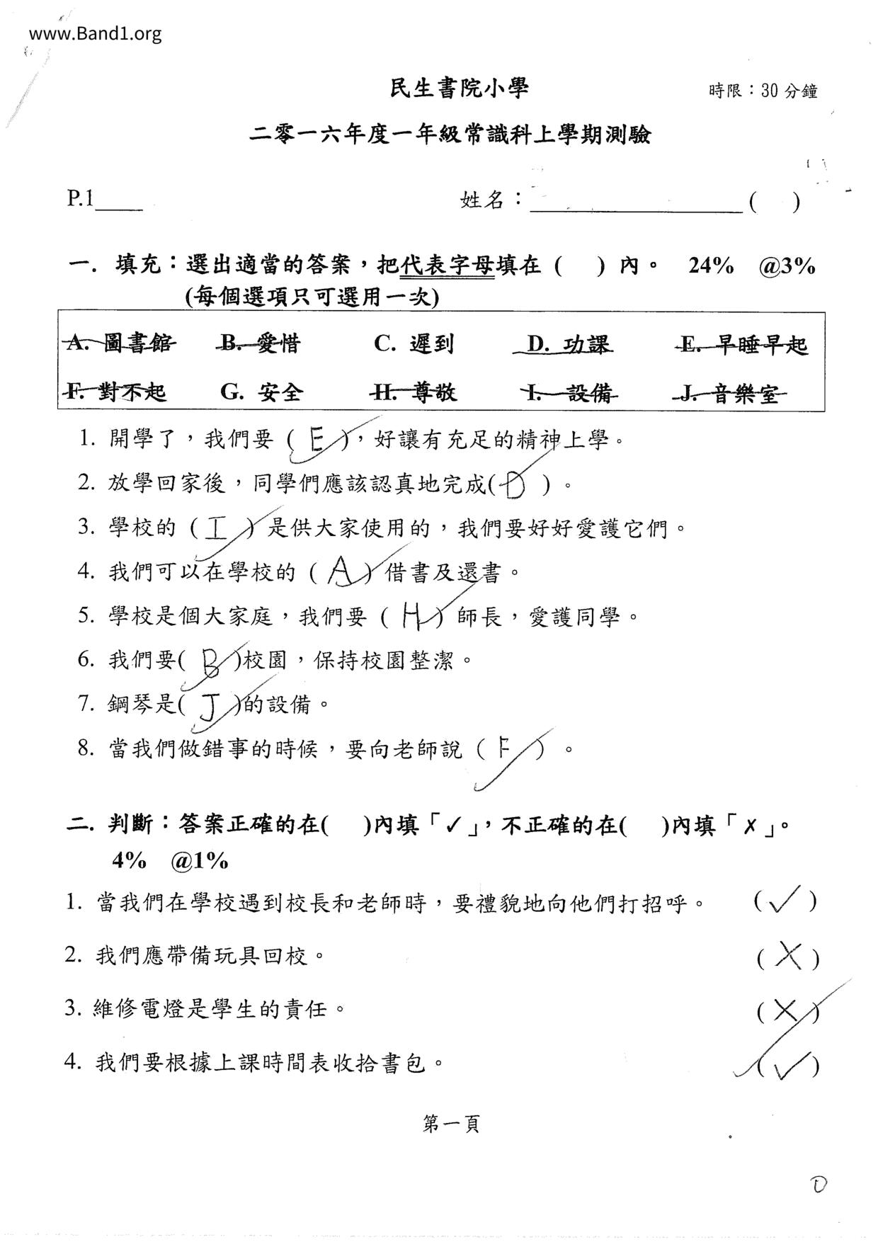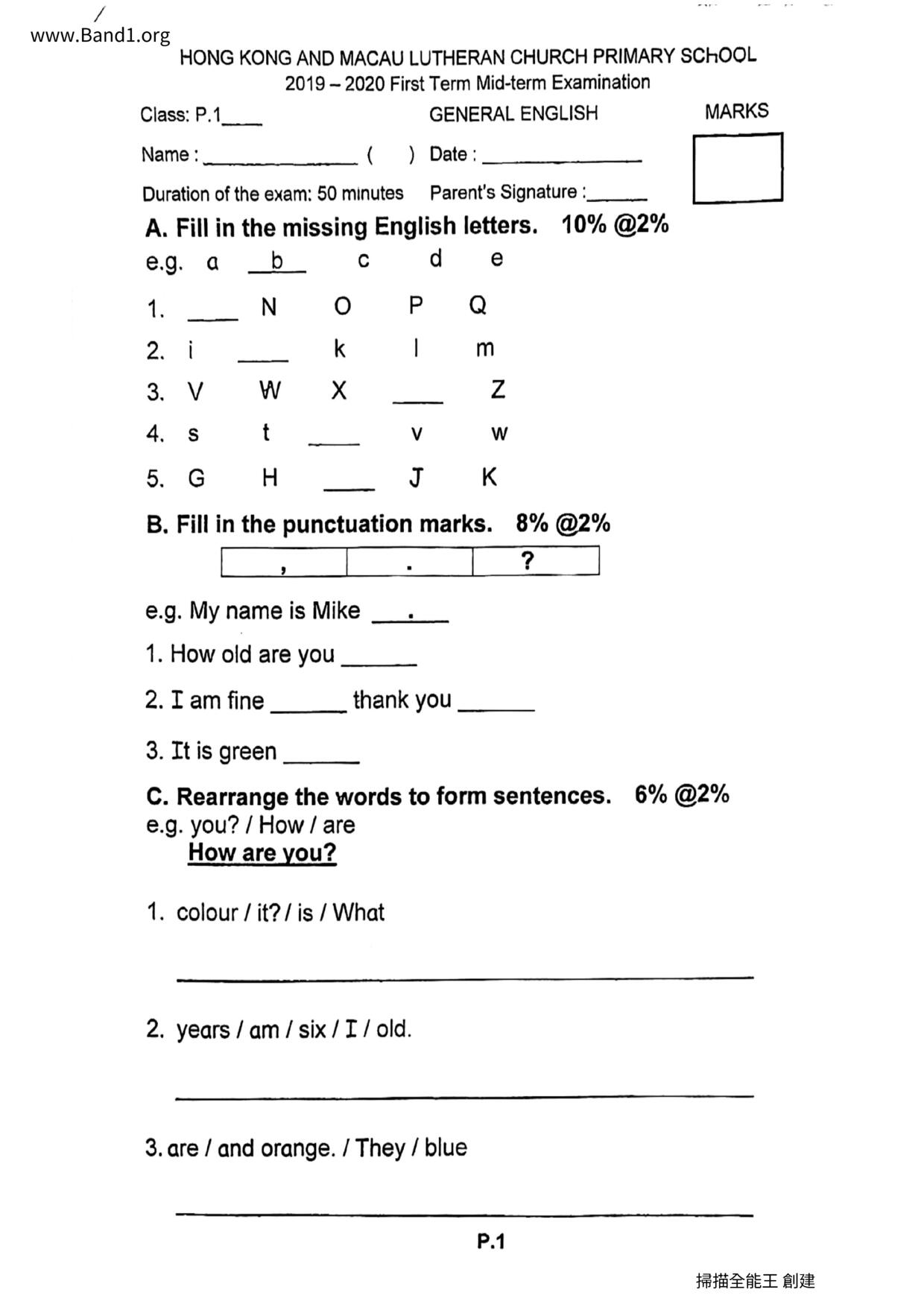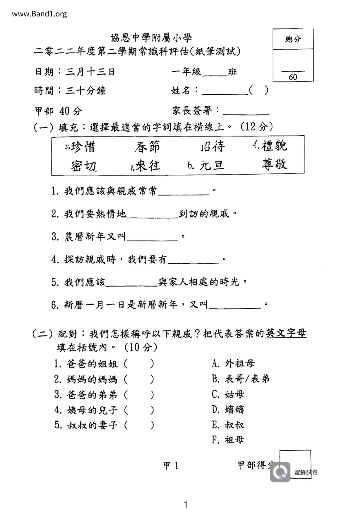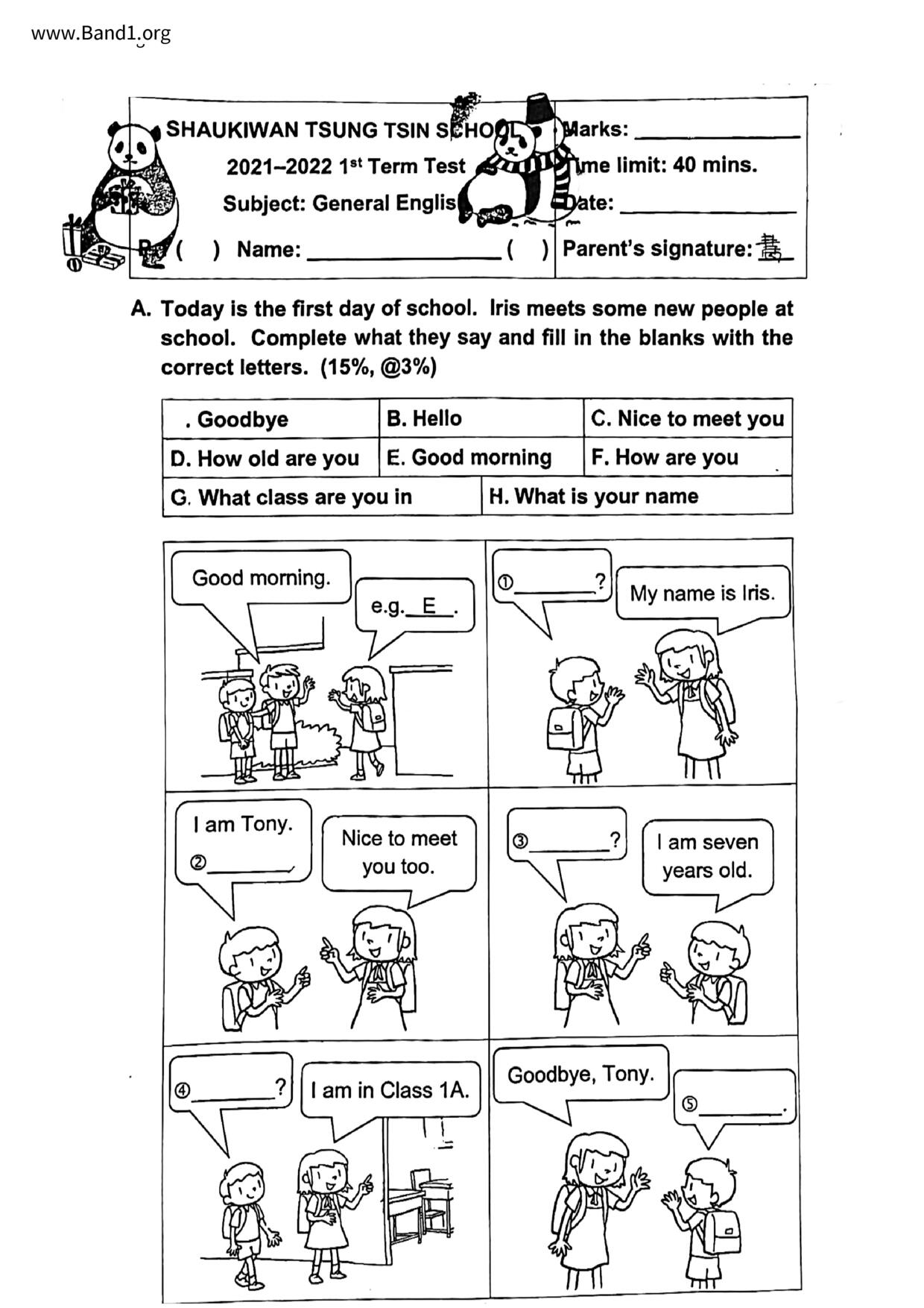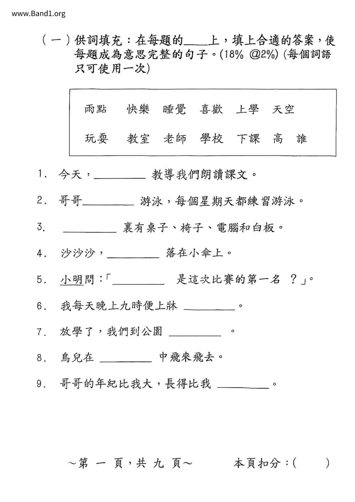 小一 中文 基督教香港信義會馬鞍山信義學校