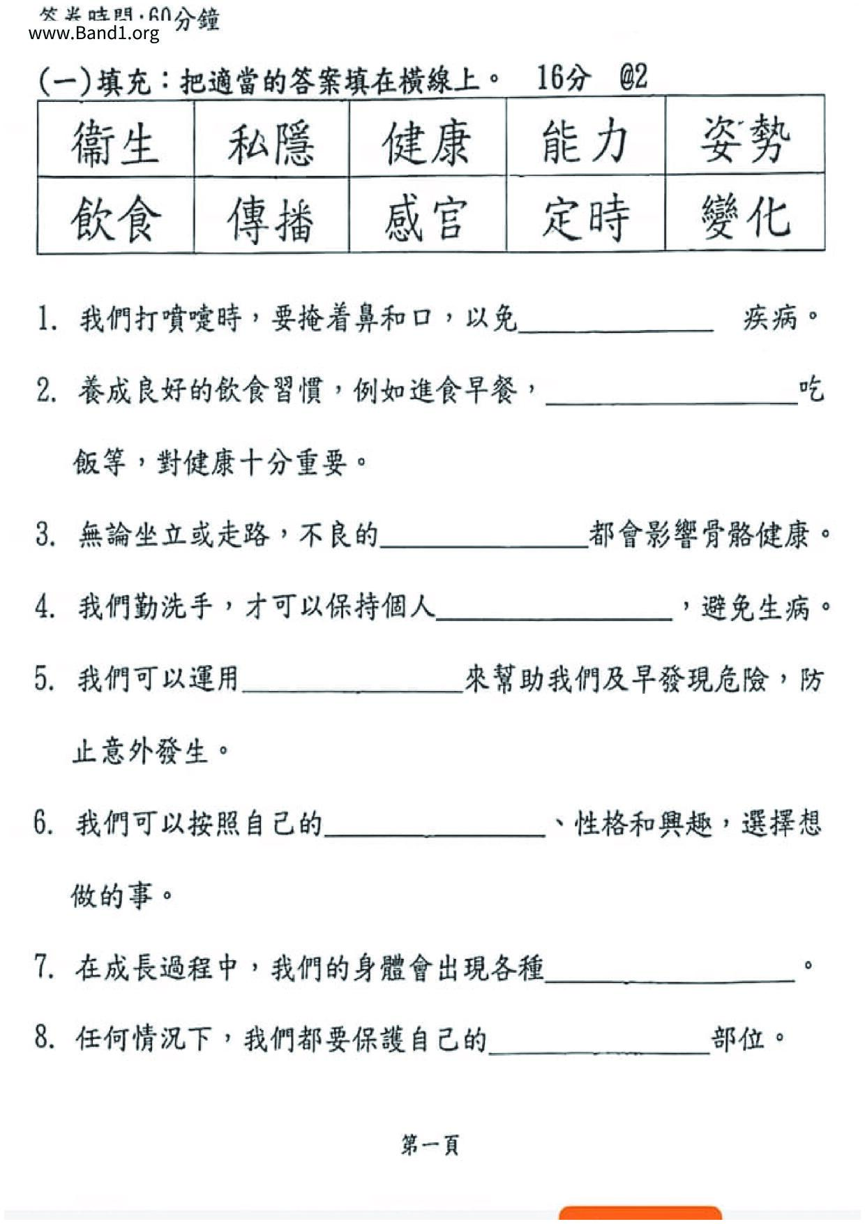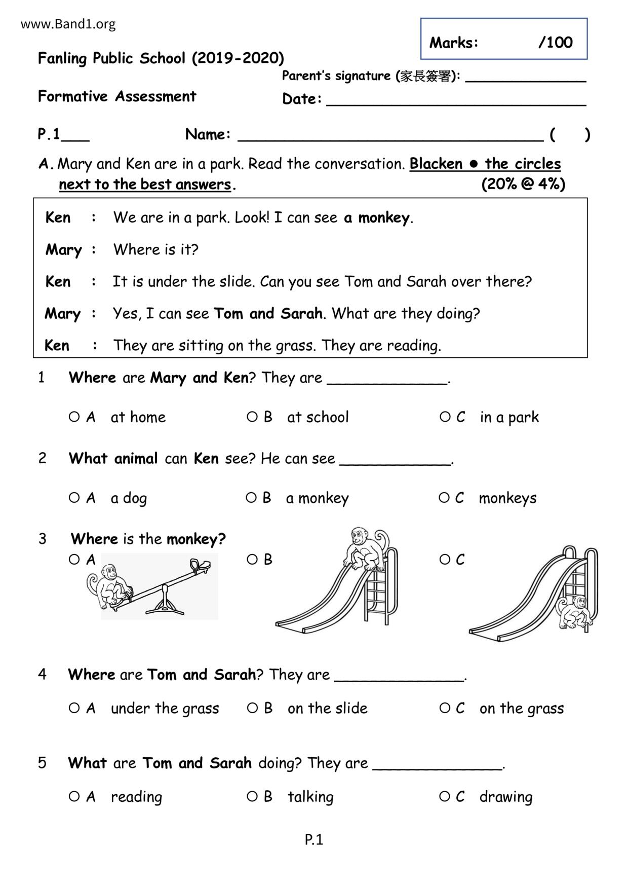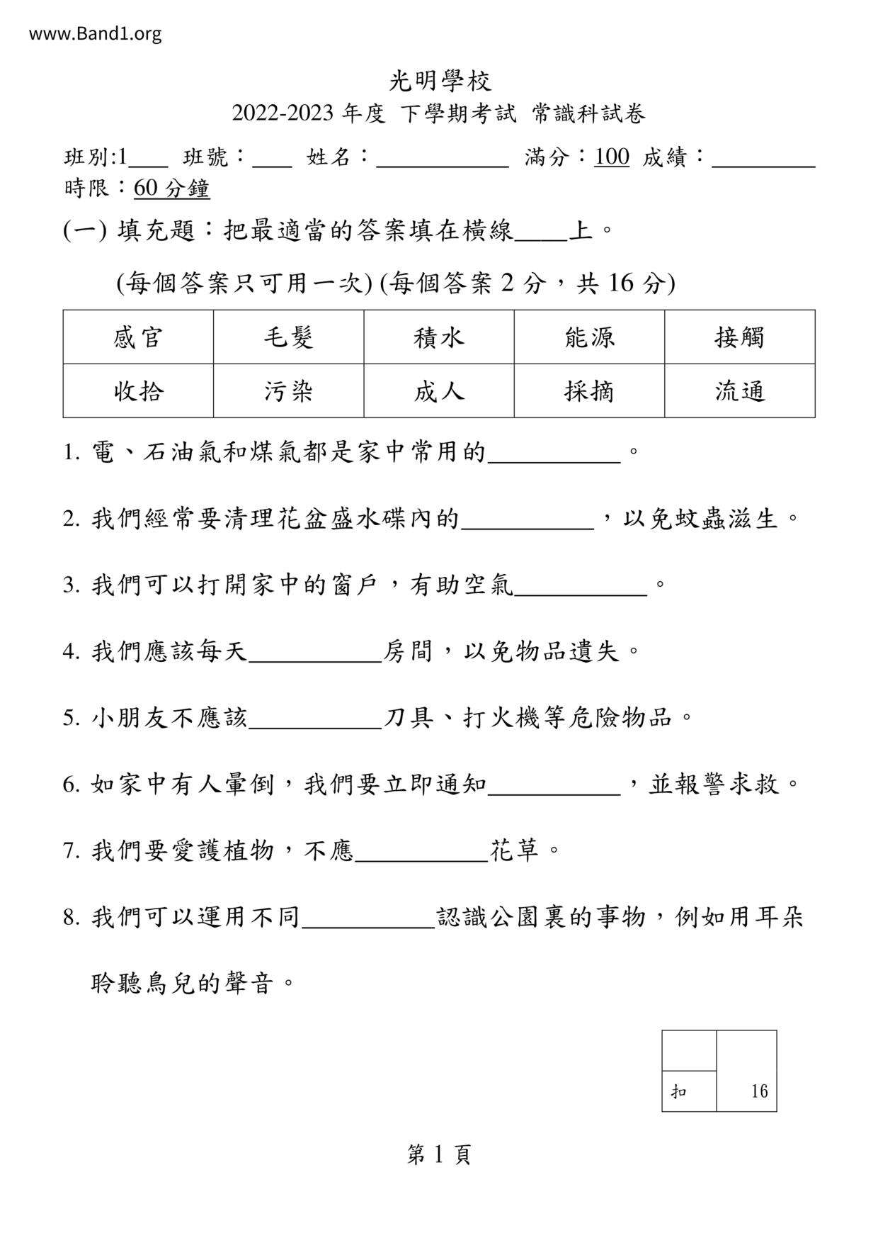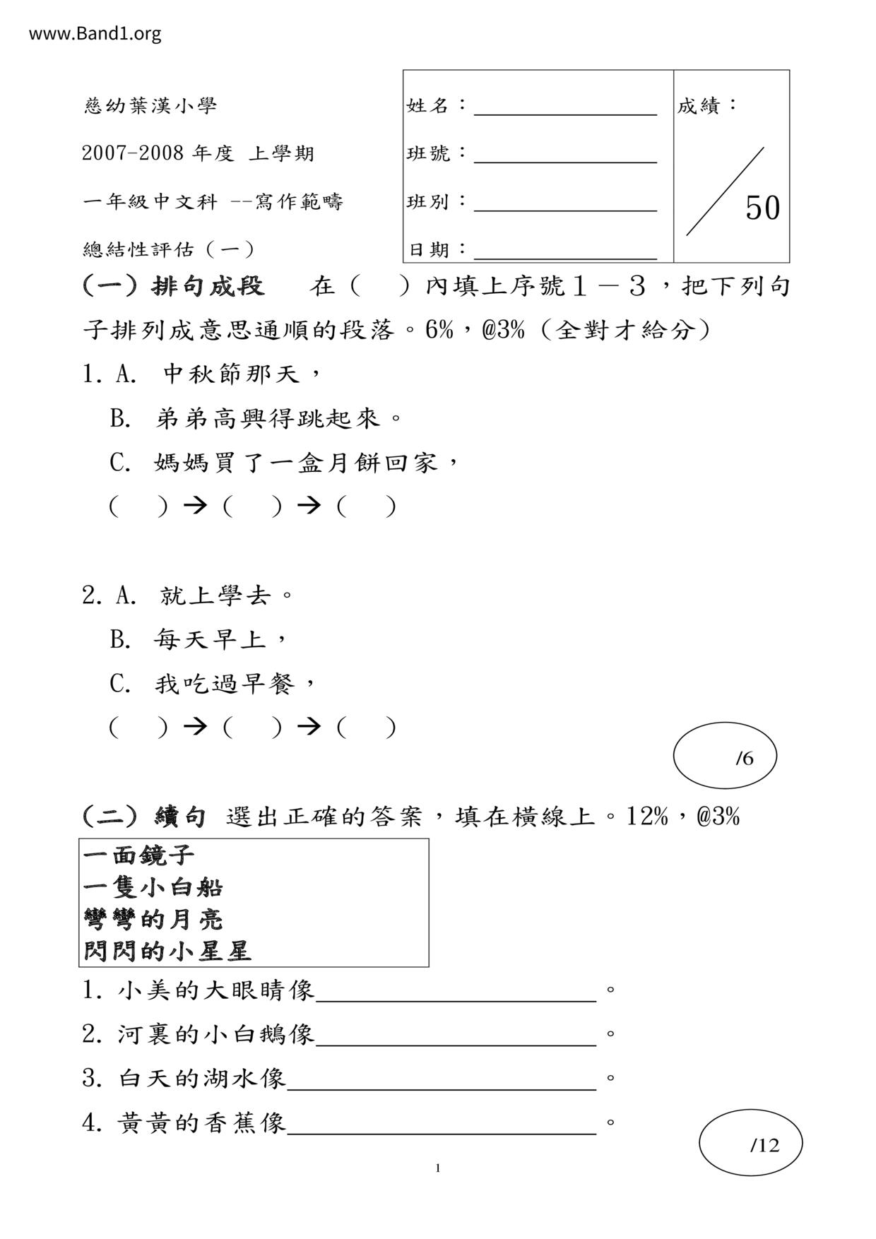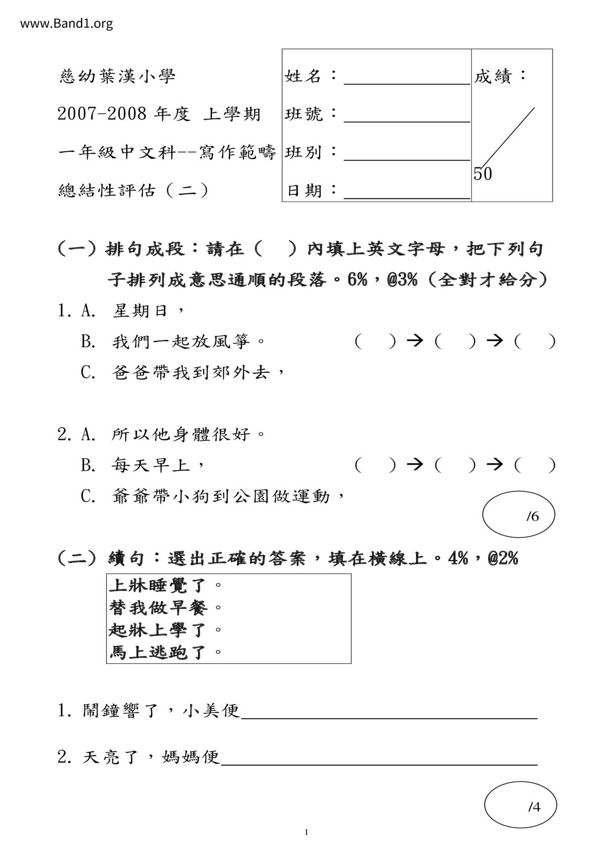 小一 中文 基督教香港信義會馬鞍山信義學校