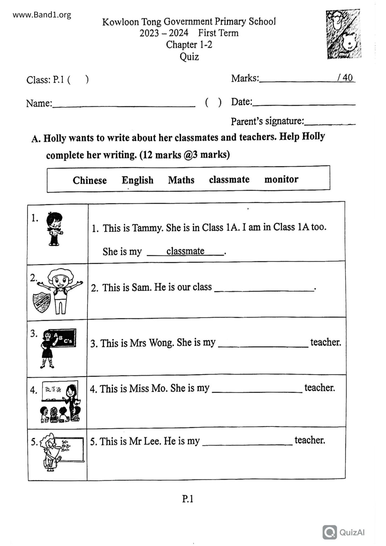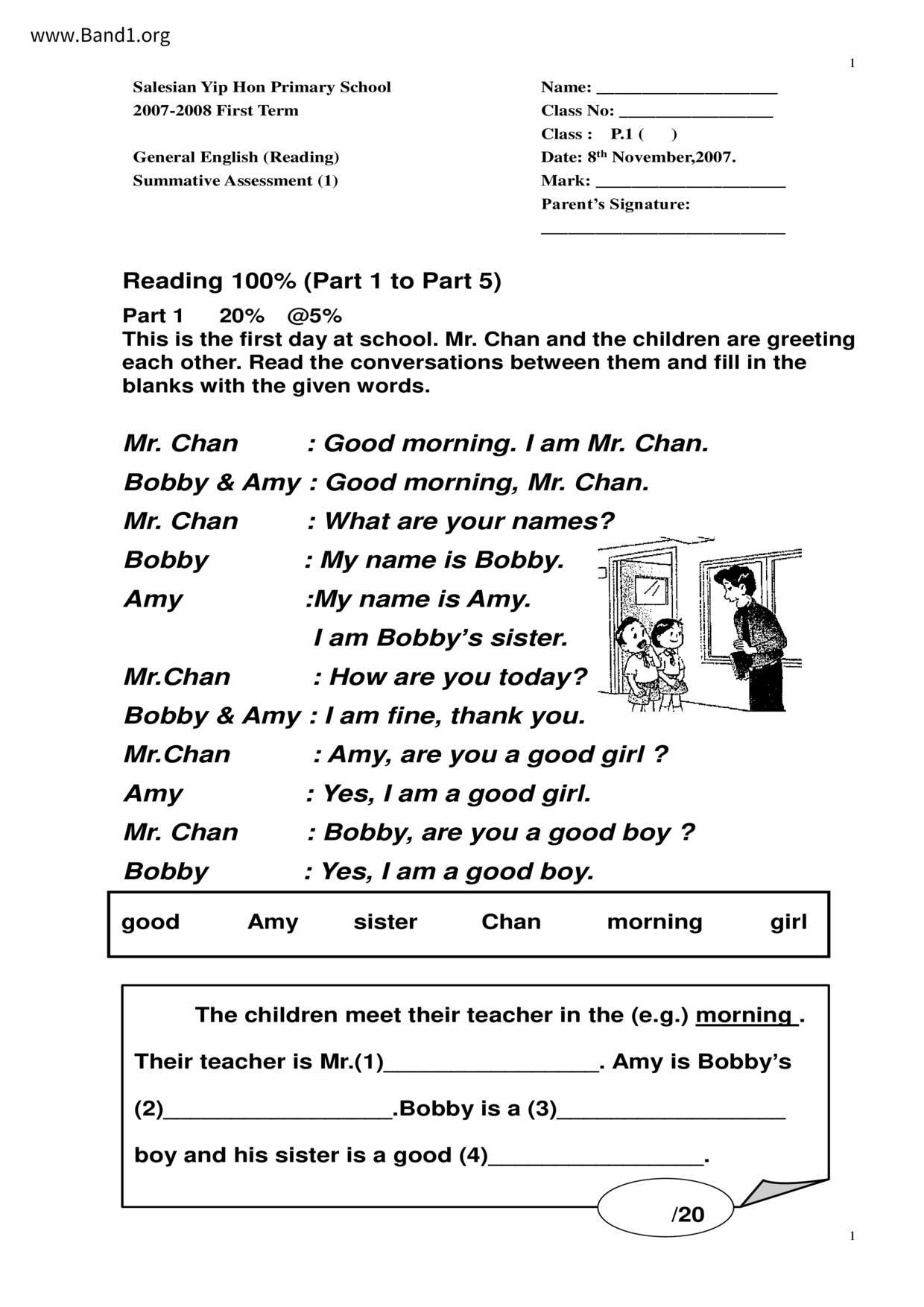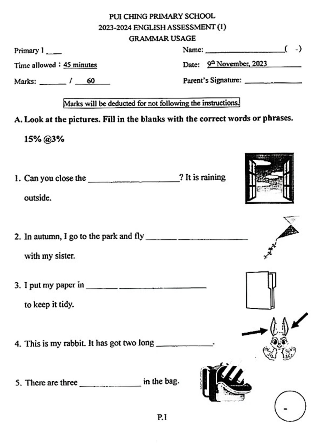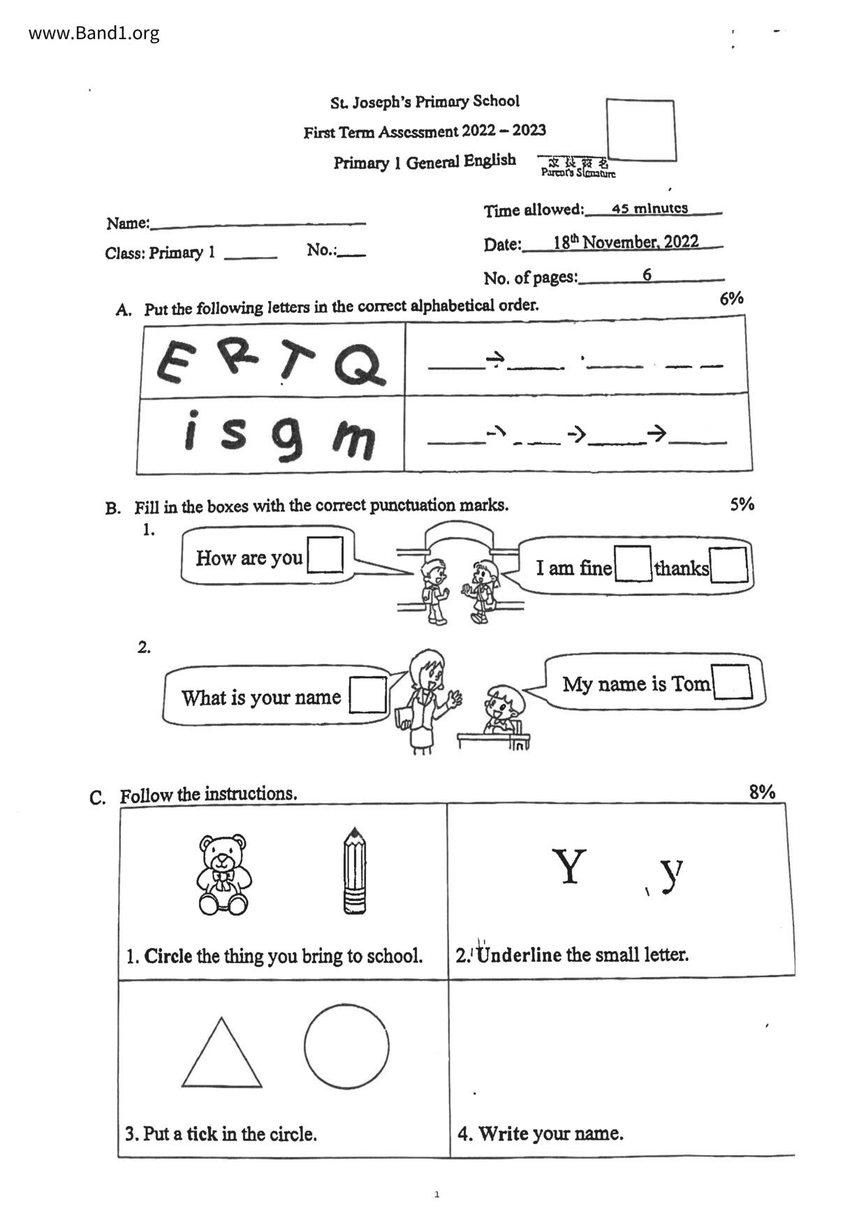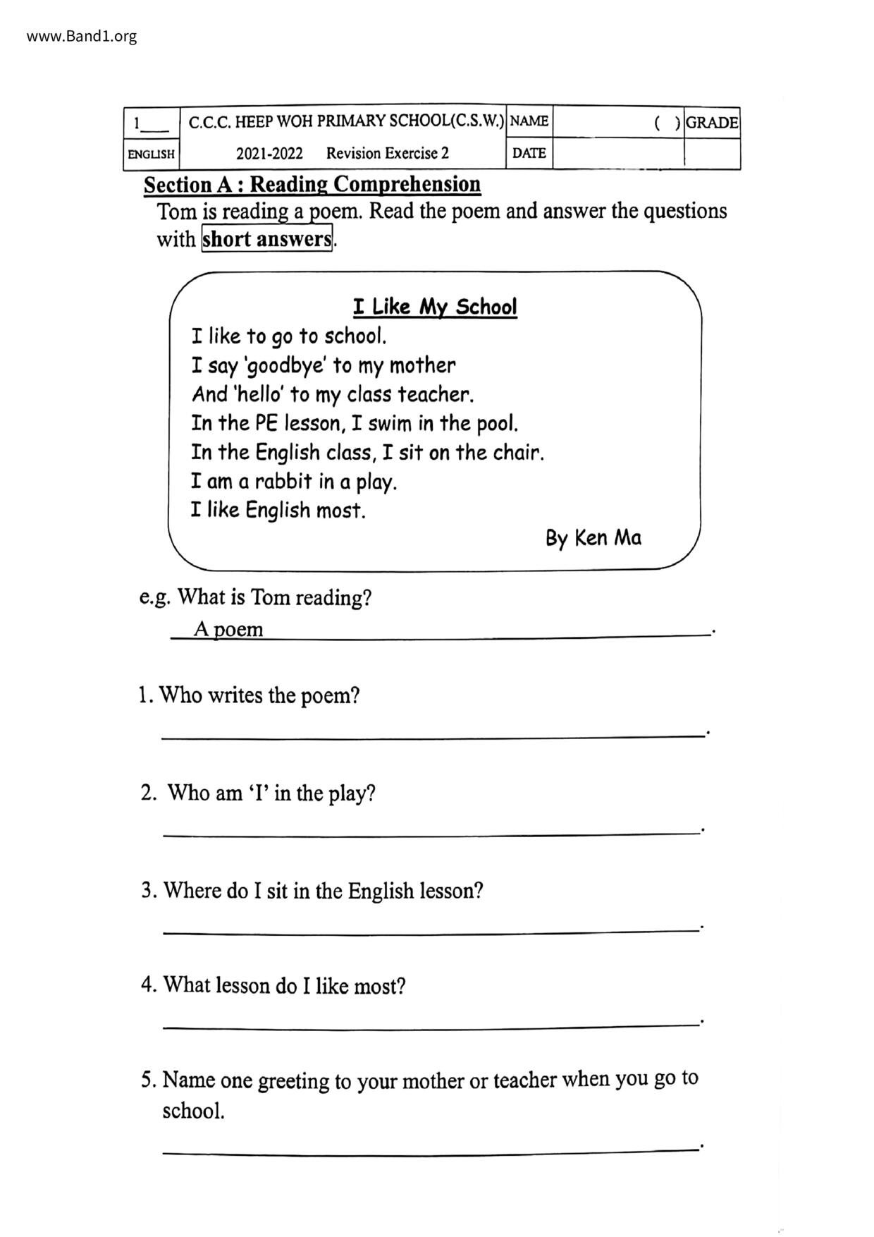 小一 中文 基督教香港信義會馬鞍山信義學校