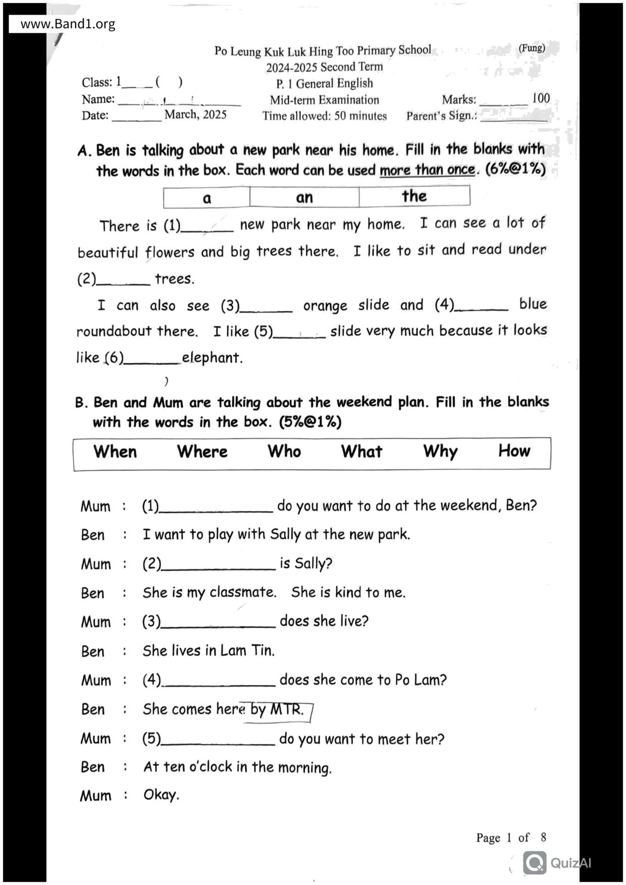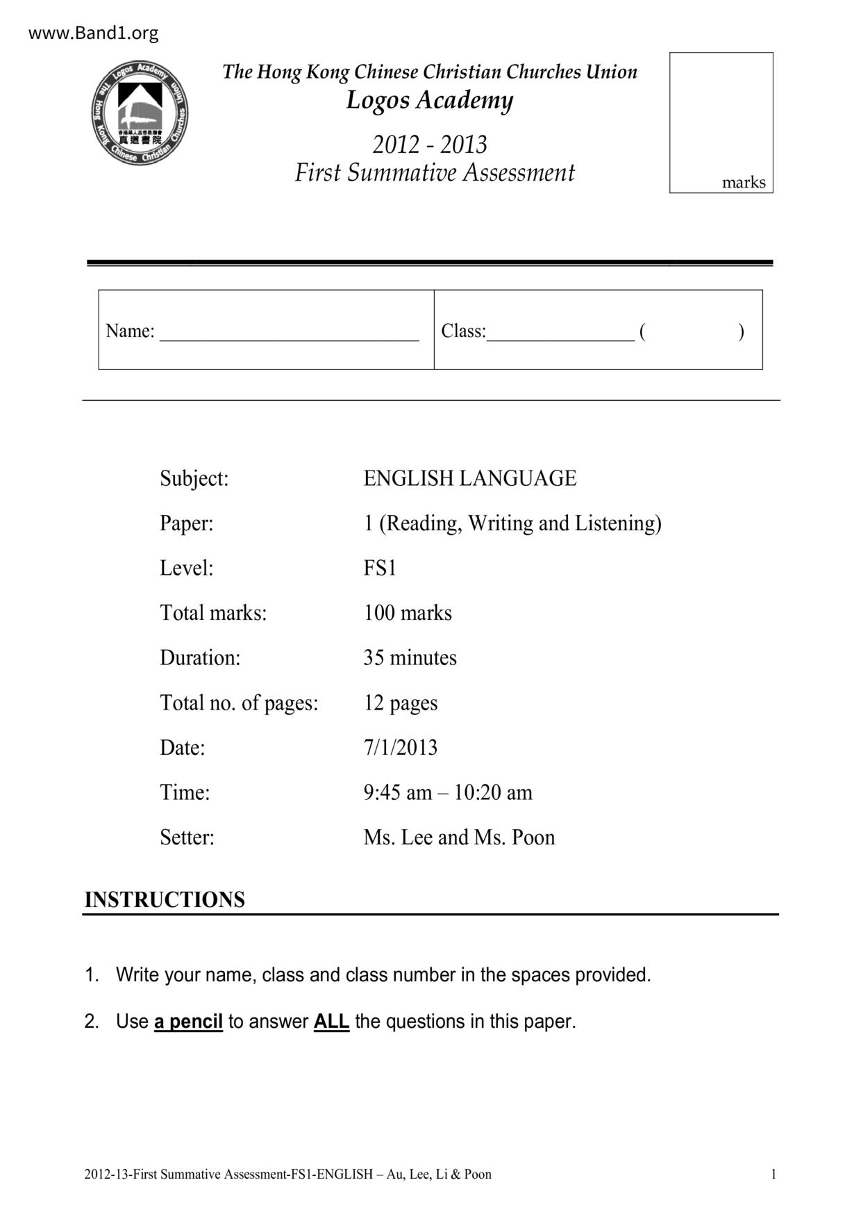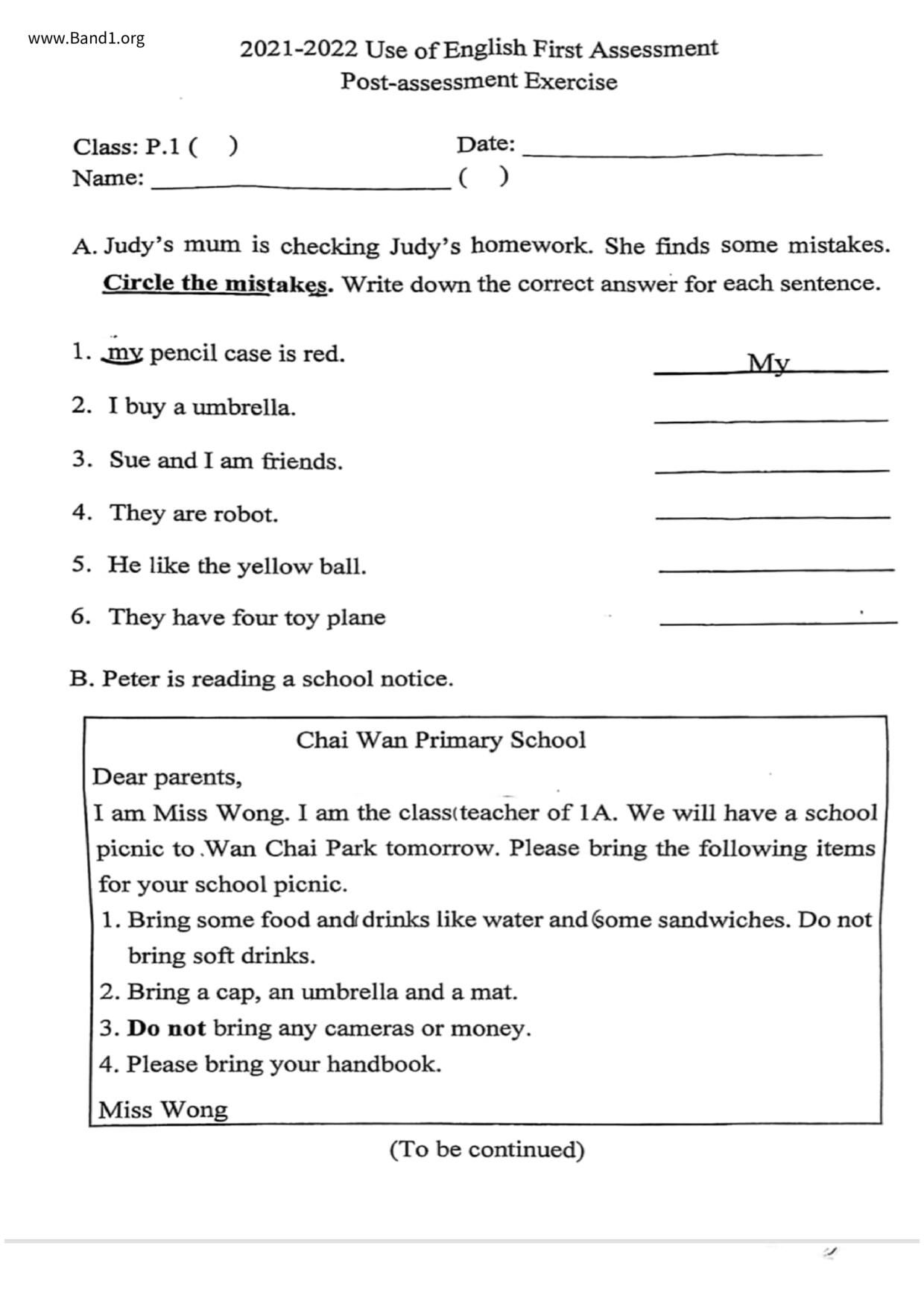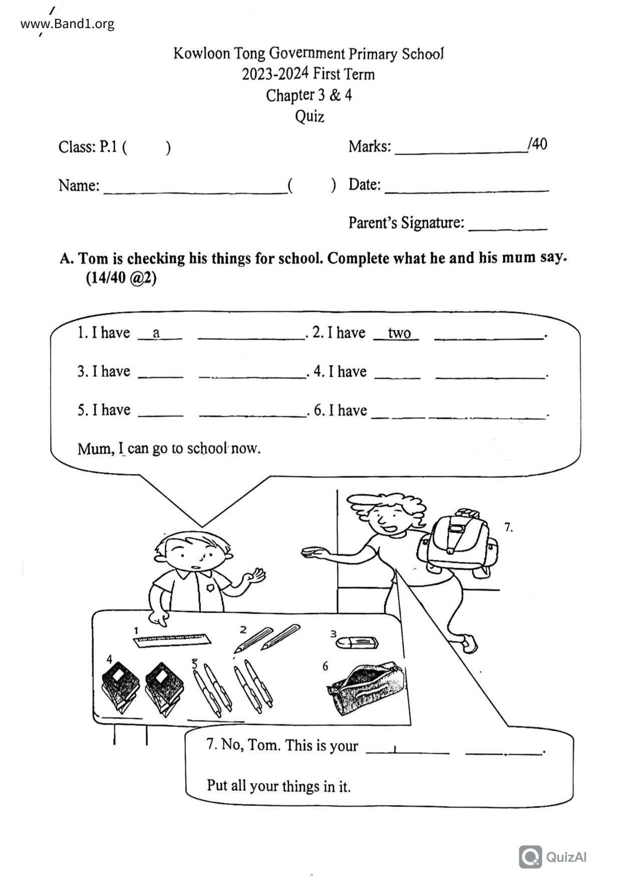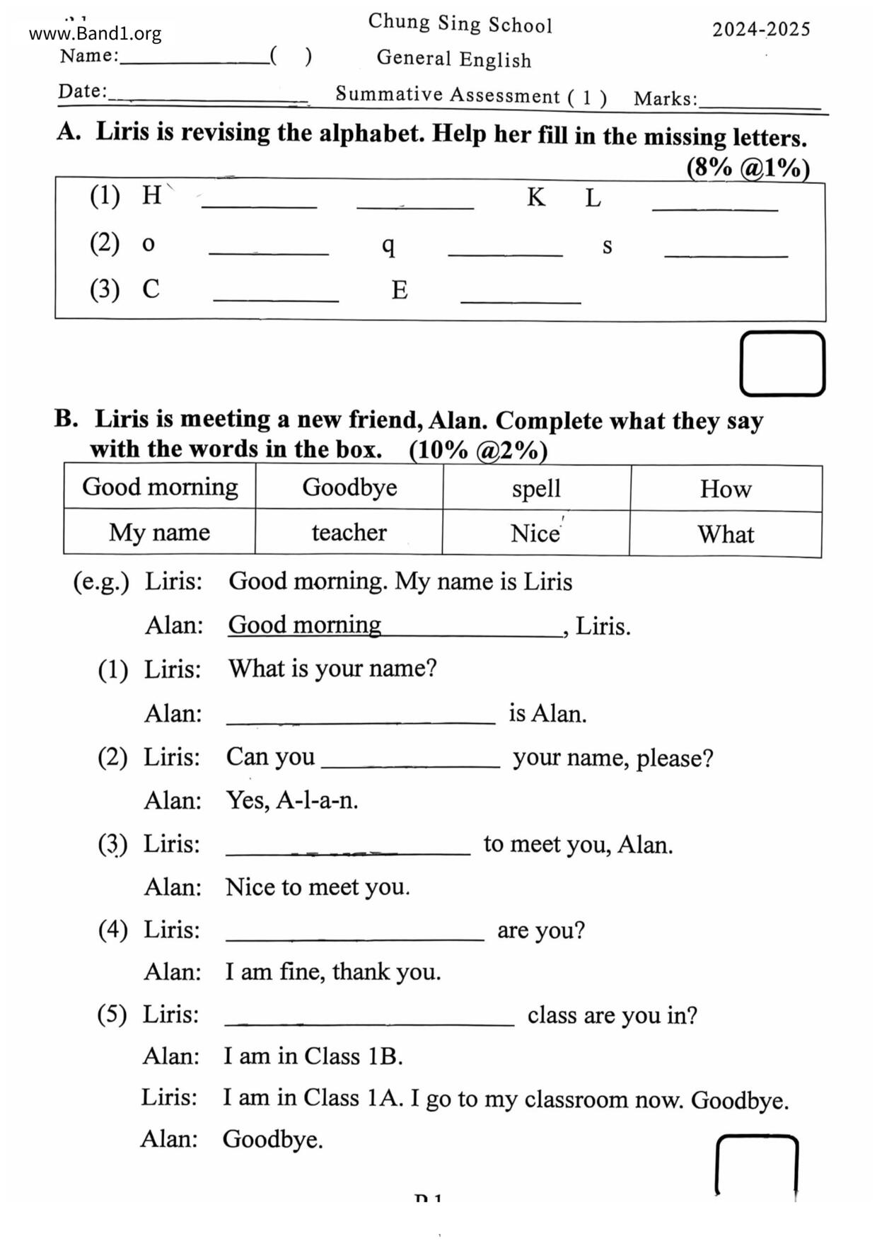 小一 中文 基督教香港信義會馬鞍山信義學校