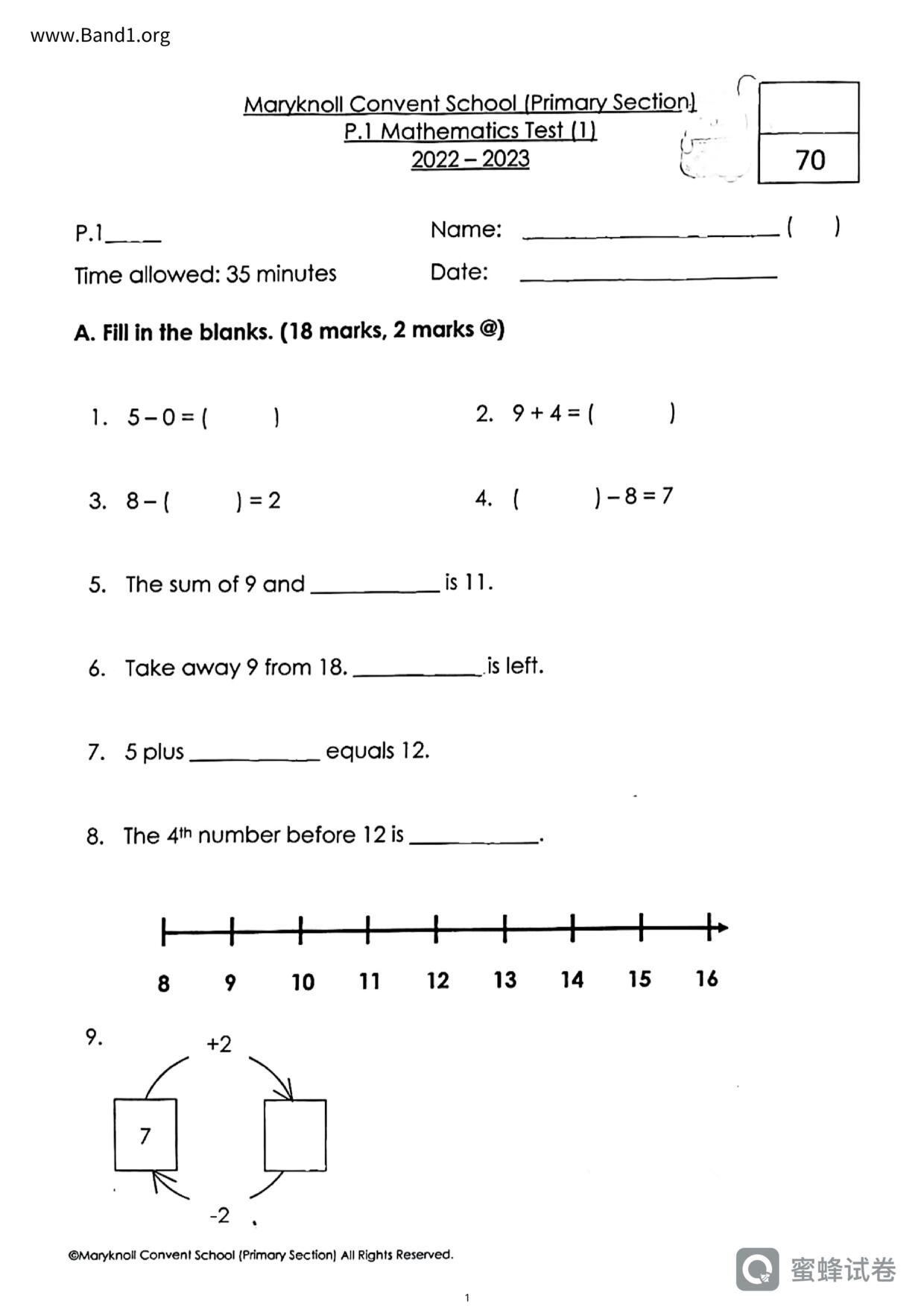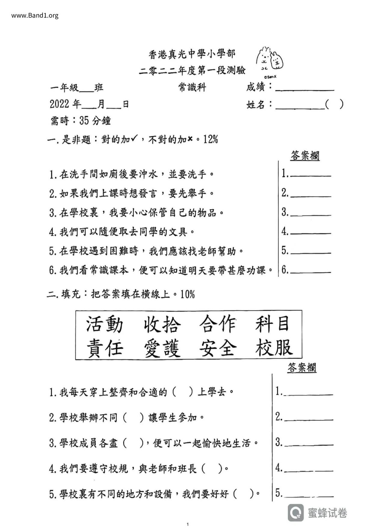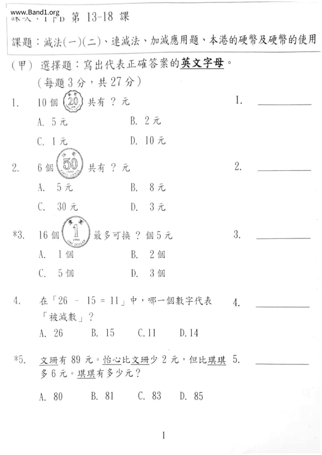 小一 數學 香港真光中學附屬小學暨幼稚園