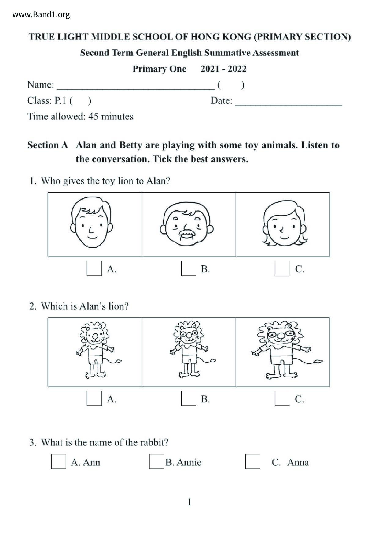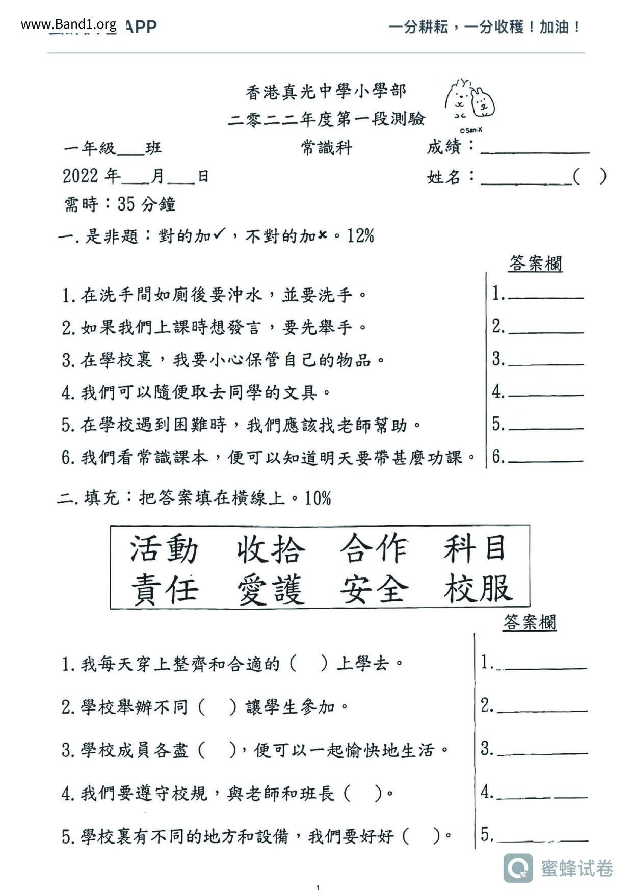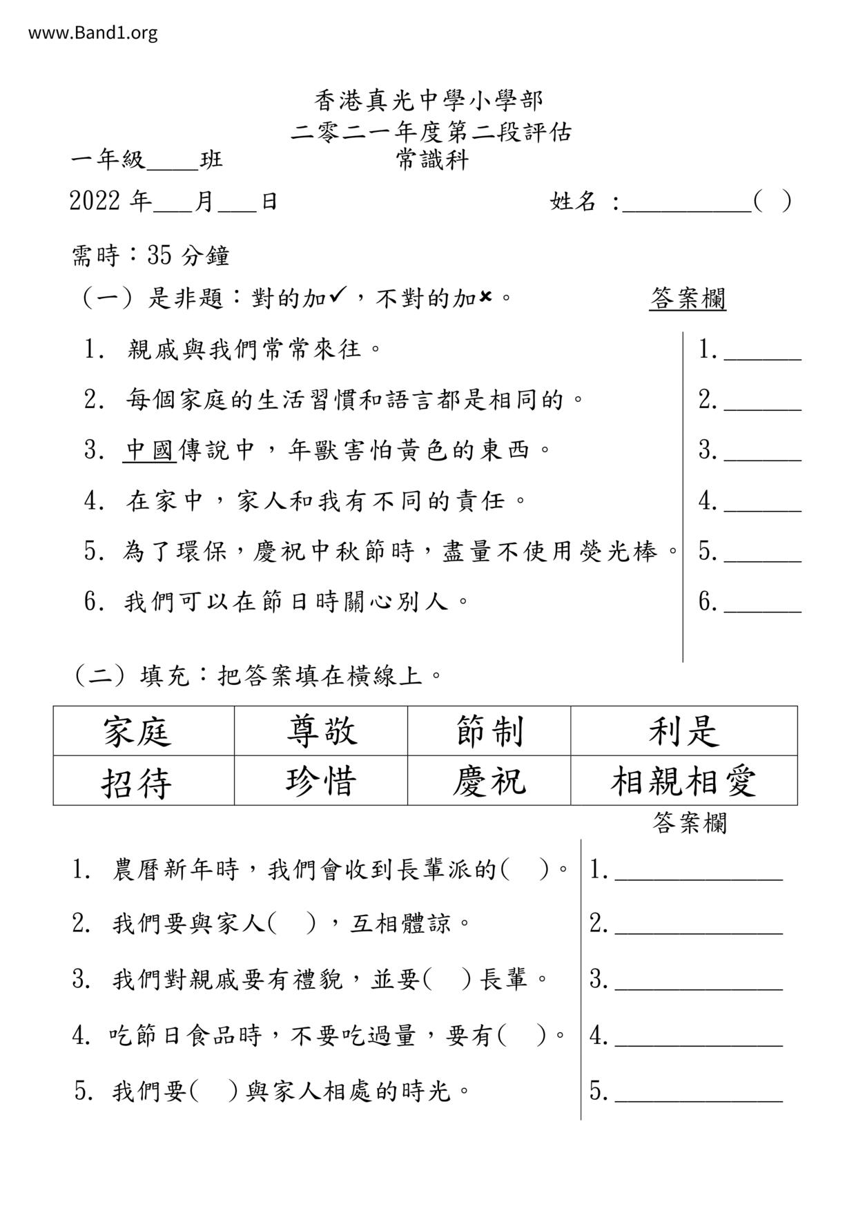 小一 數學 香港真光中學附屬小學暨幼稚園