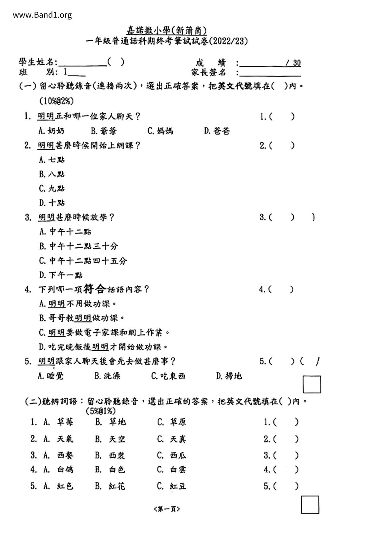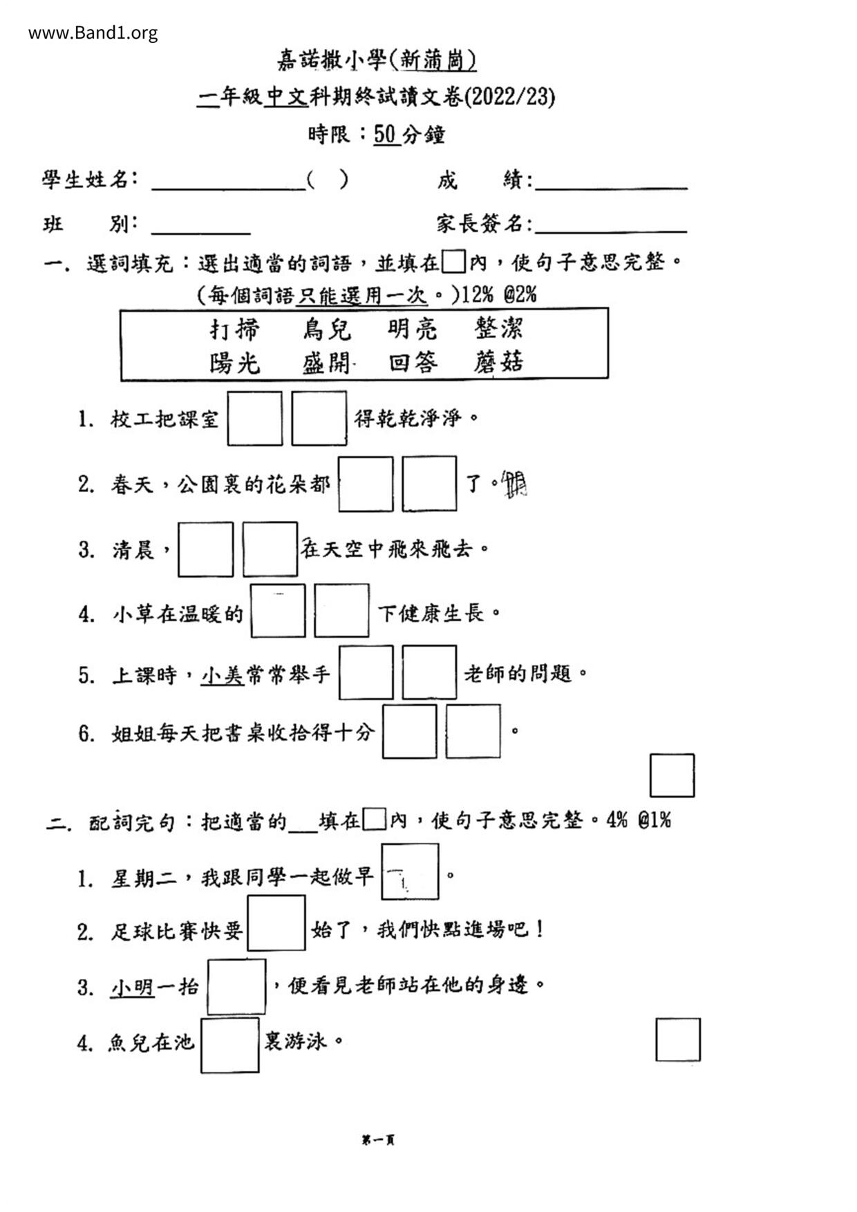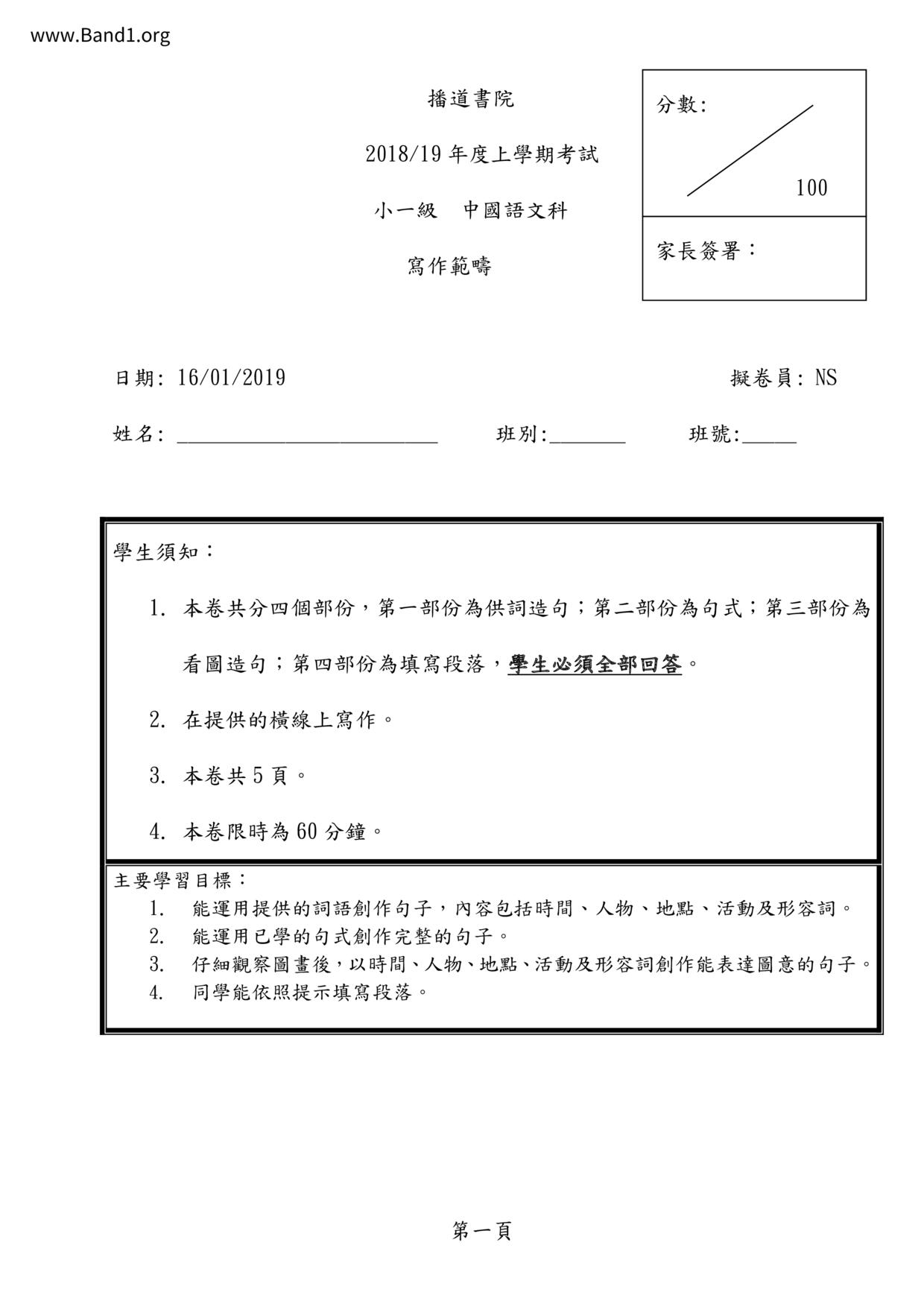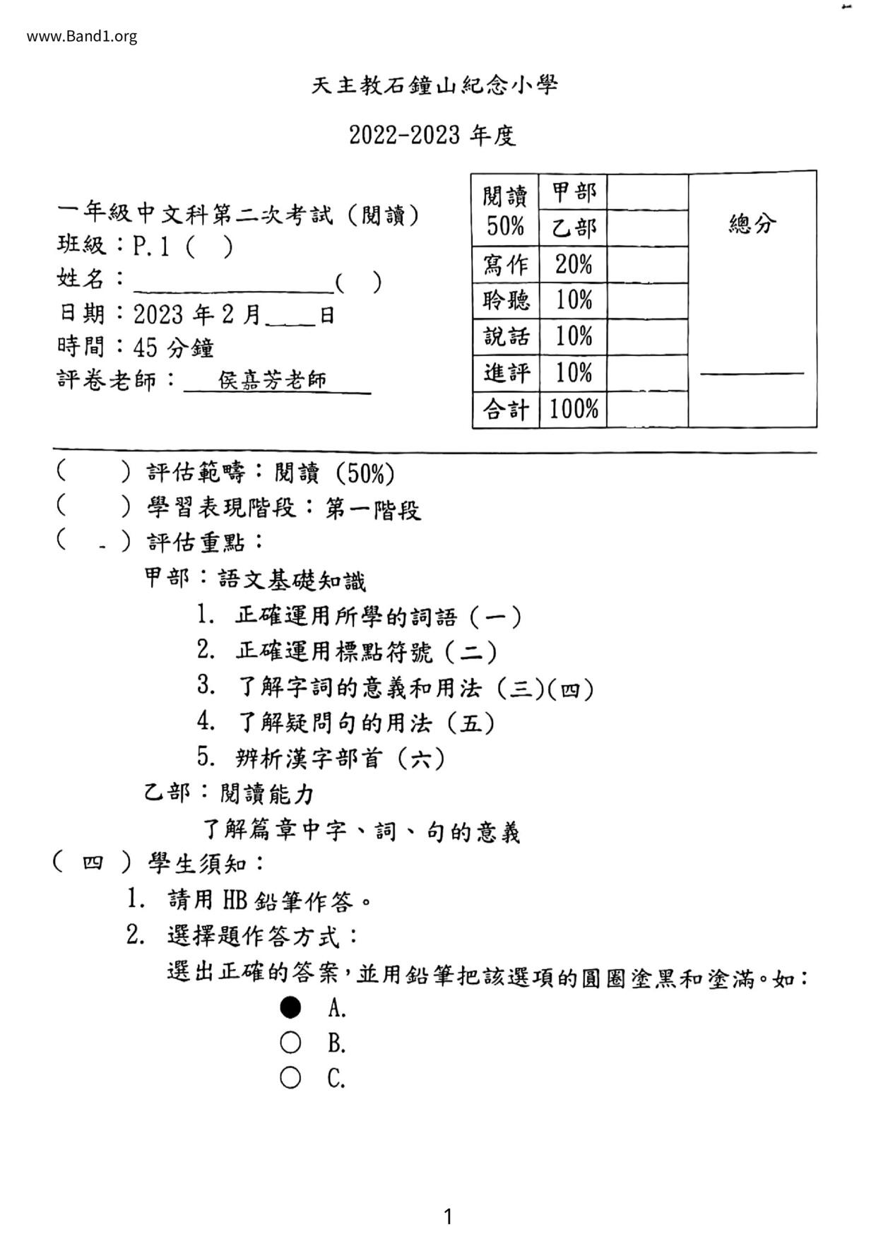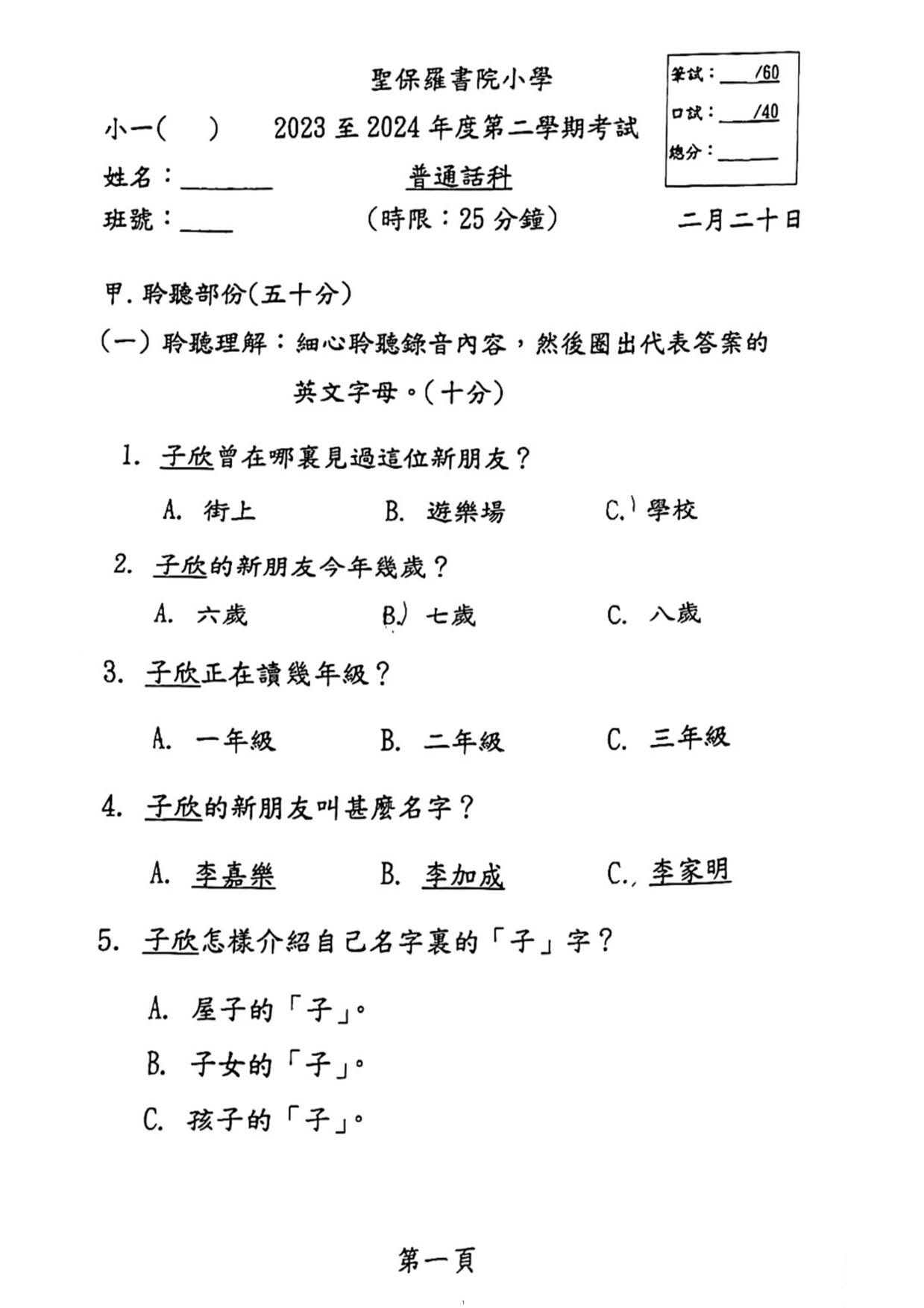 小一 普通話 嘉諾撒小學(新蒲崗)
