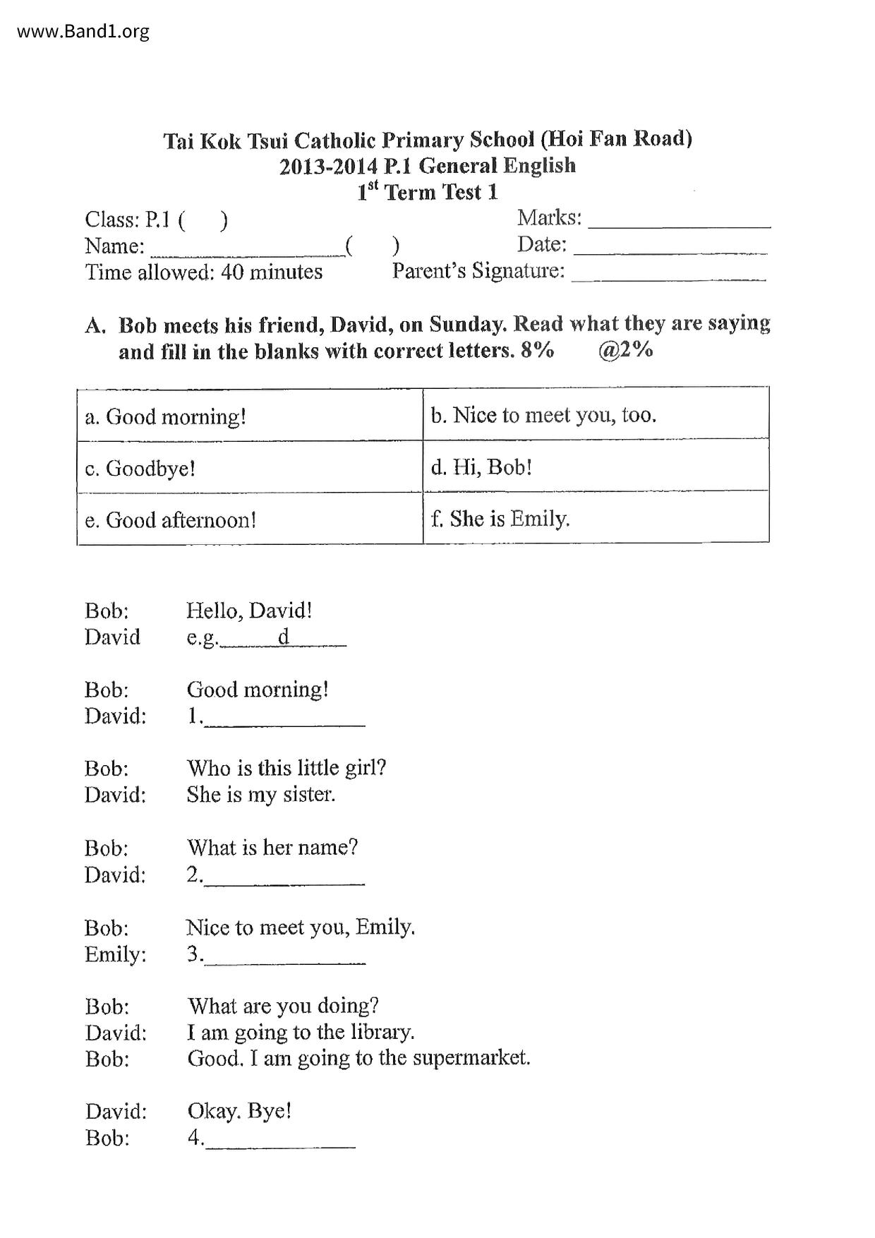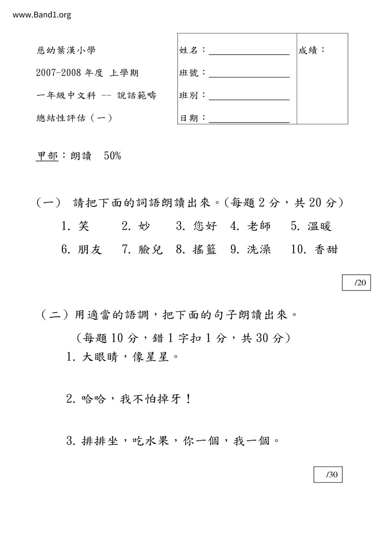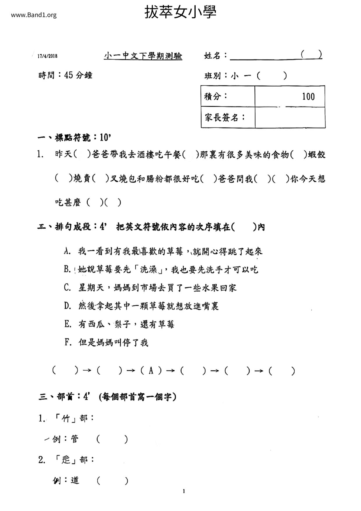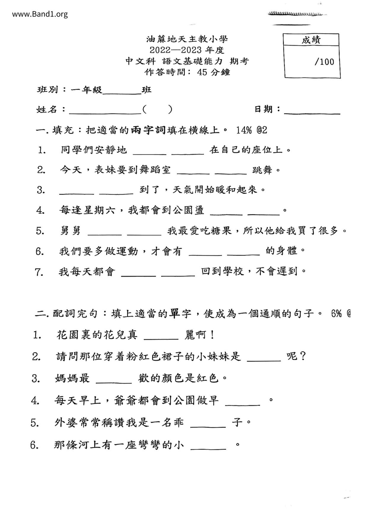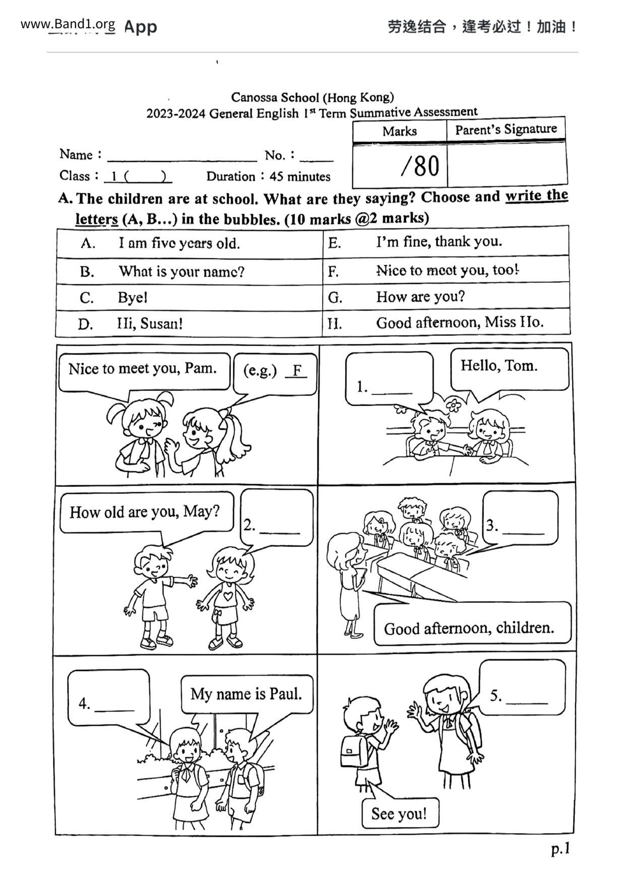 小一 普通話 嘉諾撒小學(新蒲崗)