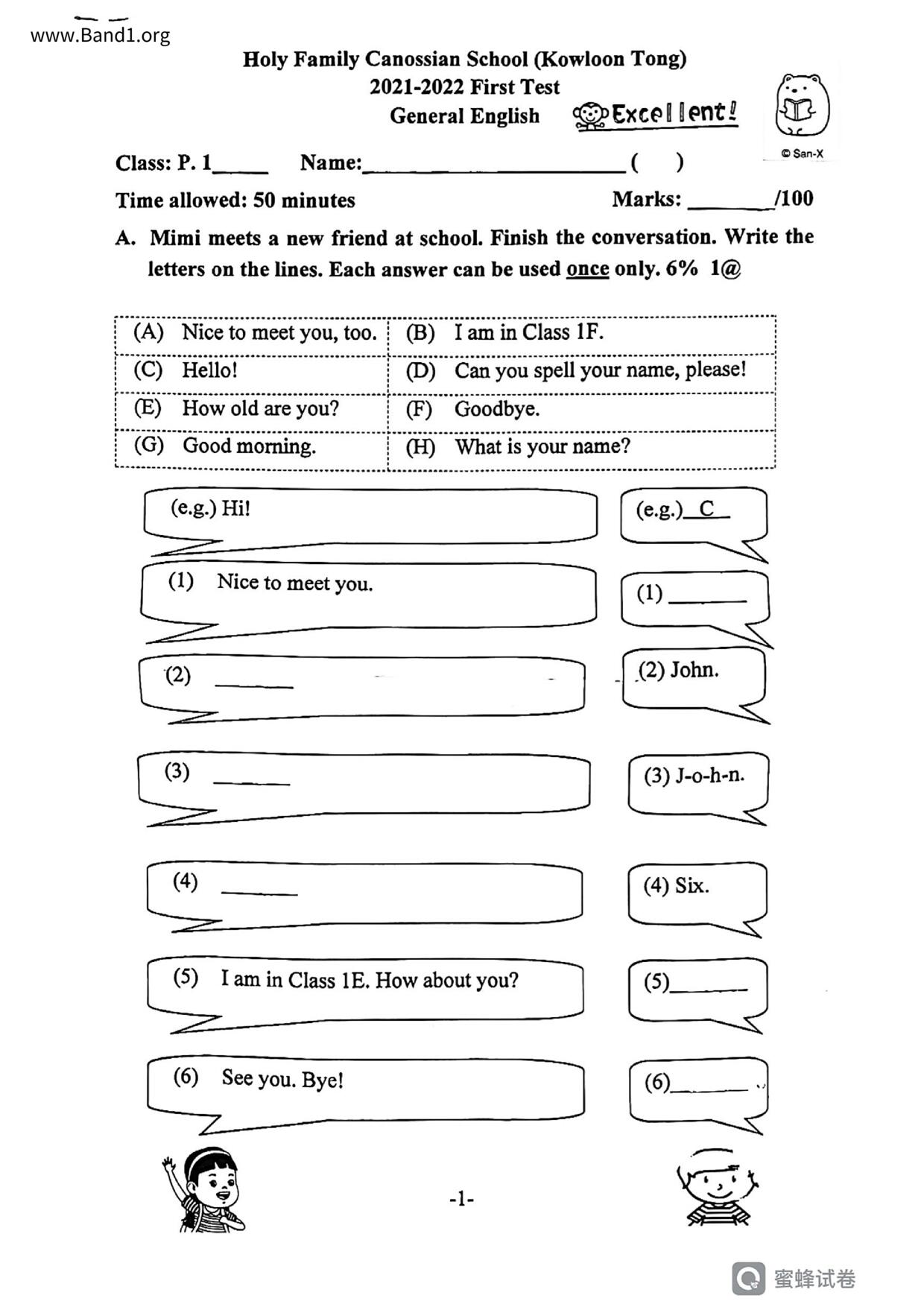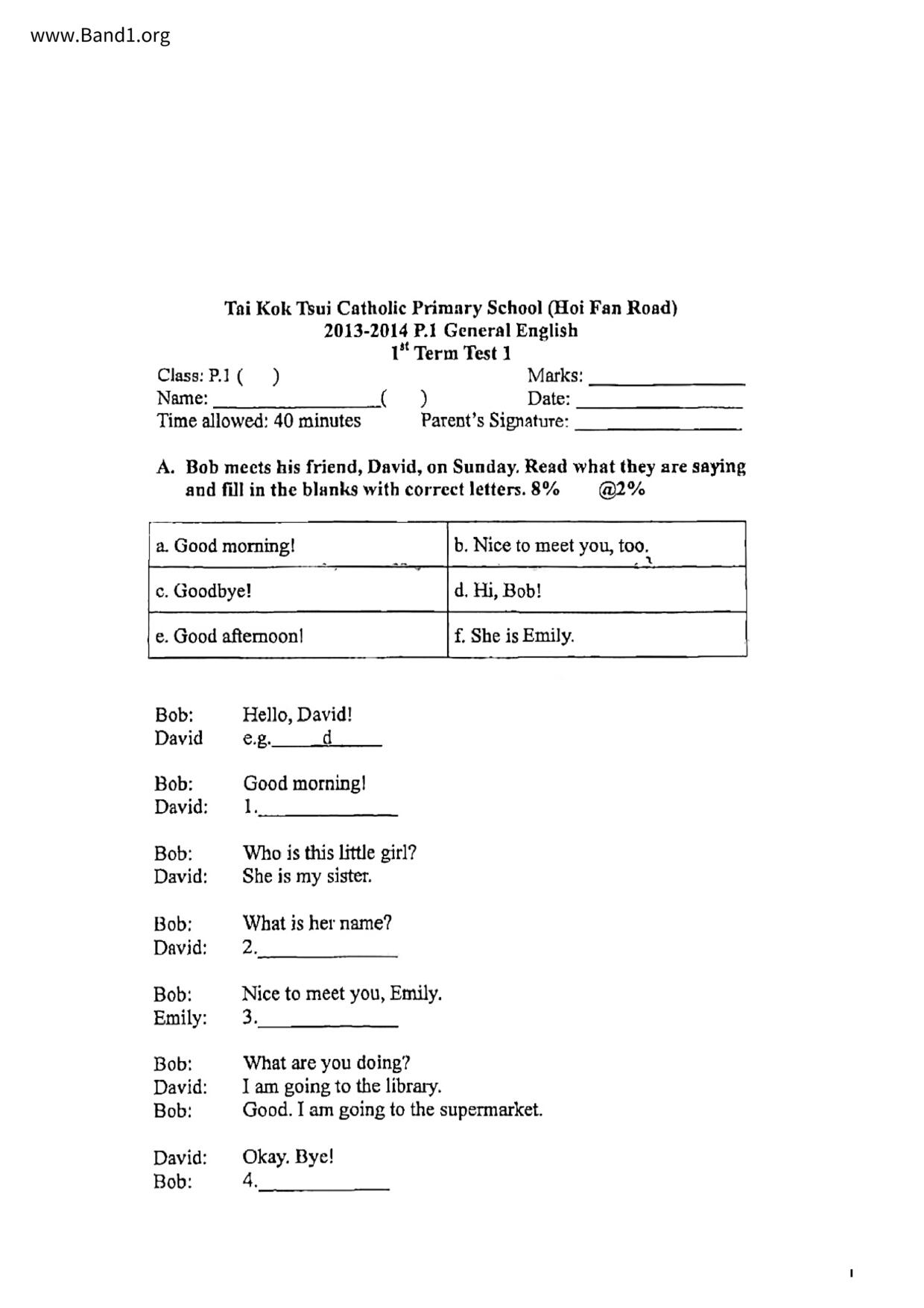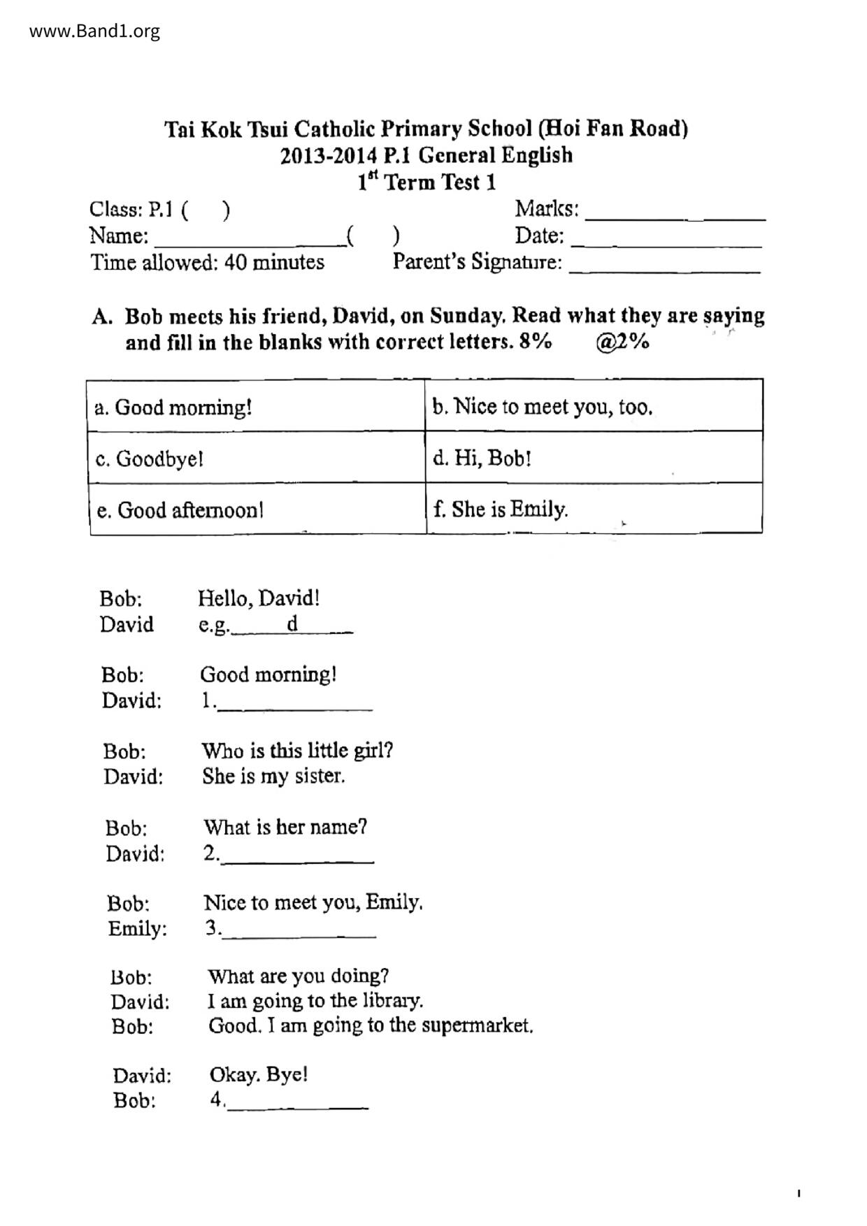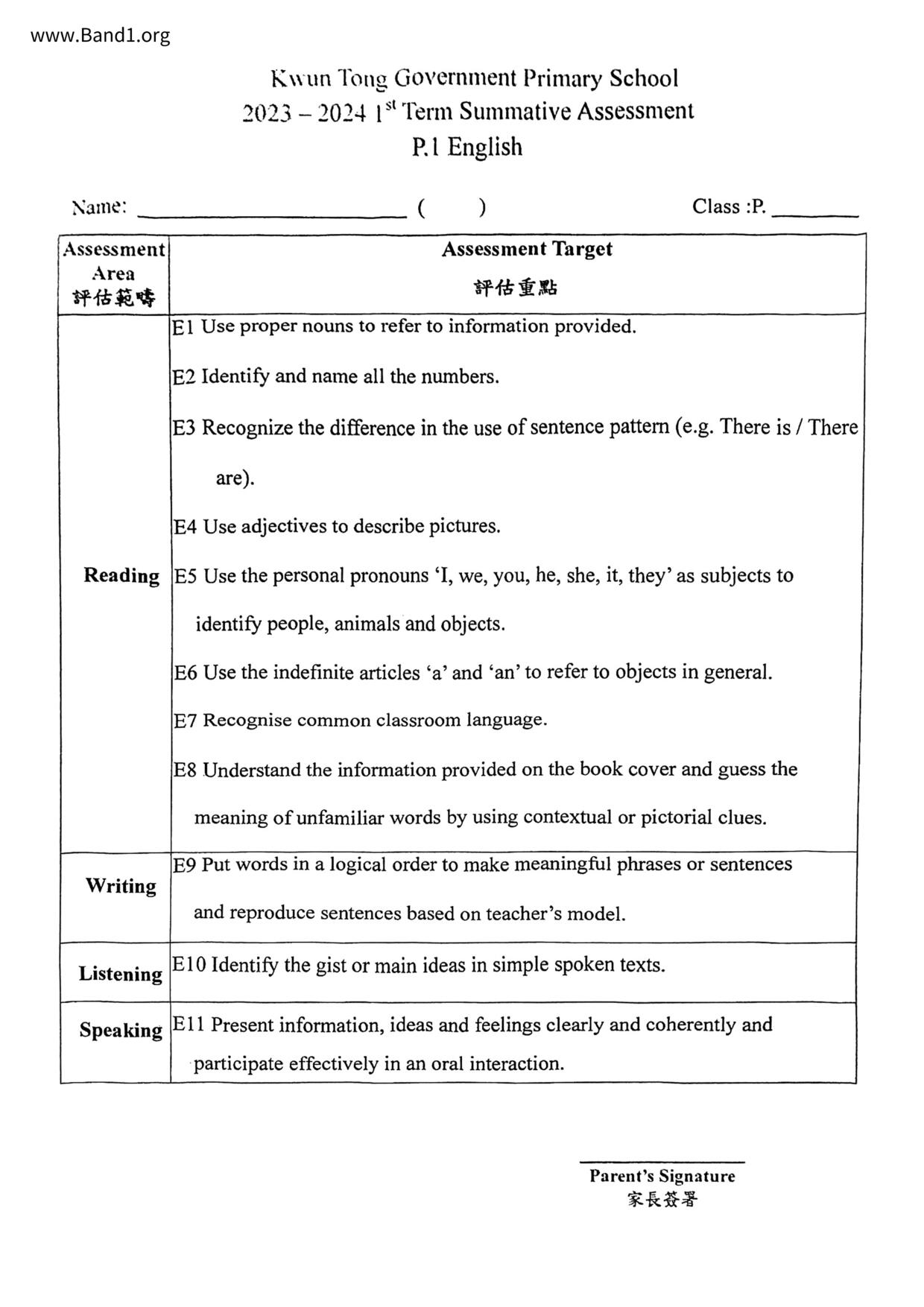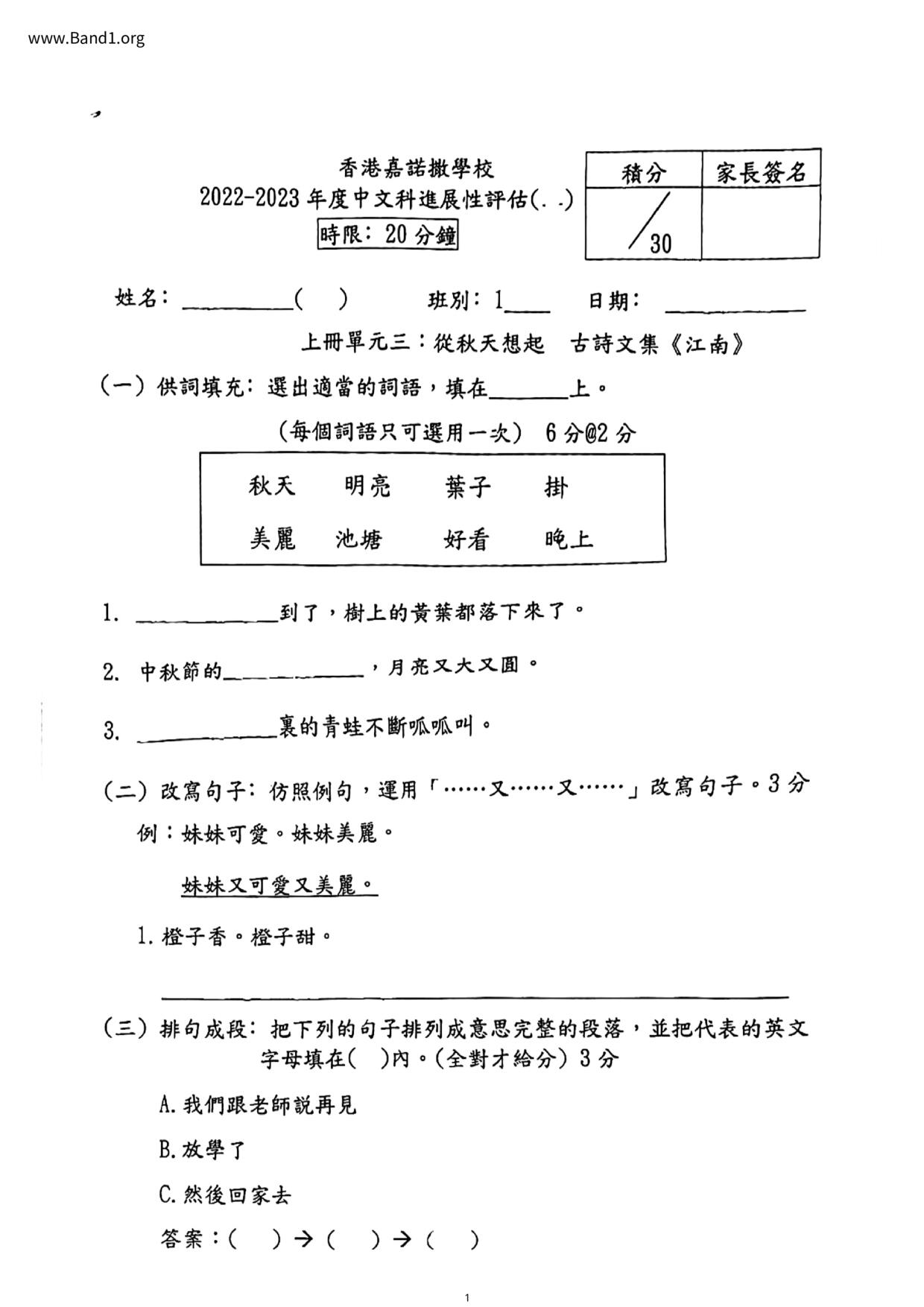 小一 普通話 嘉諾撒小學(新蒲崗)