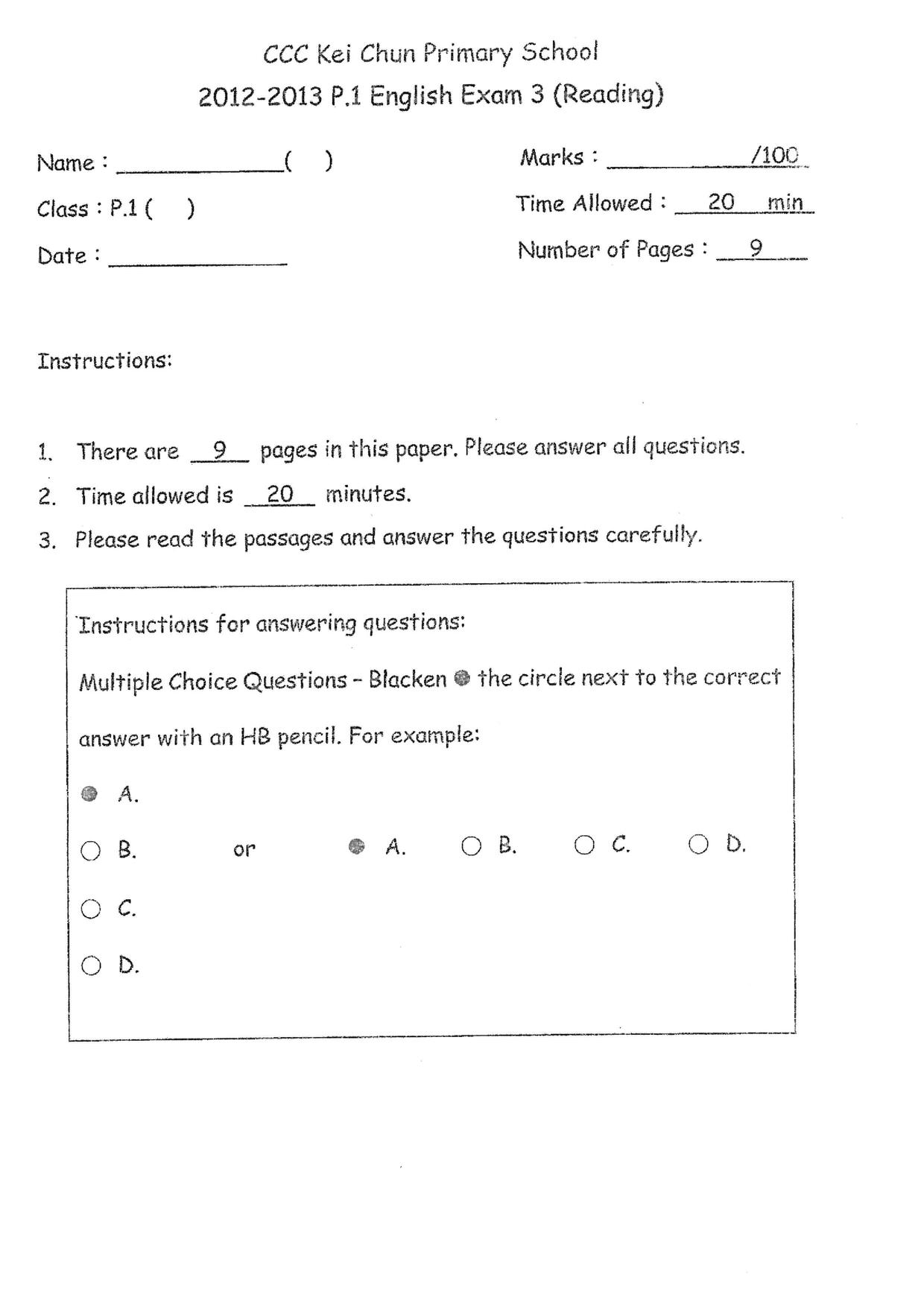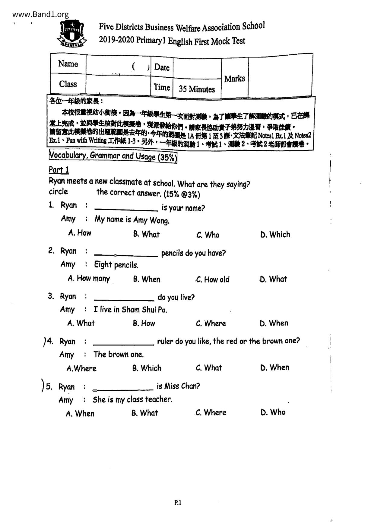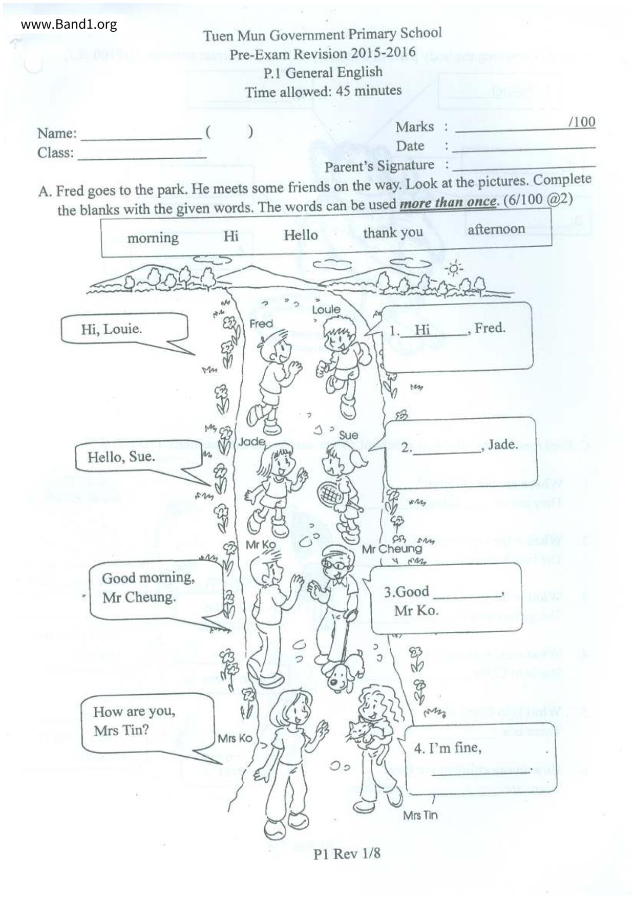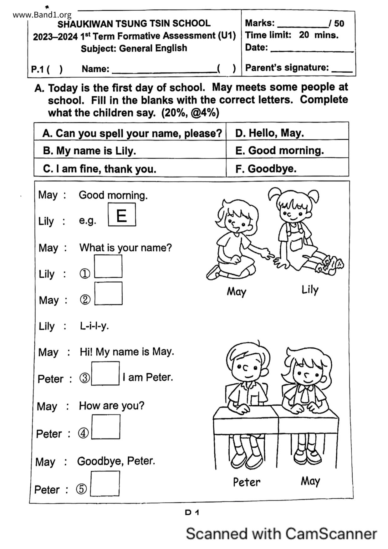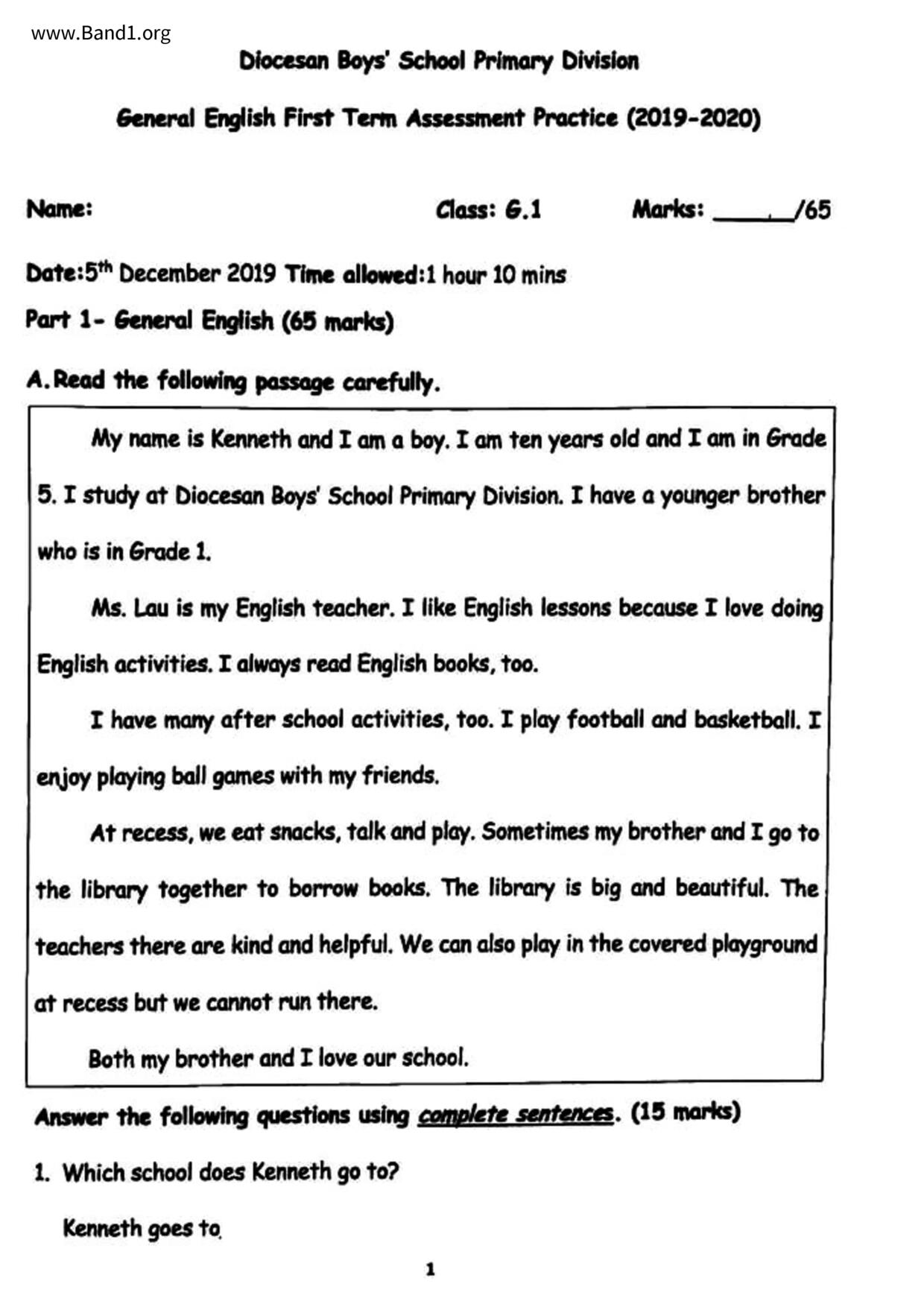 小一 普通話 嘉諾撒小學(新蒲崗)