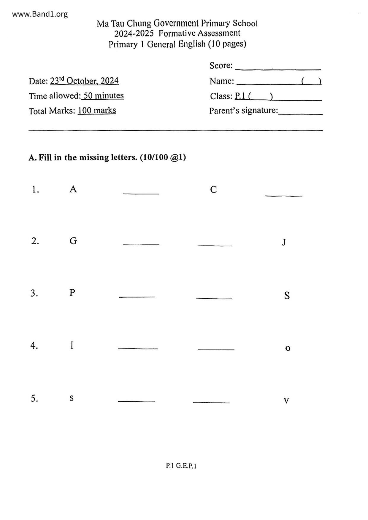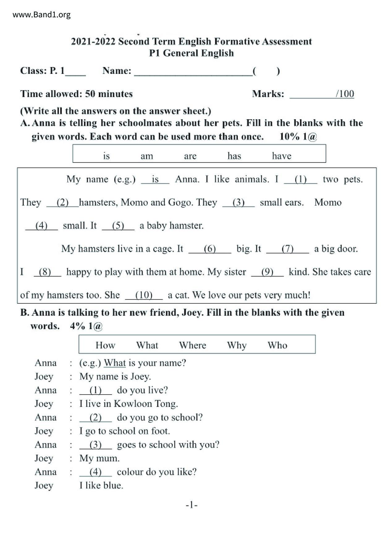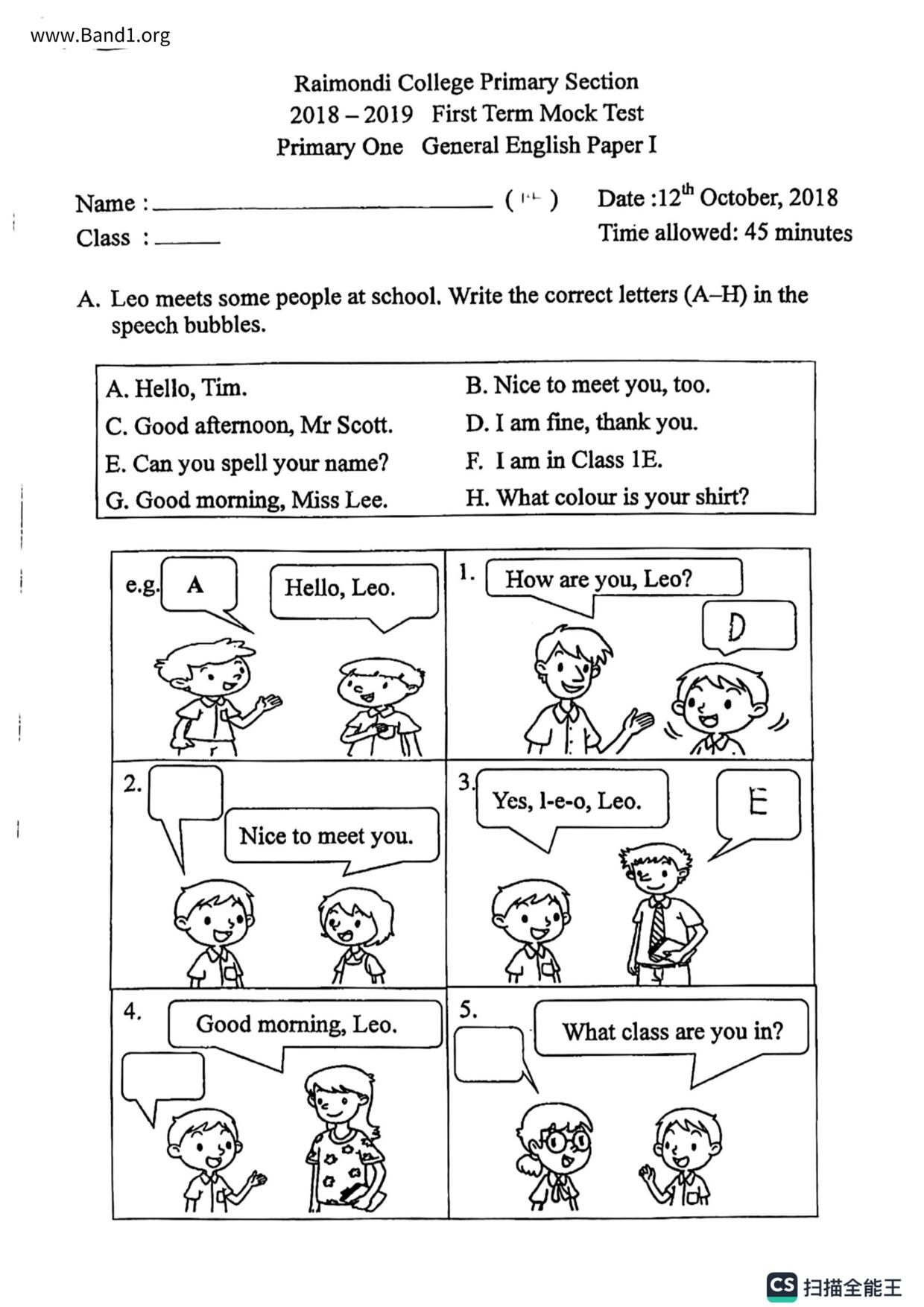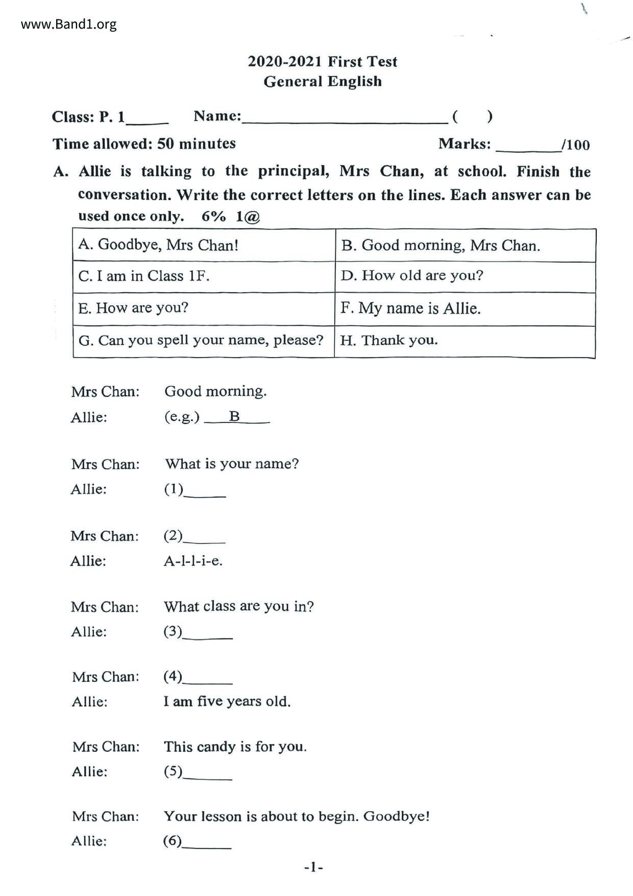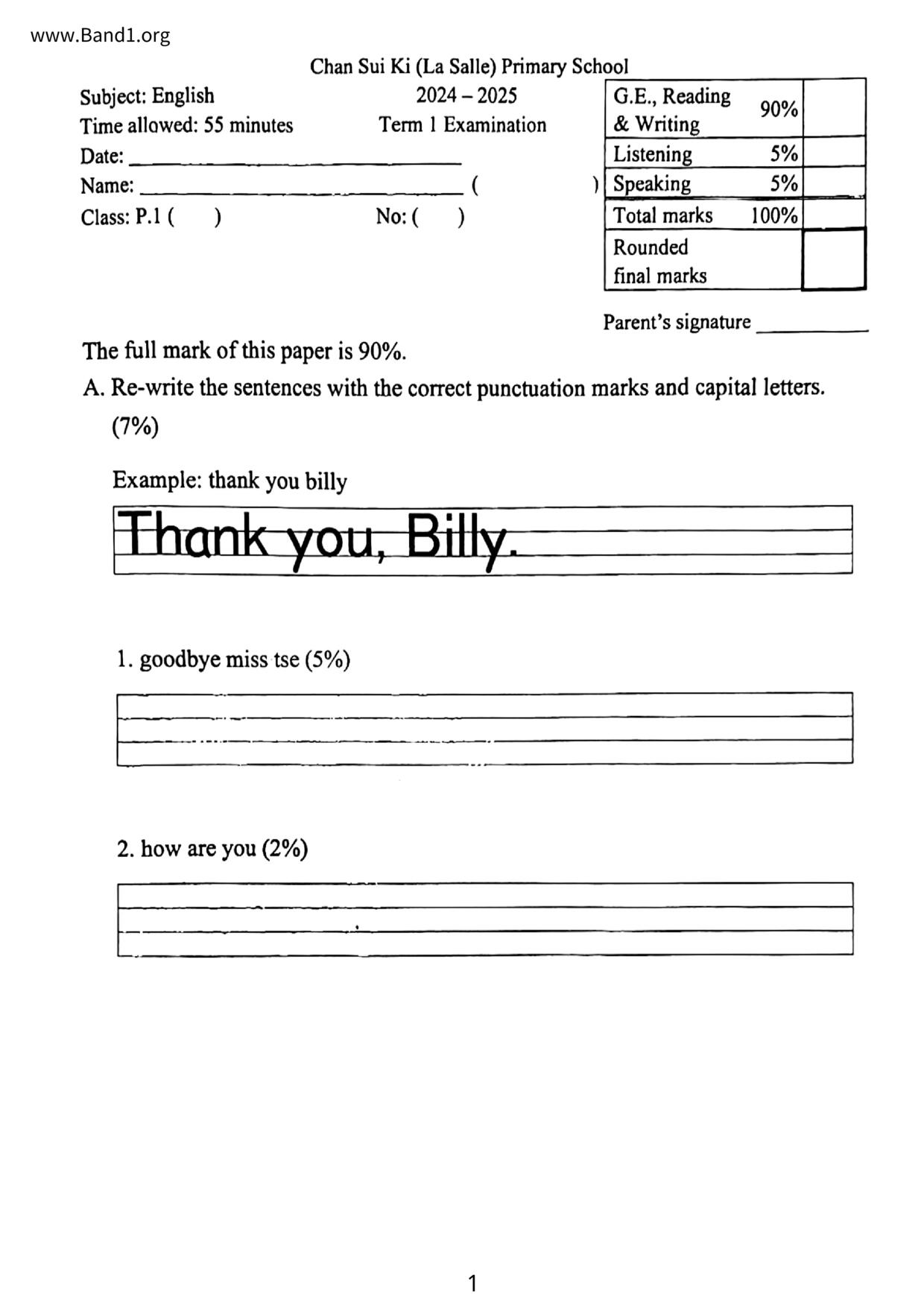 小一 普通話 嘉諾撒小學(新蒲崗)
