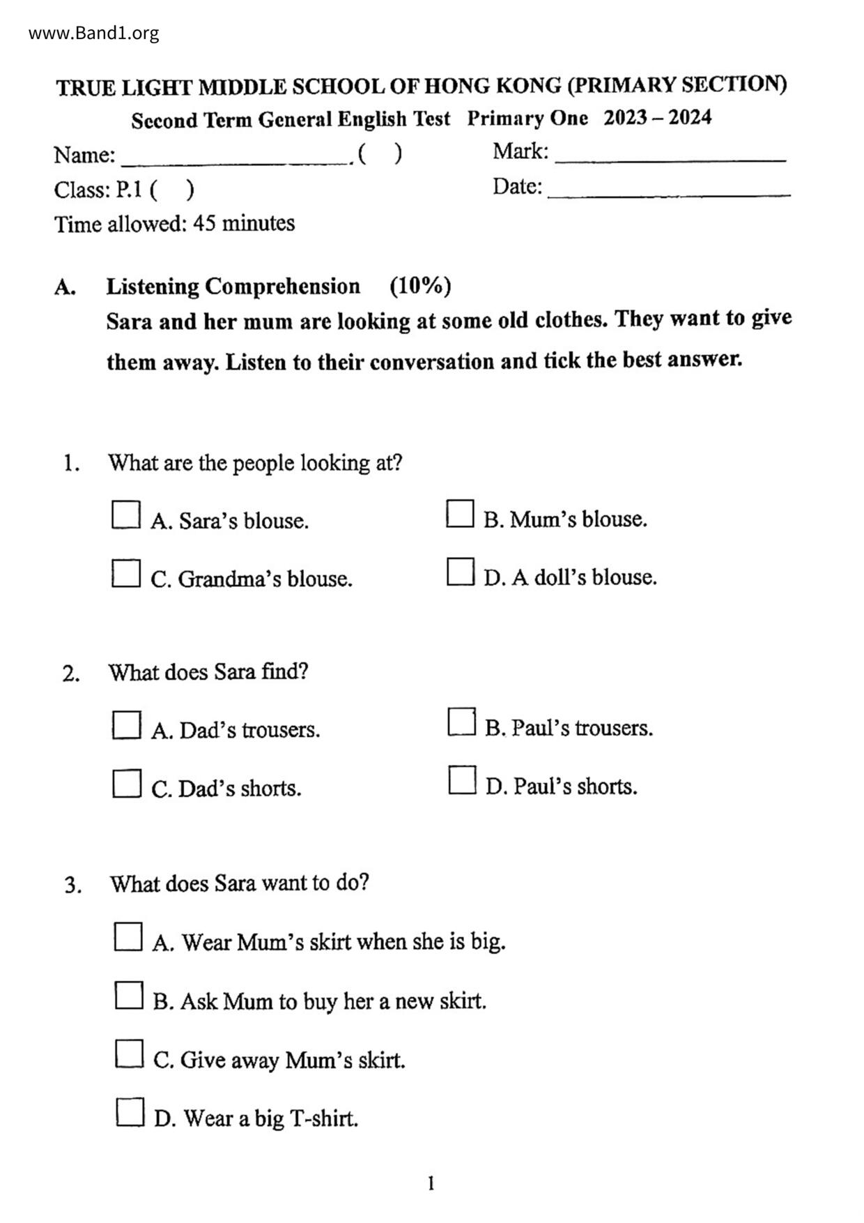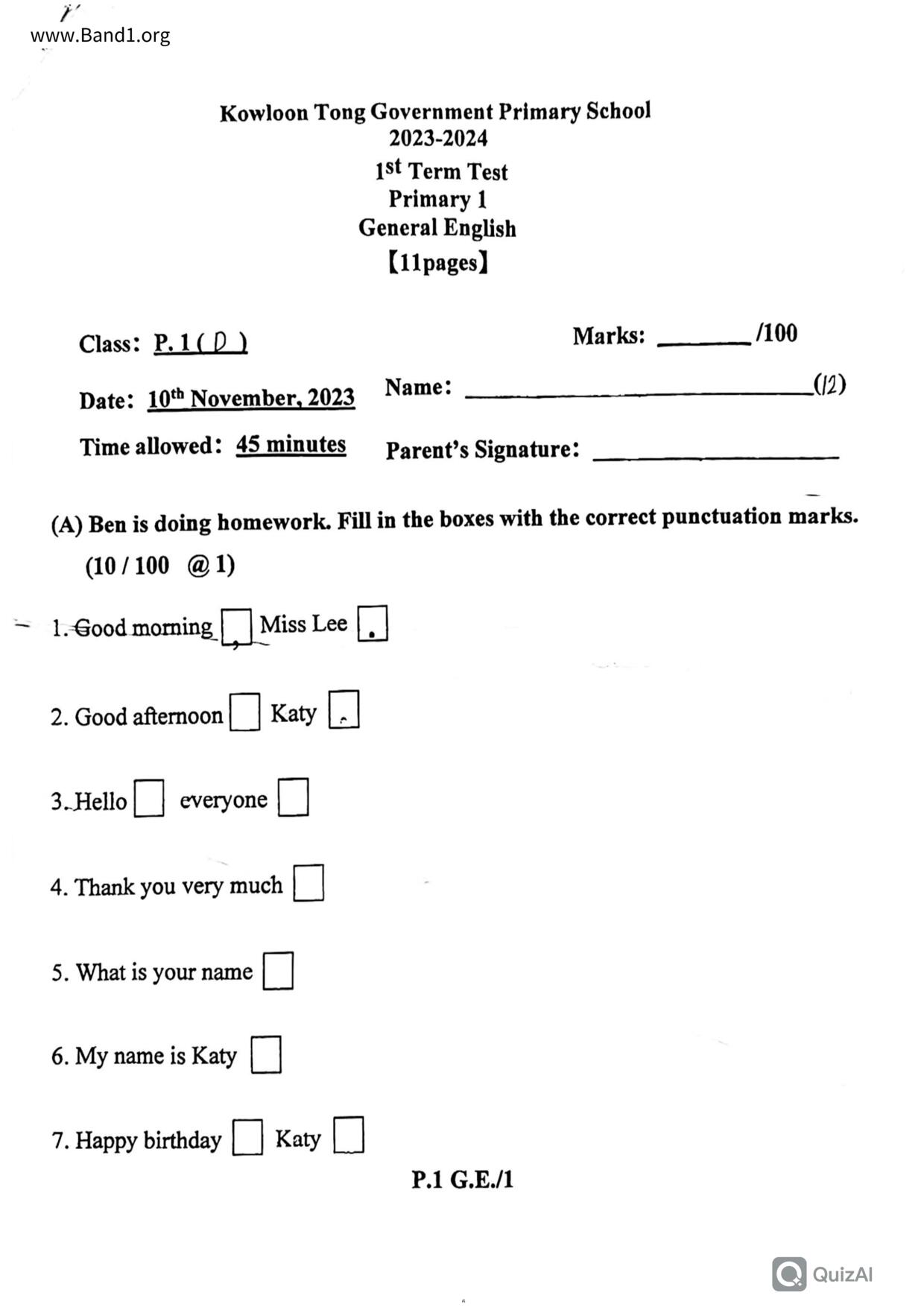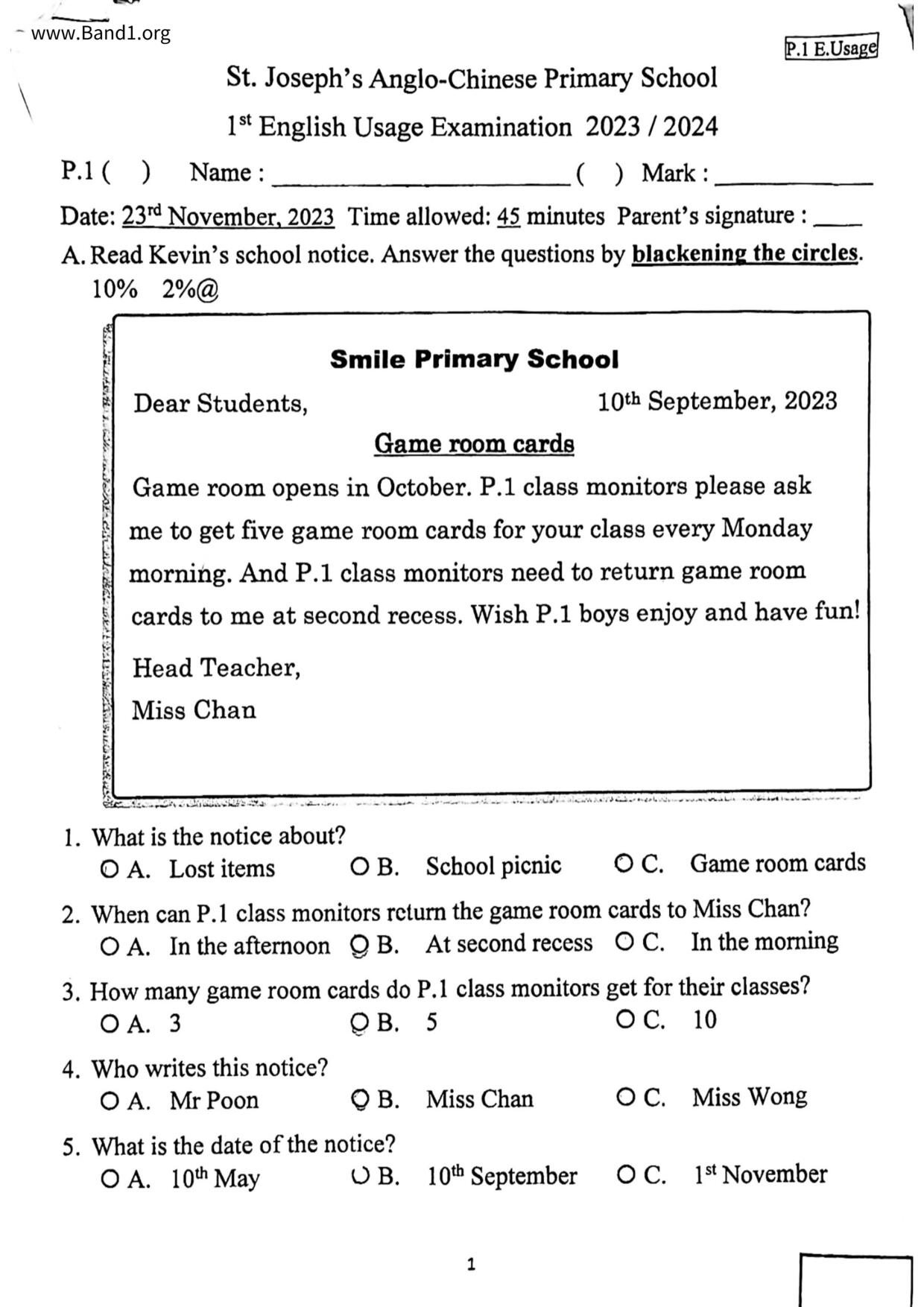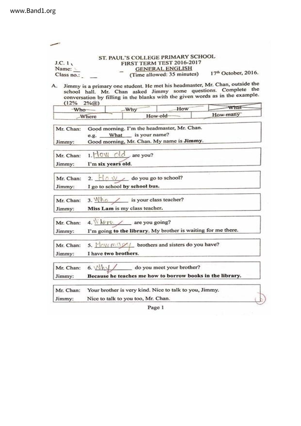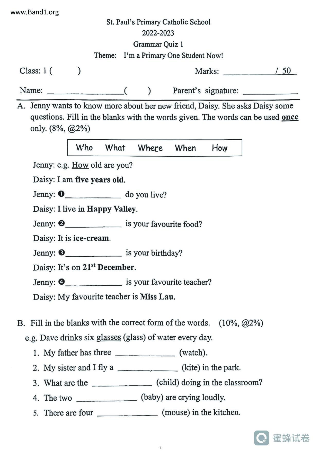 小一 普通話 嘉諾撒小學(新蒲崗)