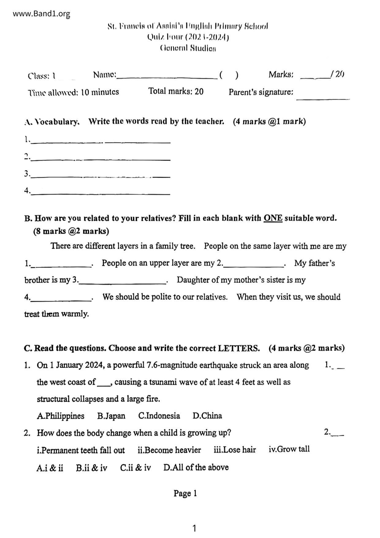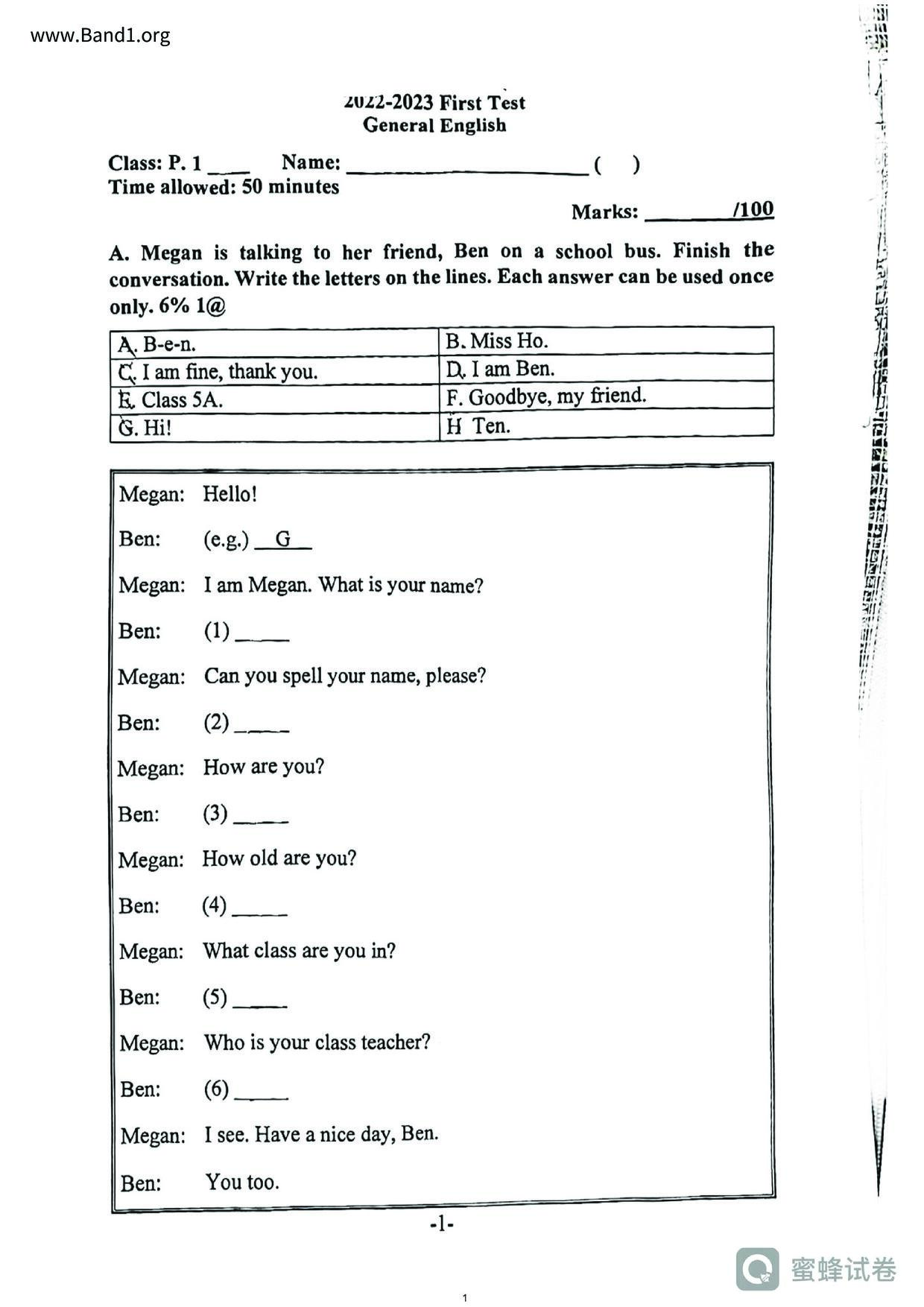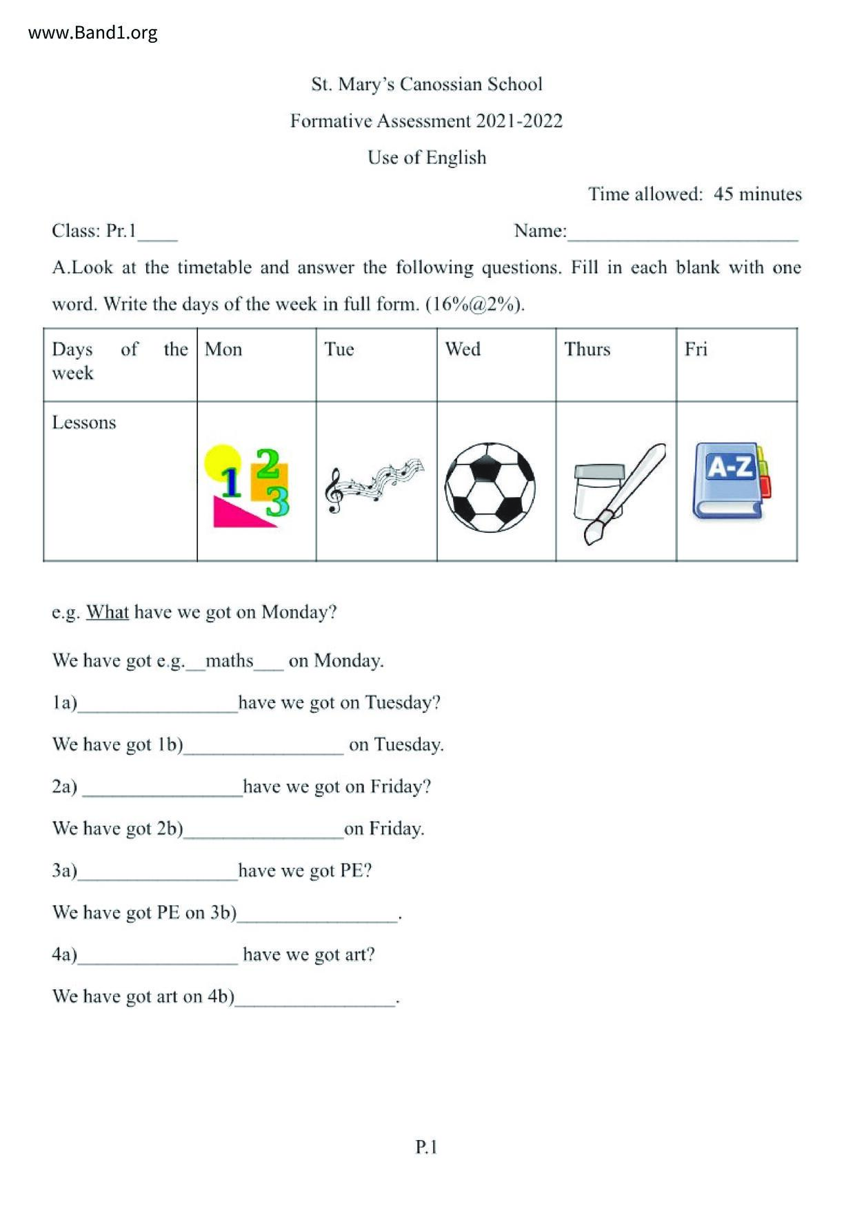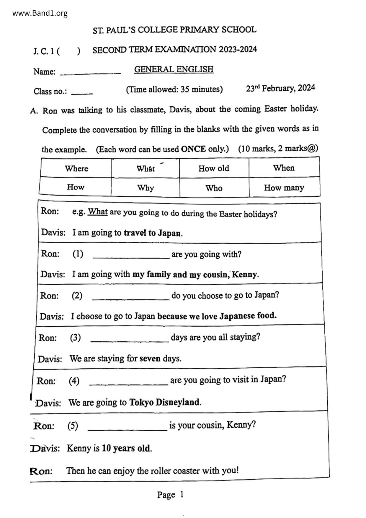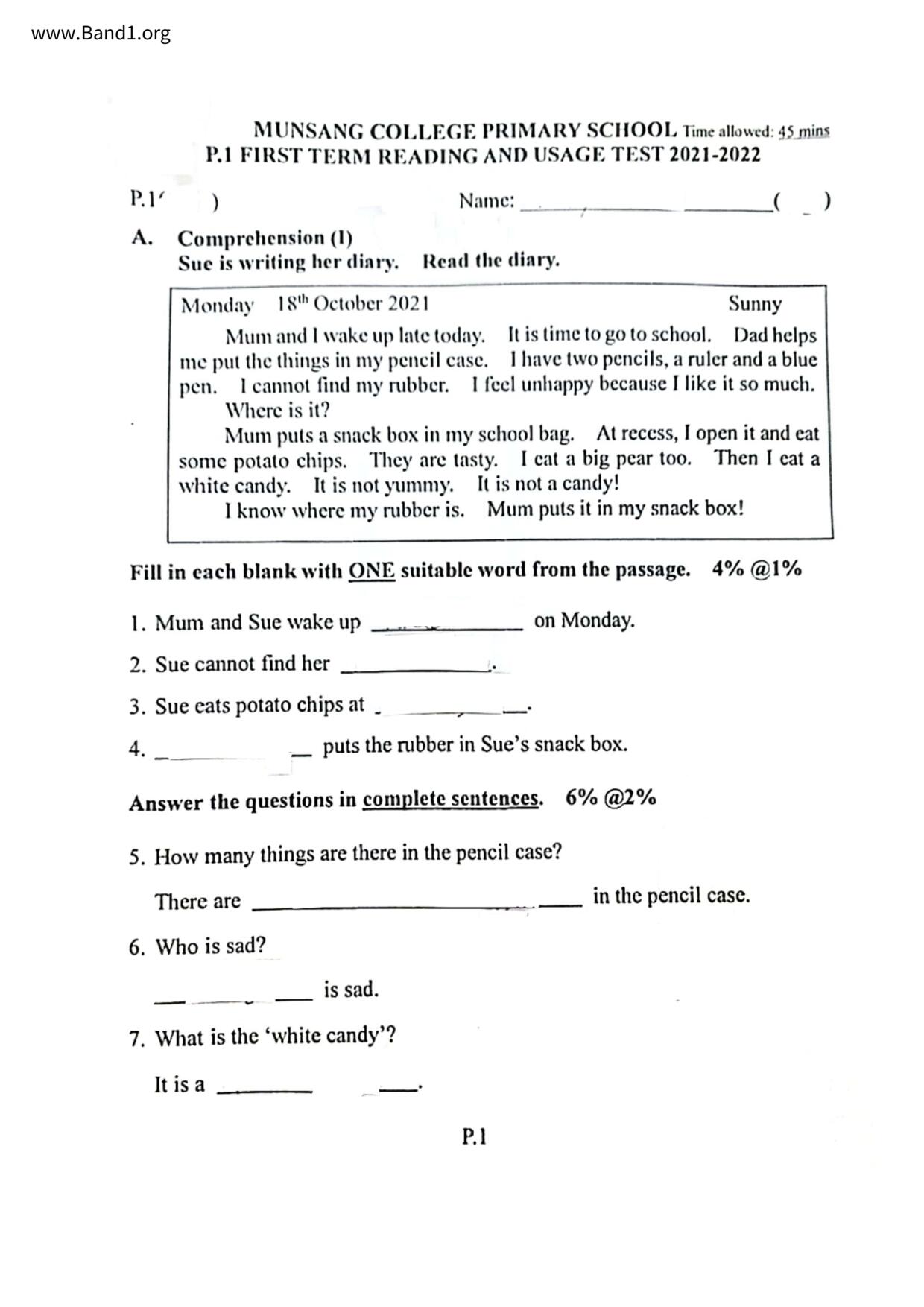 小一 普通話 嘉諾撒小學(新蒲崗)