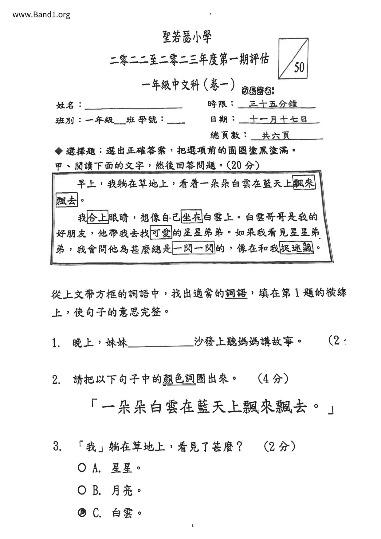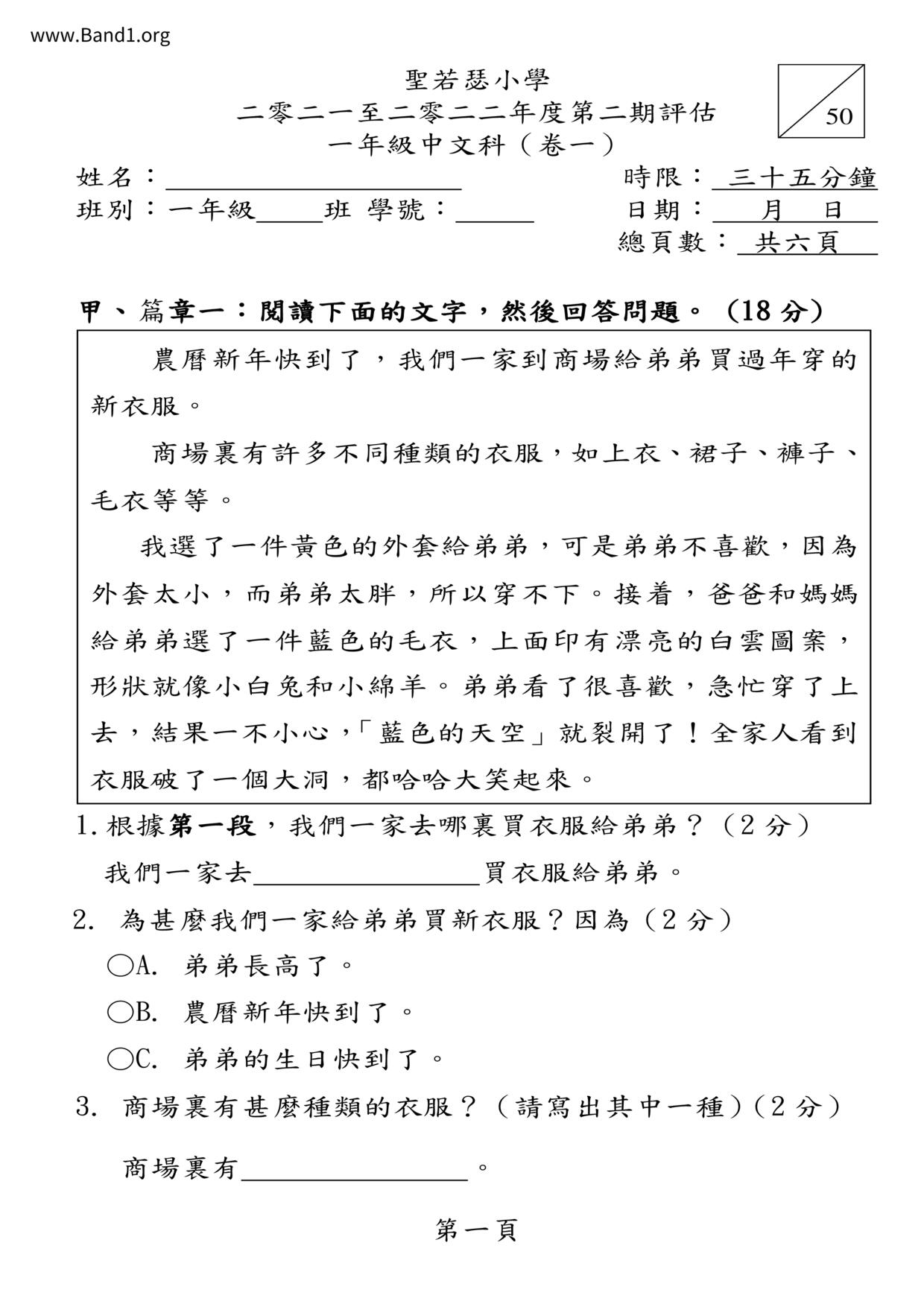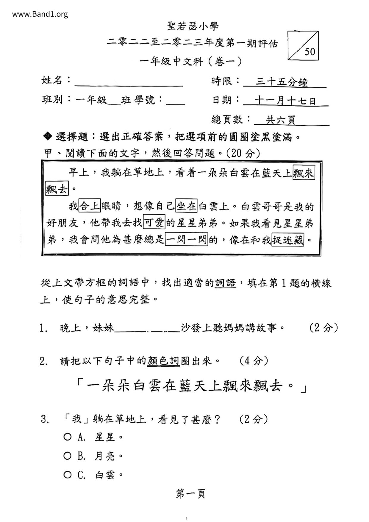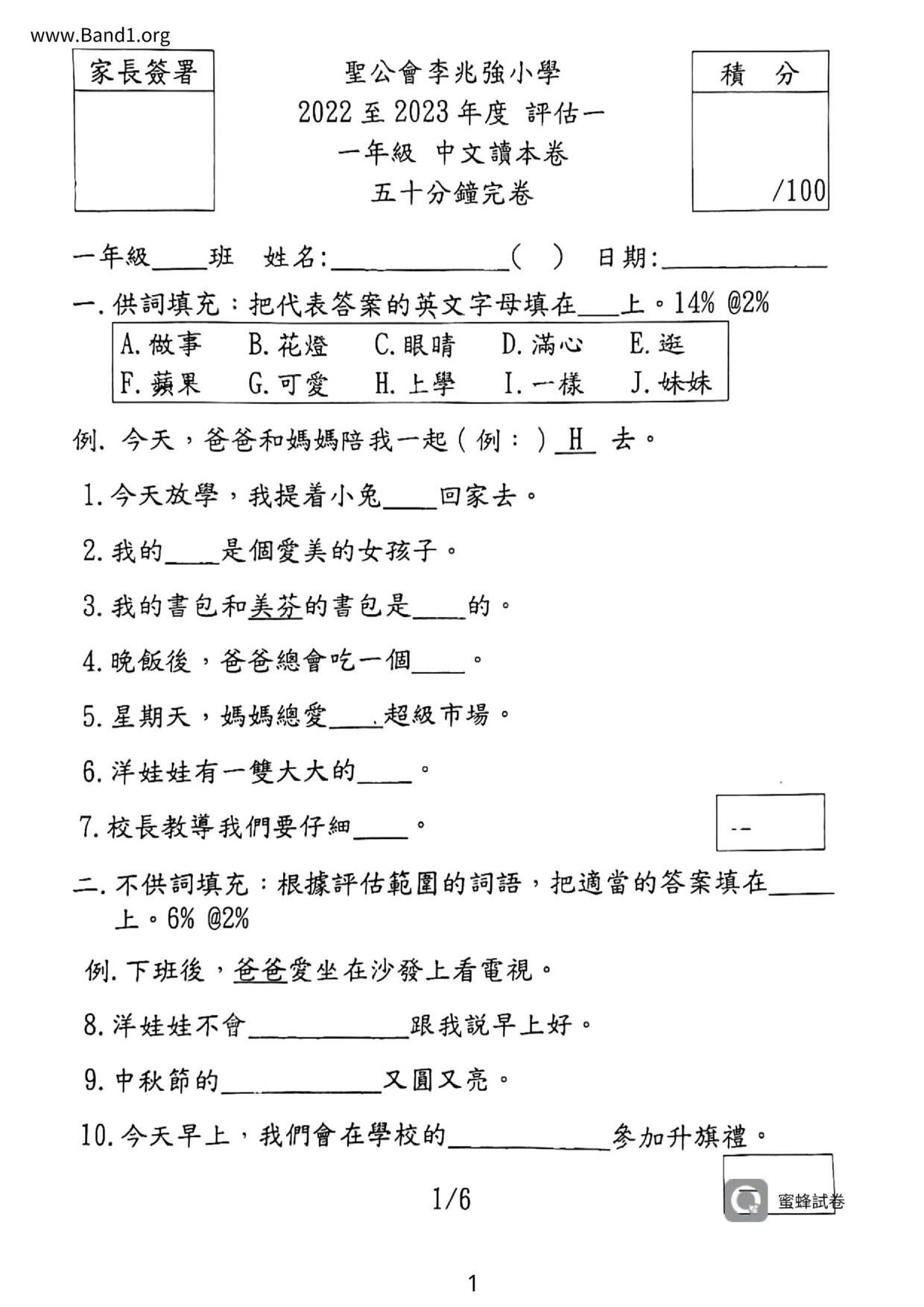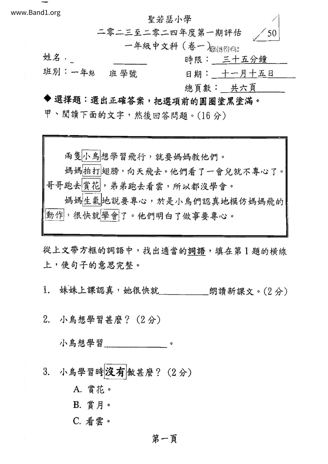 小一 中文 保良局西區婦女福利會馮李佩瑤小學
